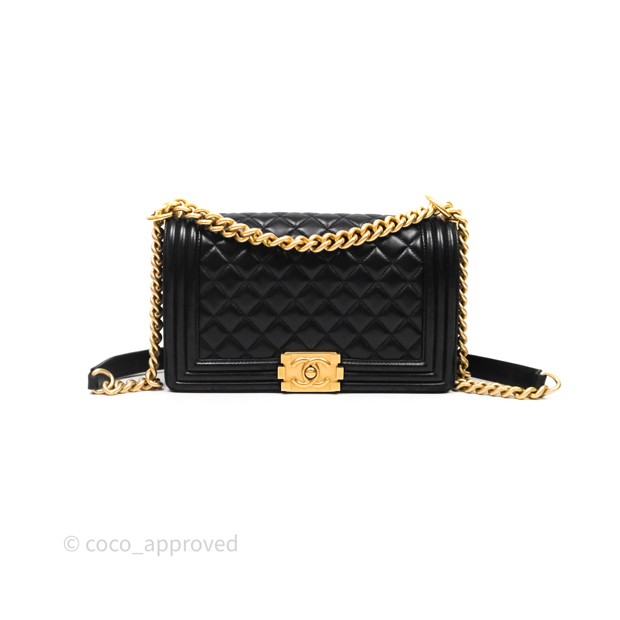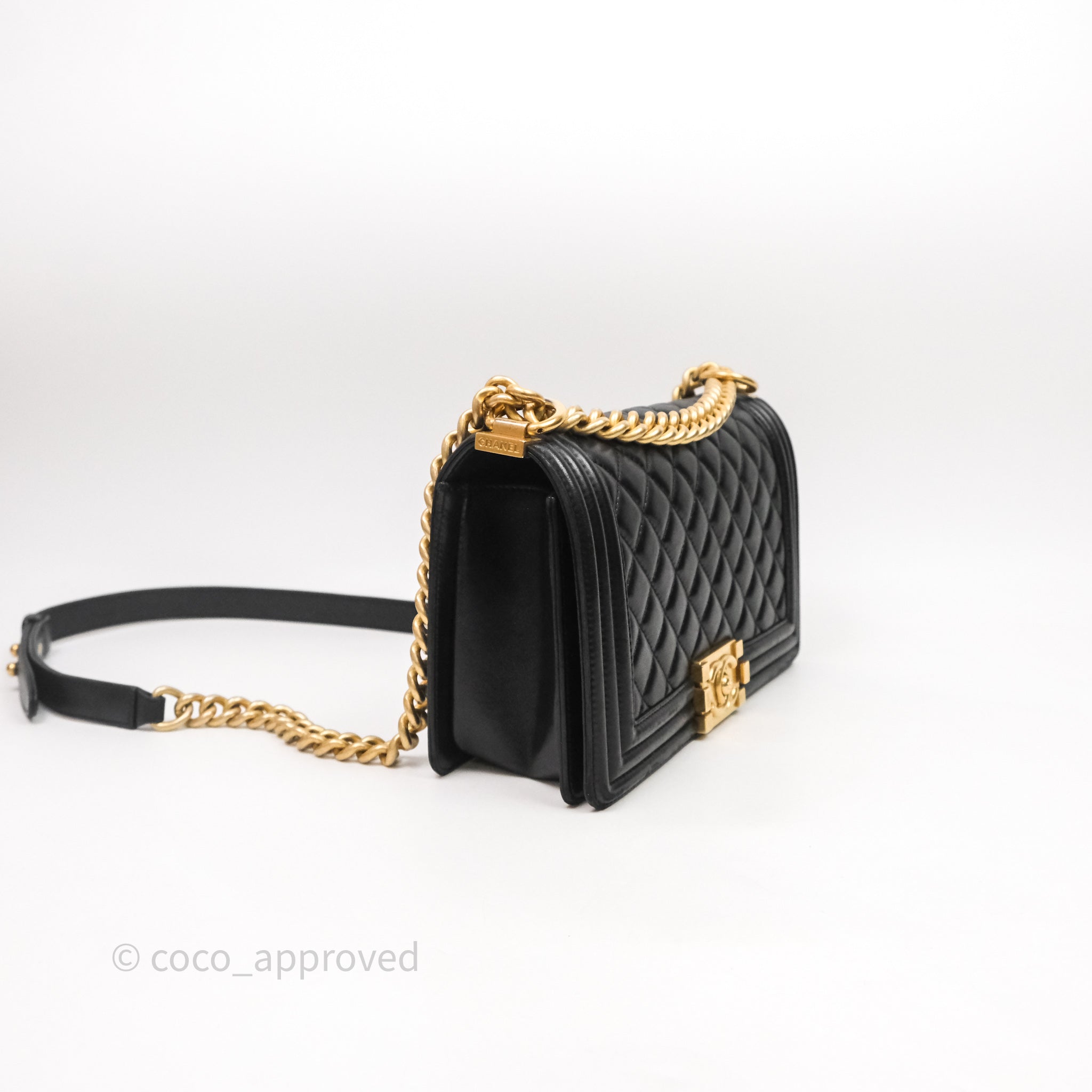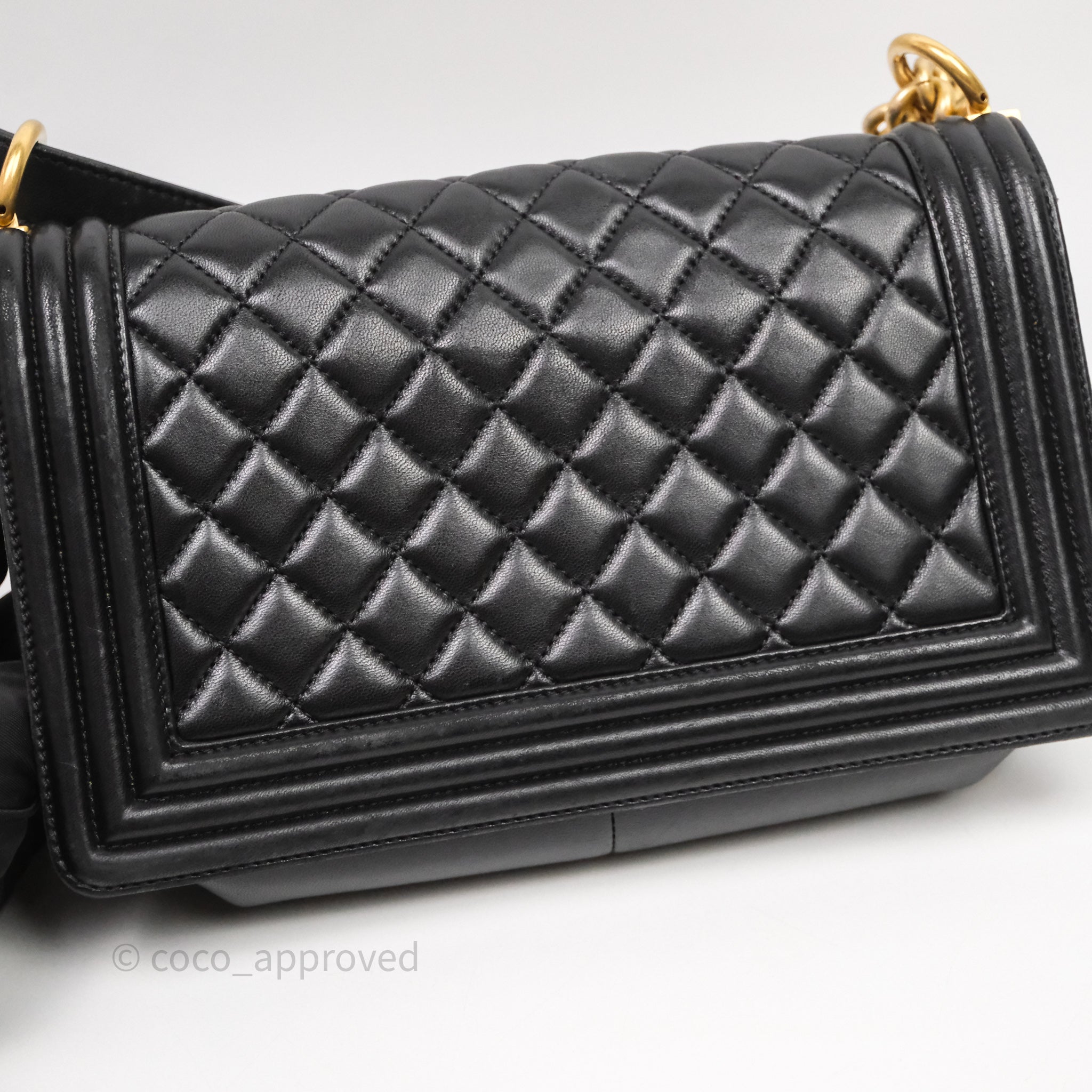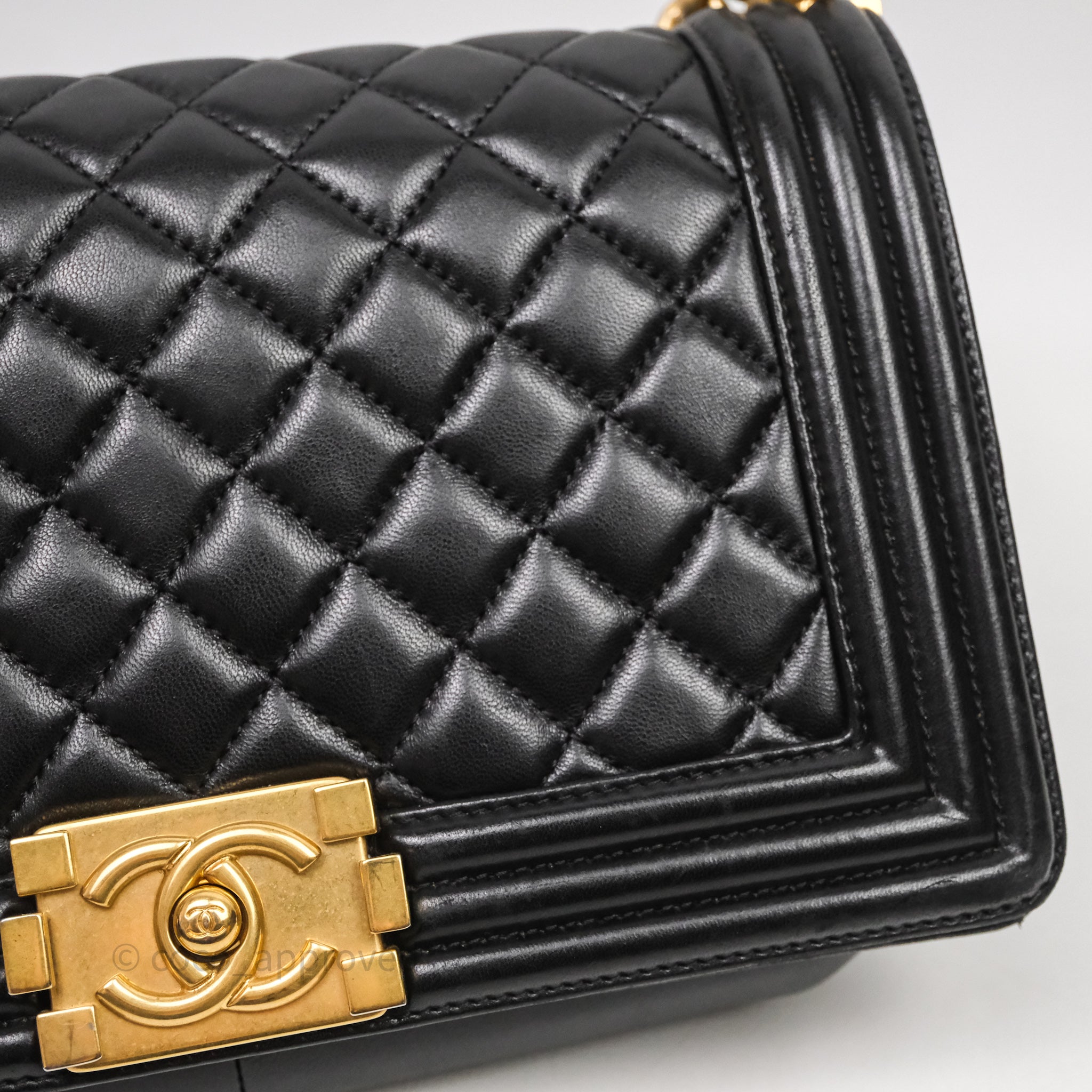 Chanel Medium Boy Quilted Black Lambskin Aged Gold Hardware