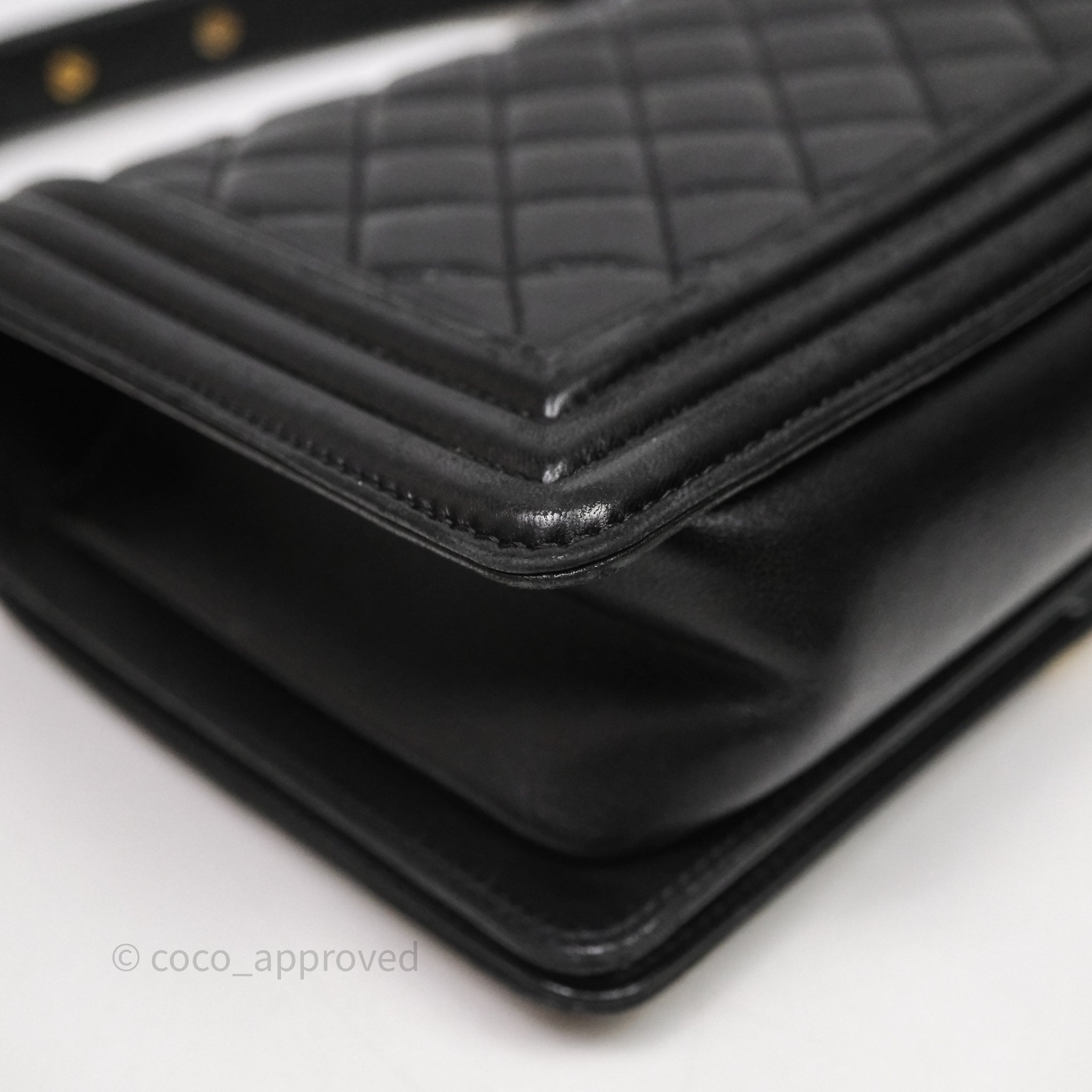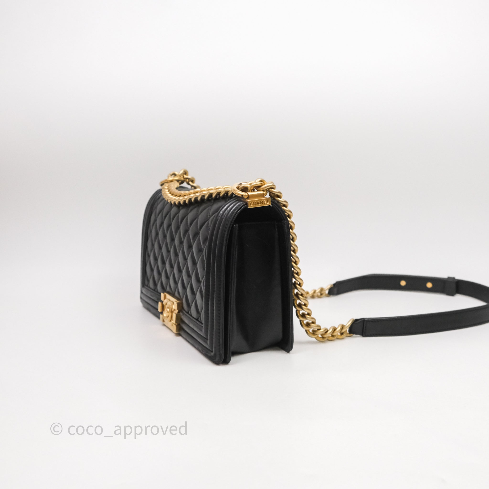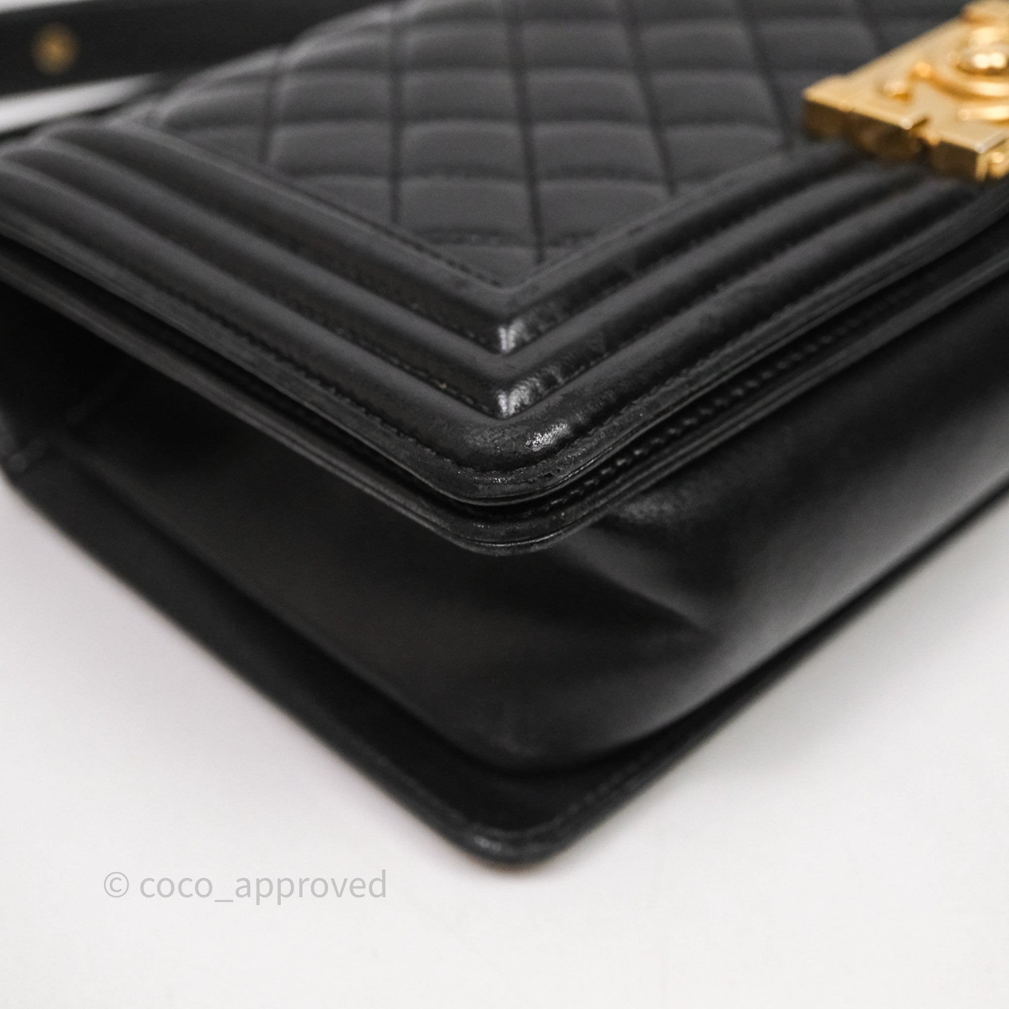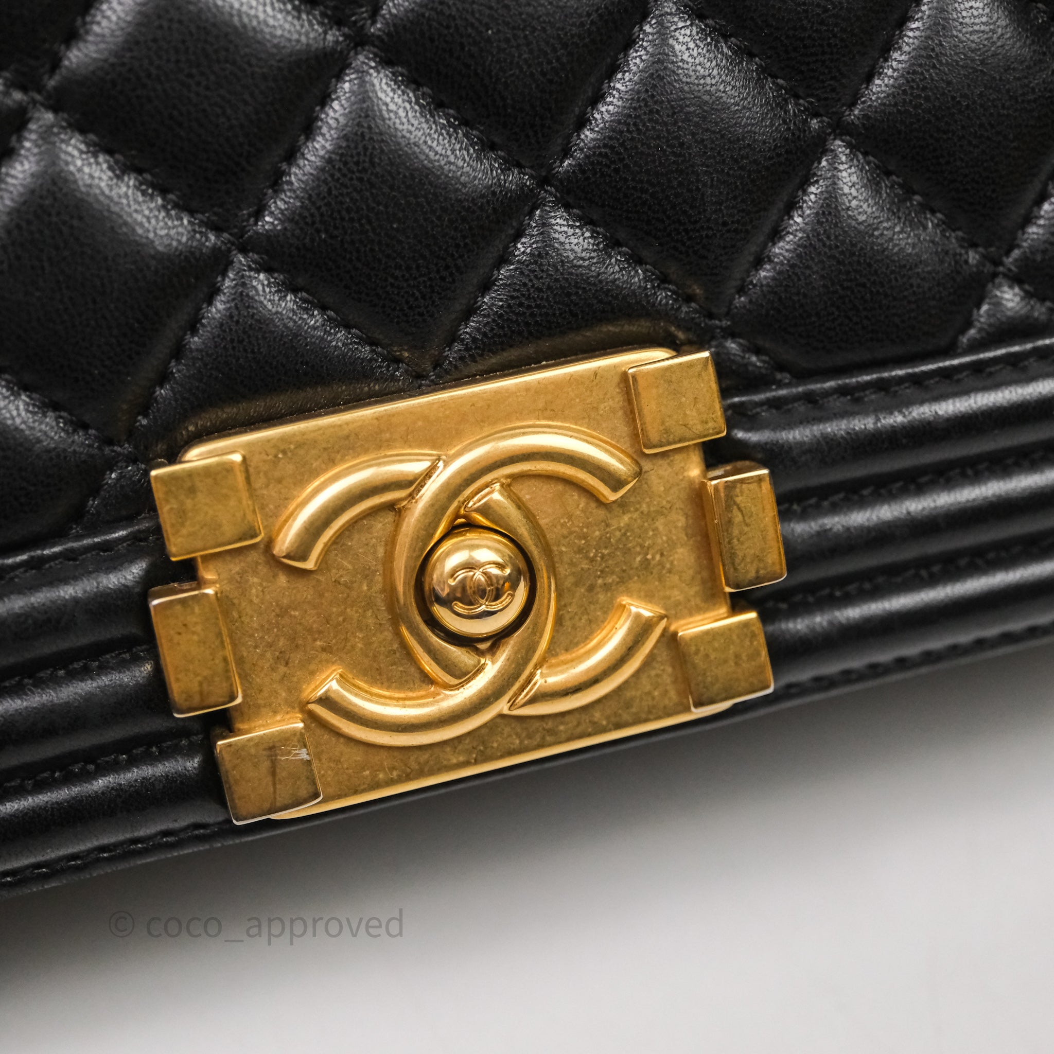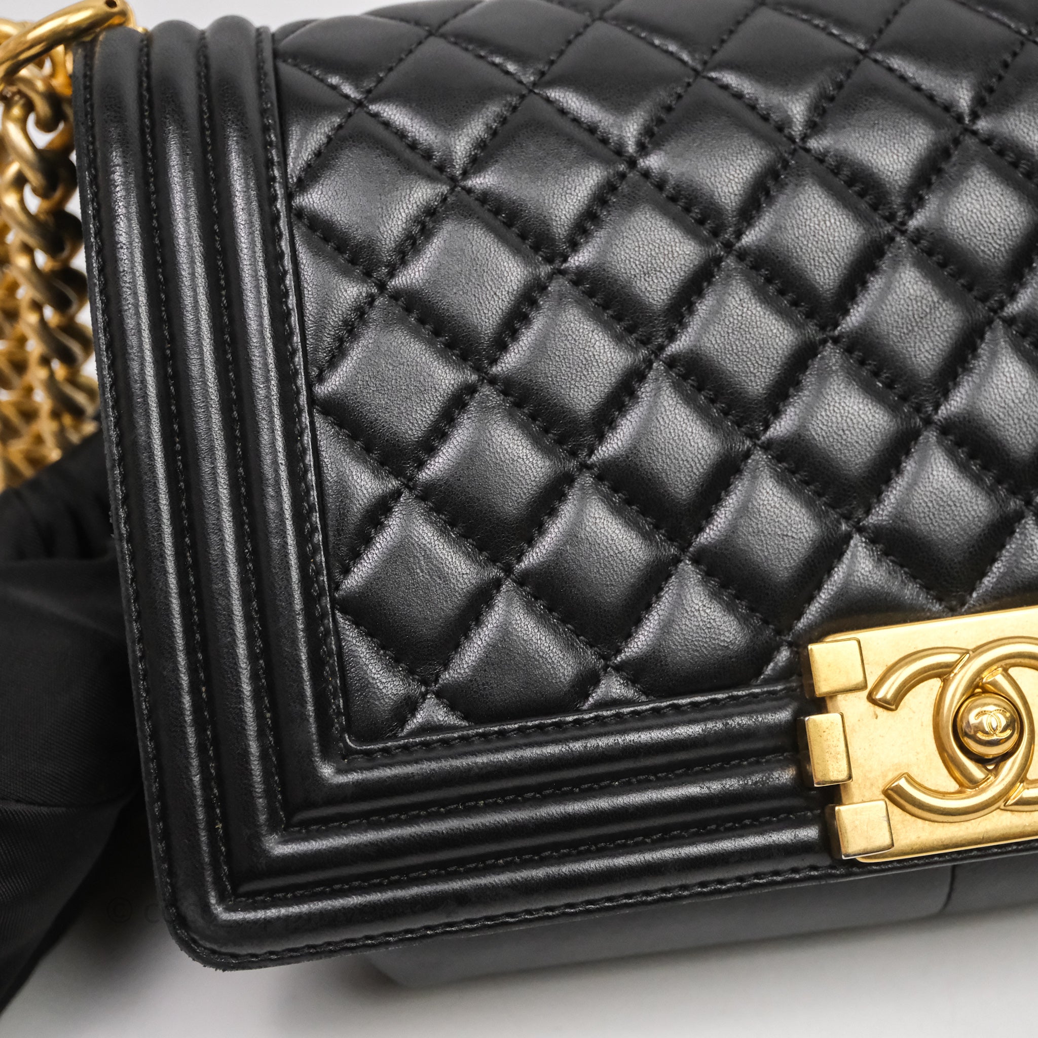 Chanel Medium Boy Quilted Black Lambskin Aged Gold Hardware