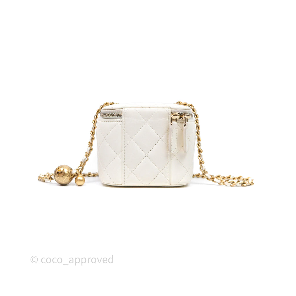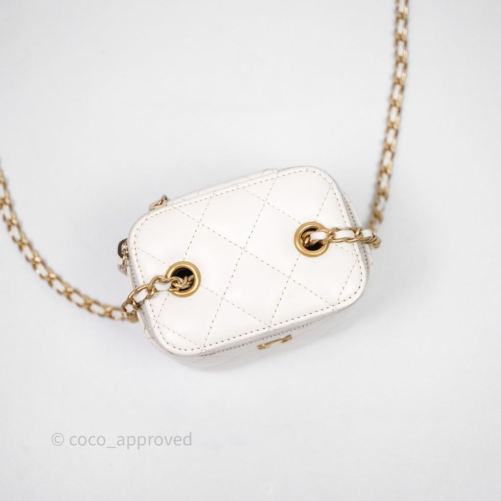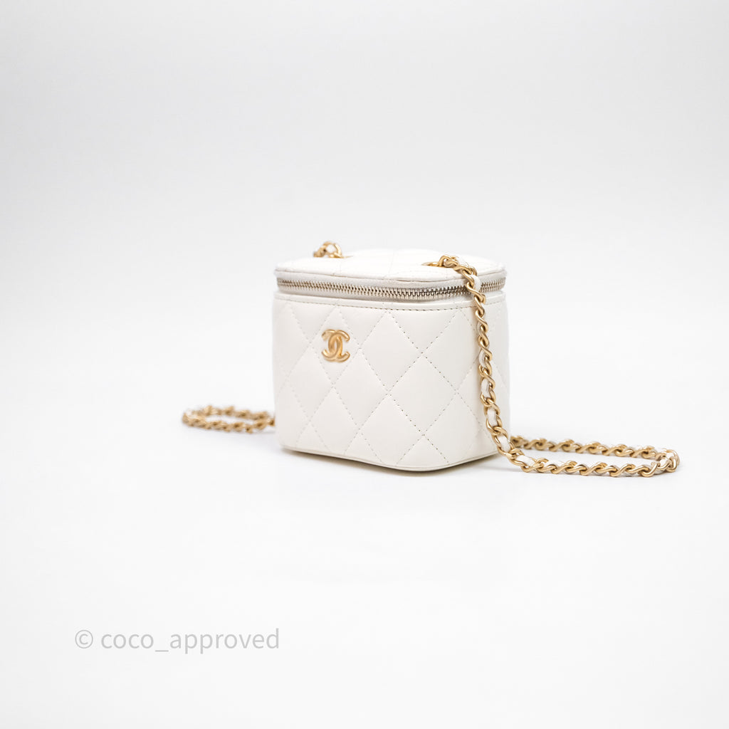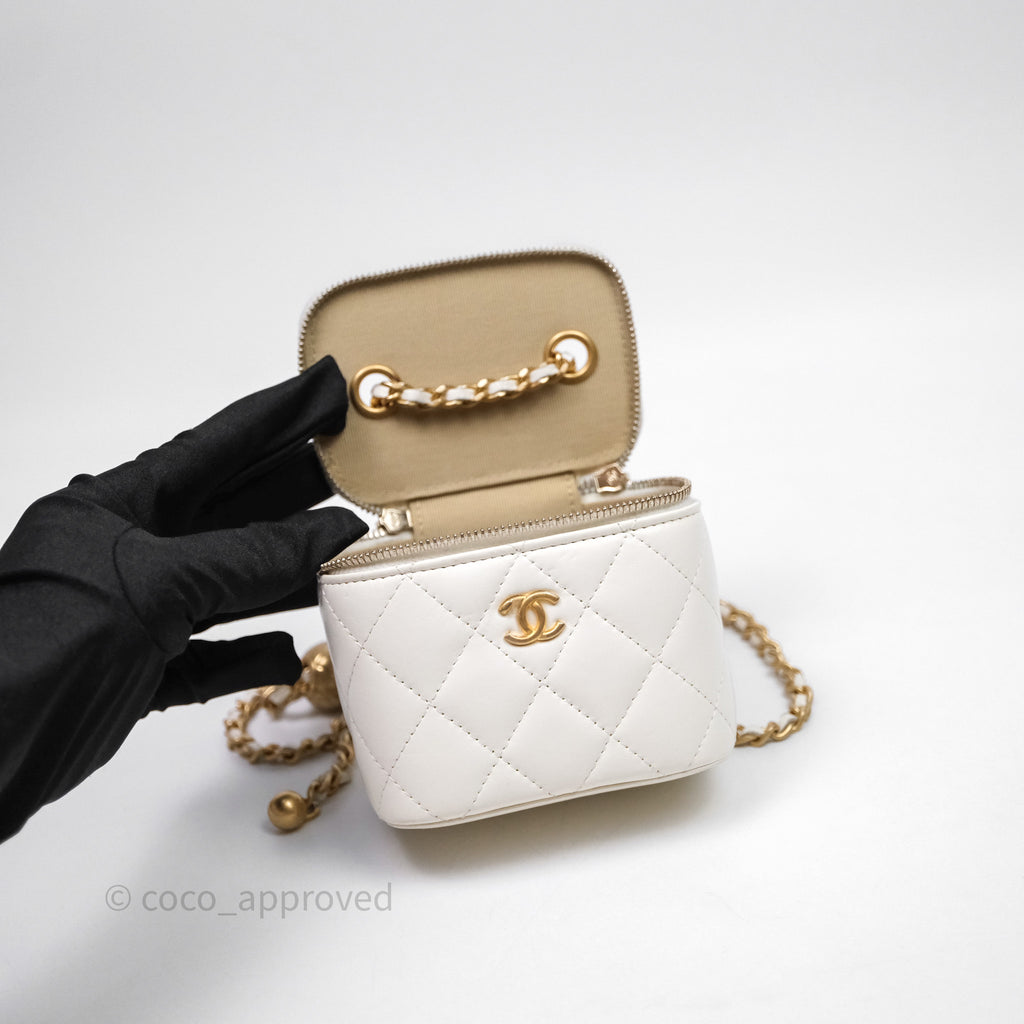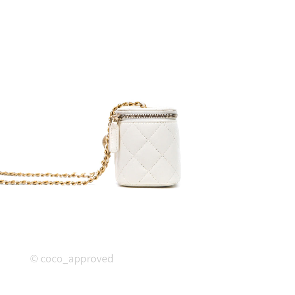 Chanel Mini Pearl Crush Vanity With Chain White Aged Gold Hardware
