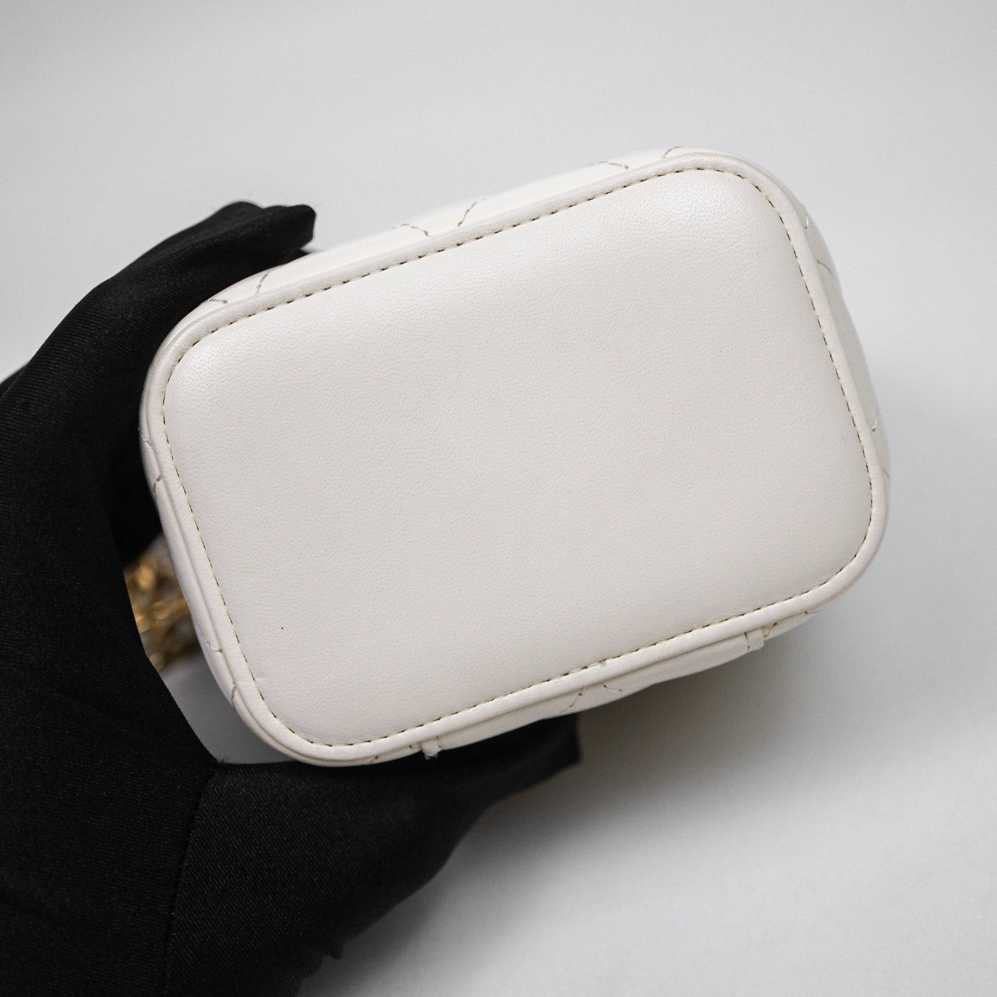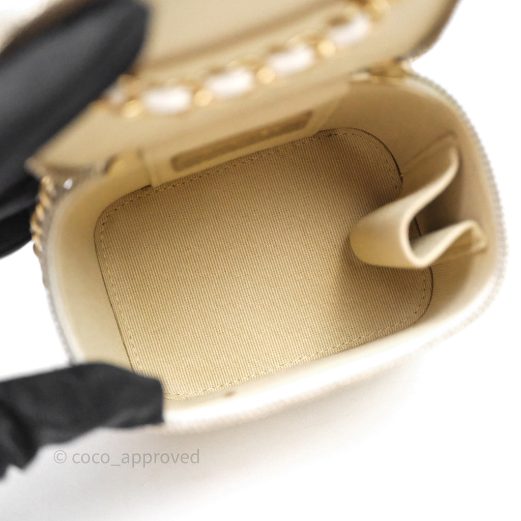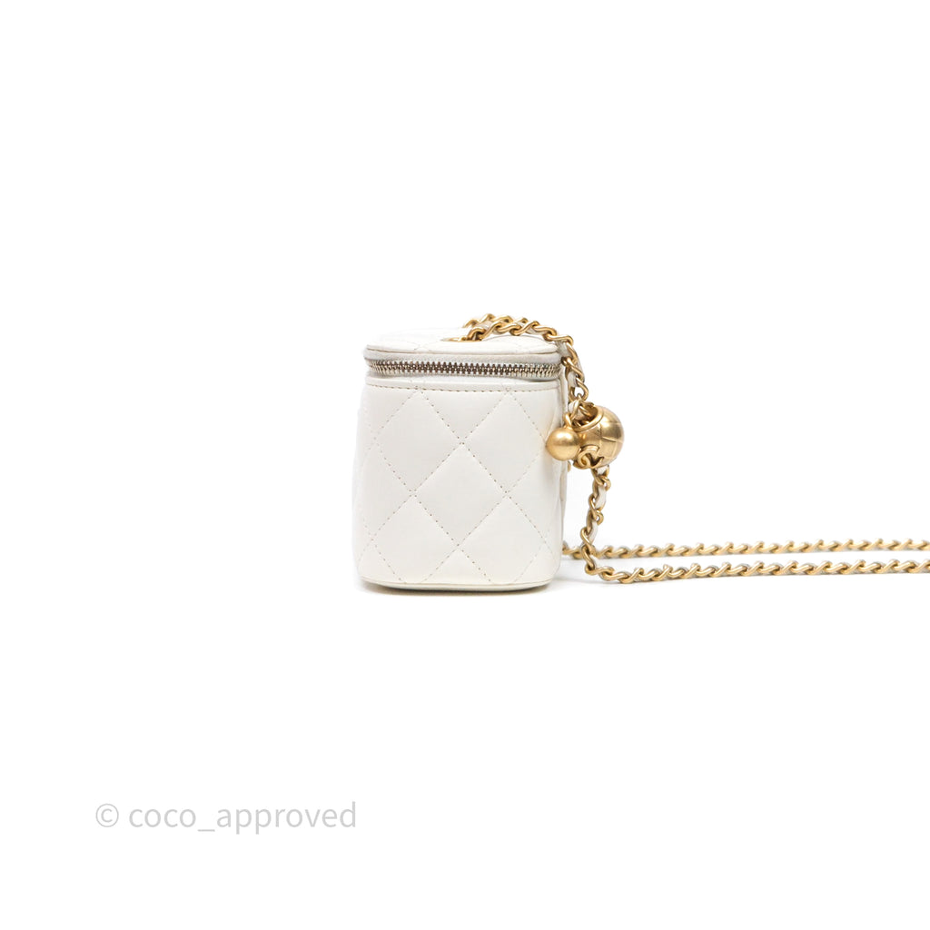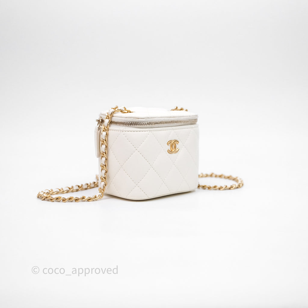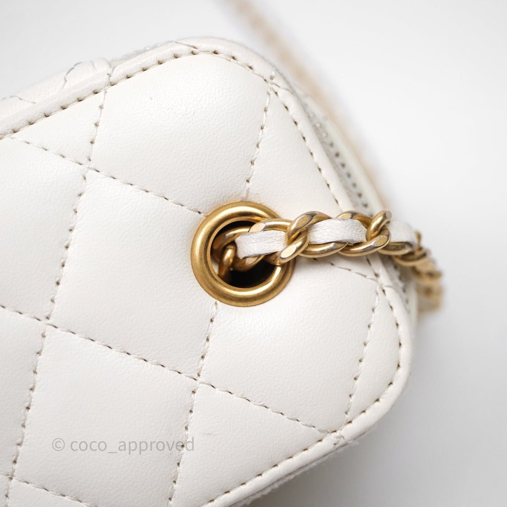 Chanel Mini Pearl Crush Vanity With Chain White Aged Gold Hardware