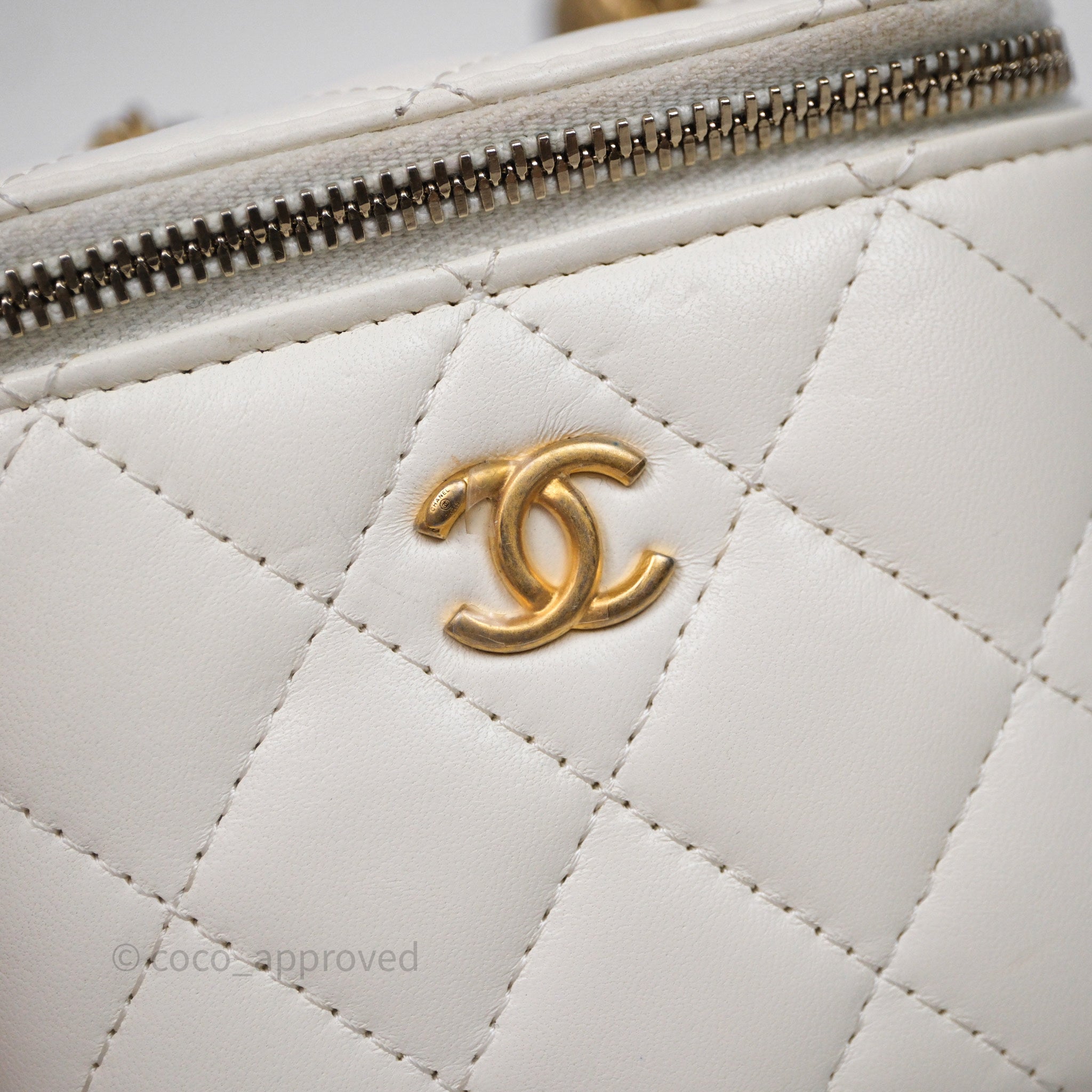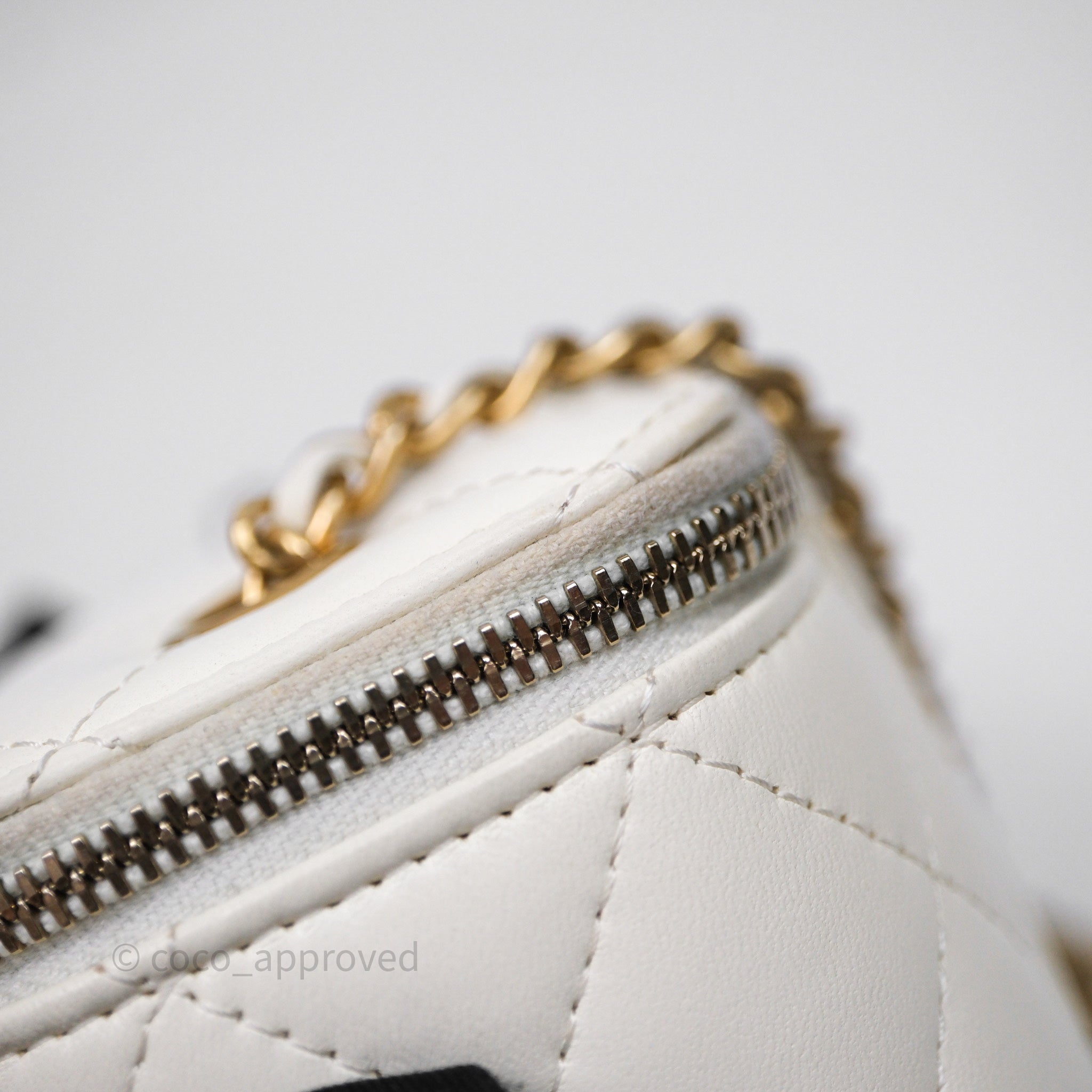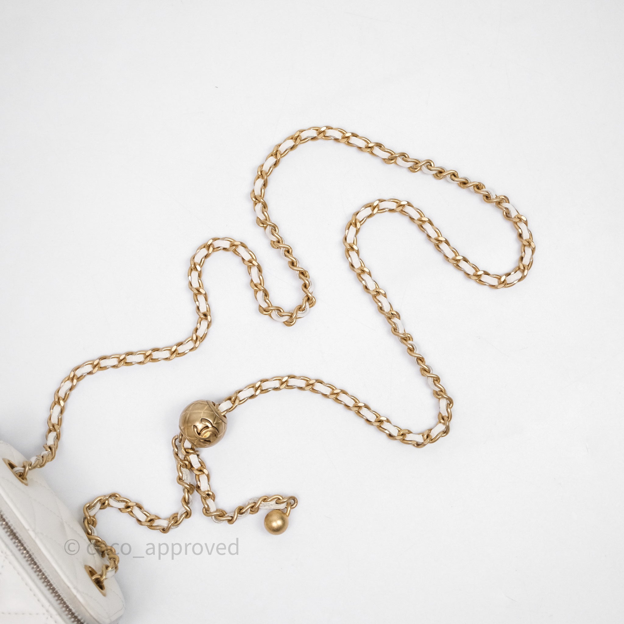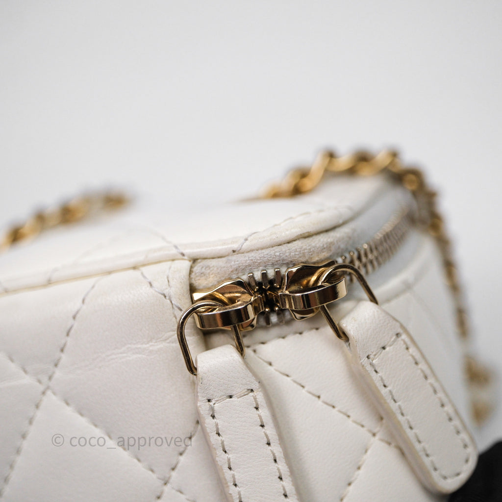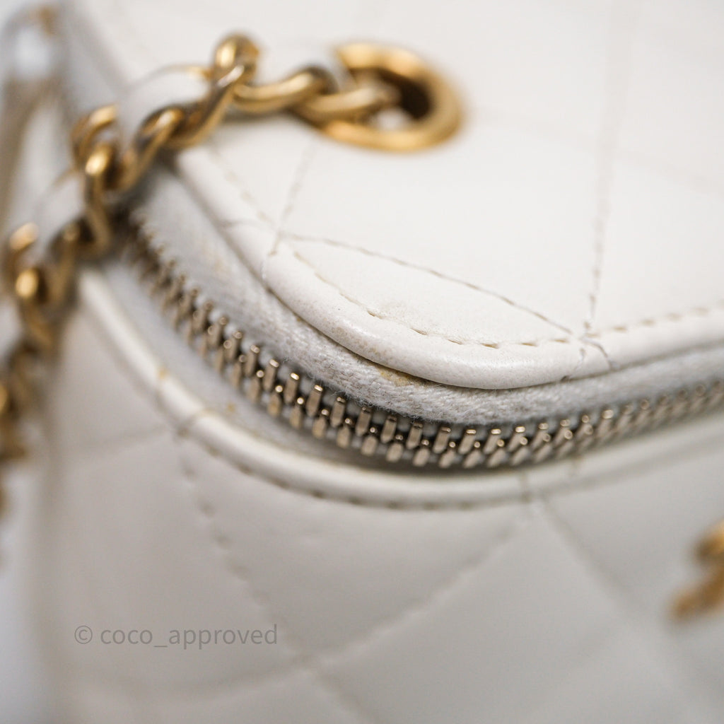 Chanel Mini Pearl Crush Vanity With Chain White Aged Gold Hardware