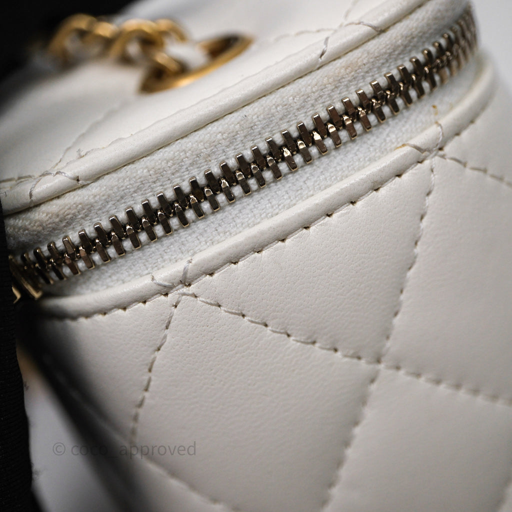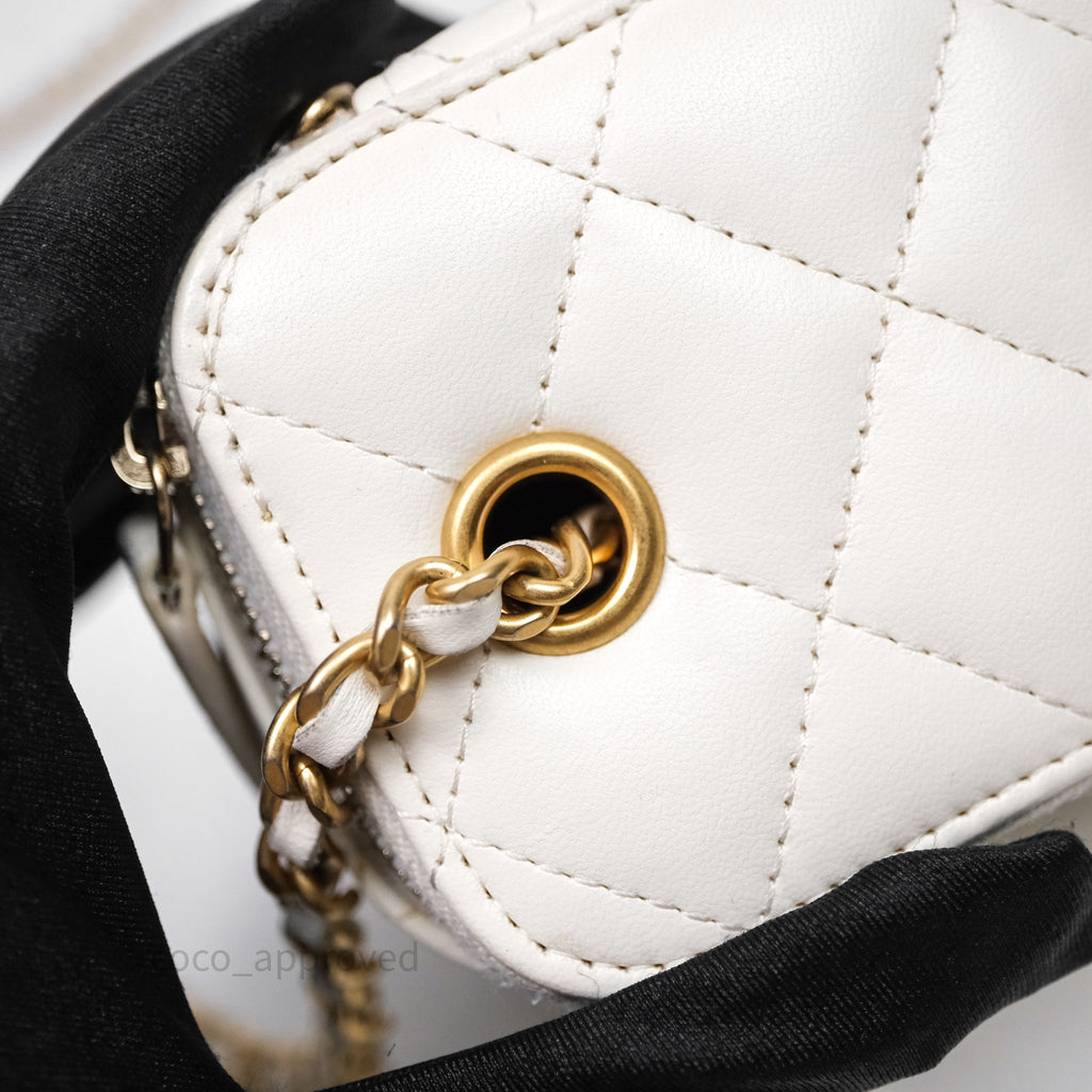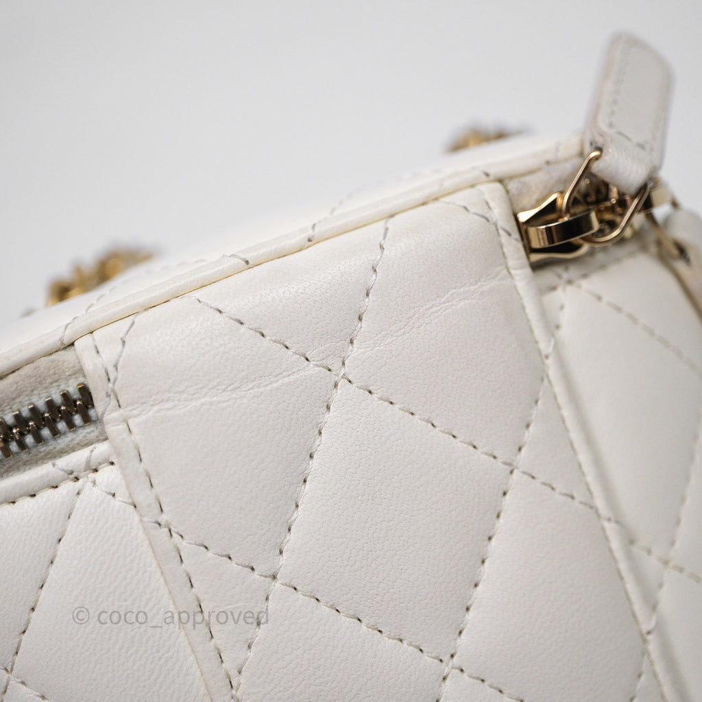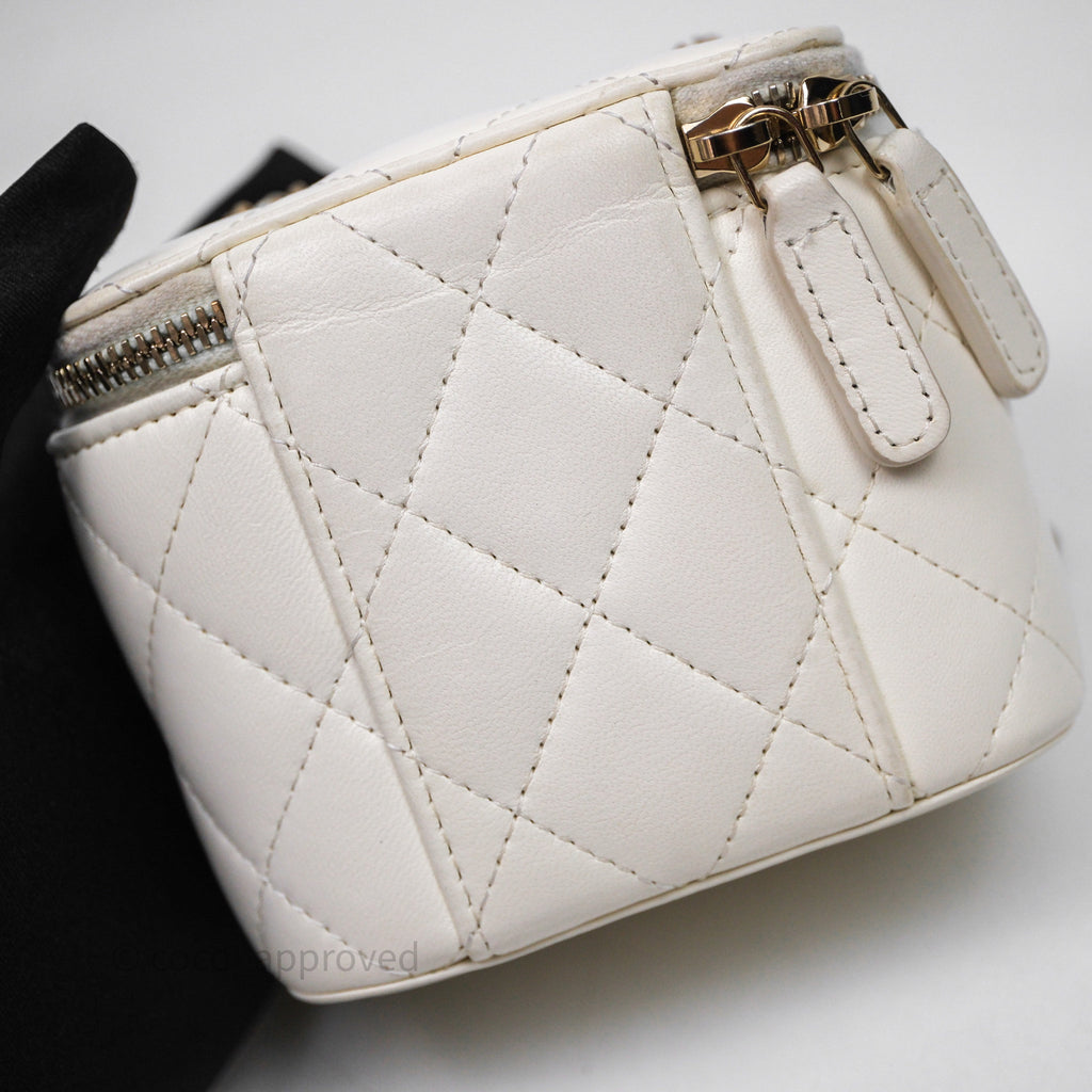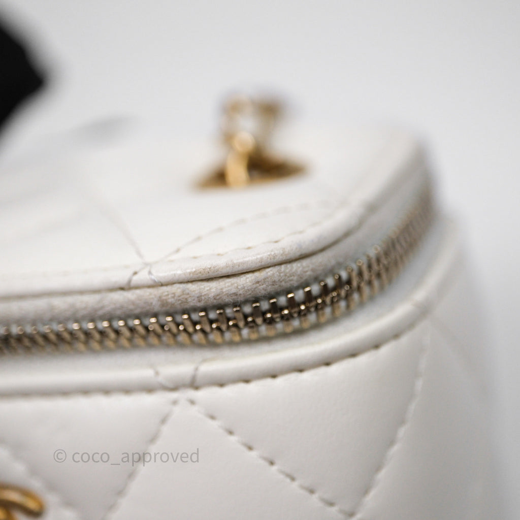 Chanel Mini Pearl Crush Vanity With Chain White Aged Gold Hardware