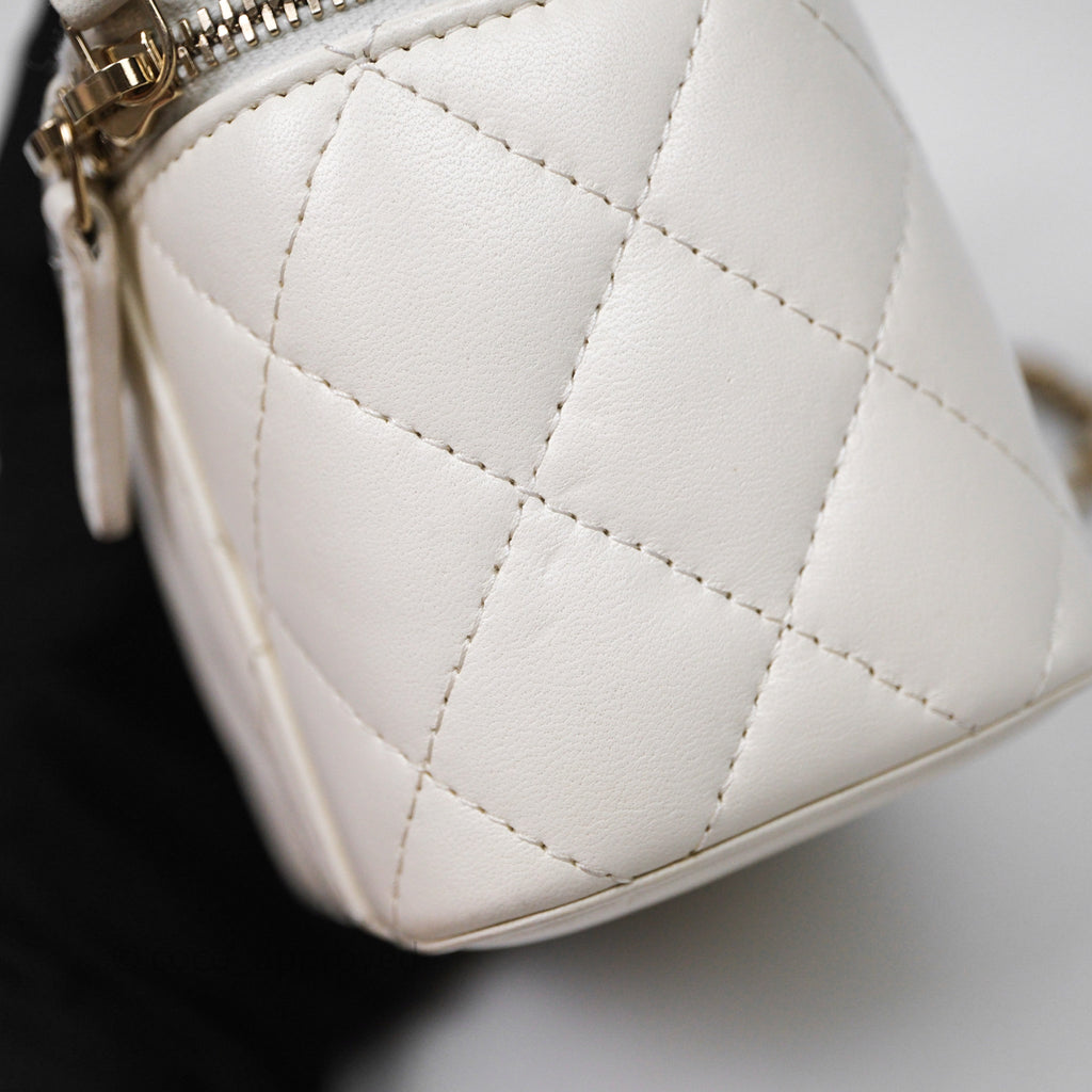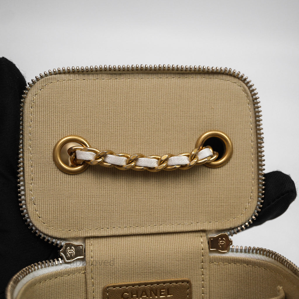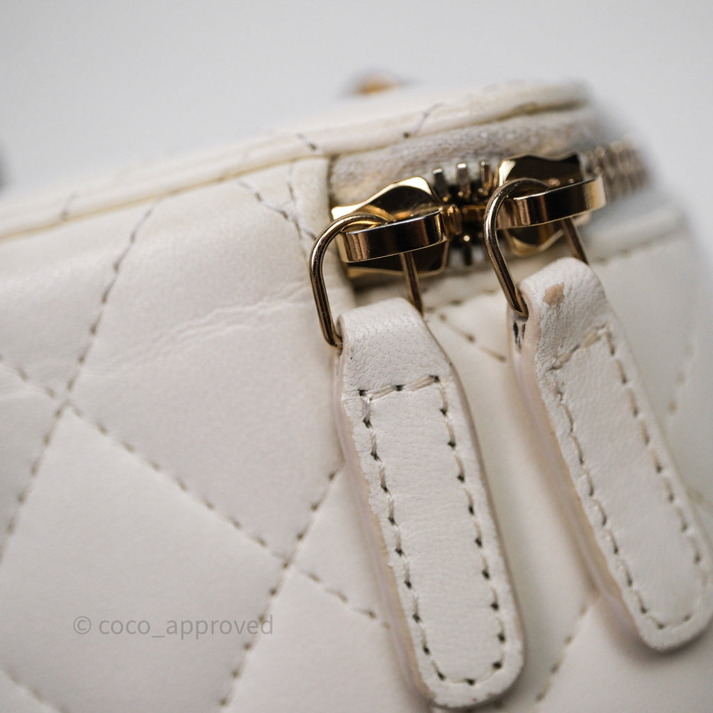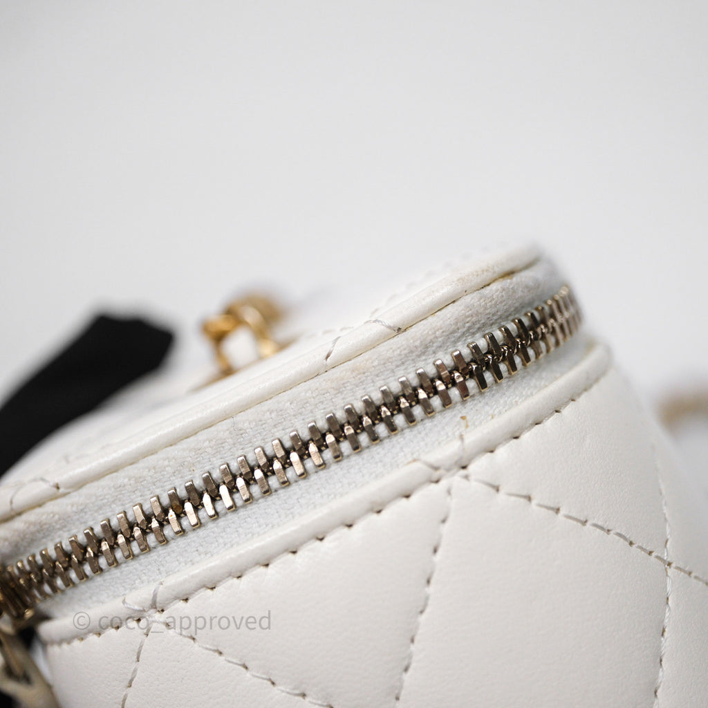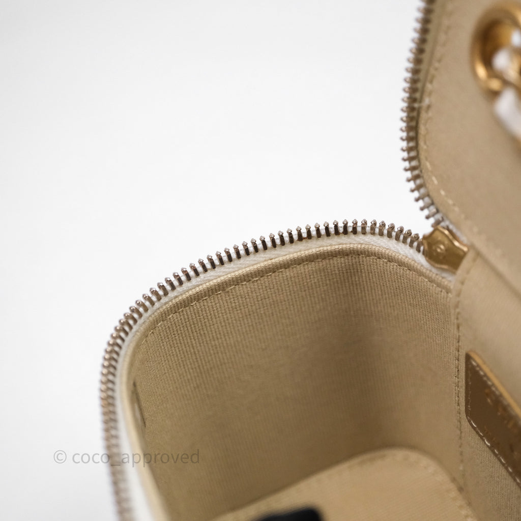 Chanel Mini Pearl Crush Vanity With Chain White Aged Gold Hardware
