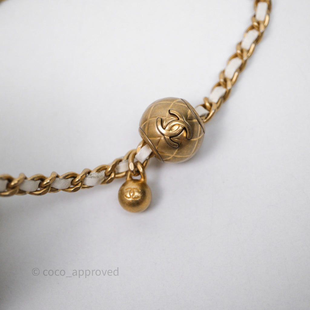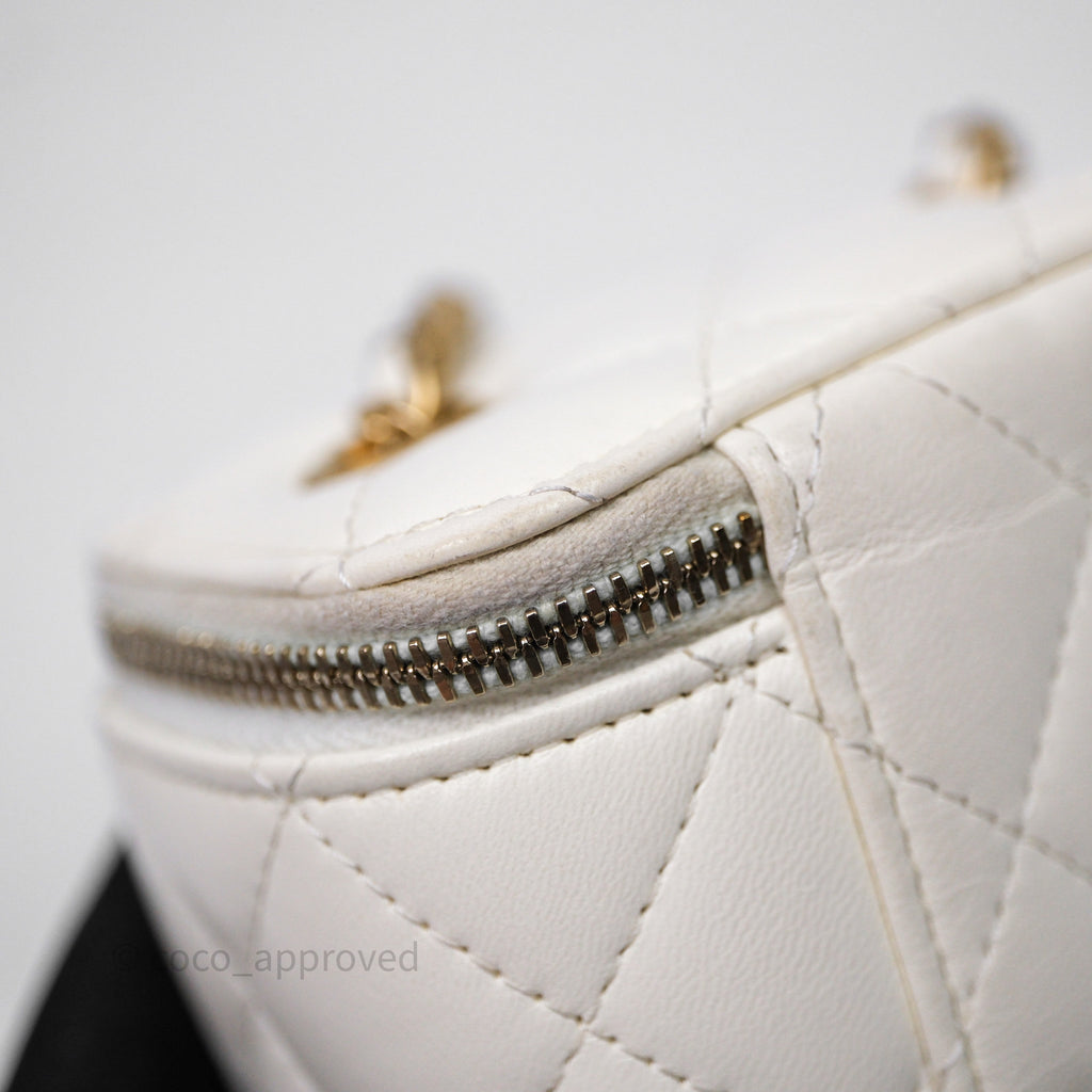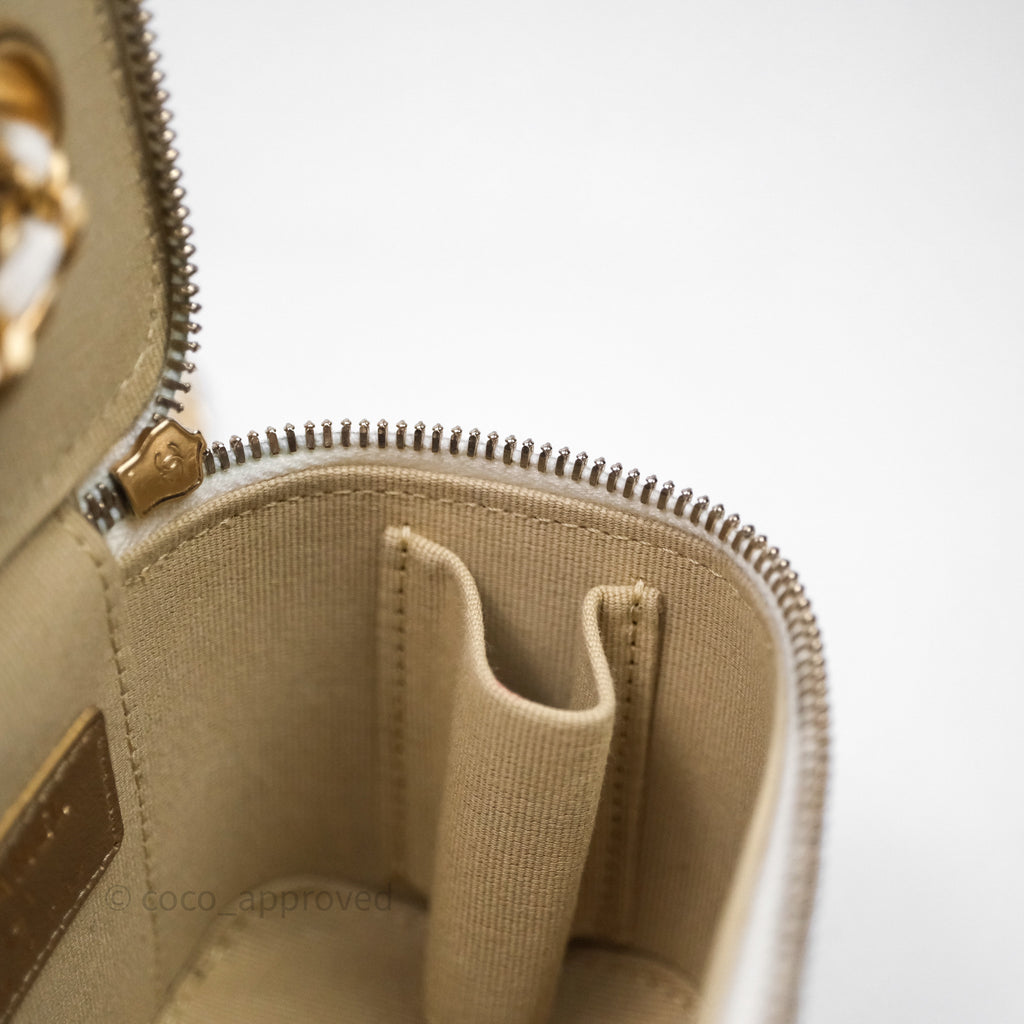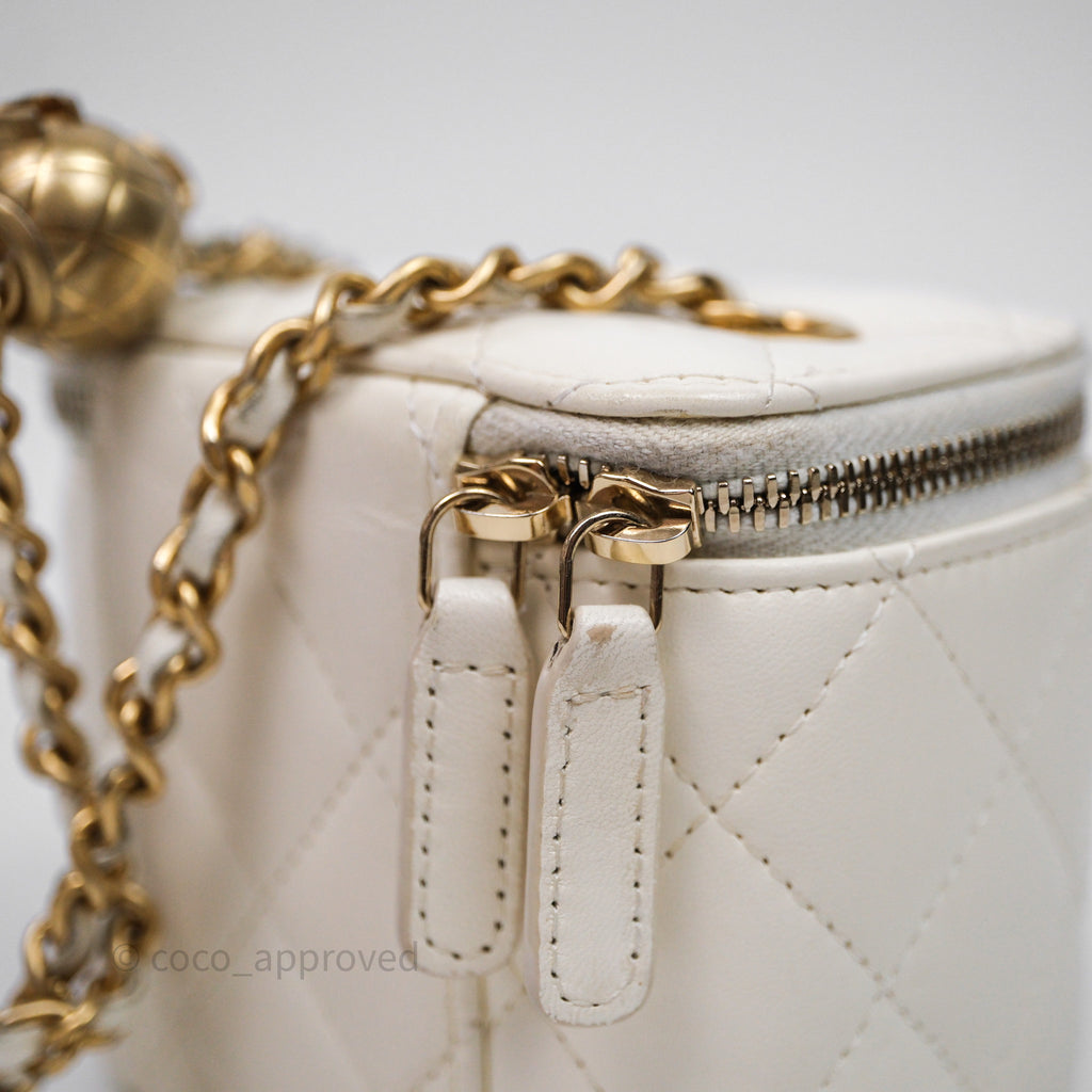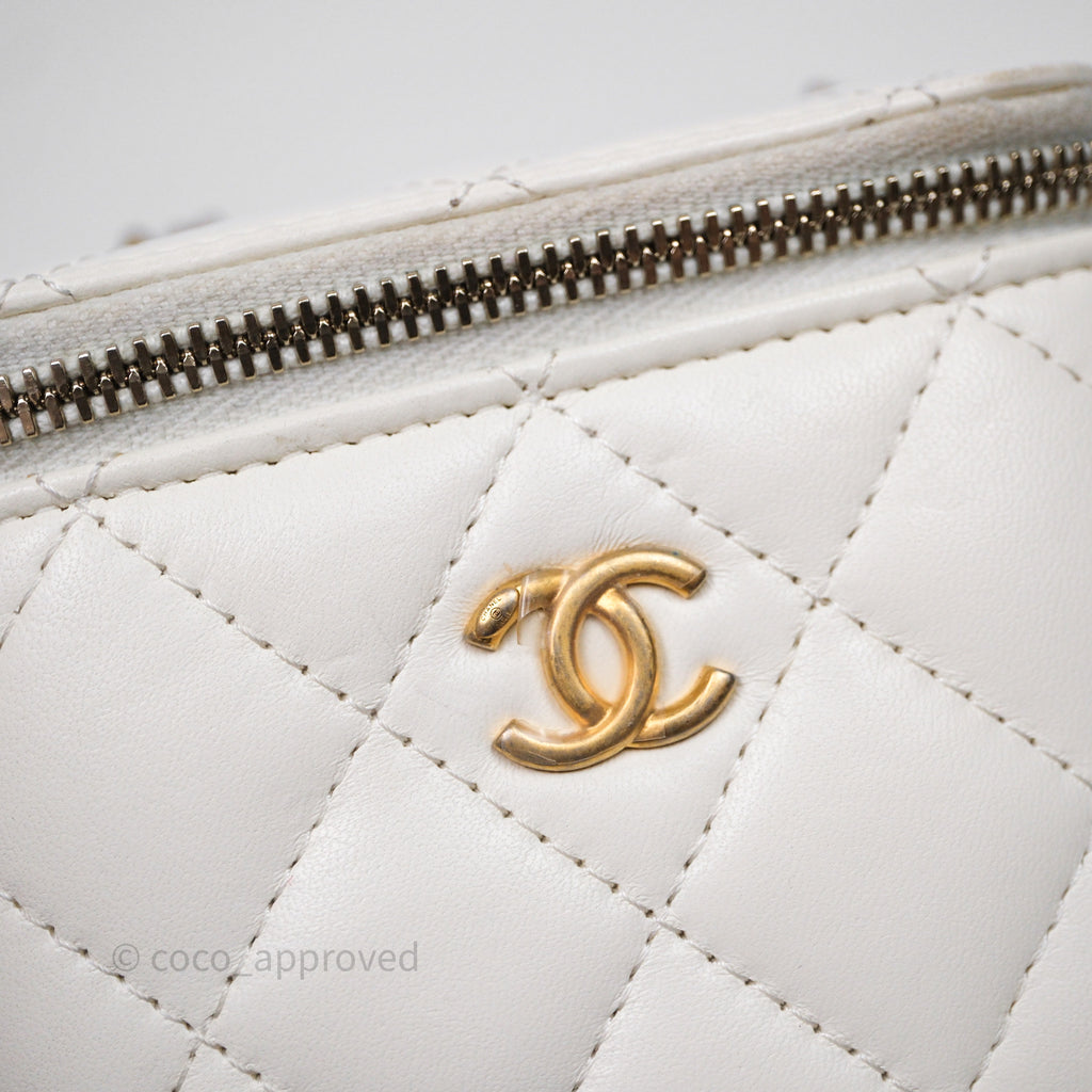 Chanel Mini Pearl Crush Vanity With Chain White Aged Gold Hardware