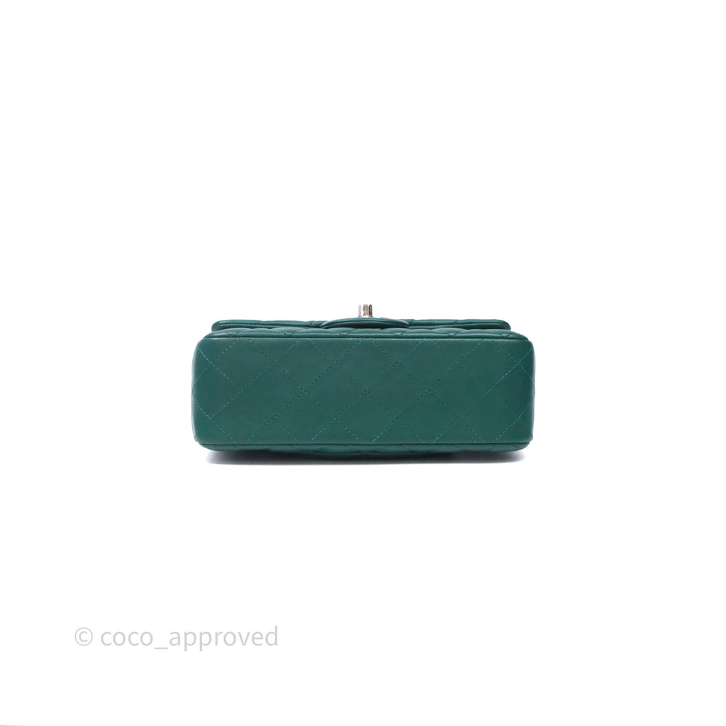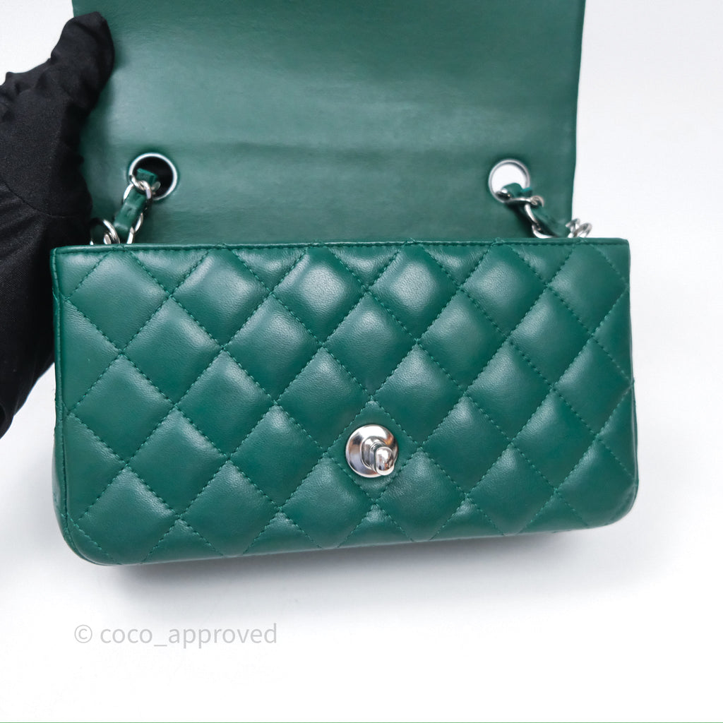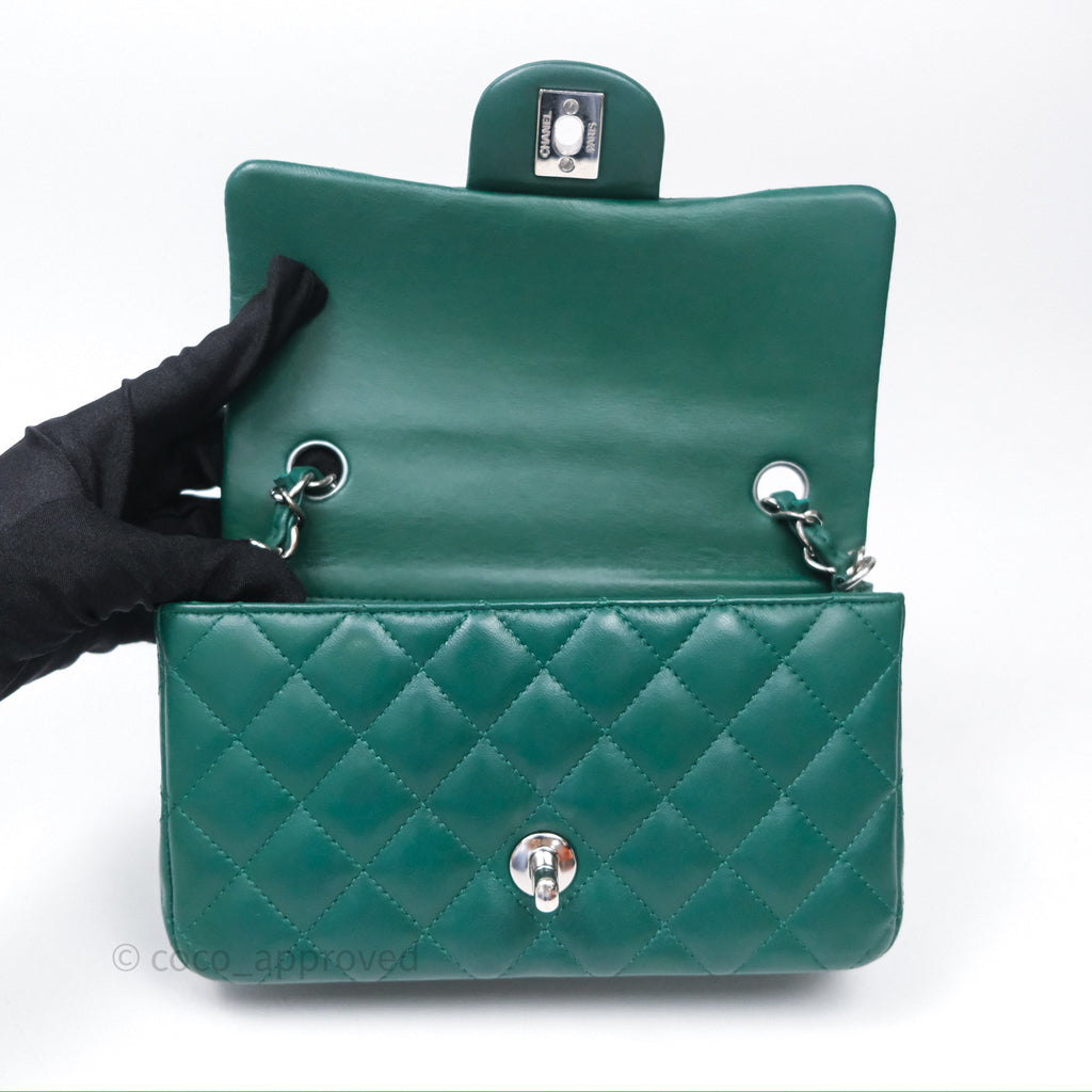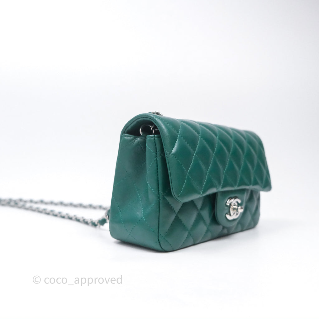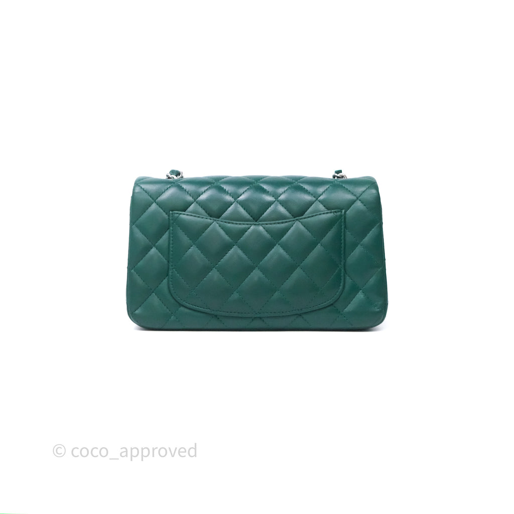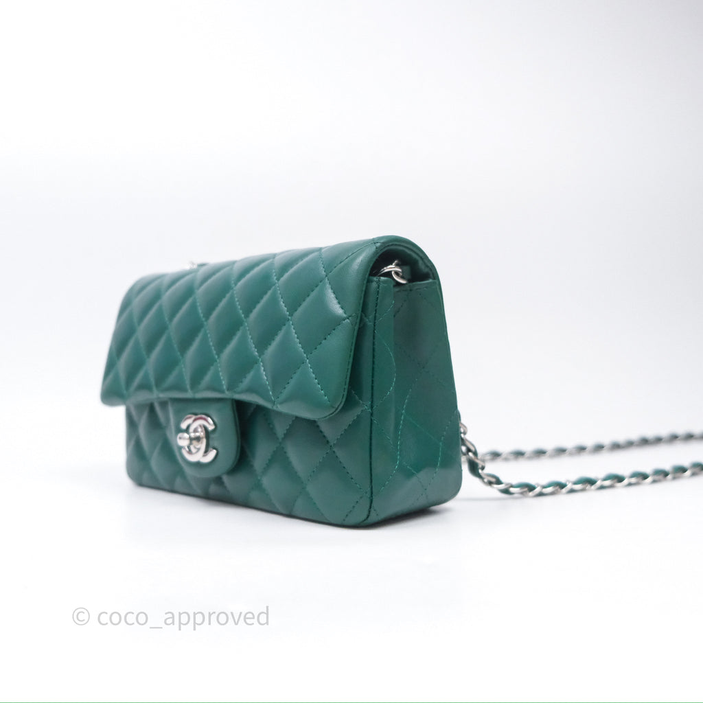 Chanel Mini Rectangular Quilted Lambskin Flap Bag Green Silver Hardware