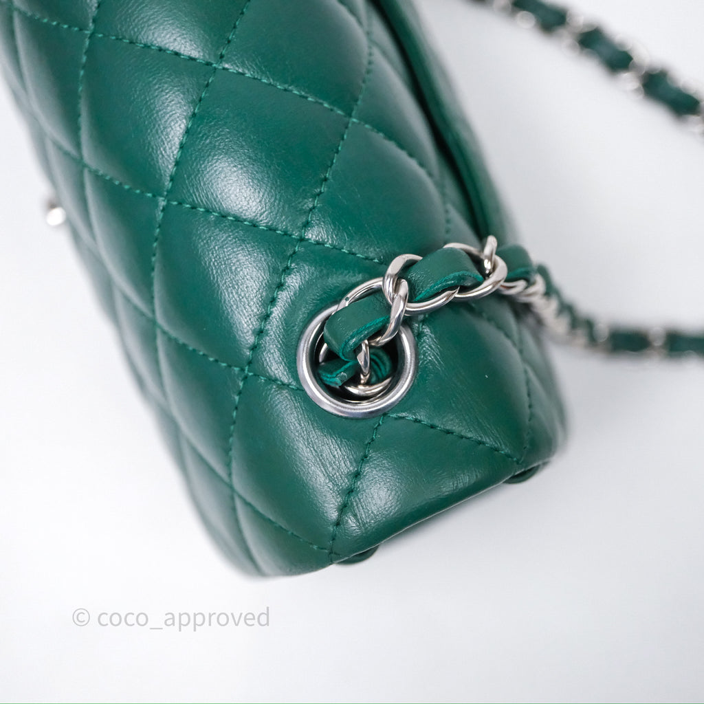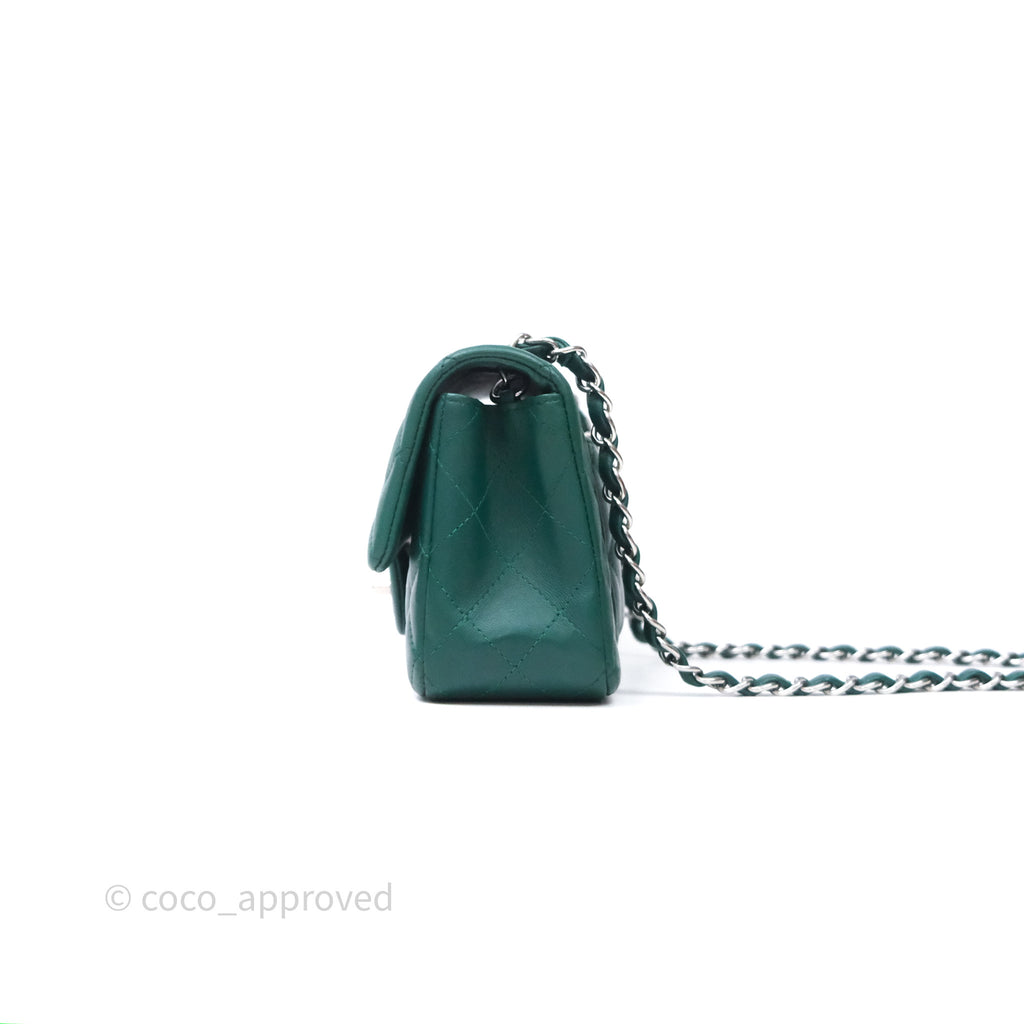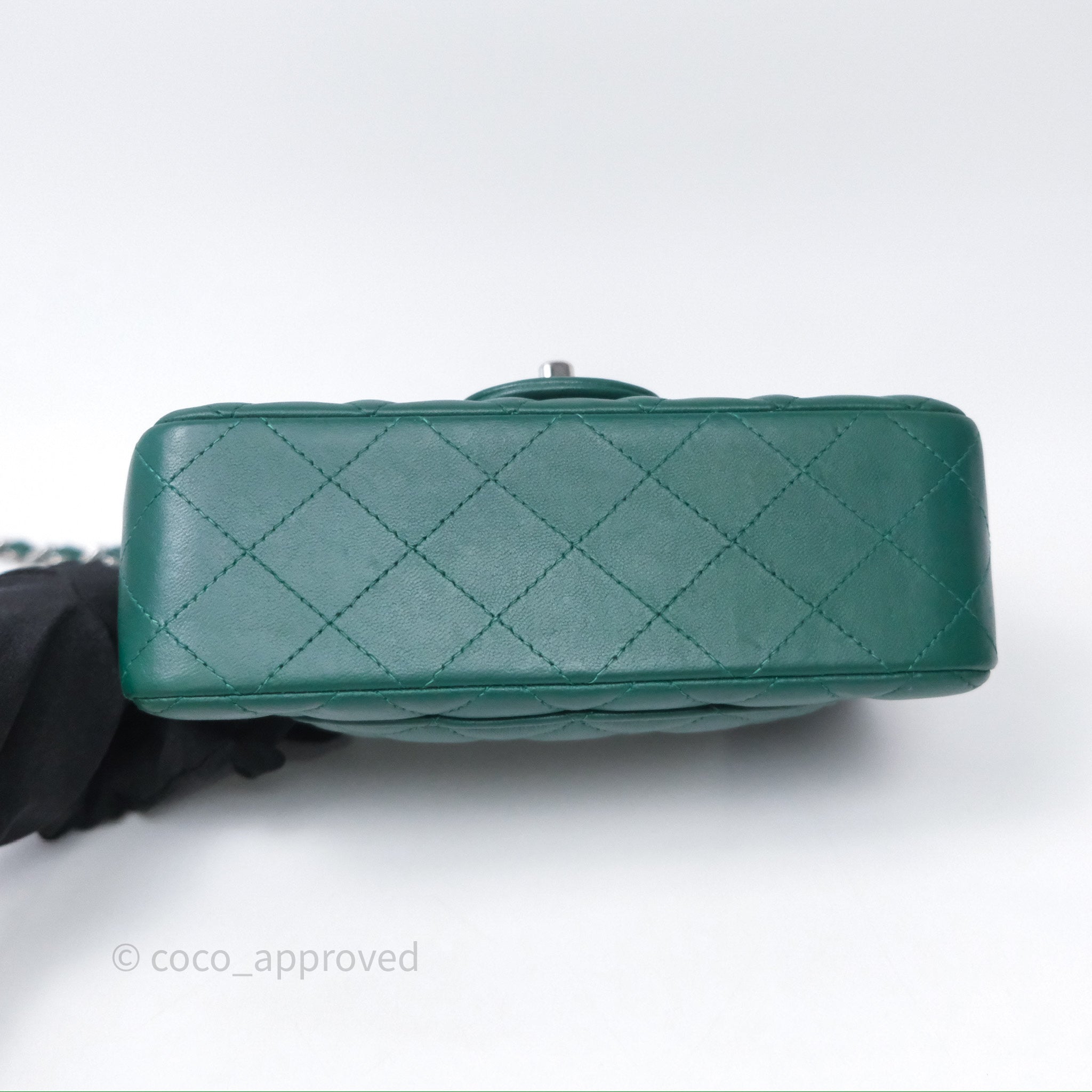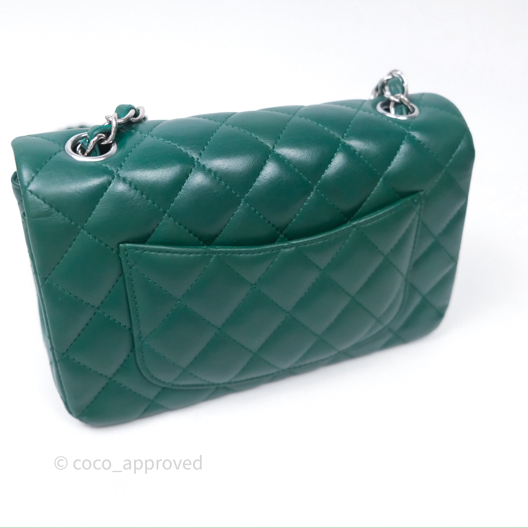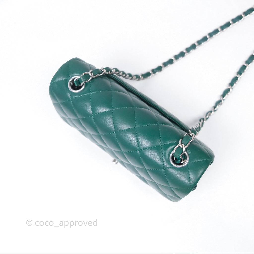 Chanel Mini Rectangular Quilted Lambskin Flap Bag Green Silver Hardware