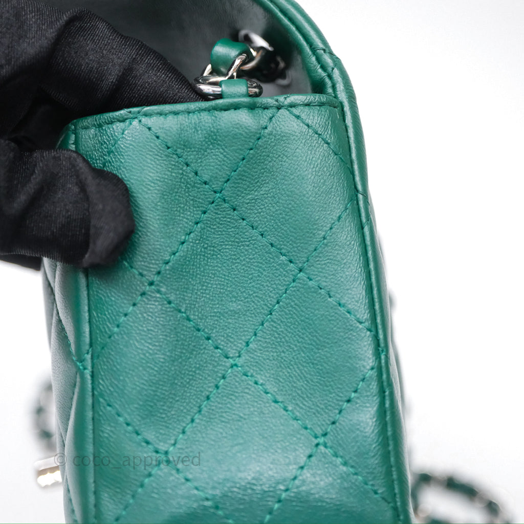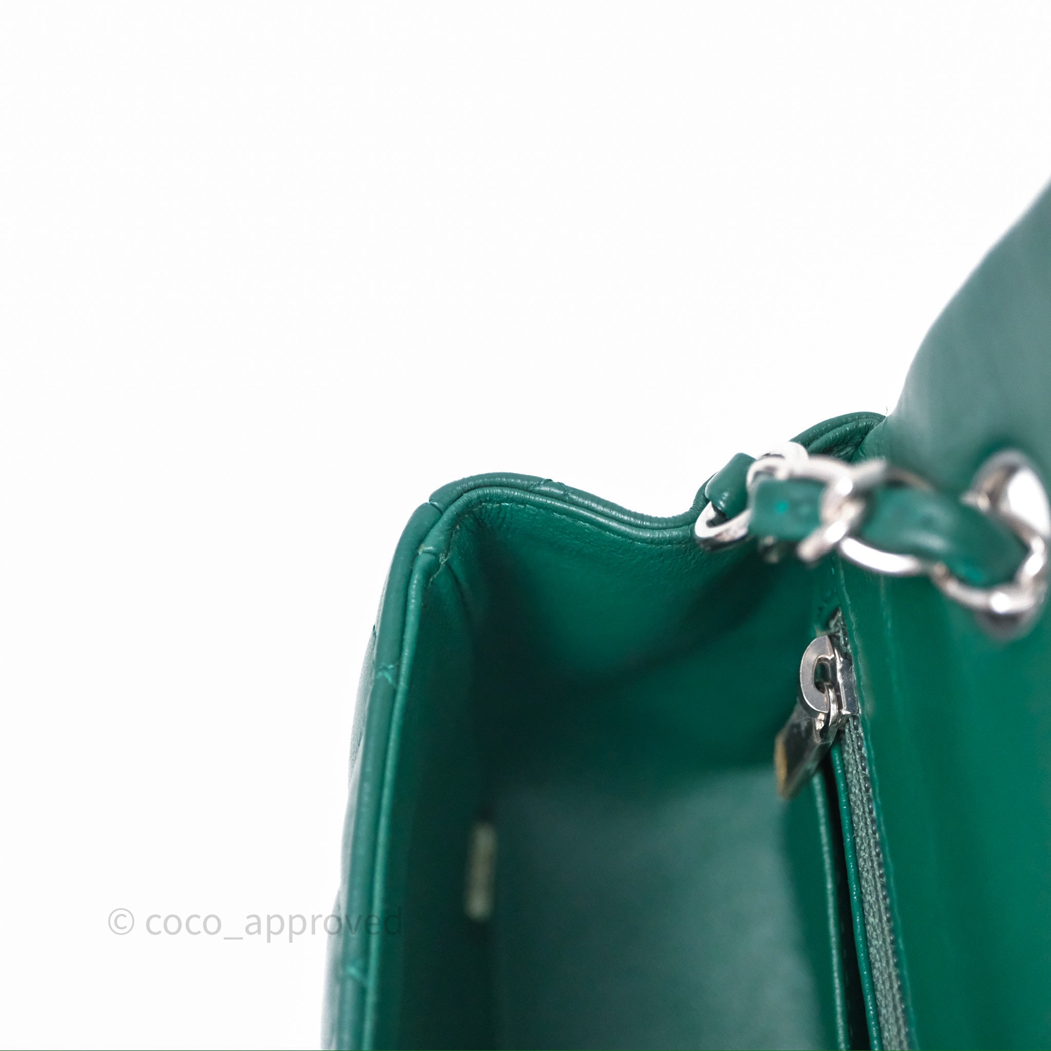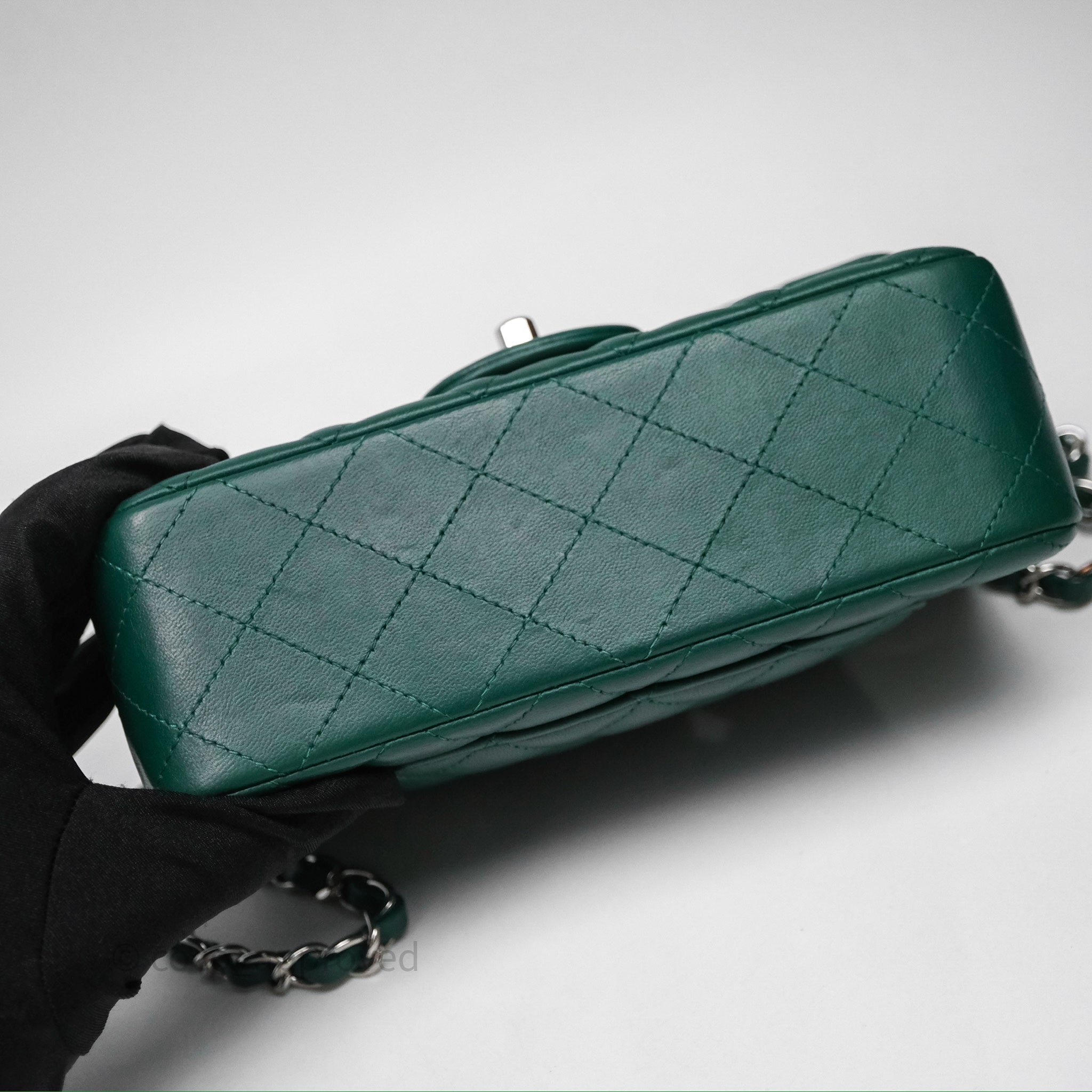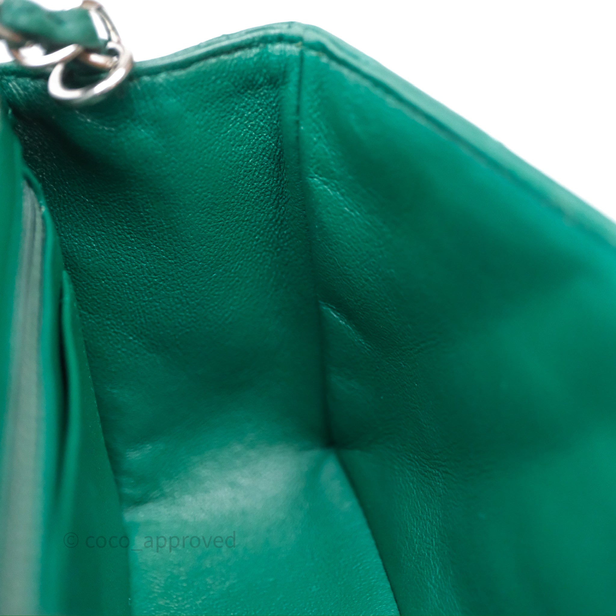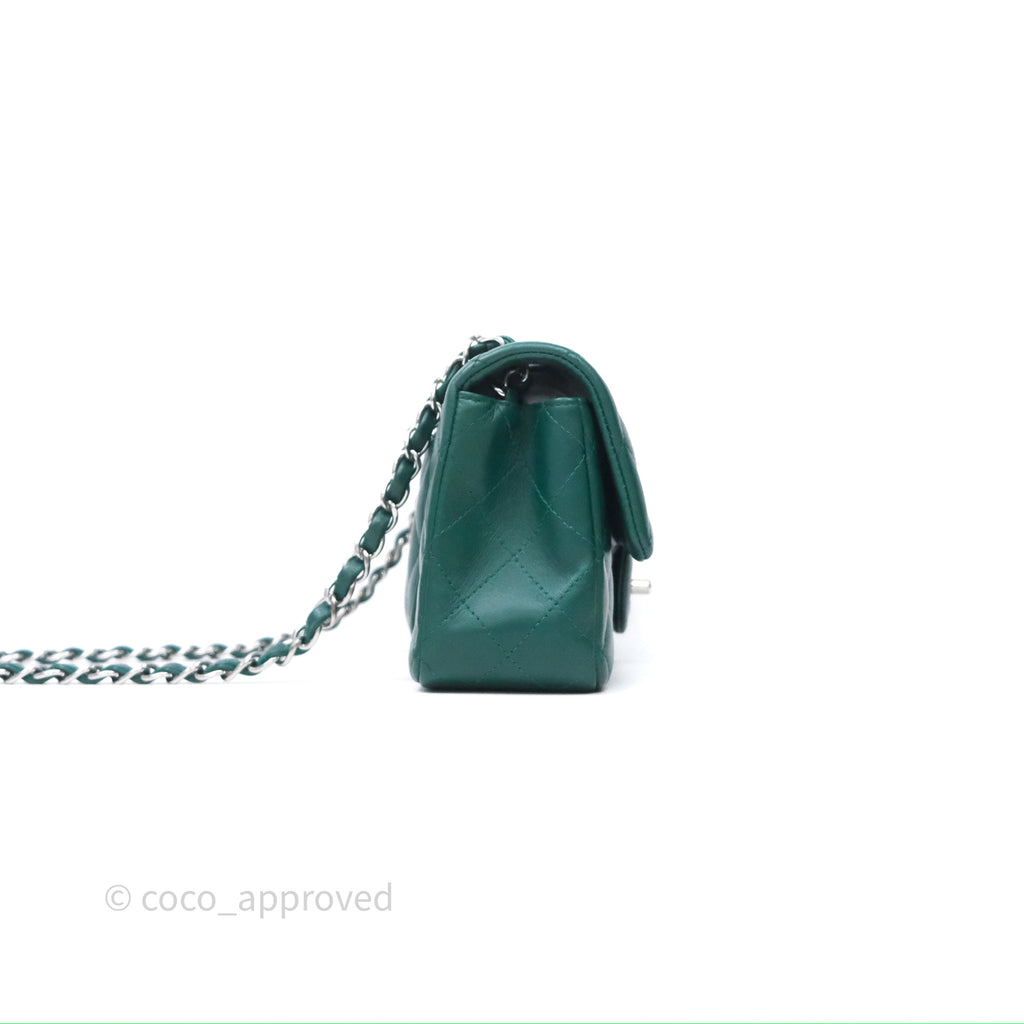 Chanel Mini Rectangular Quilted Lambskin Flap Bag Green Silver Hardware