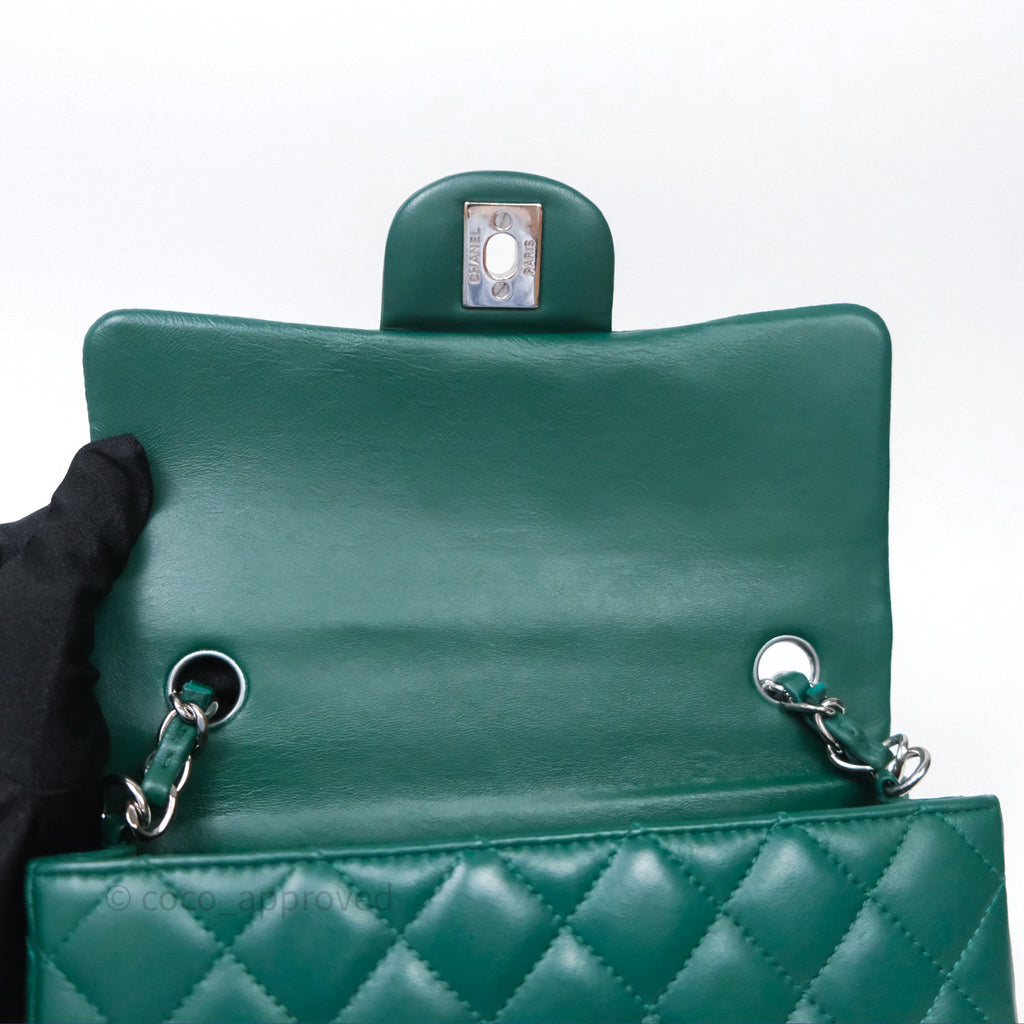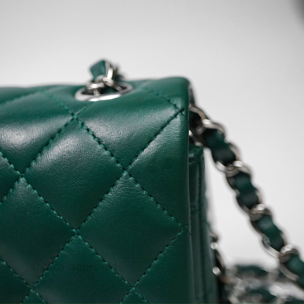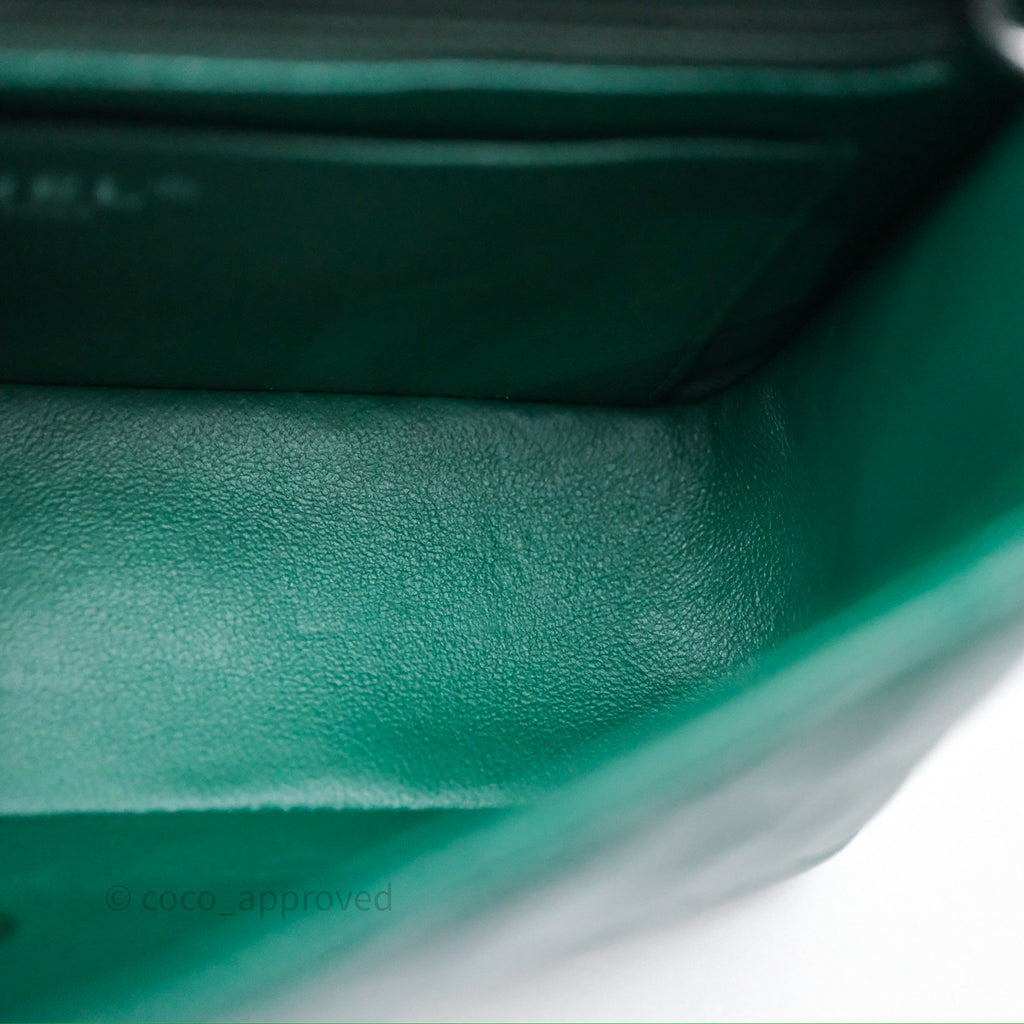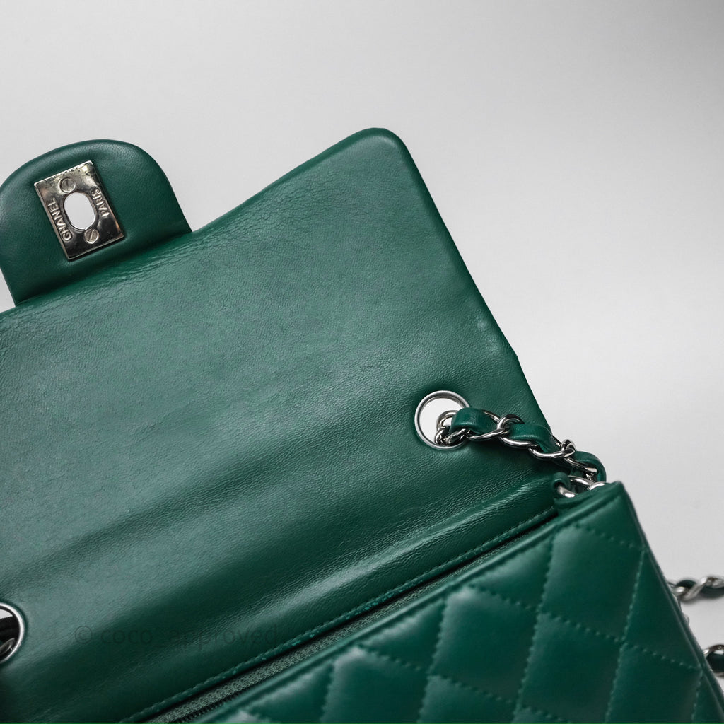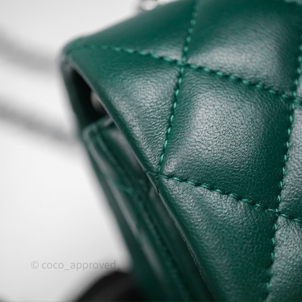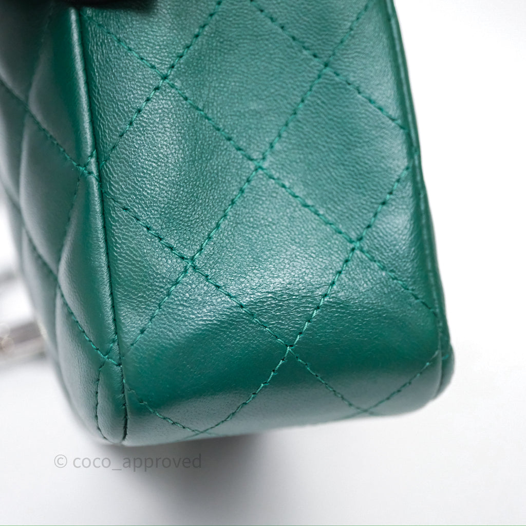 Chanel Mini Rectangular Quilted Lambskin Flap Bag Green Silver Hardware