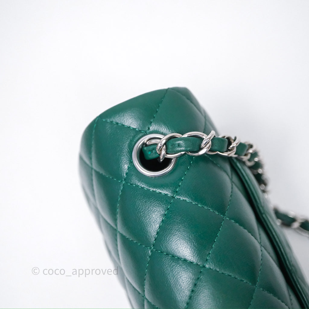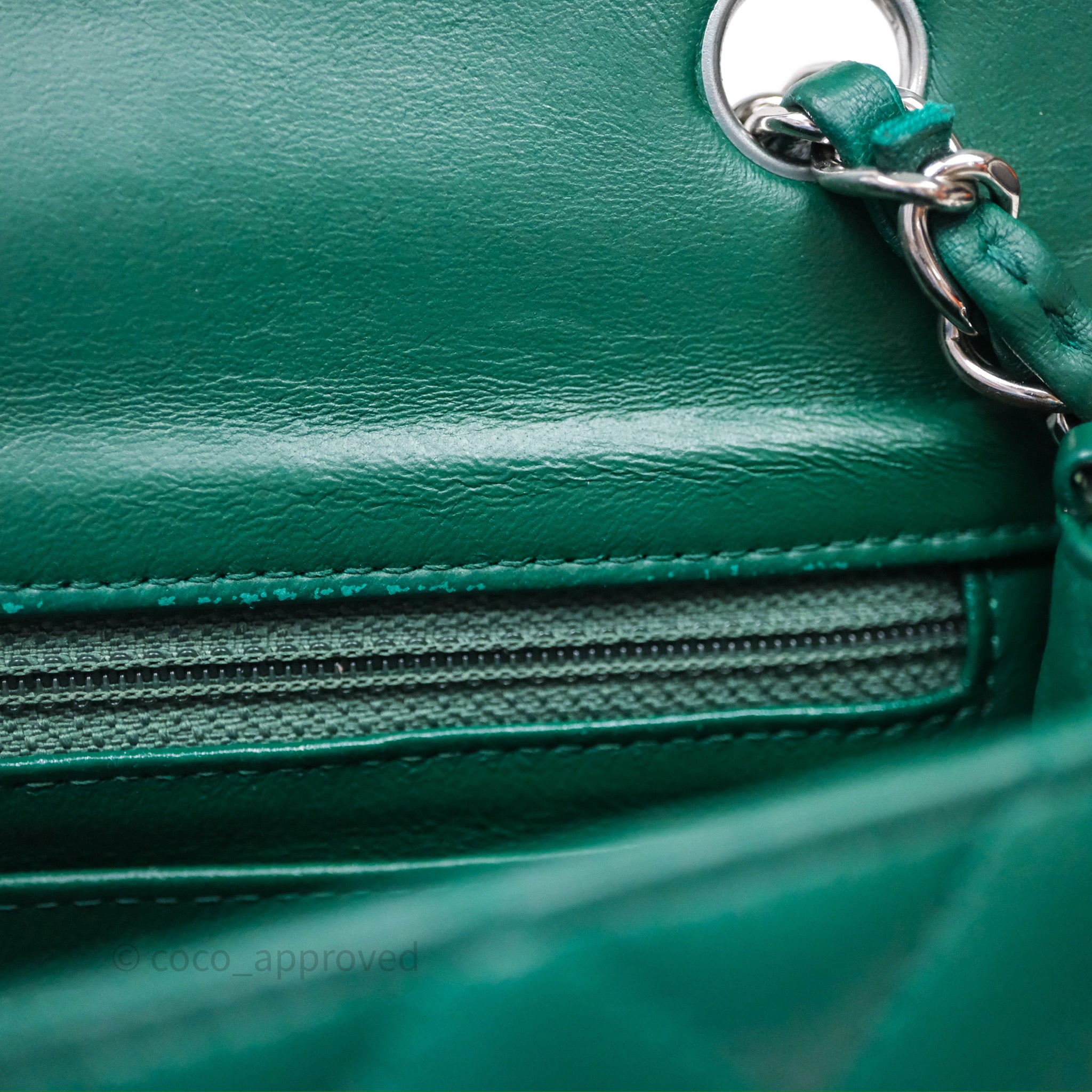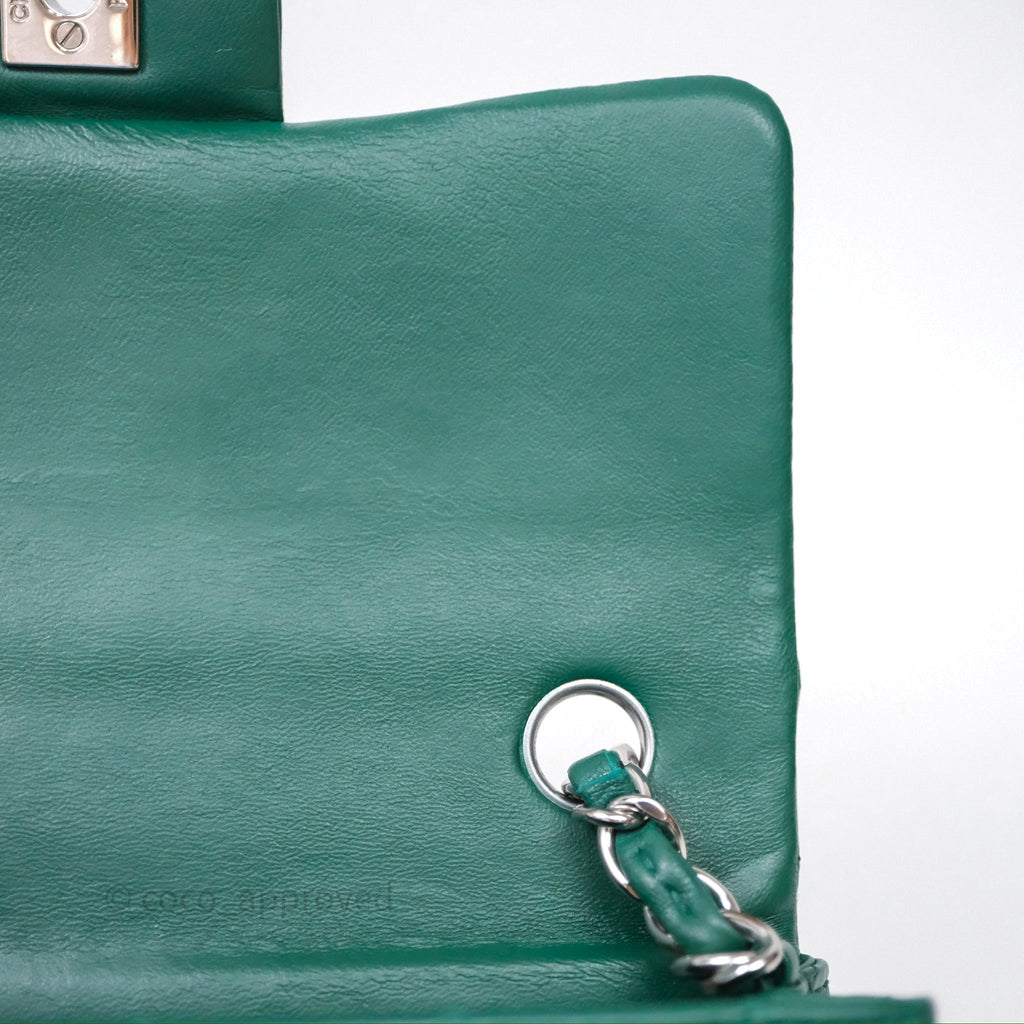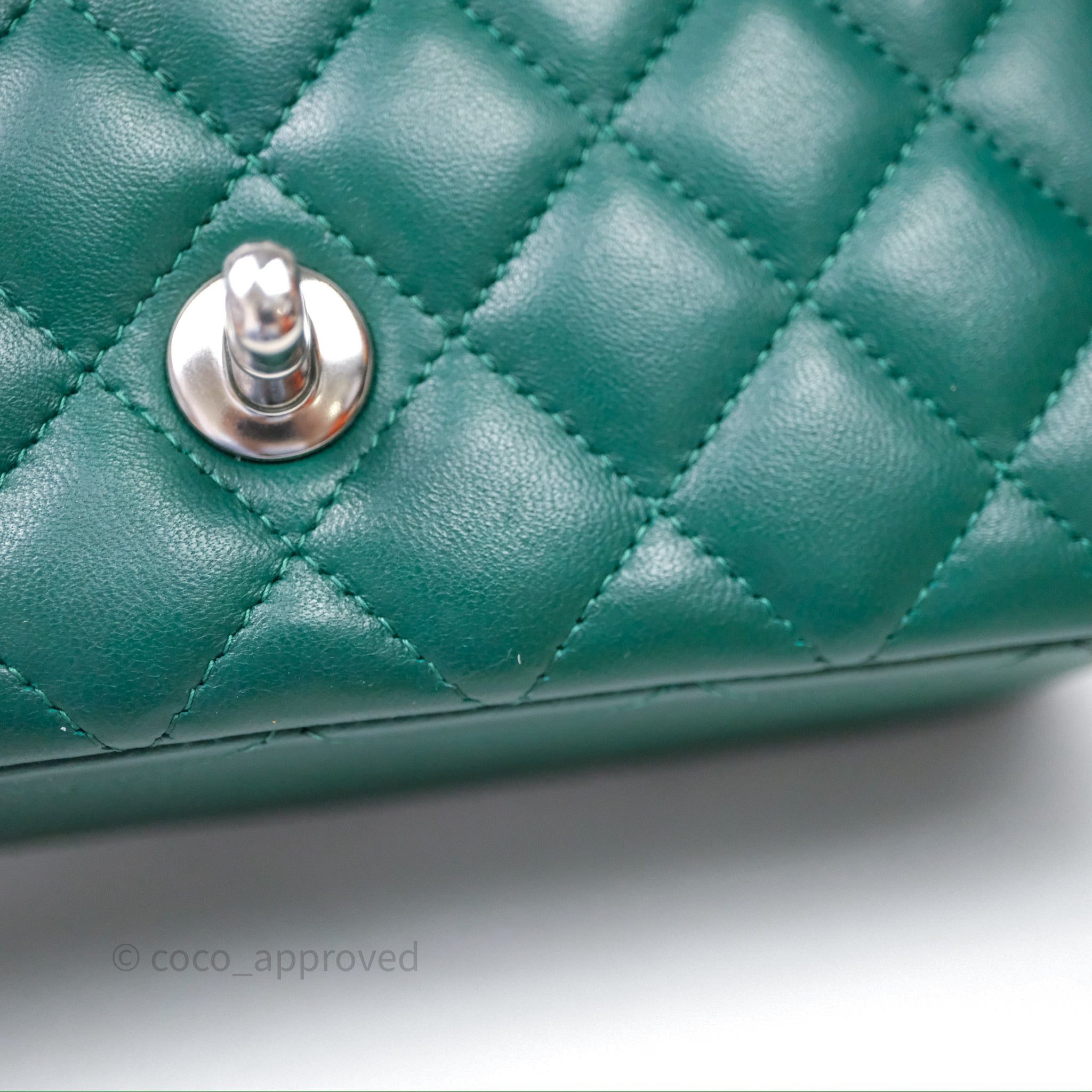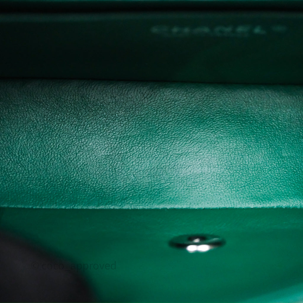 Chanel Mini Rectangular Quilted Lambskin Flap Bag Green Silver Hardware