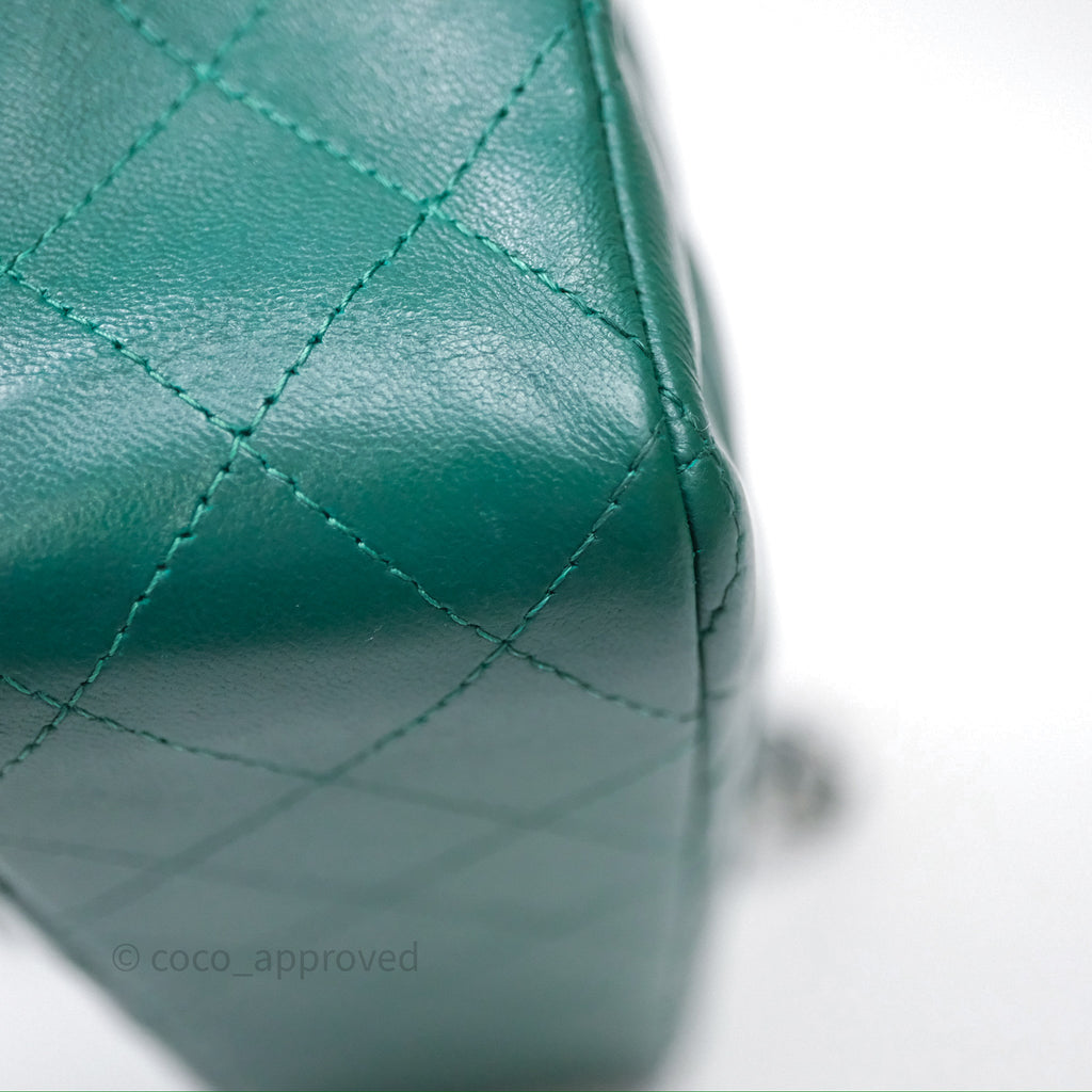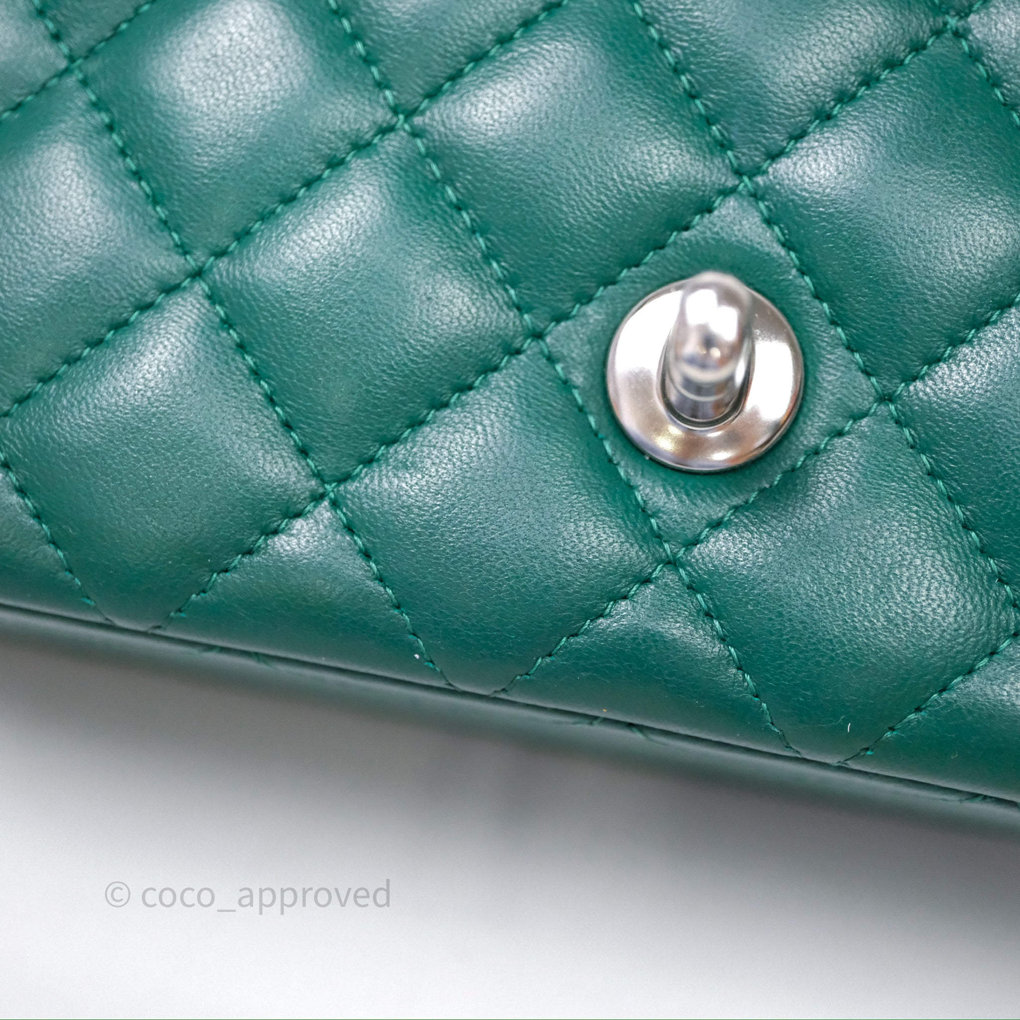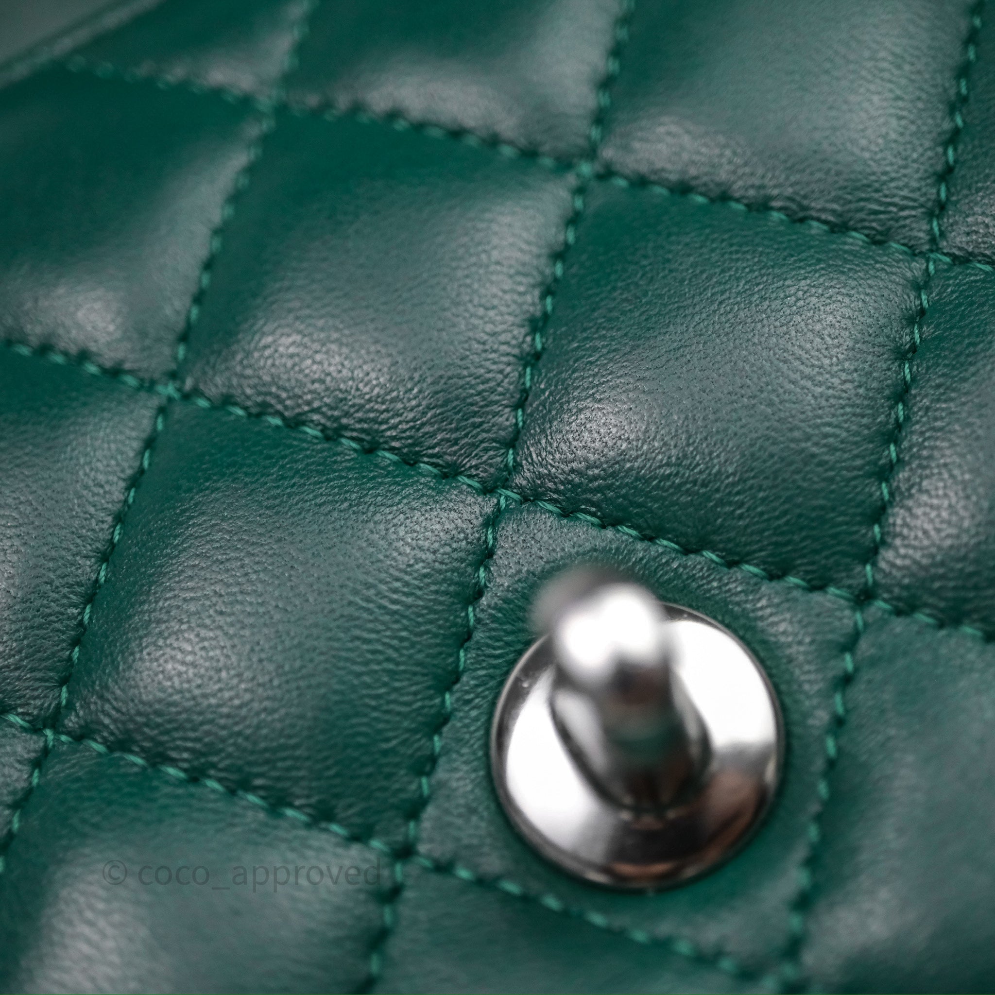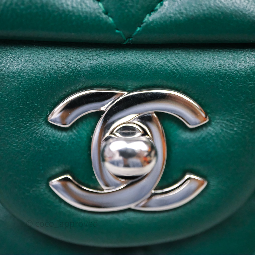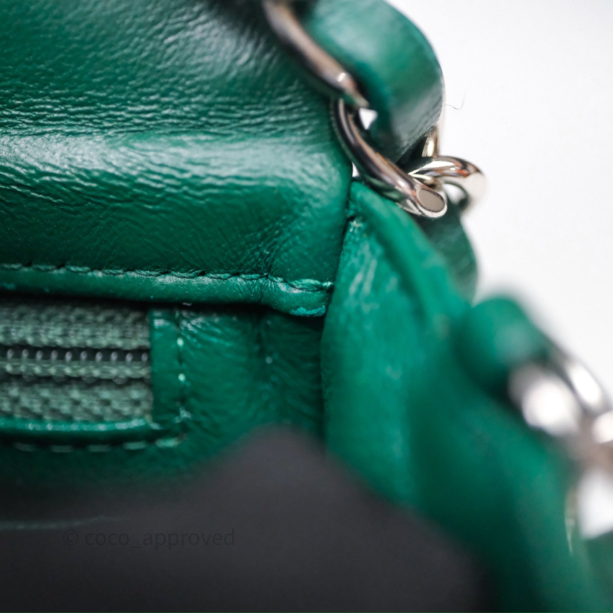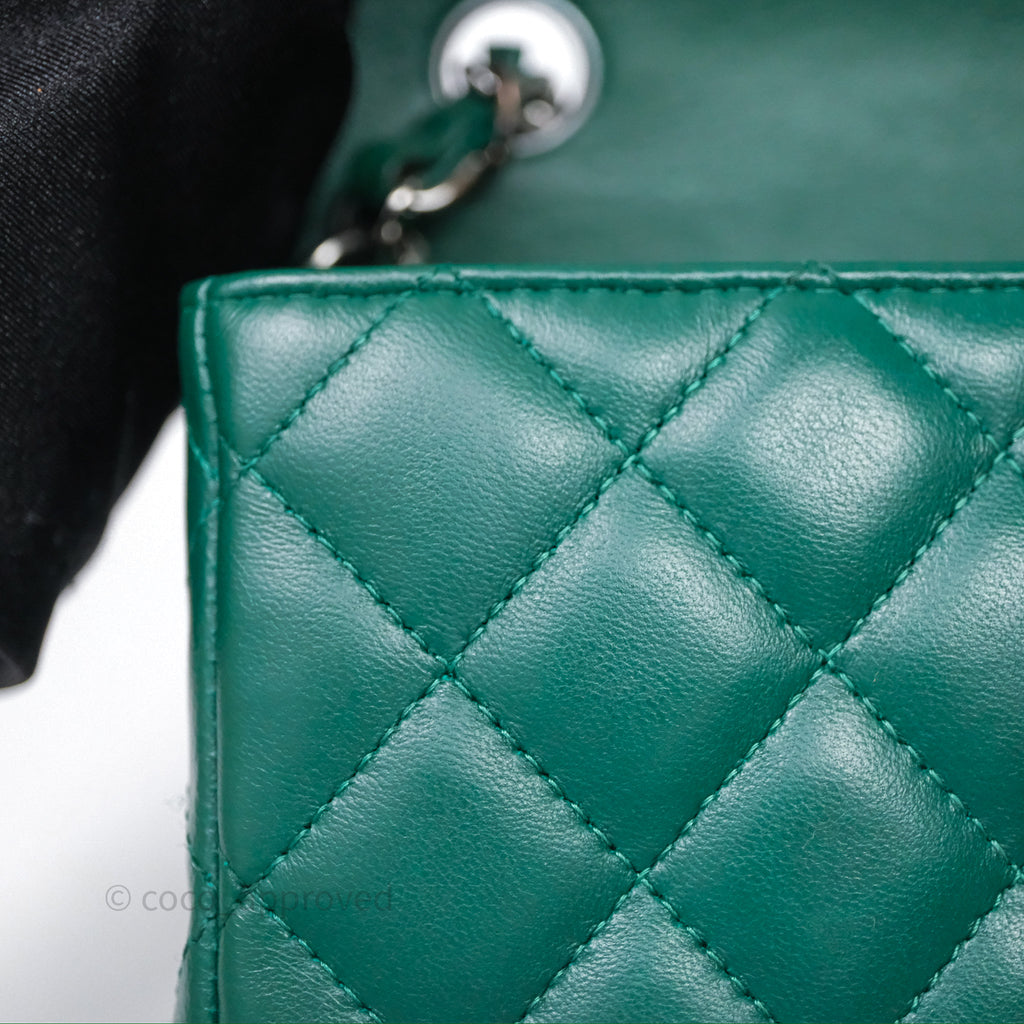 Chanel Mini Rectangular Quilted Lambskin Flap Bag Green Silver Hardware