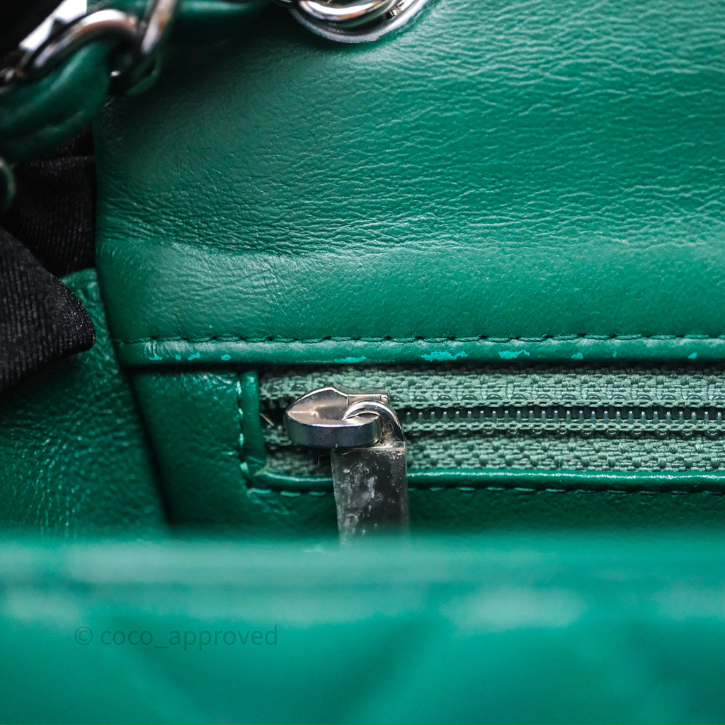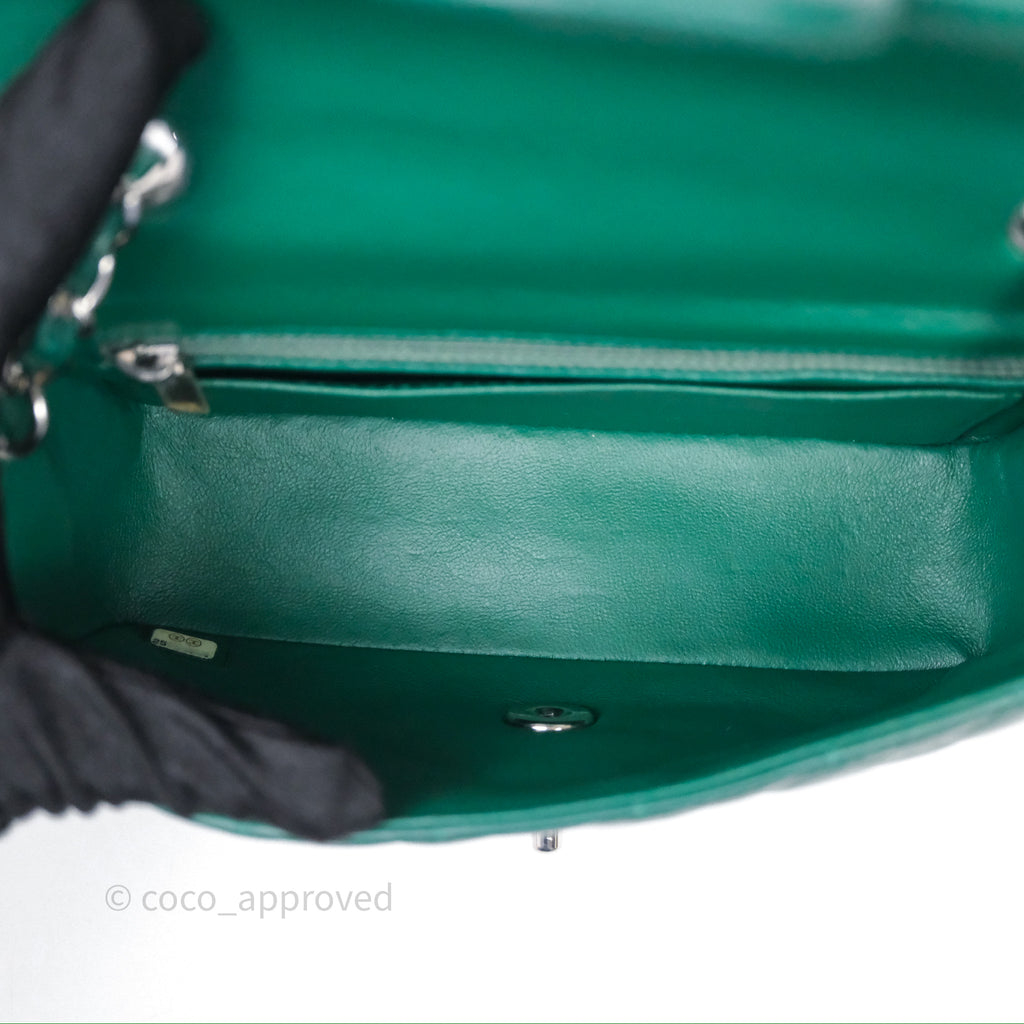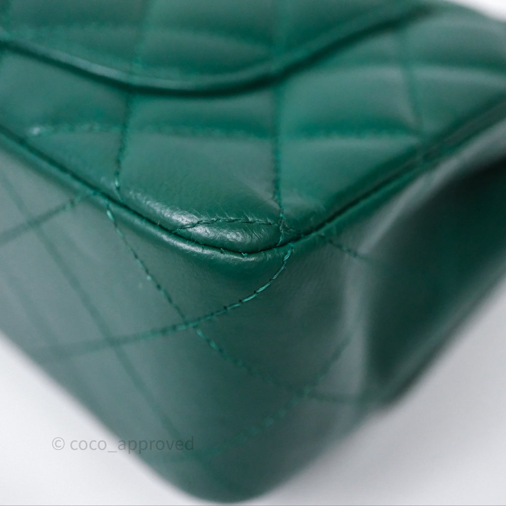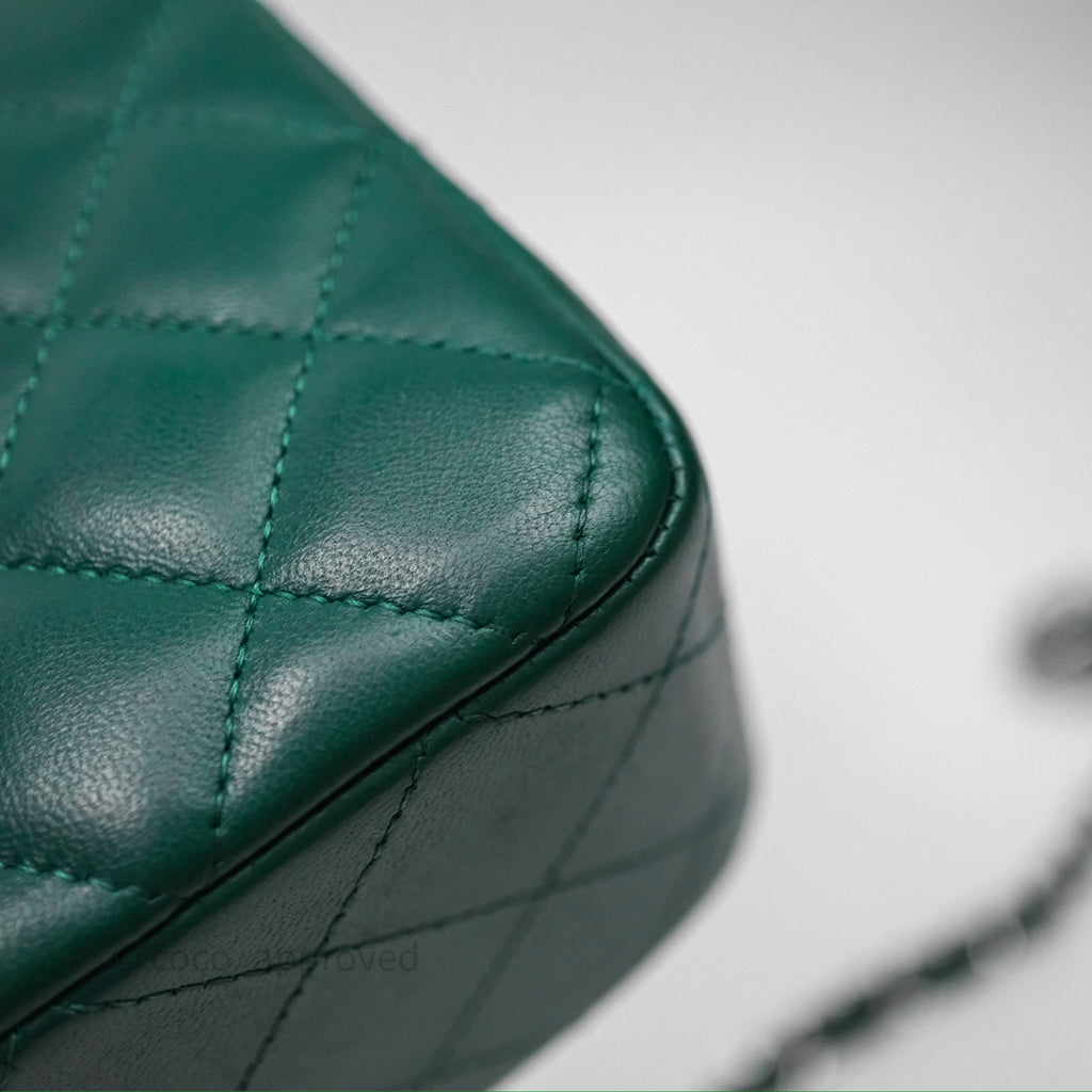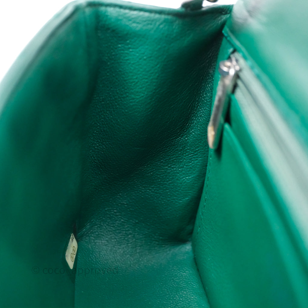 Chanel Mini Rectangular Quilted Lambskin Flap Bag Green Silver Hardware