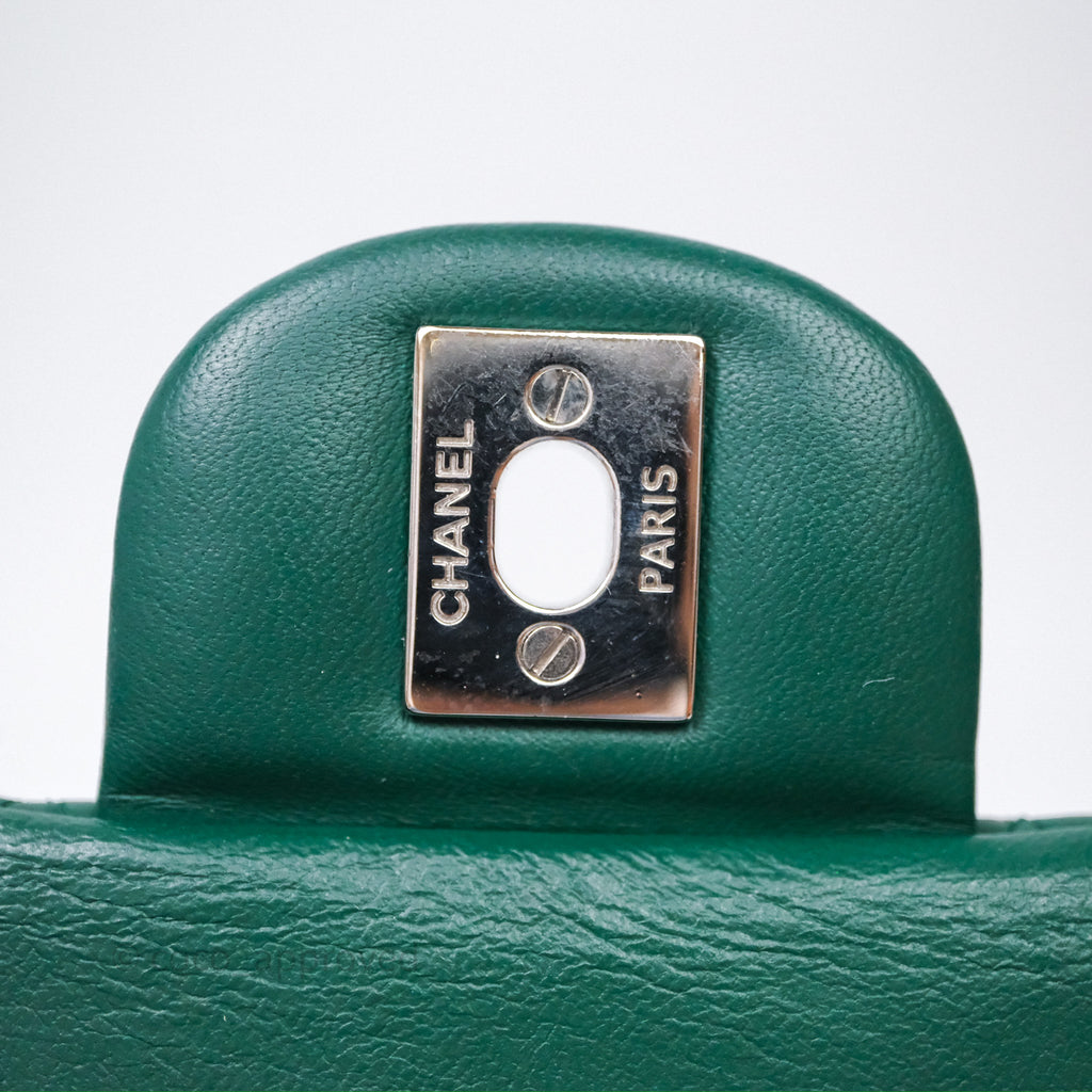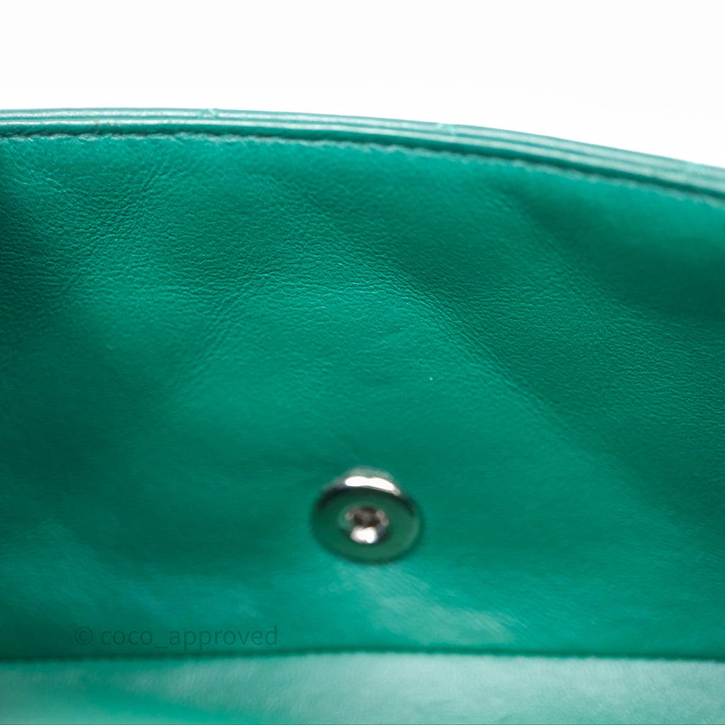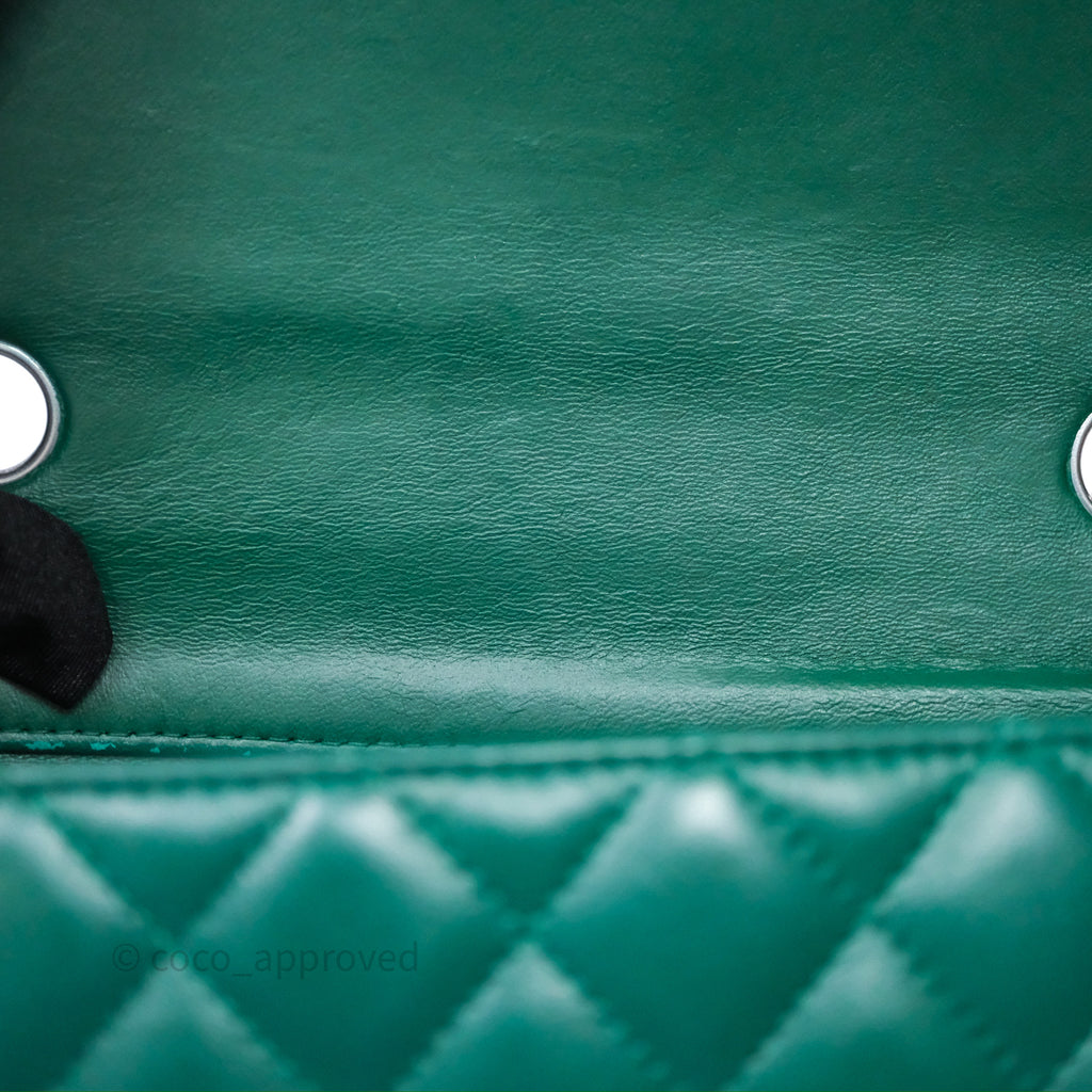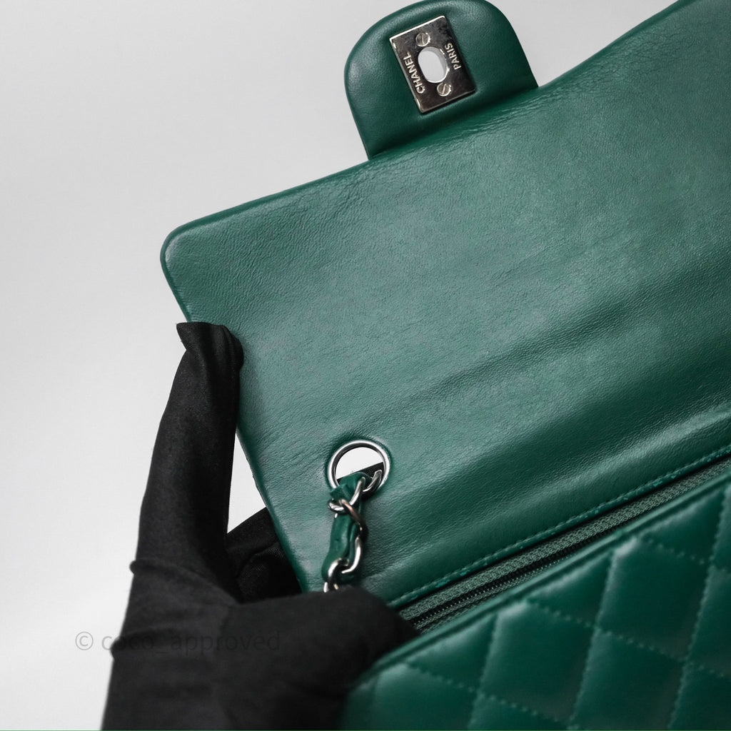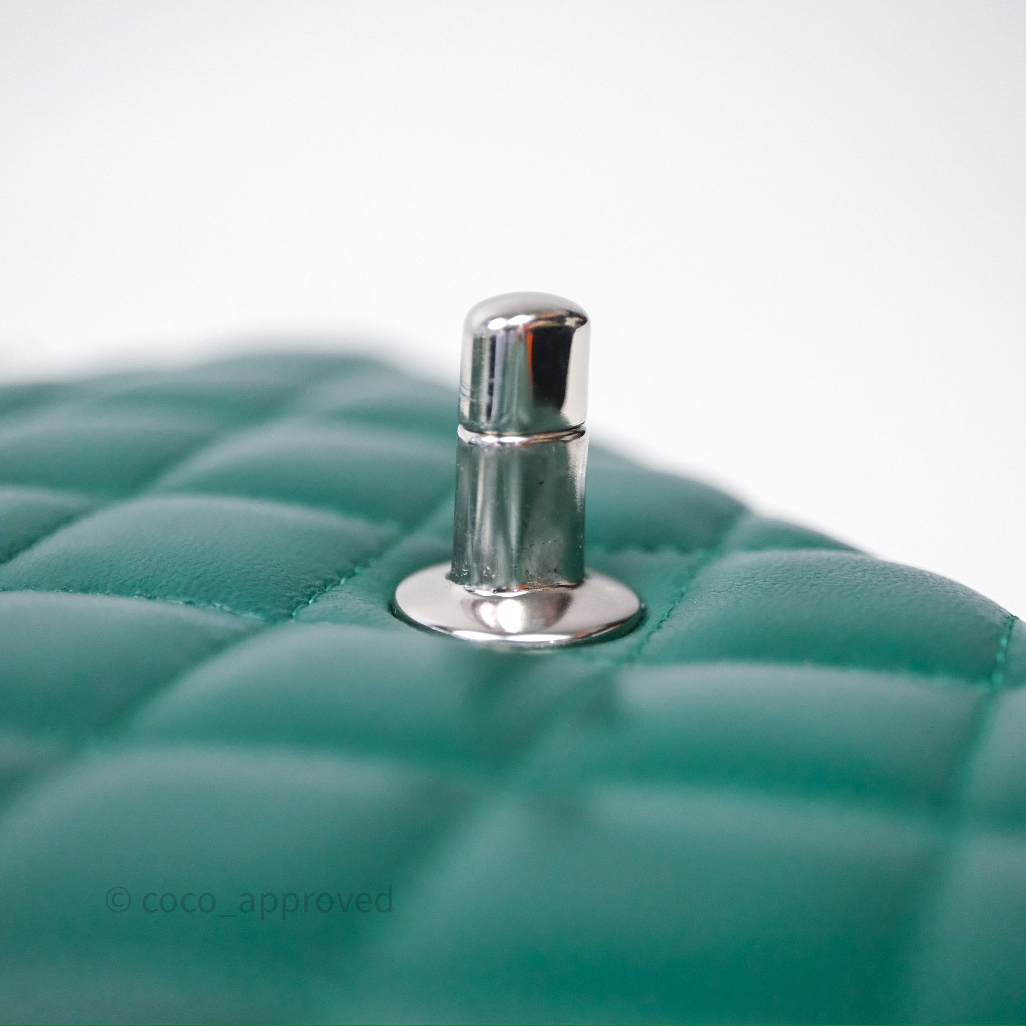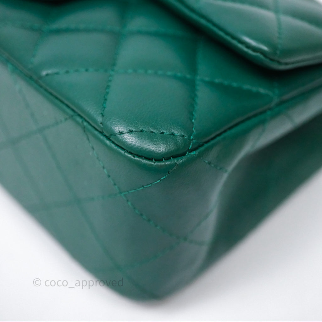 Chanel Mini Rectangular Quilted Lambskin Flap Bag Green Silver Hardware