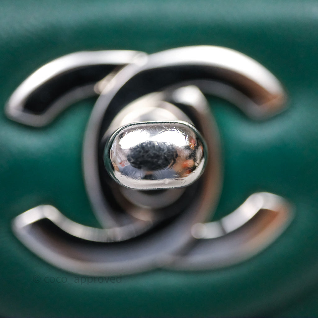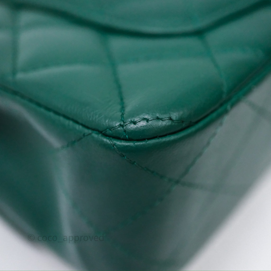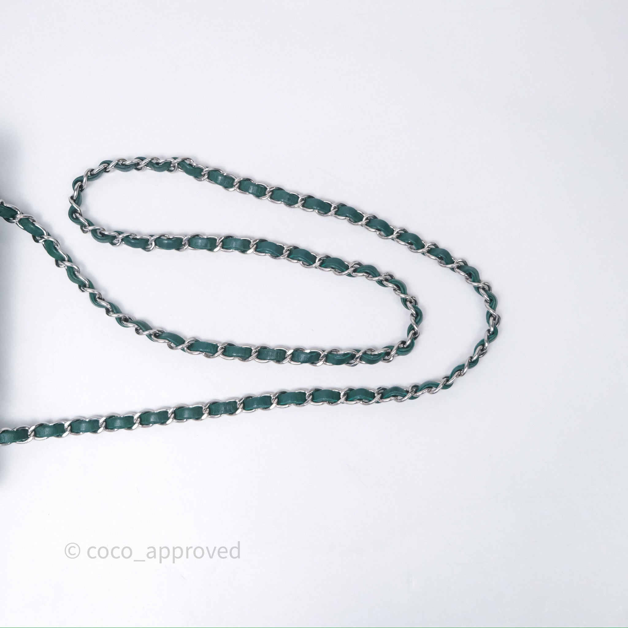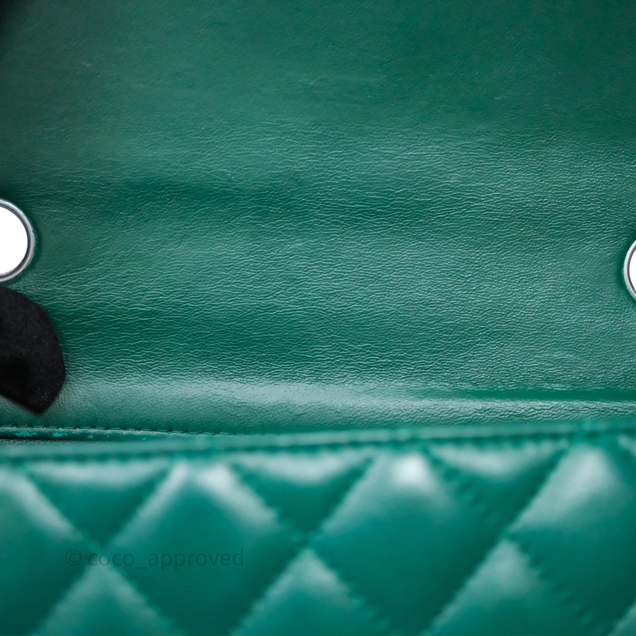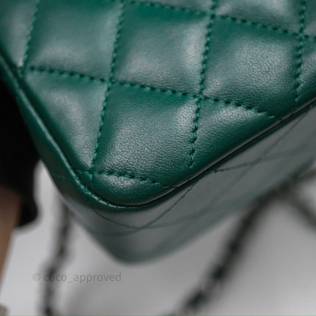 Chanel Mini Rectangular Quilted Lambskin Flap Bag Green Silver Hardware