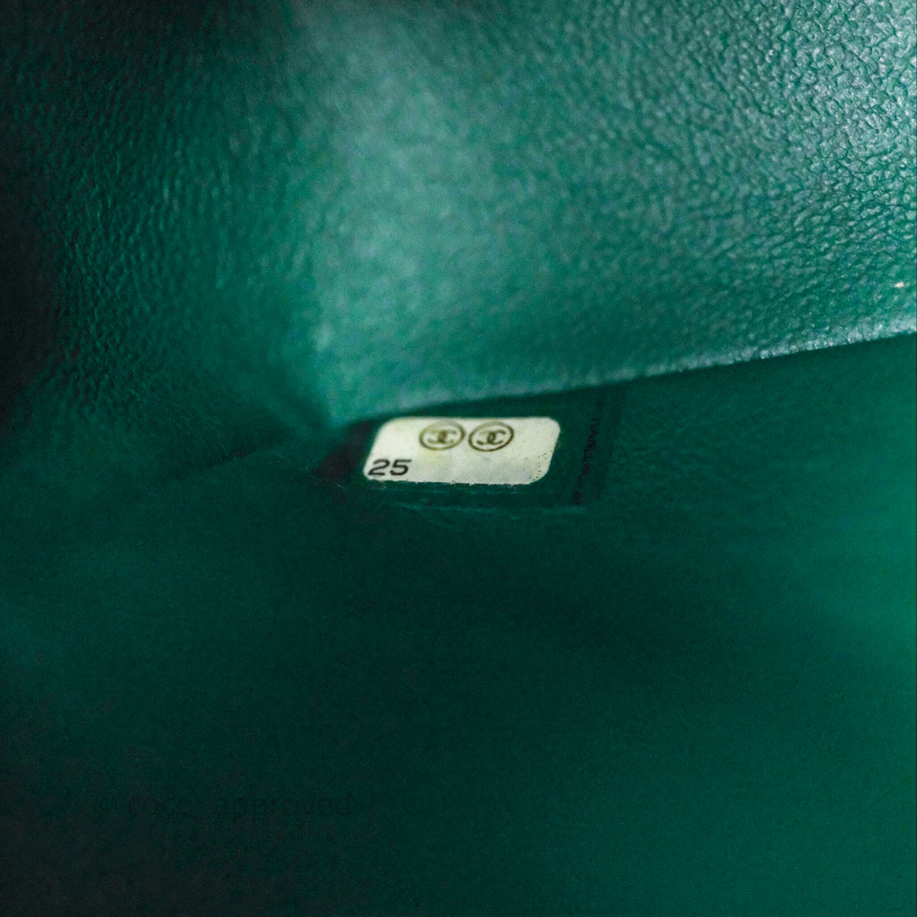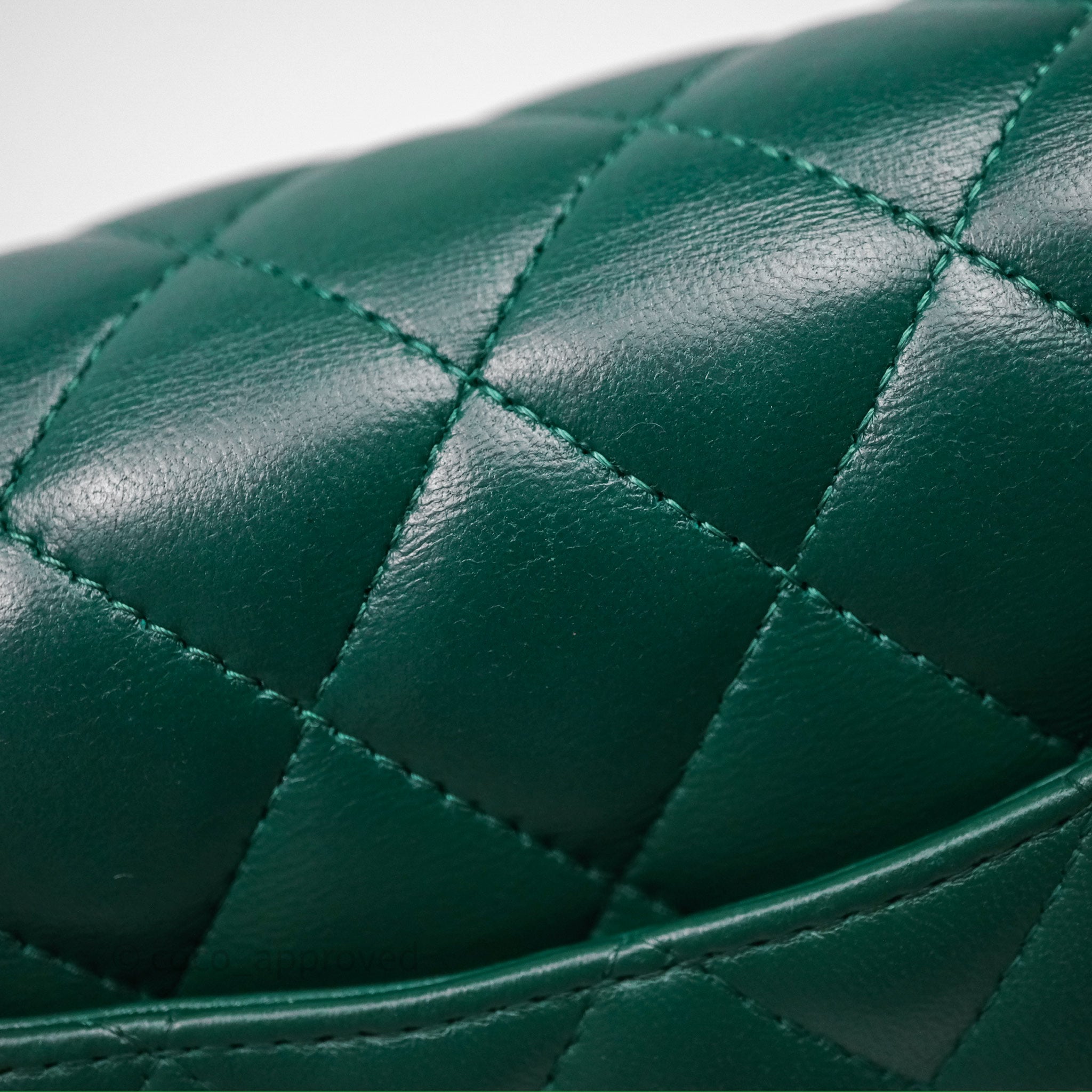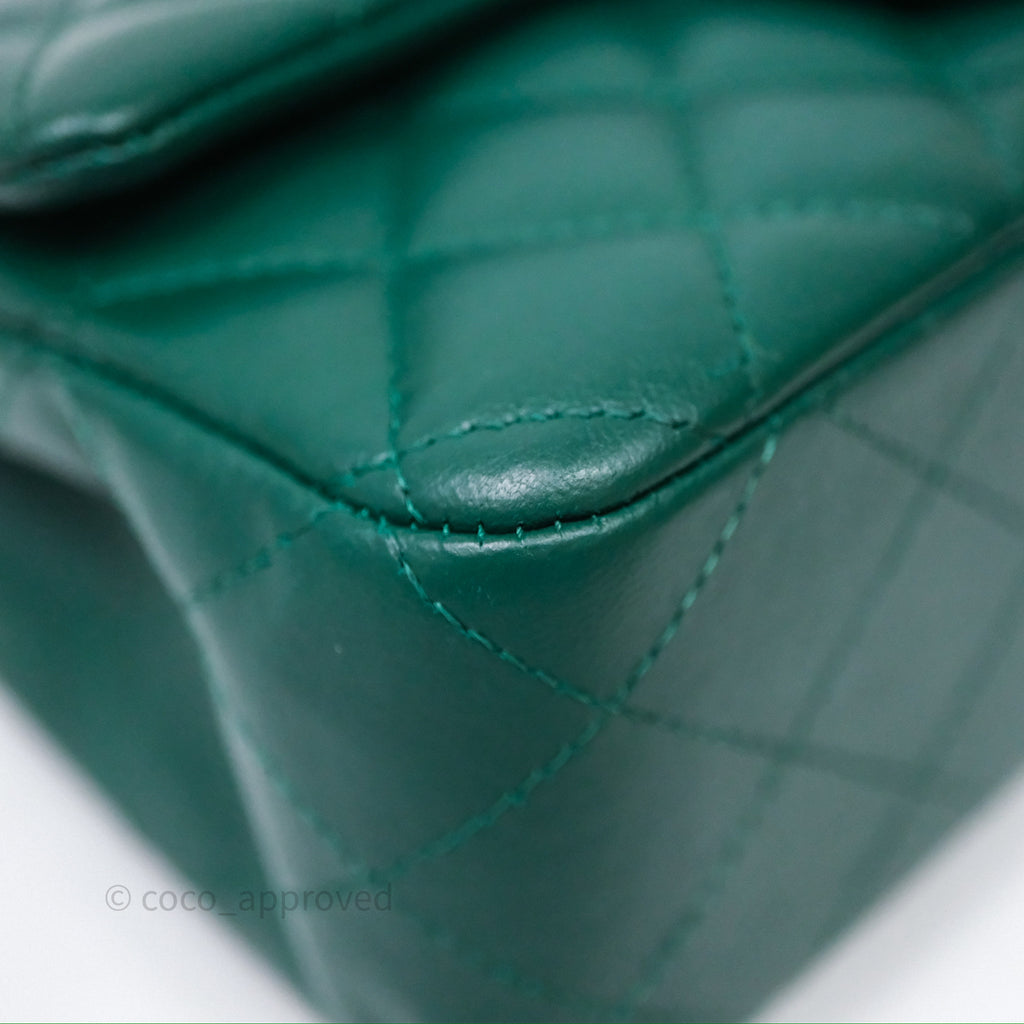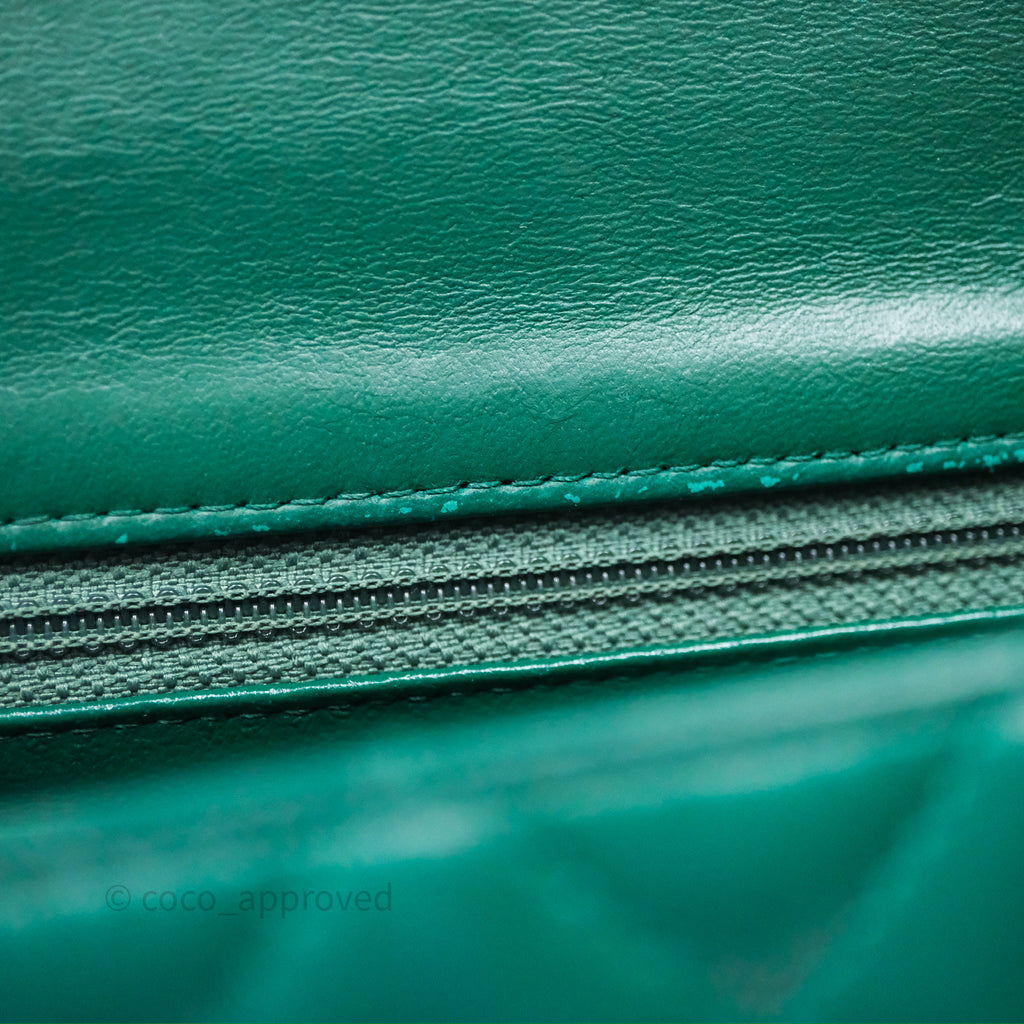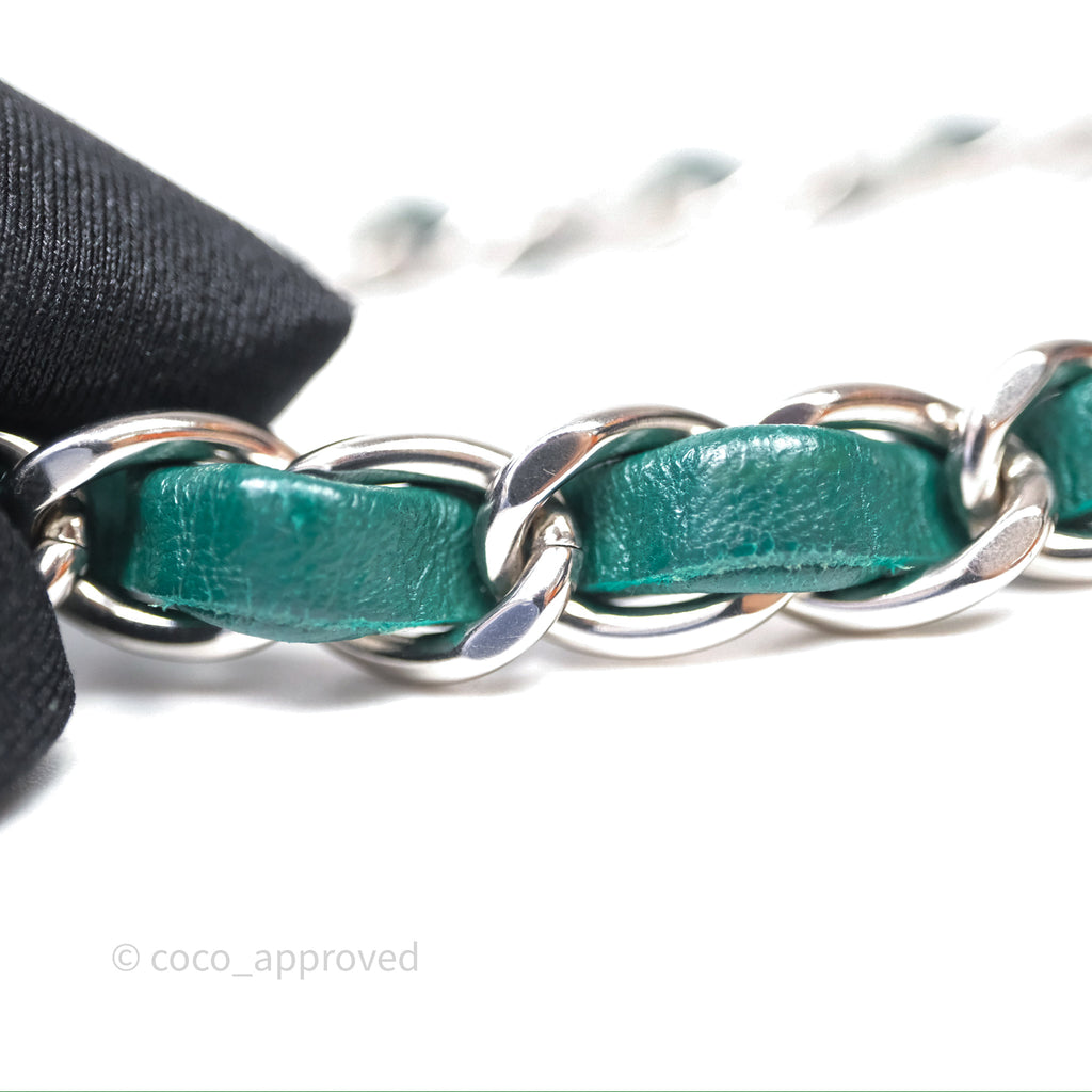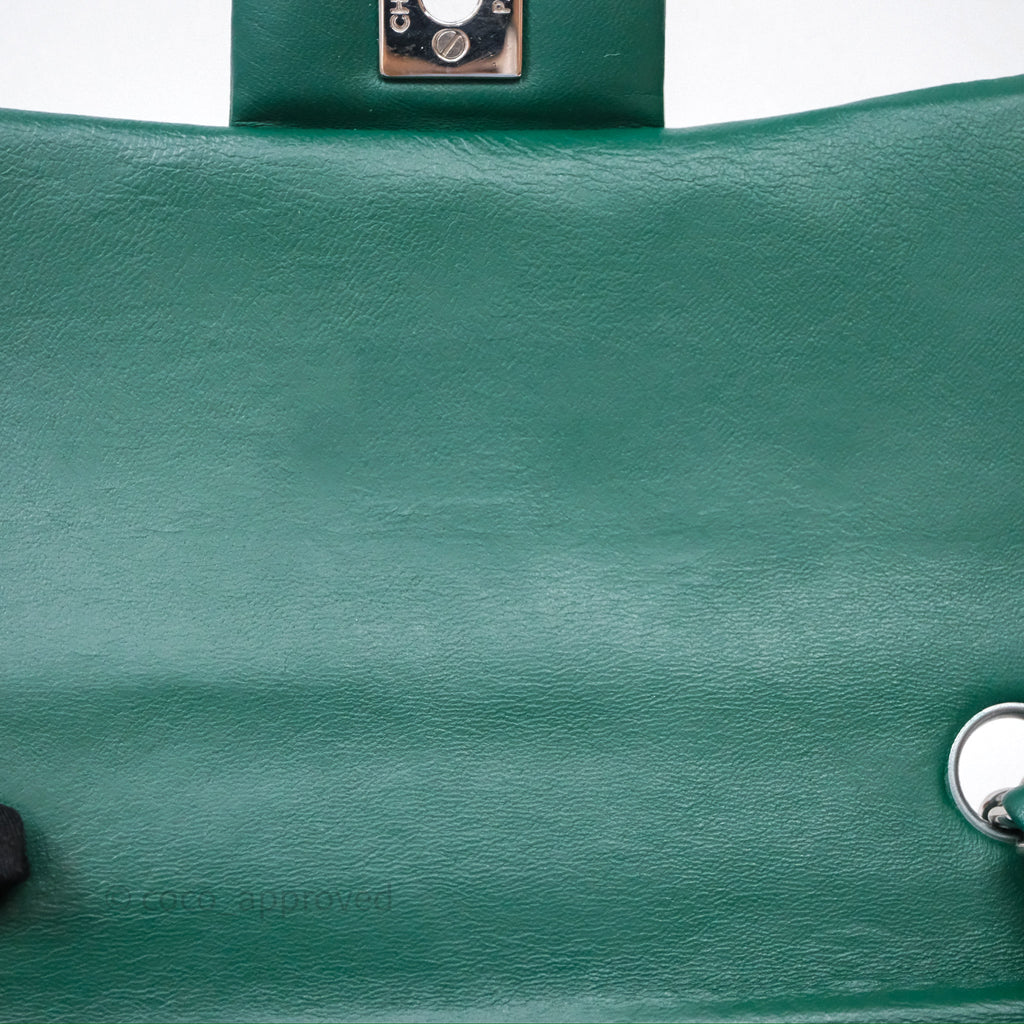 Chanel Mini Rectangular Quilted Lambskin Flap Bag Green Silver Hardware