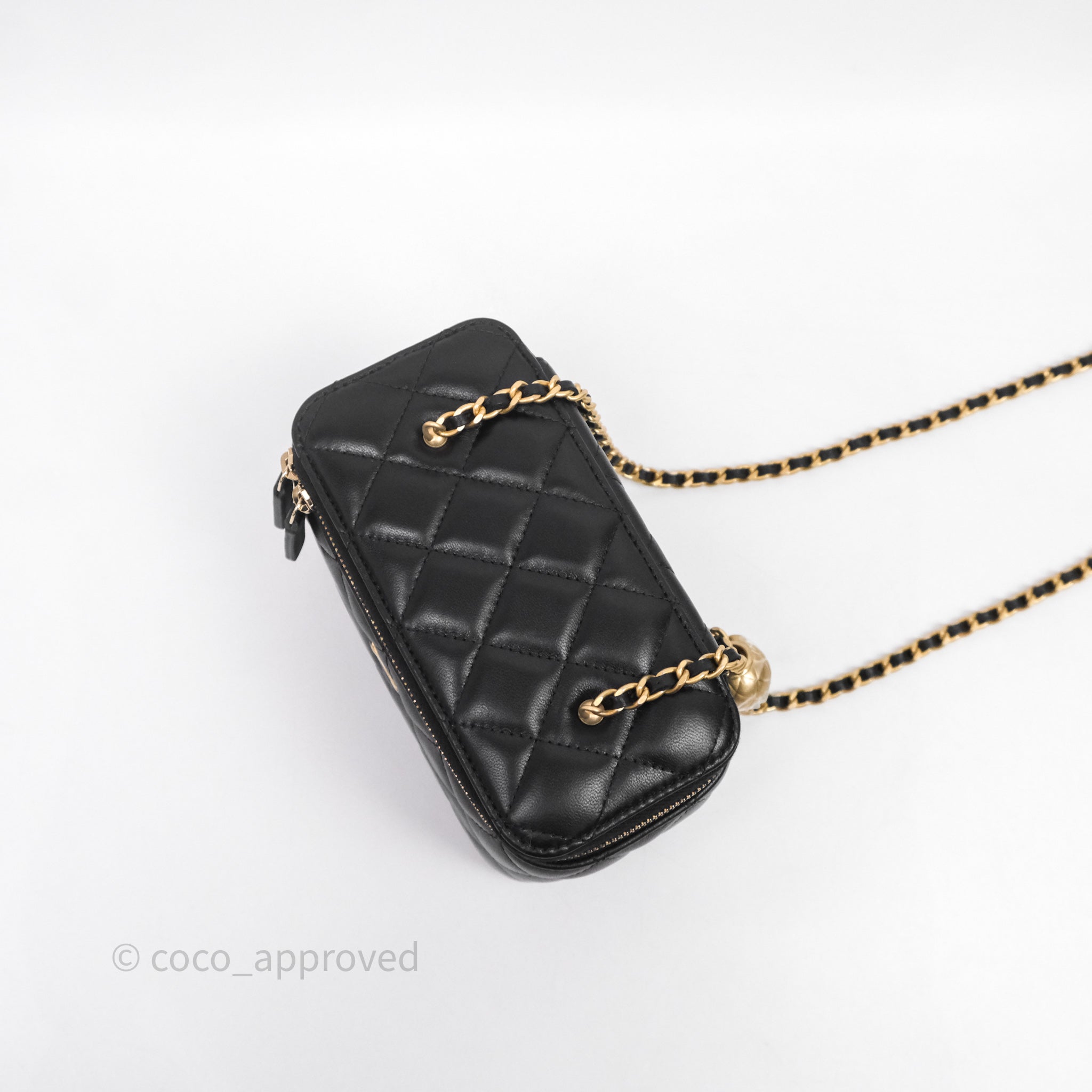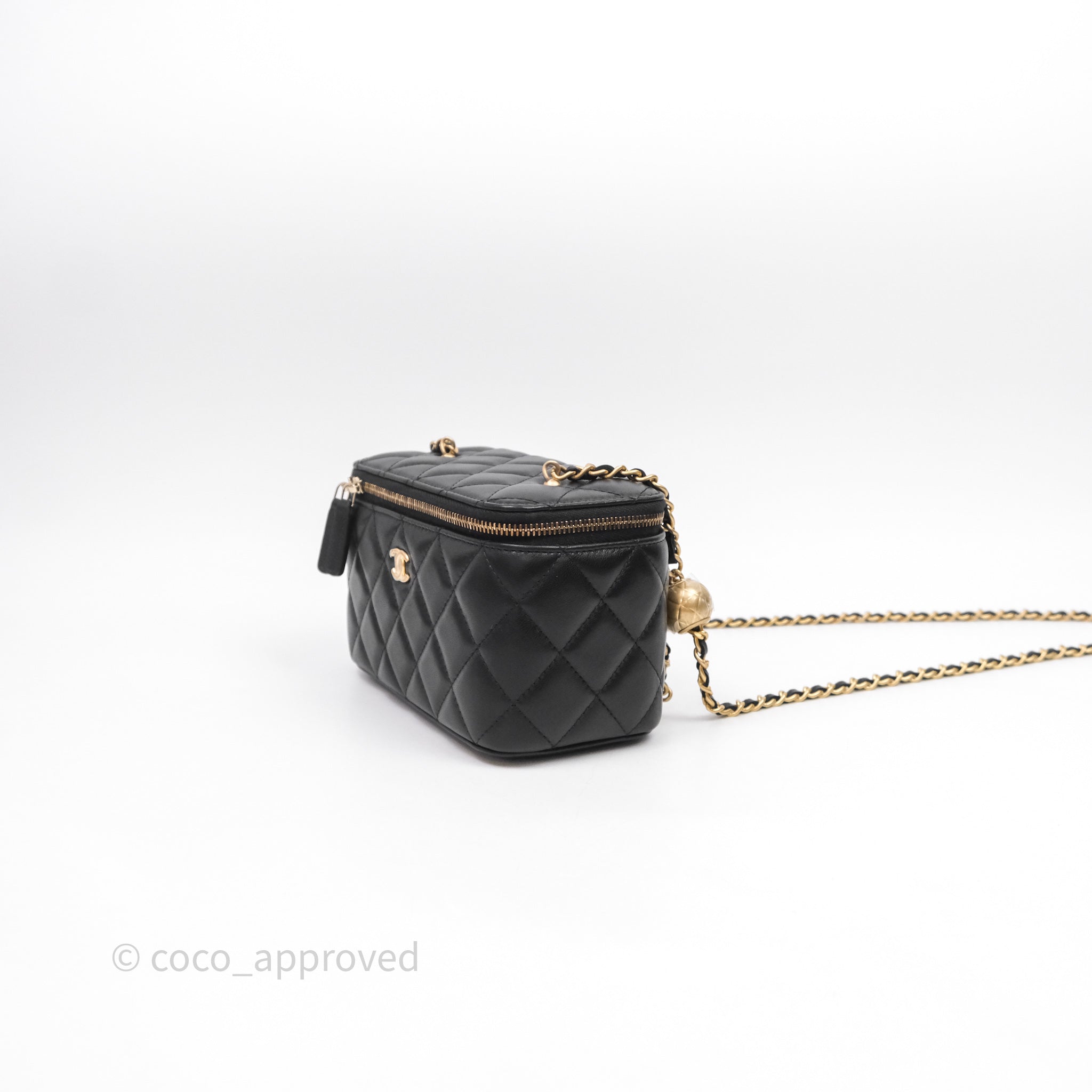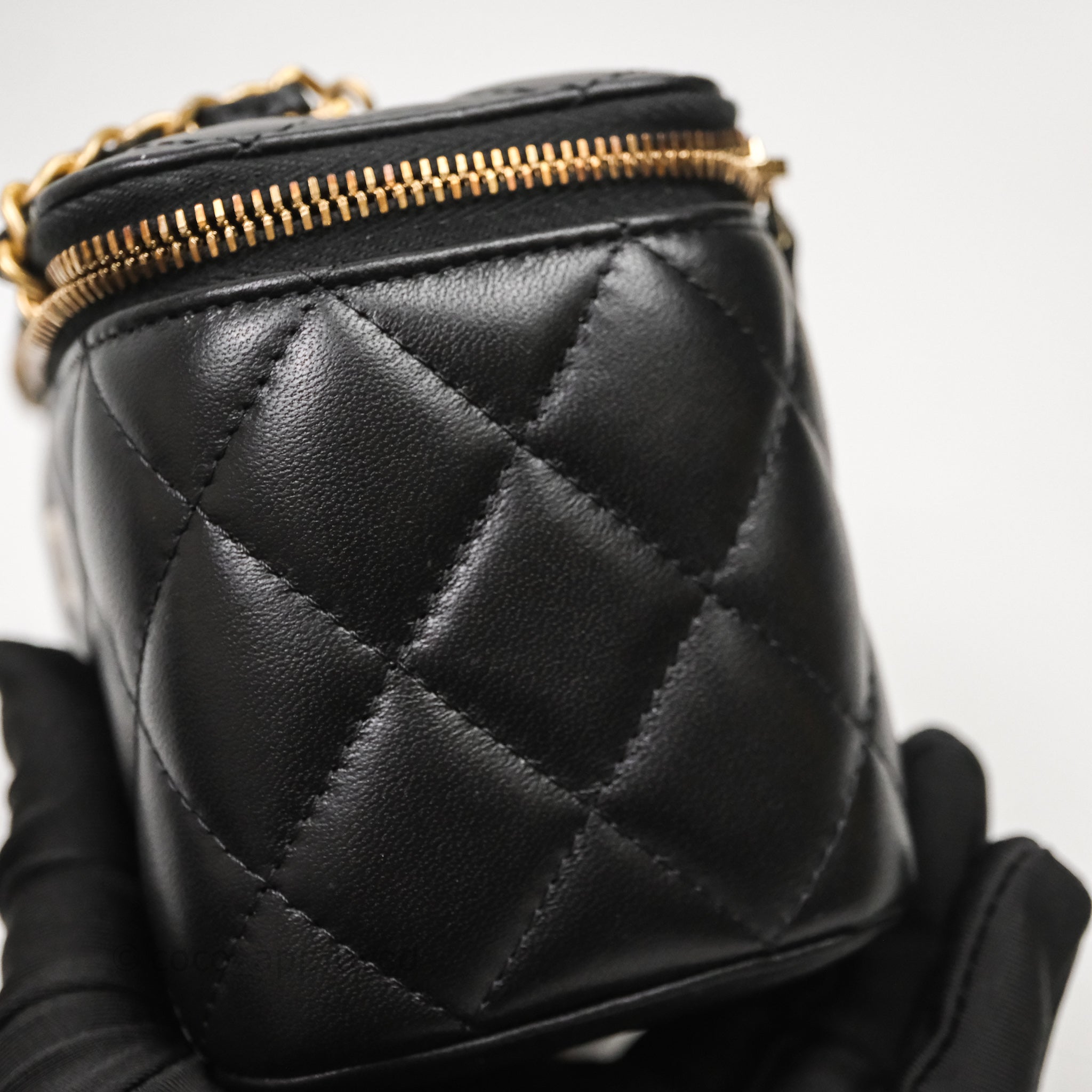 Chanel Pearl Crush Vanity with Chain Black Lambskin Aged Gold Hardware