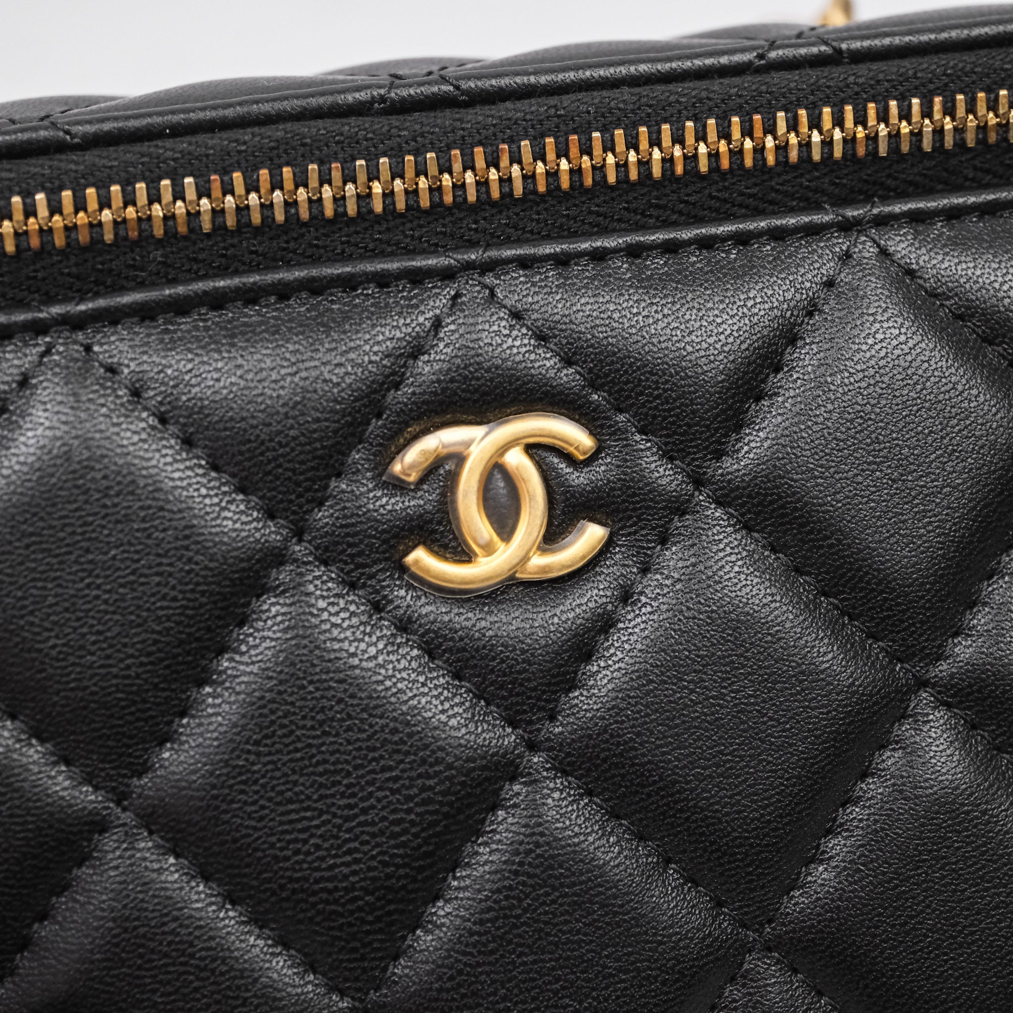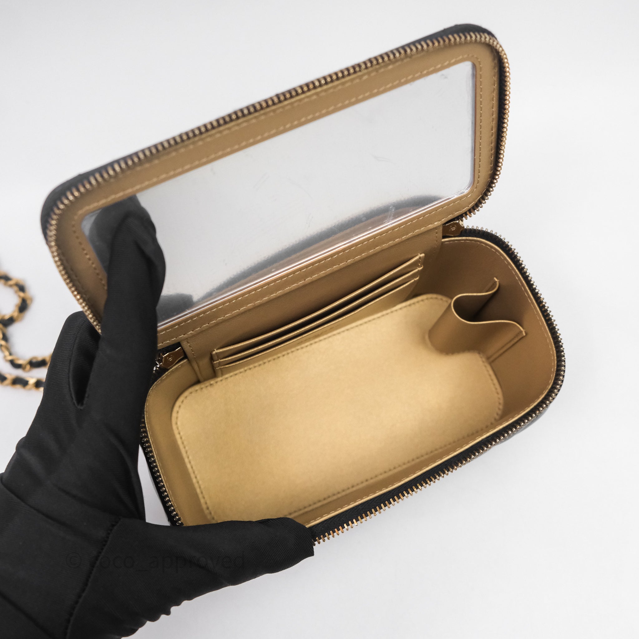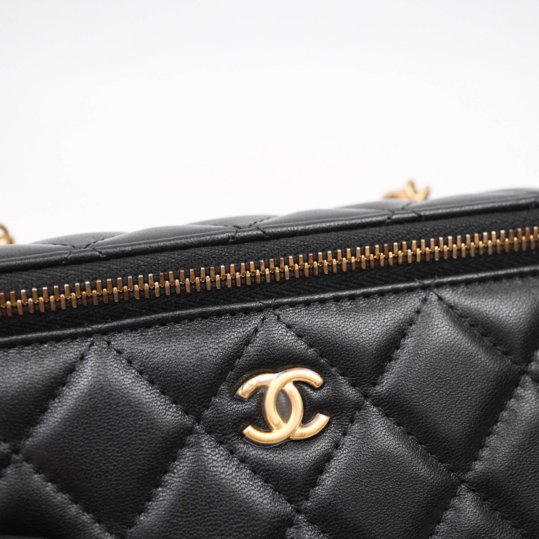Chanel Pearl Crush Vanity with Chain Black Lambskin Aged Gold Hardware