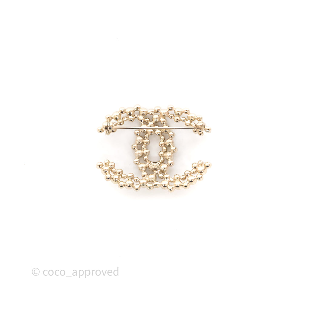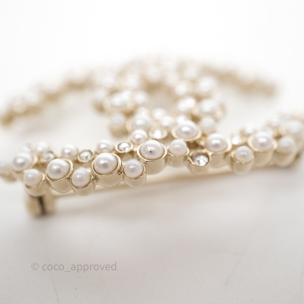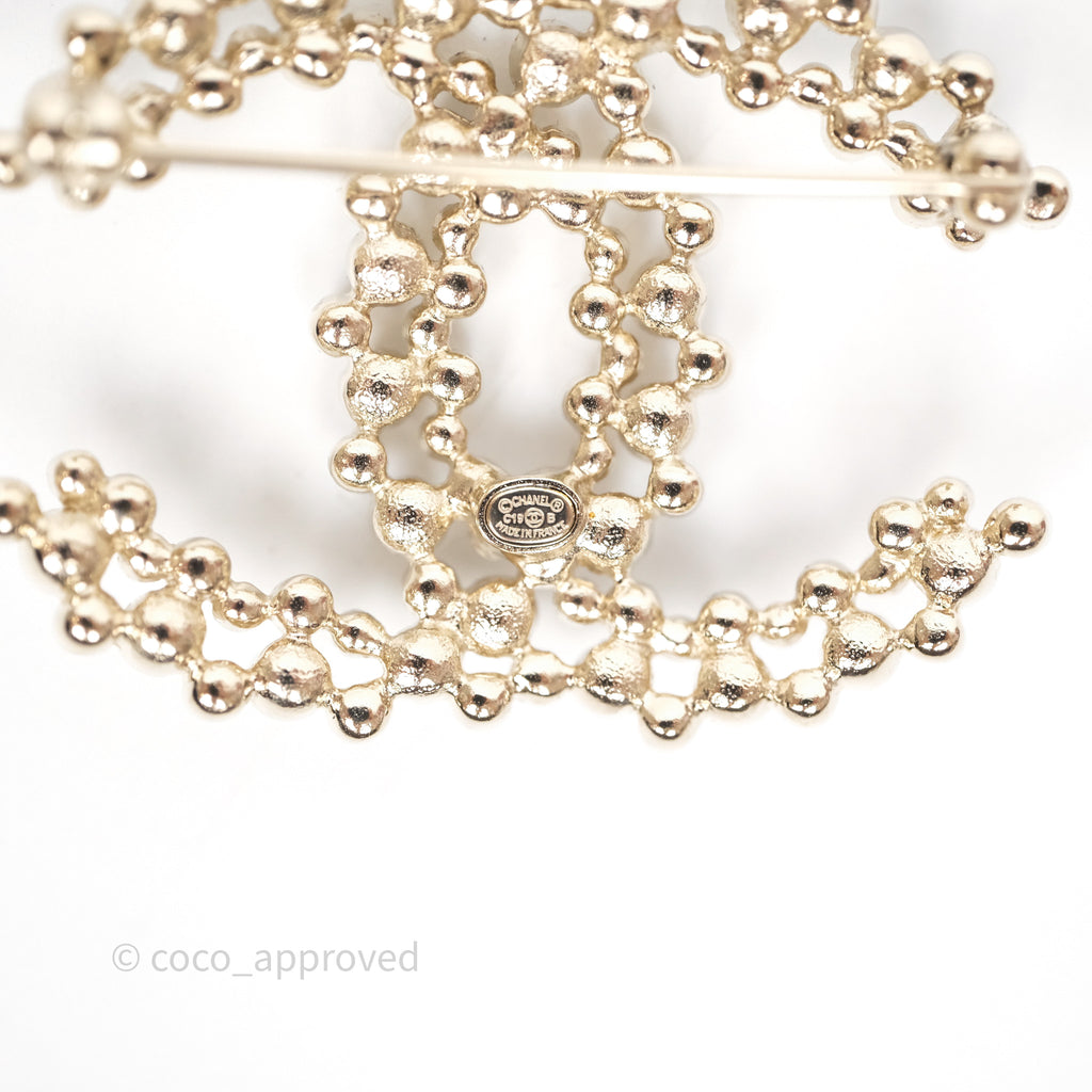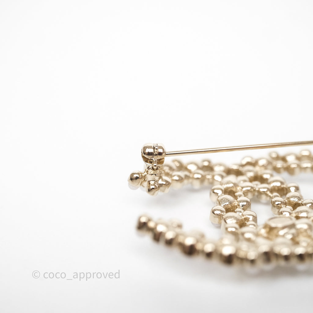 Chanel Pearl Crystal CC Brooch Gold Tone 19B