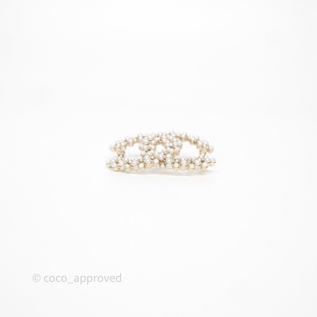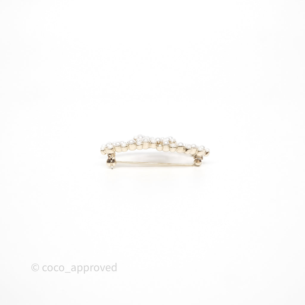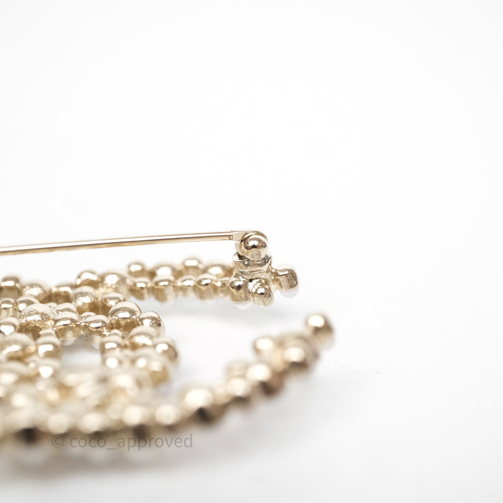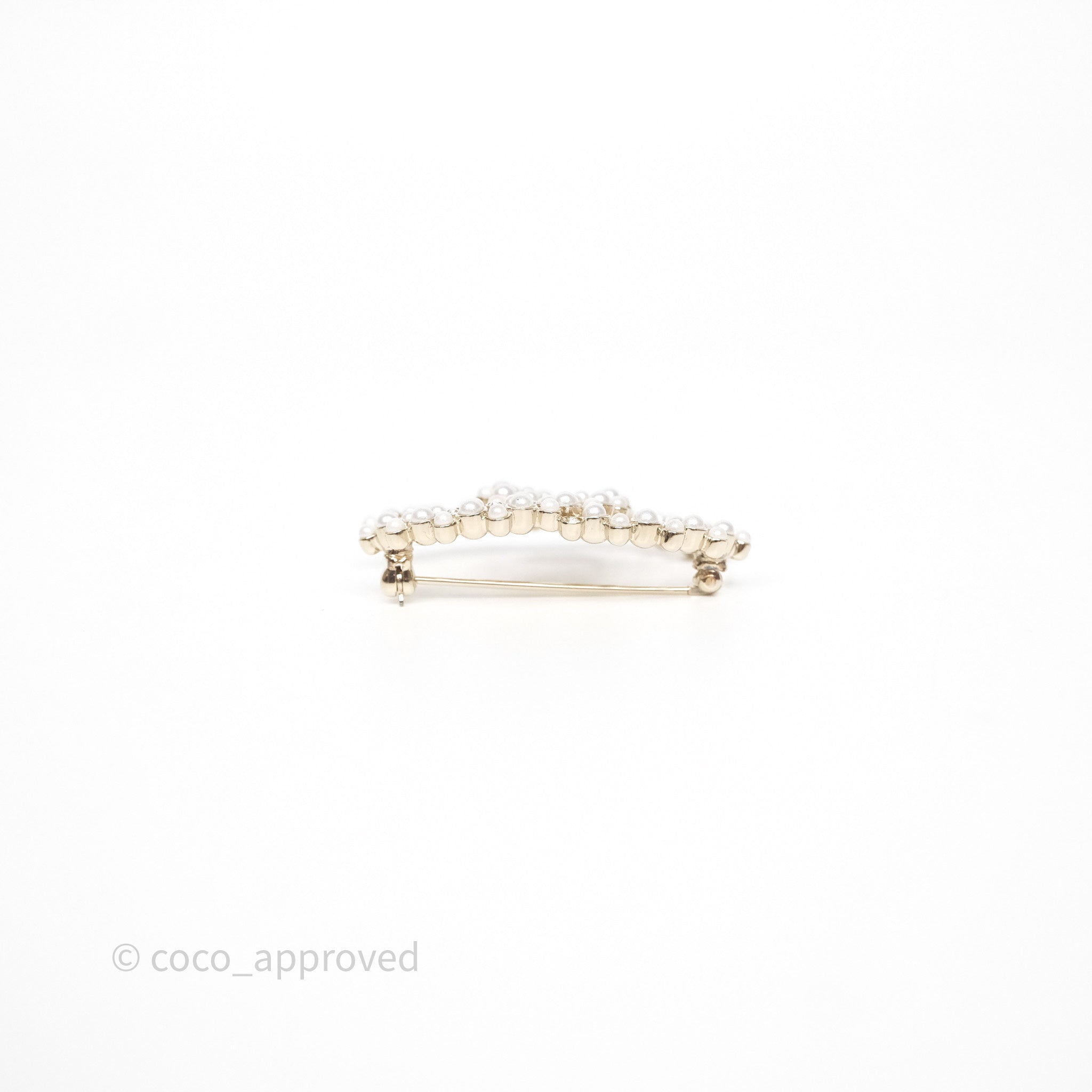 Chanel Pearl Crystal CC Brooch Gold Tone 19B