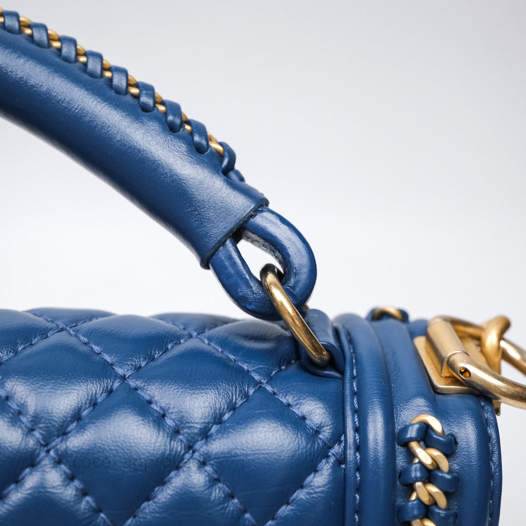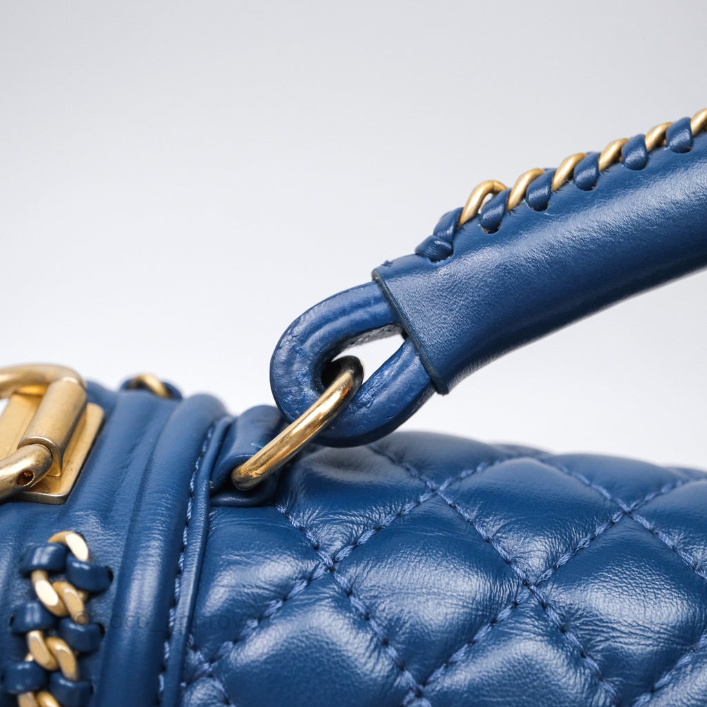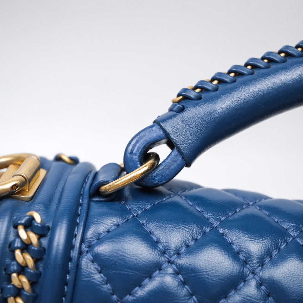 Chanel Quilted Medium Boy With Handle Blue Calfskin Aged Gold Hardware