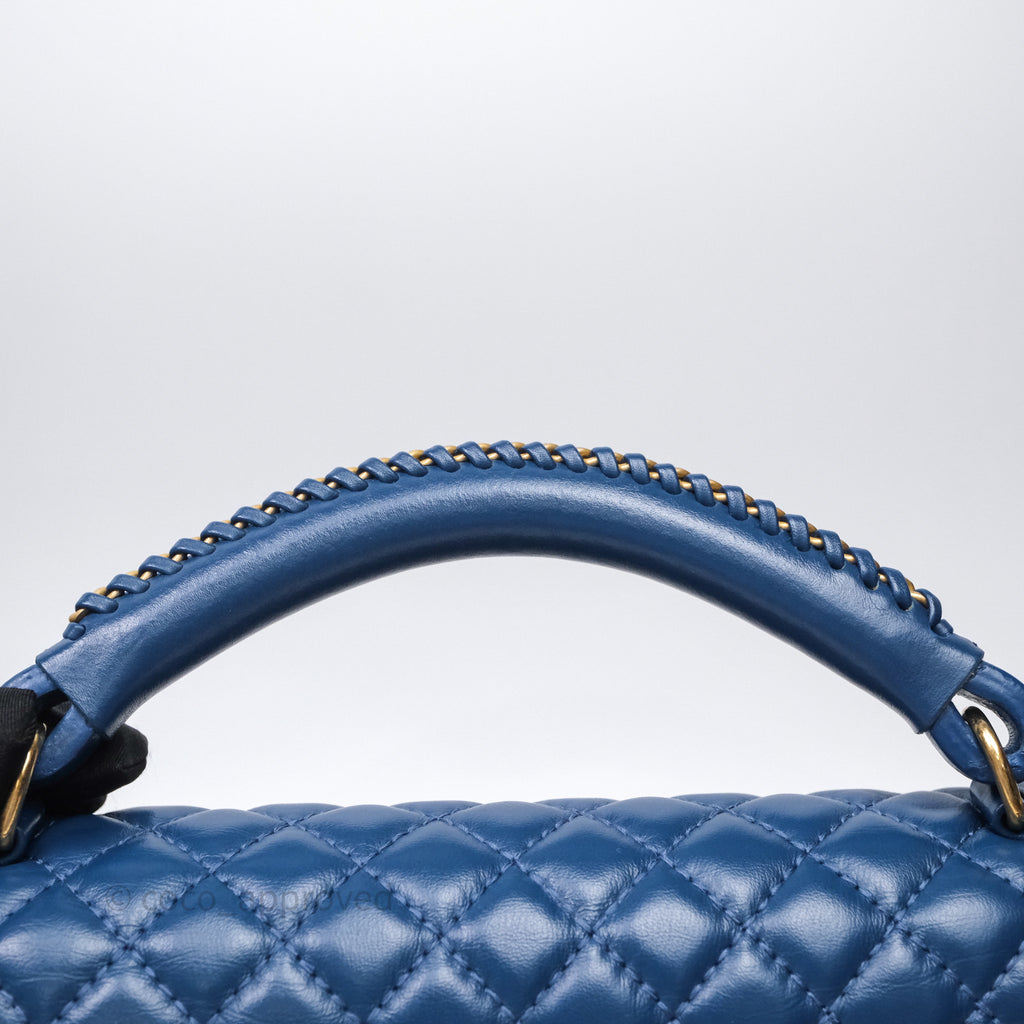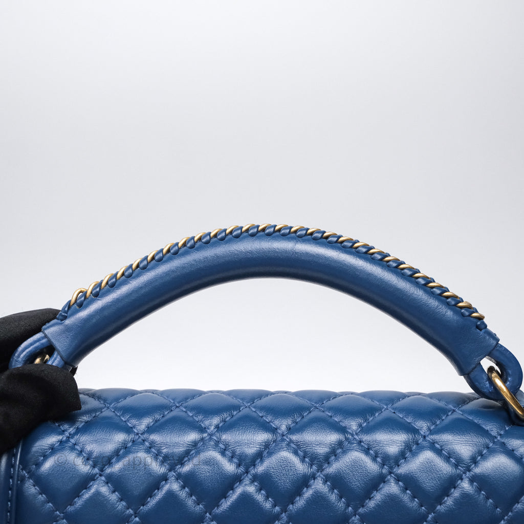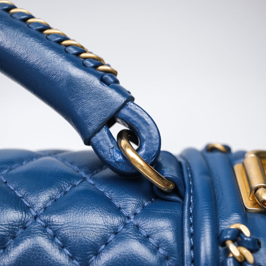 Chanel Quilted Medium Boy With Handle Blue Calfskin Aged Gold Hardware