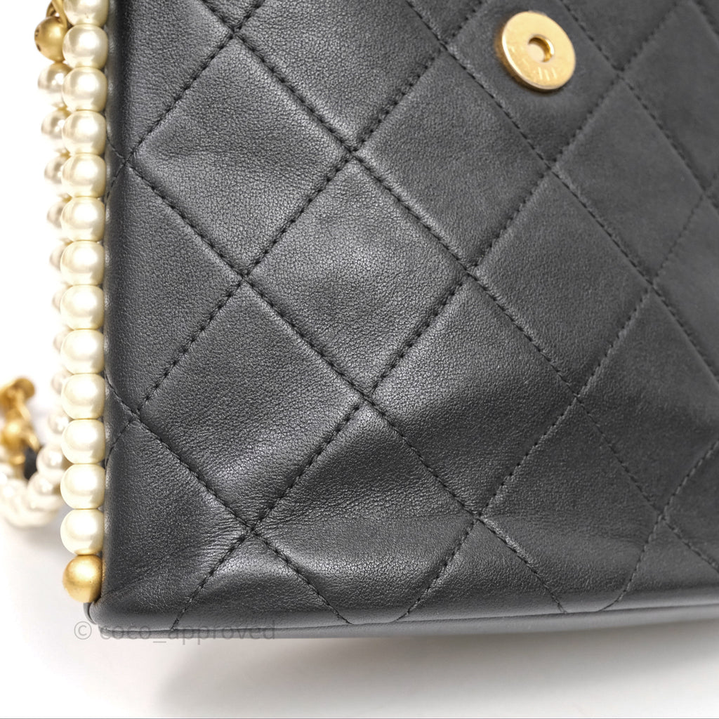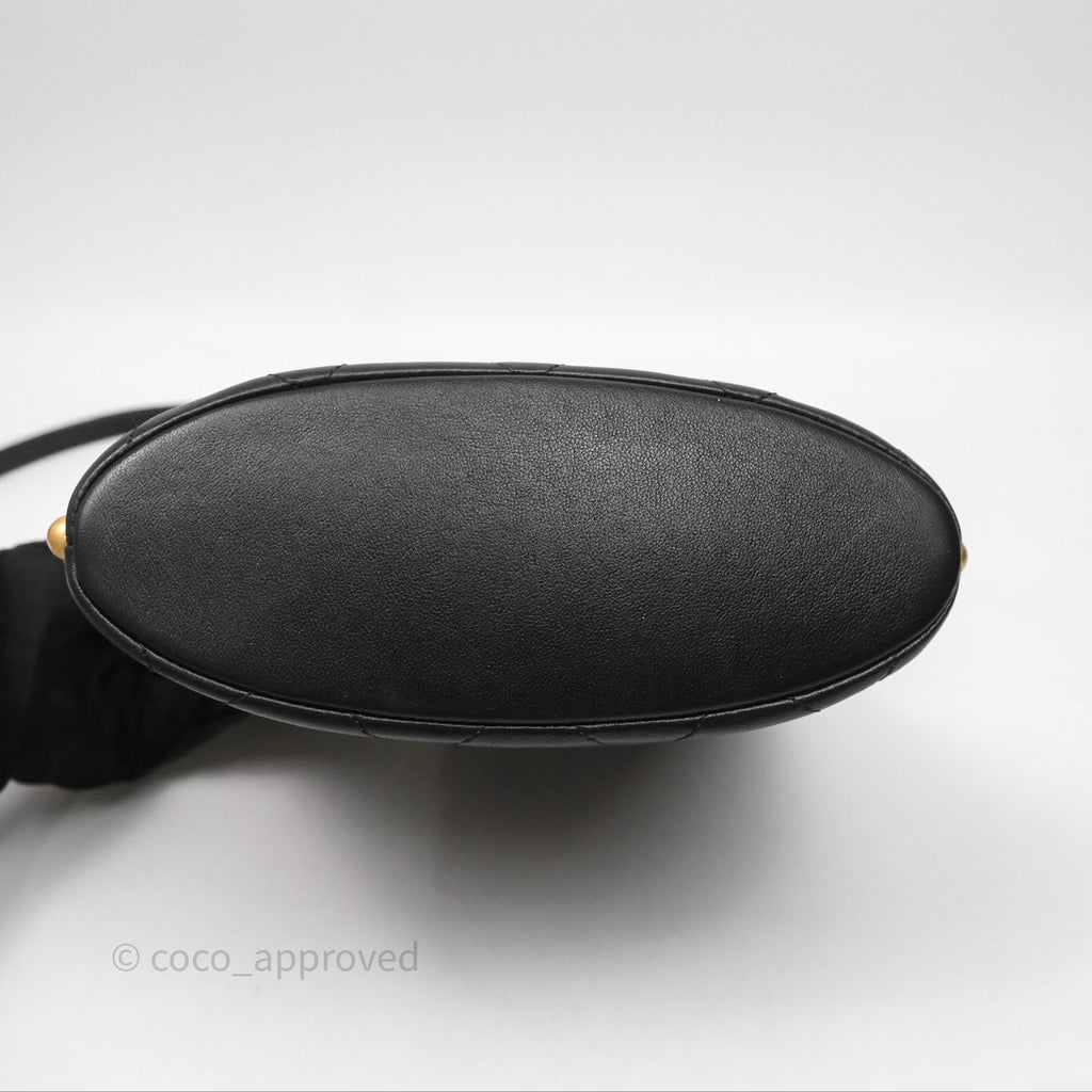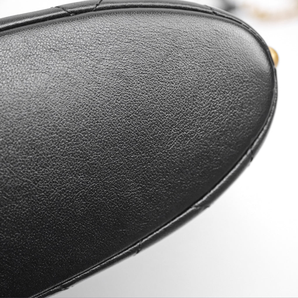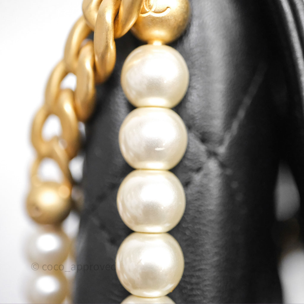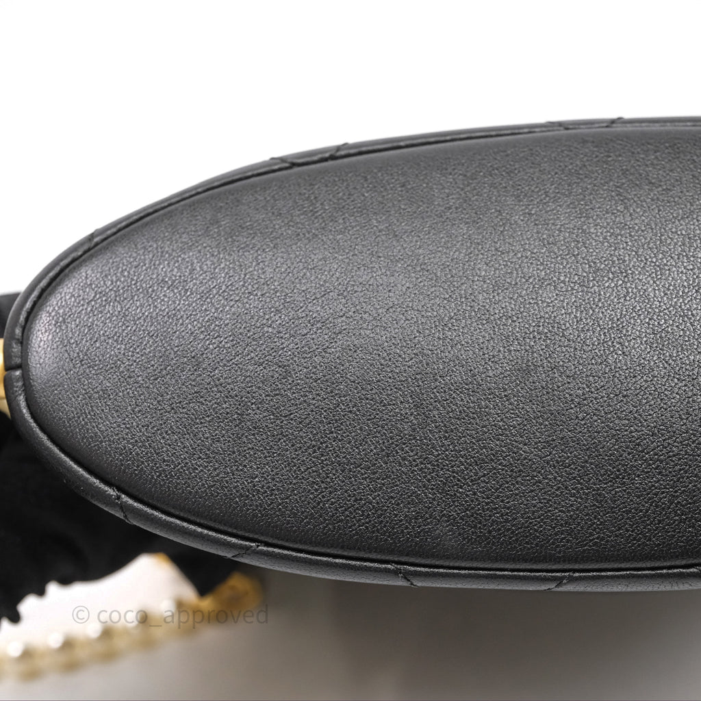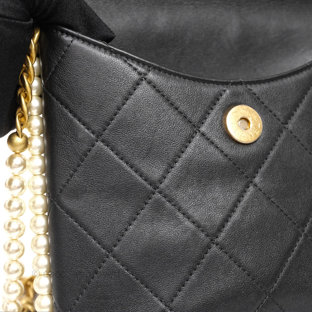 Chanel Small Pearl Hobo Bag Black Calfskin Aged Gold Hardware