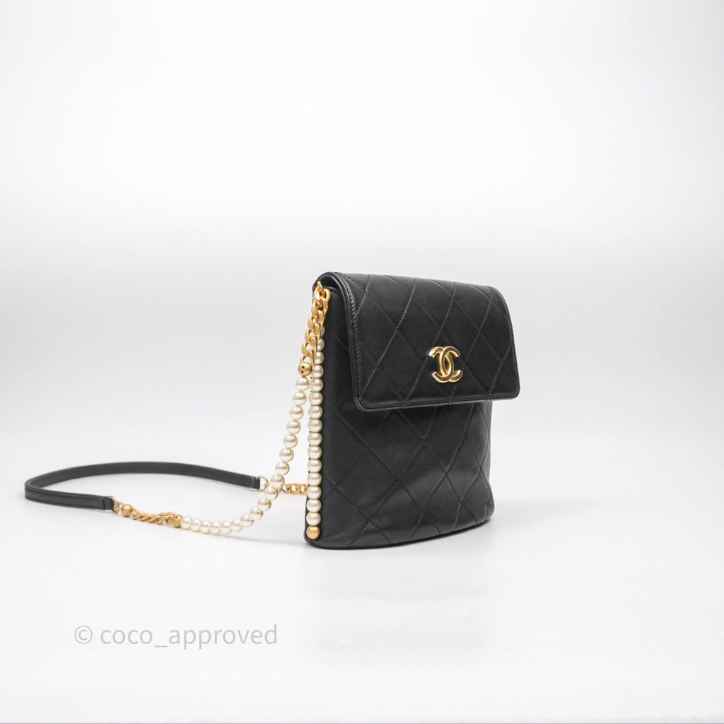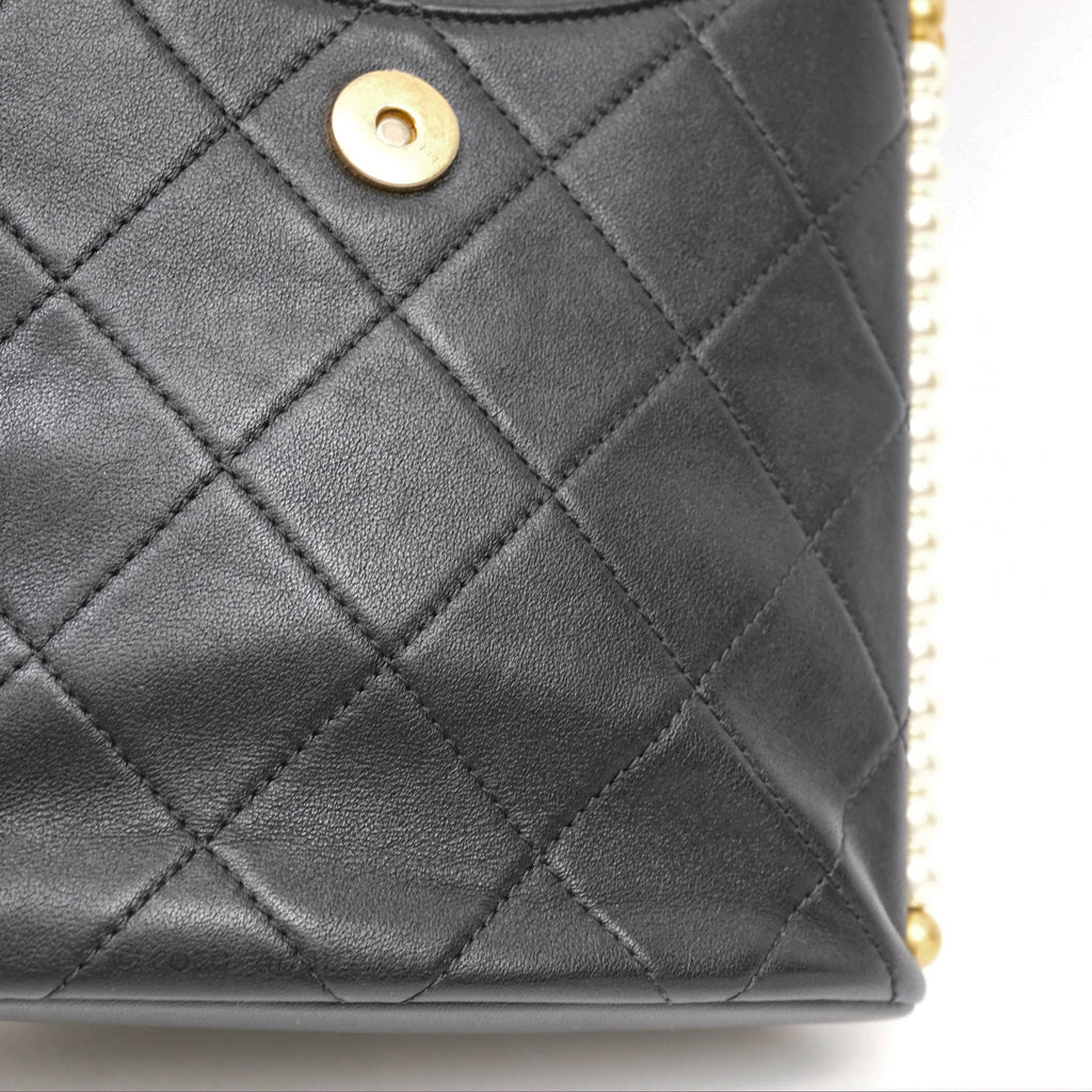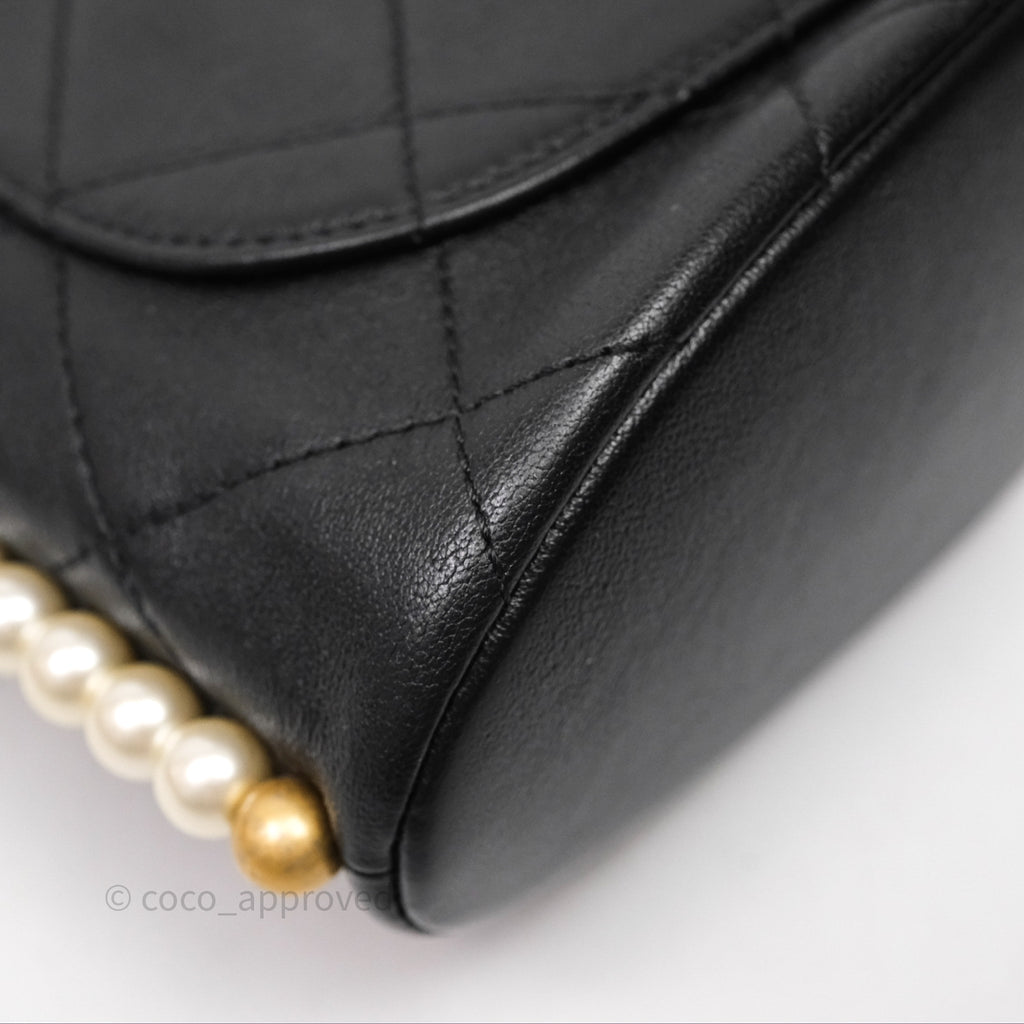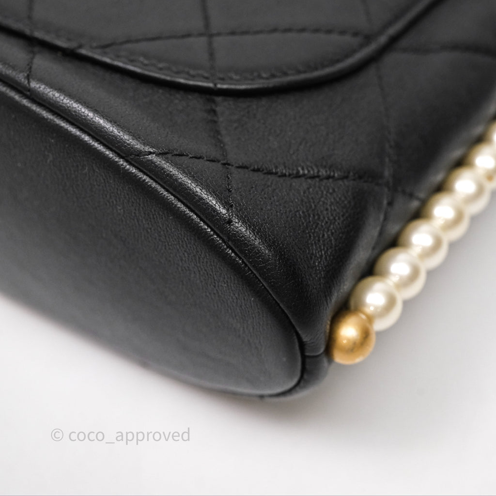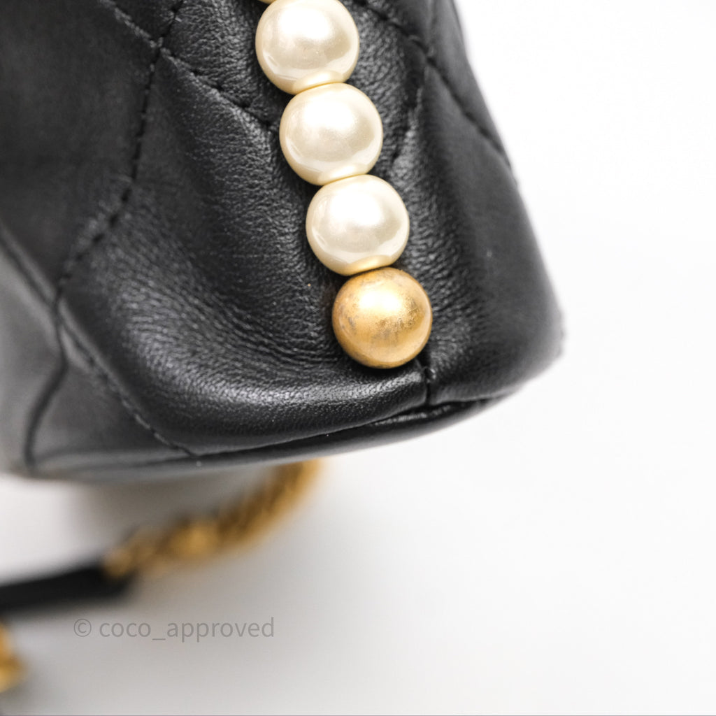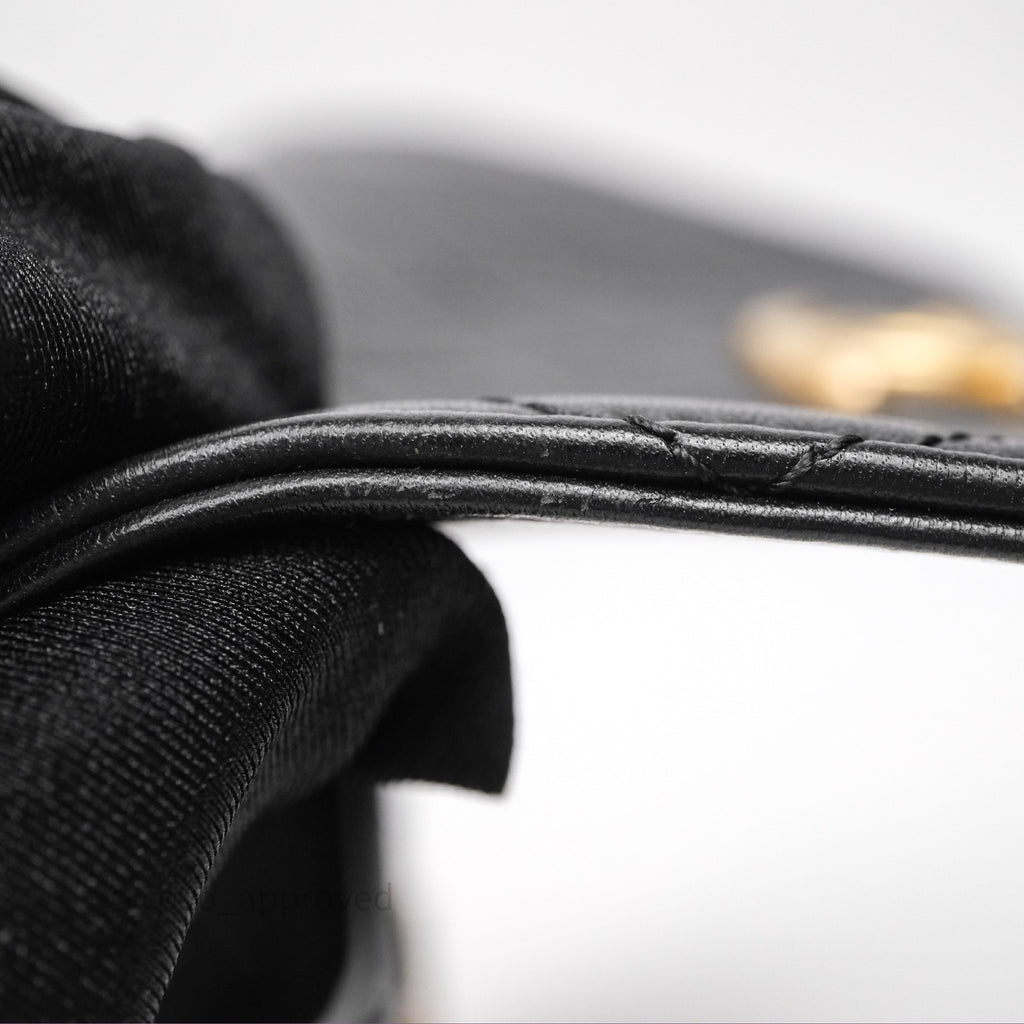Chanel Small Pearl Hobo Bag Black Calfskin Aged Gold Hardware