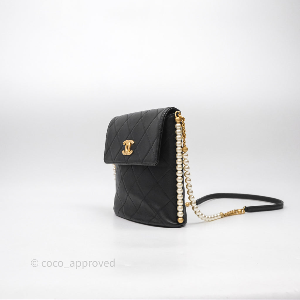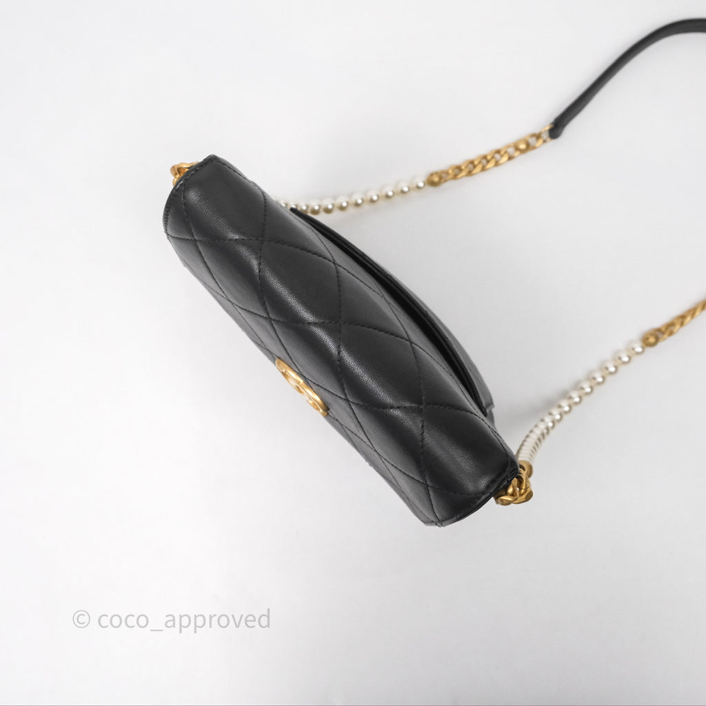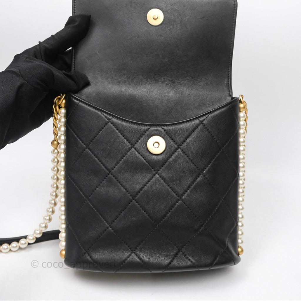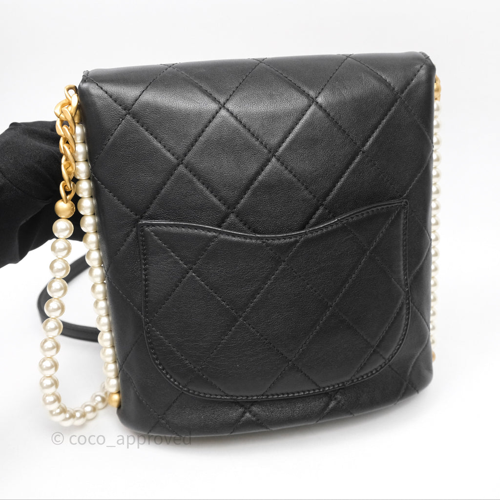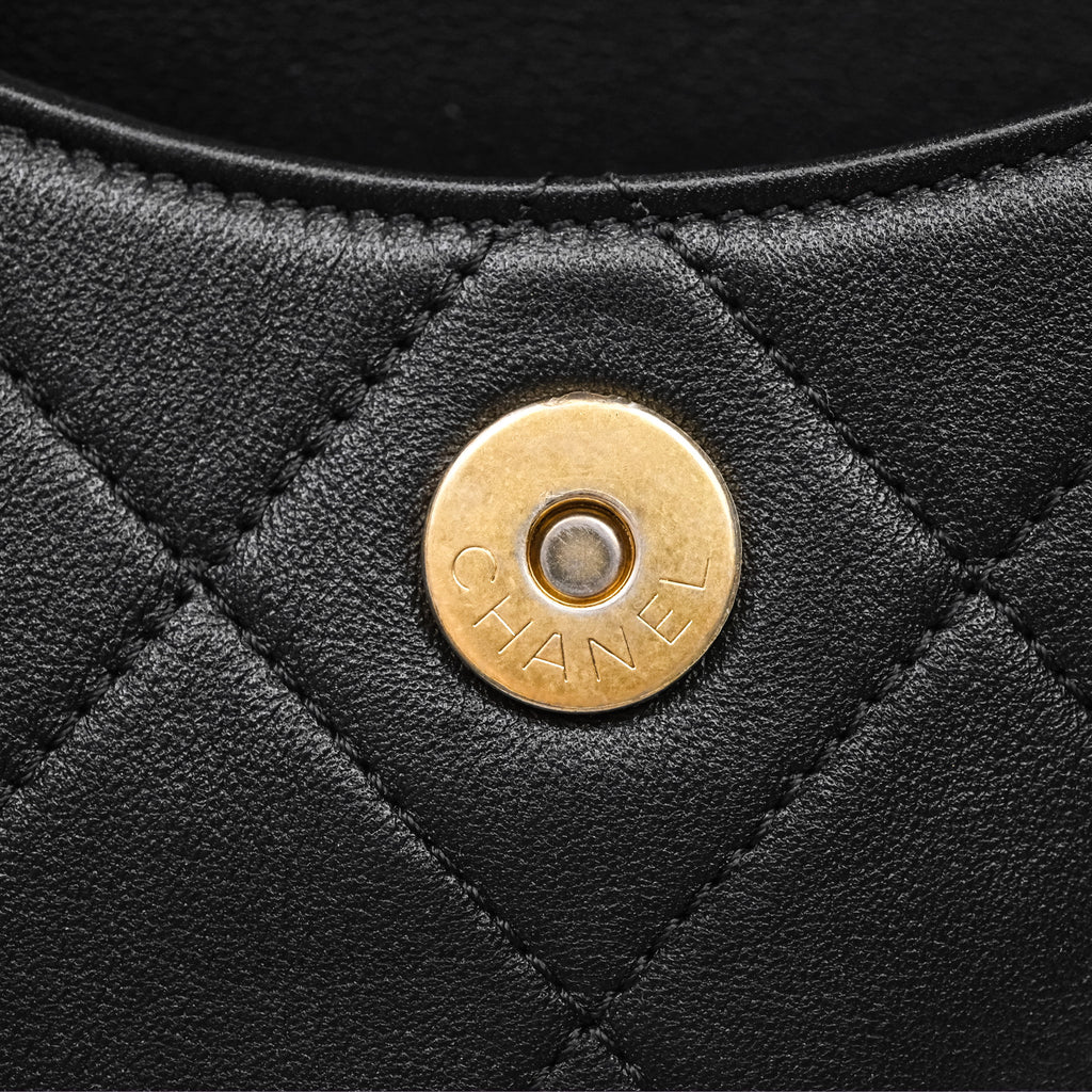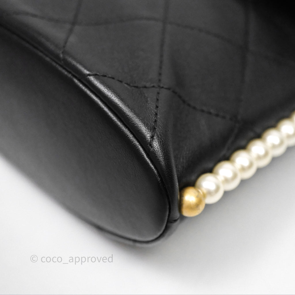Chanel Small Pearl Hobo Bag Black Calfskin Aged Gold Hardware