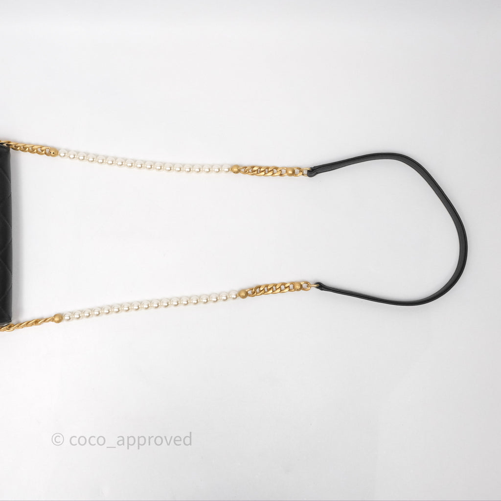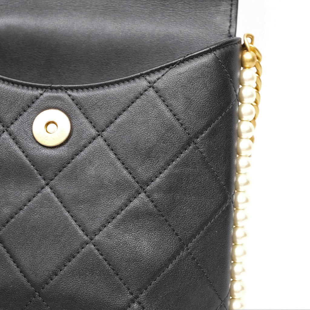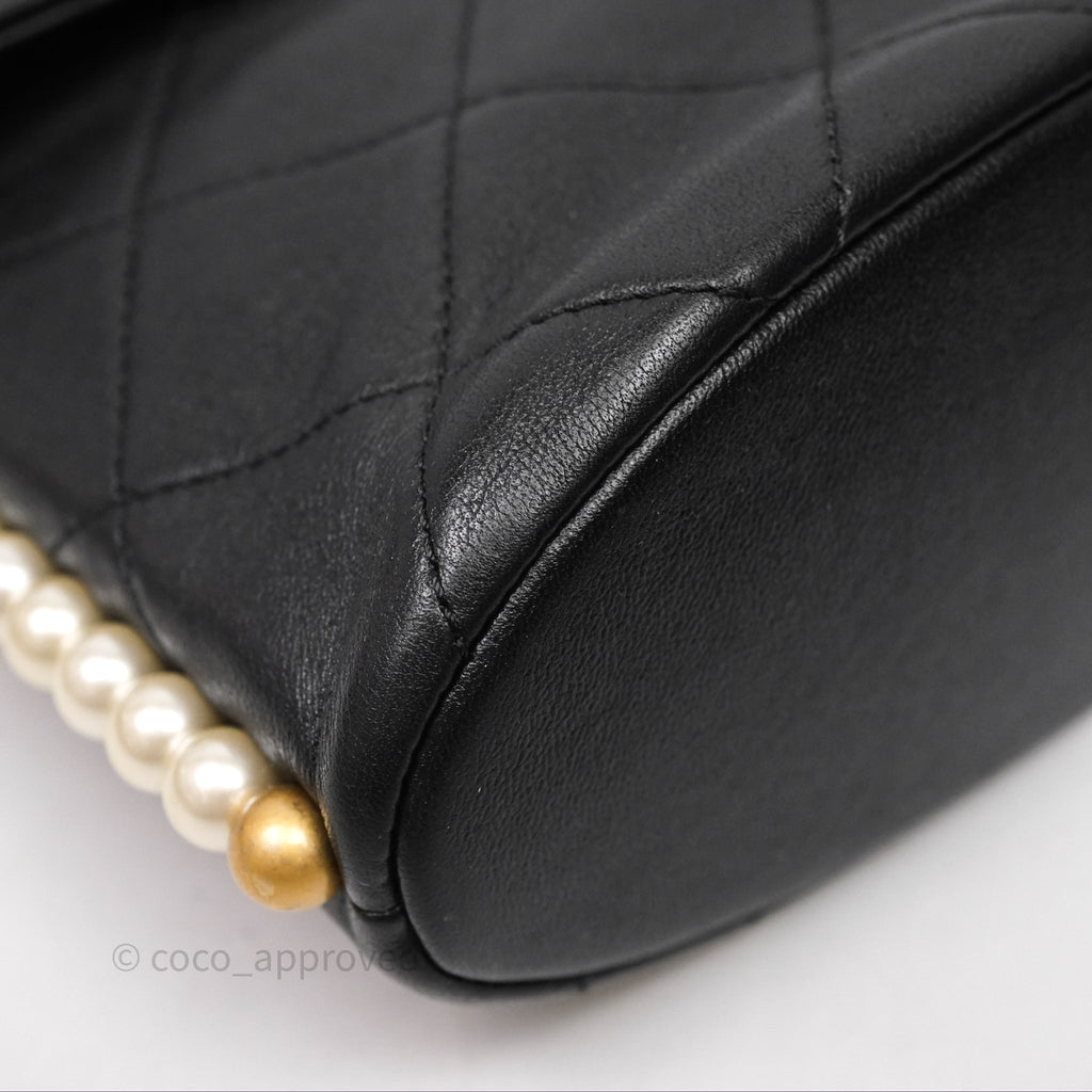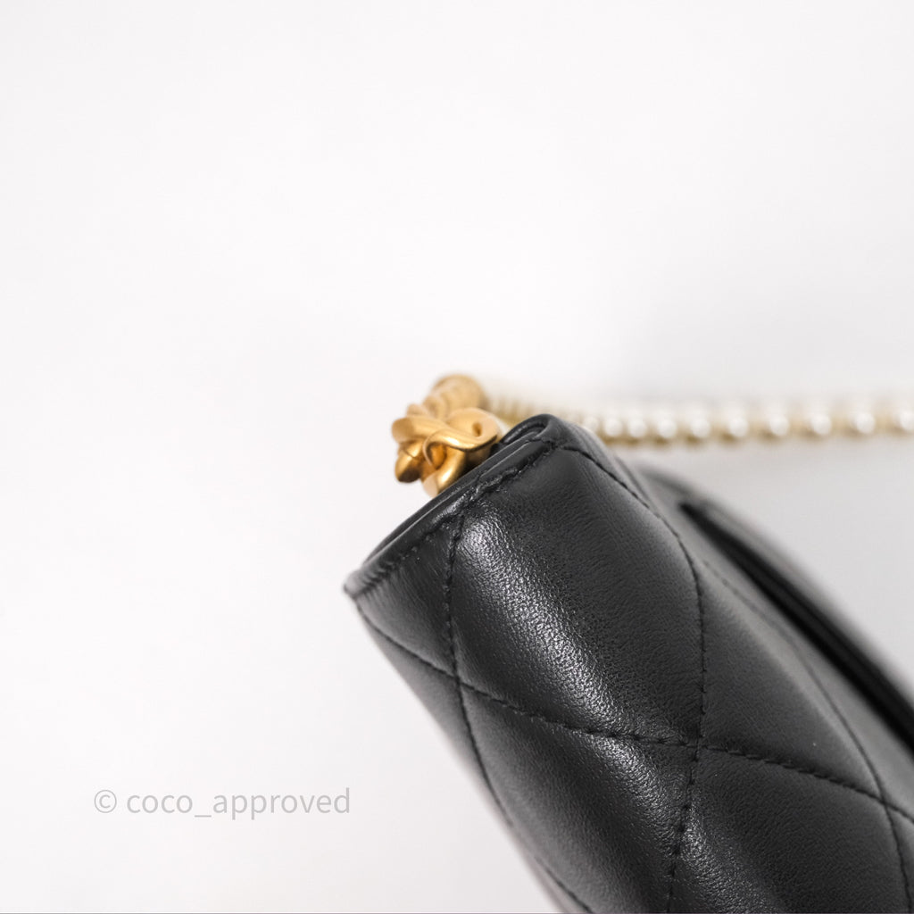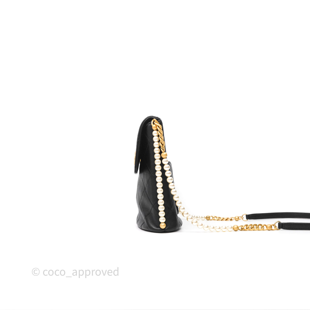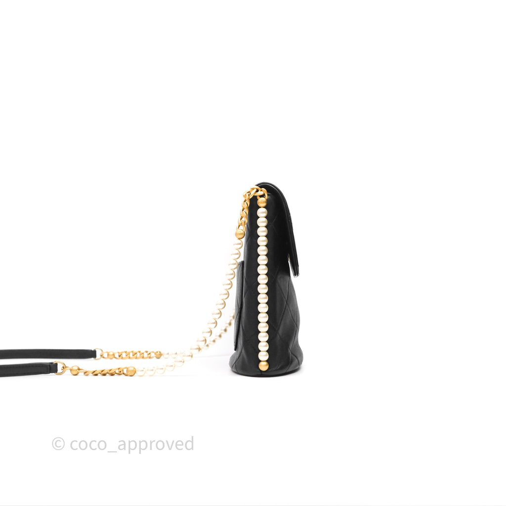 Chanel Small Pearl Hobo Bag Black Calfskin Aged Gold Hardware