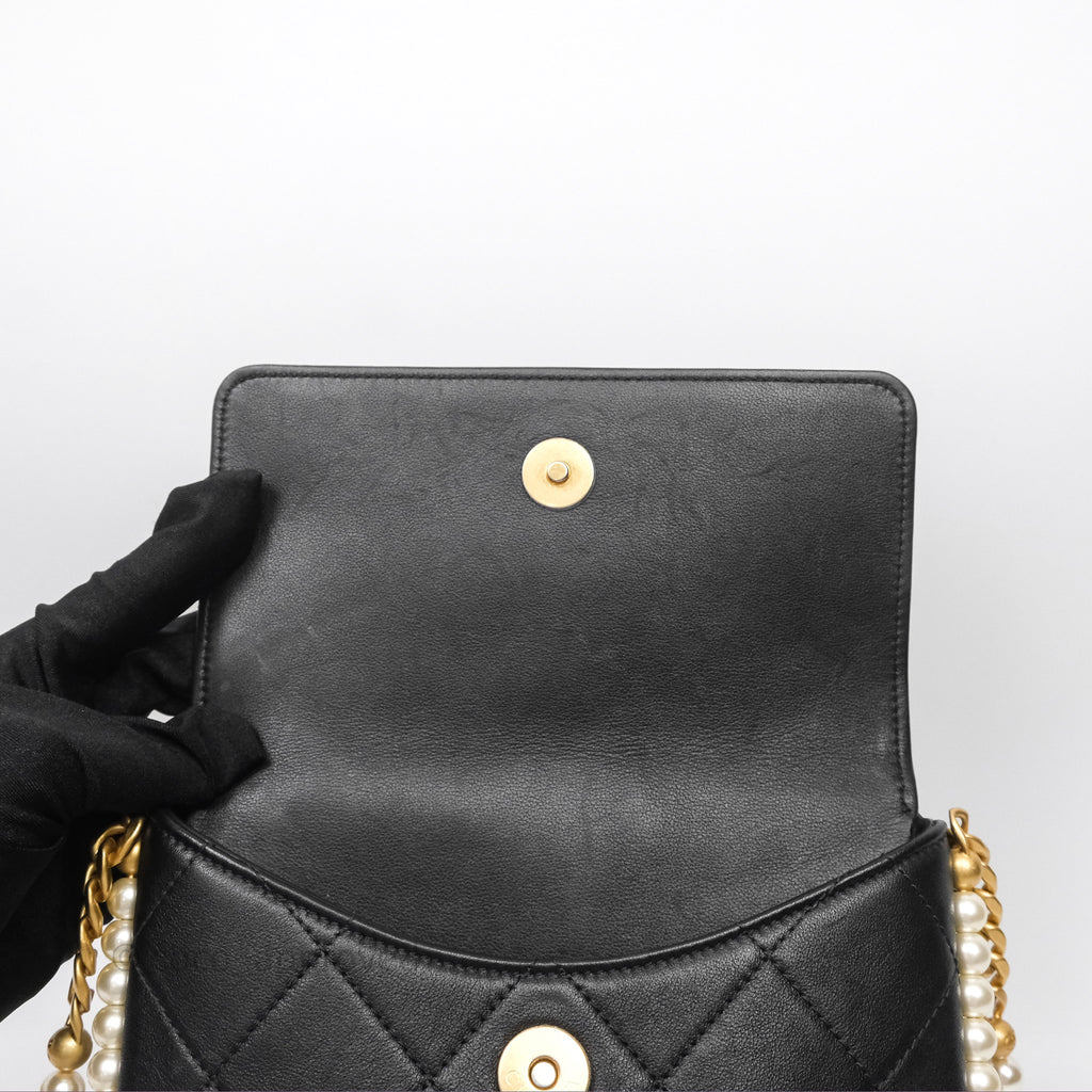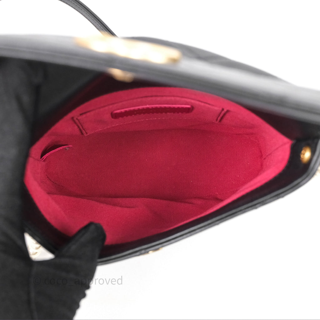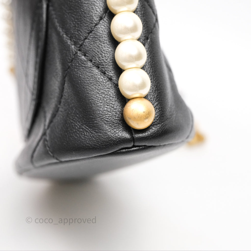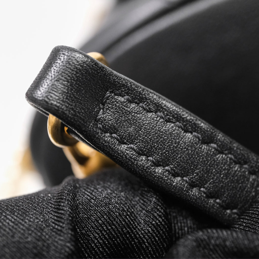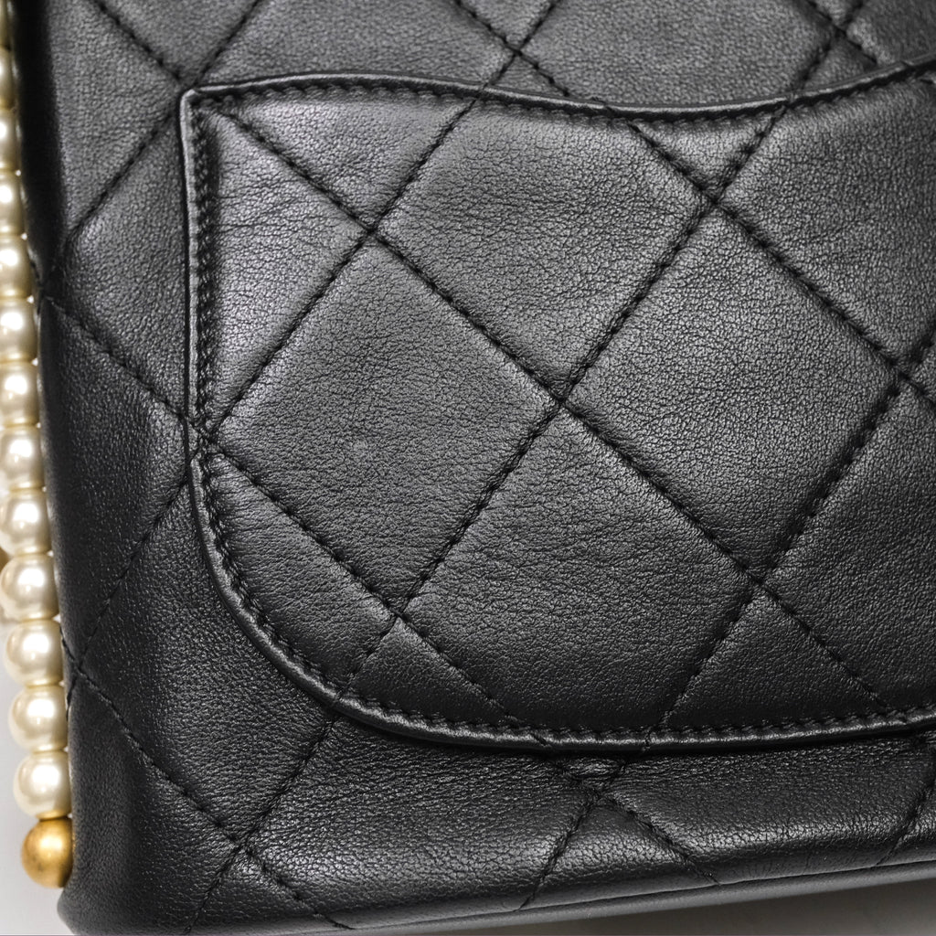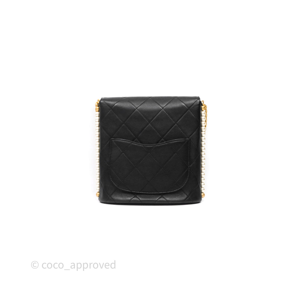 Chanel Small Pearl Hobo Bag Black Calfskin Aged Gold Hardware