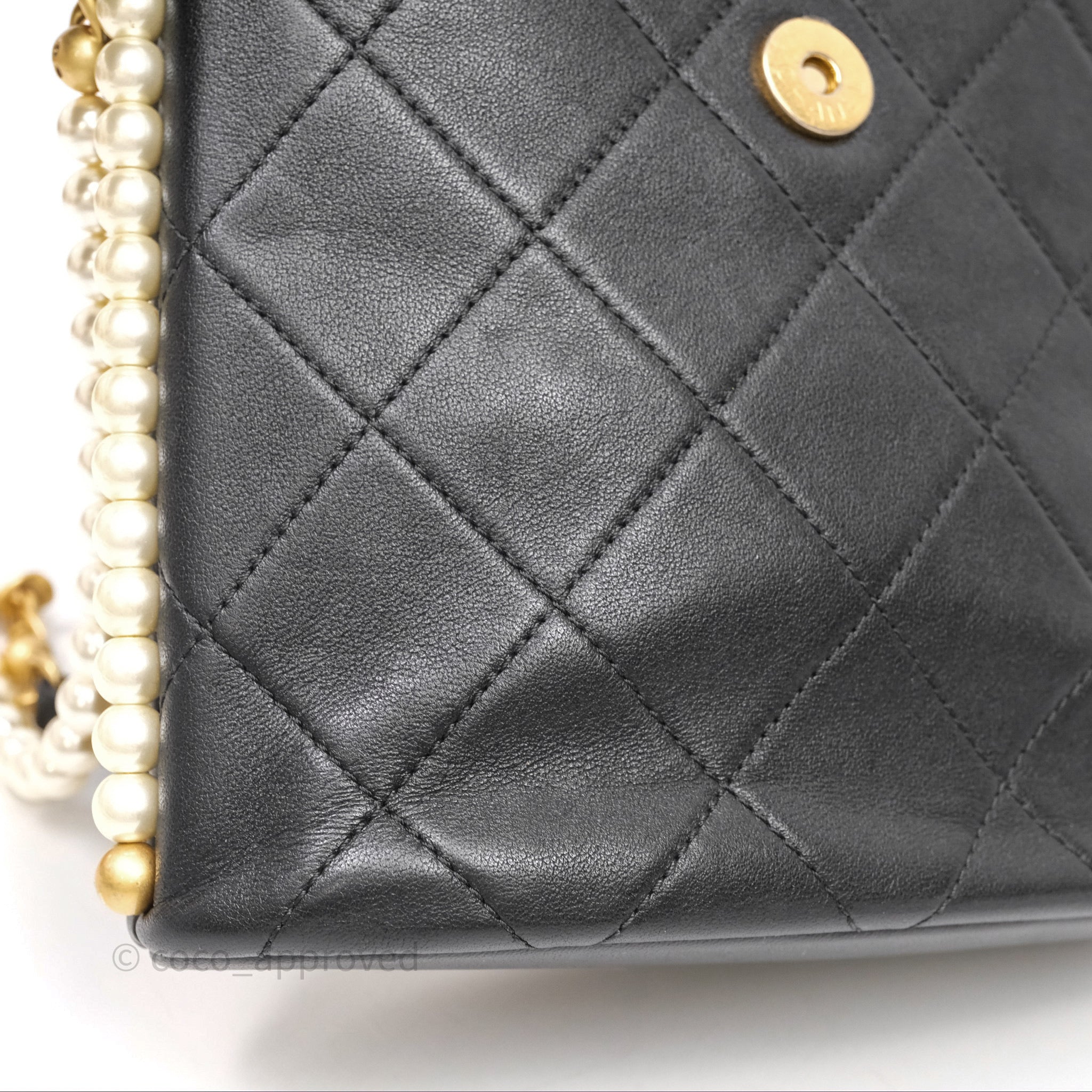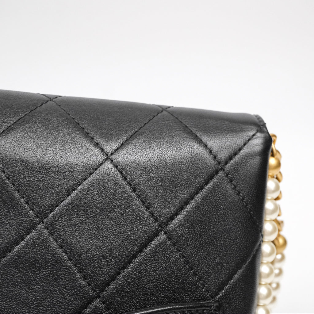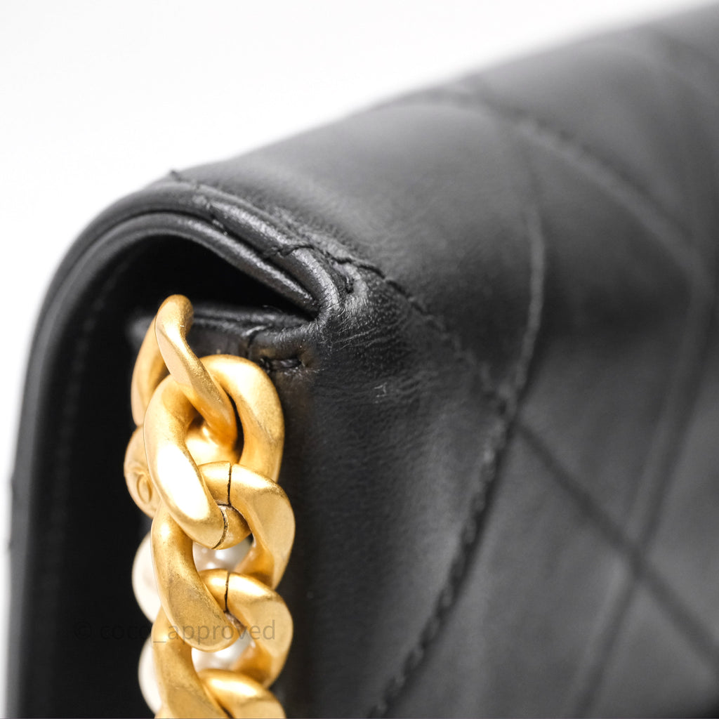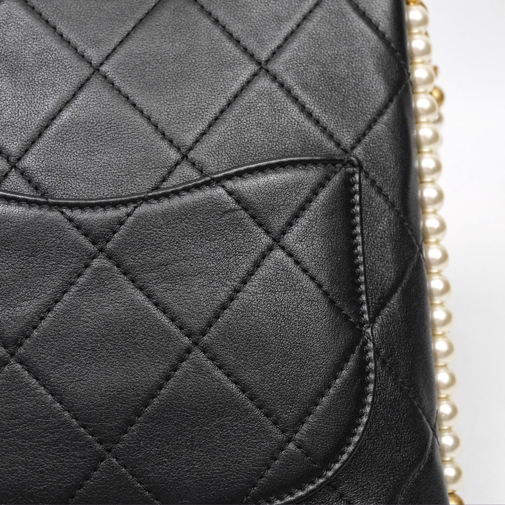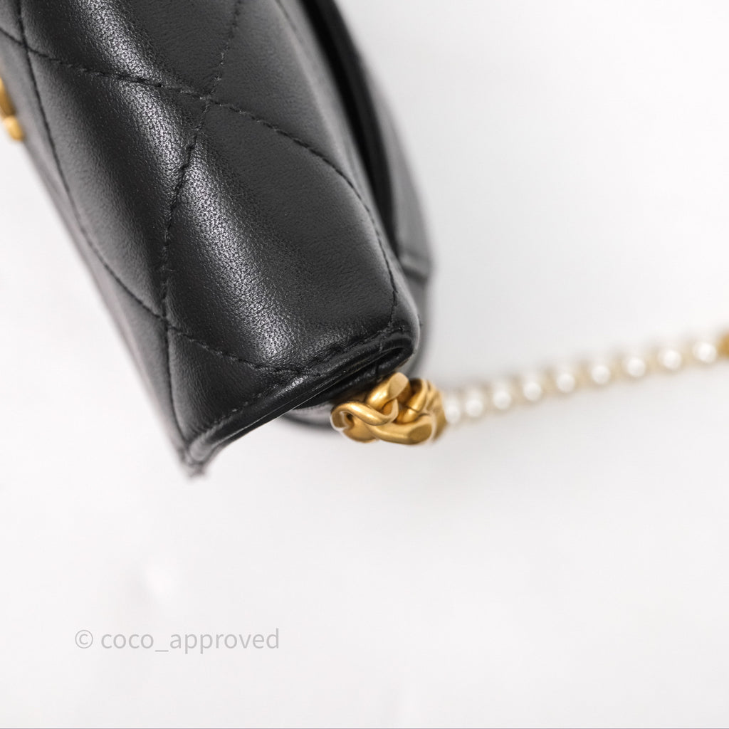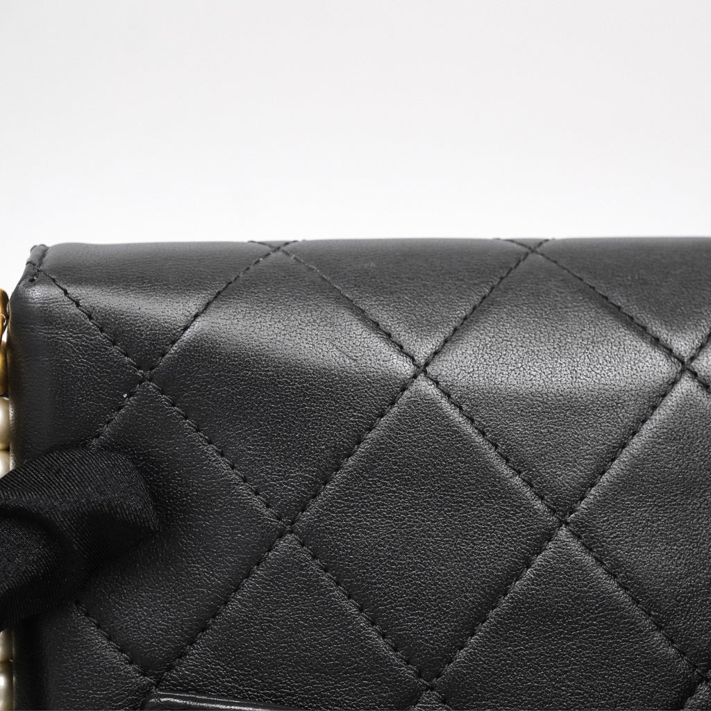 Chanel Small Pearl Hobo Bag Black Calfskin Aged Gold Hardware