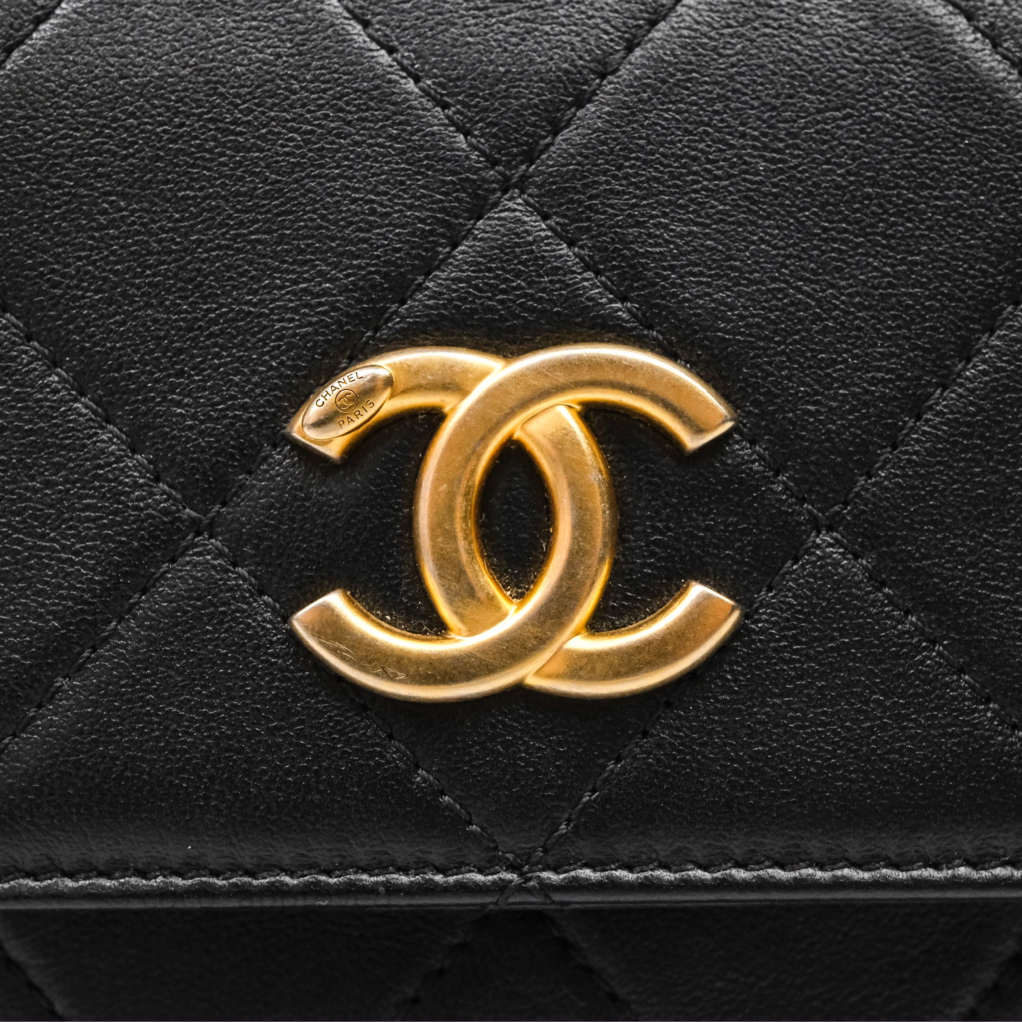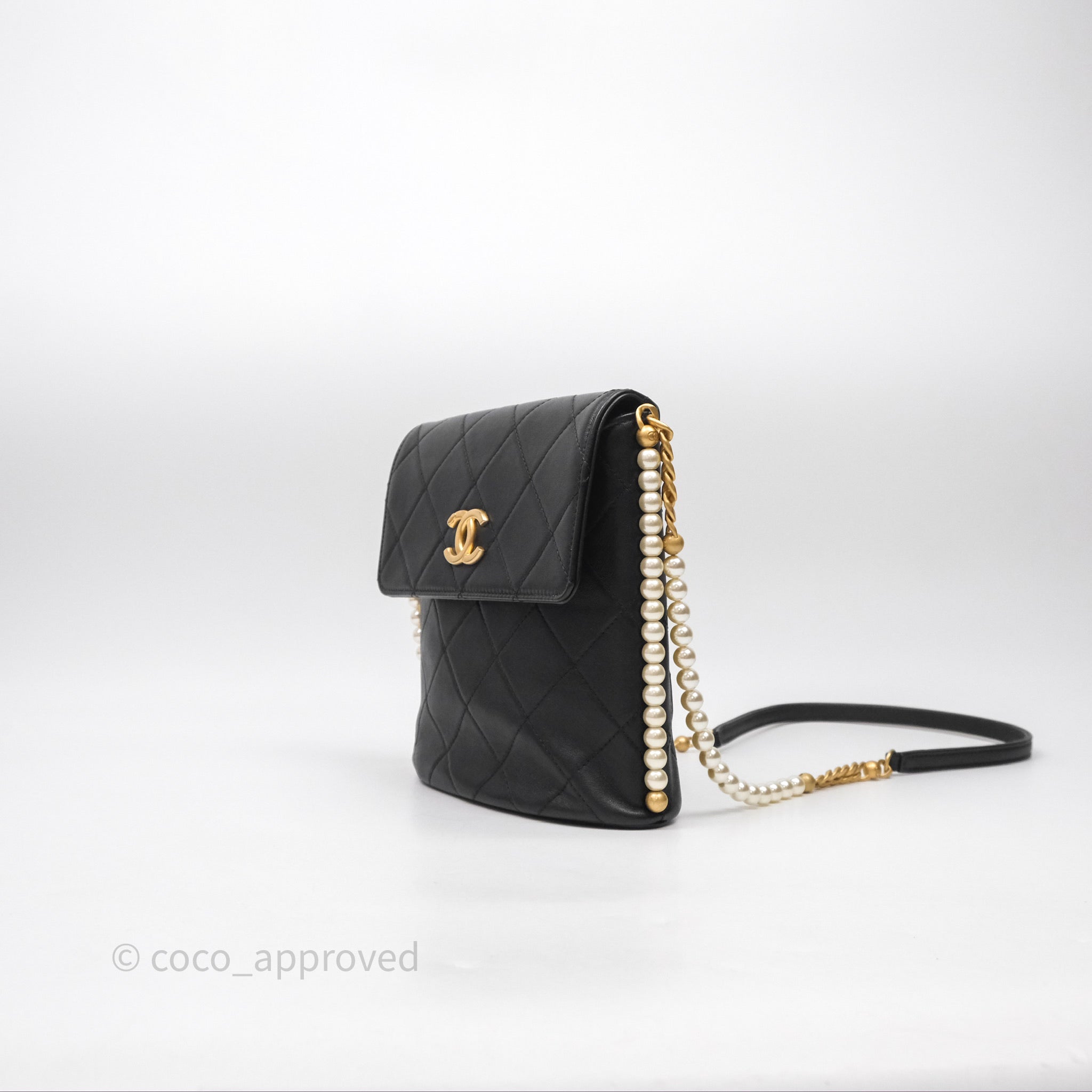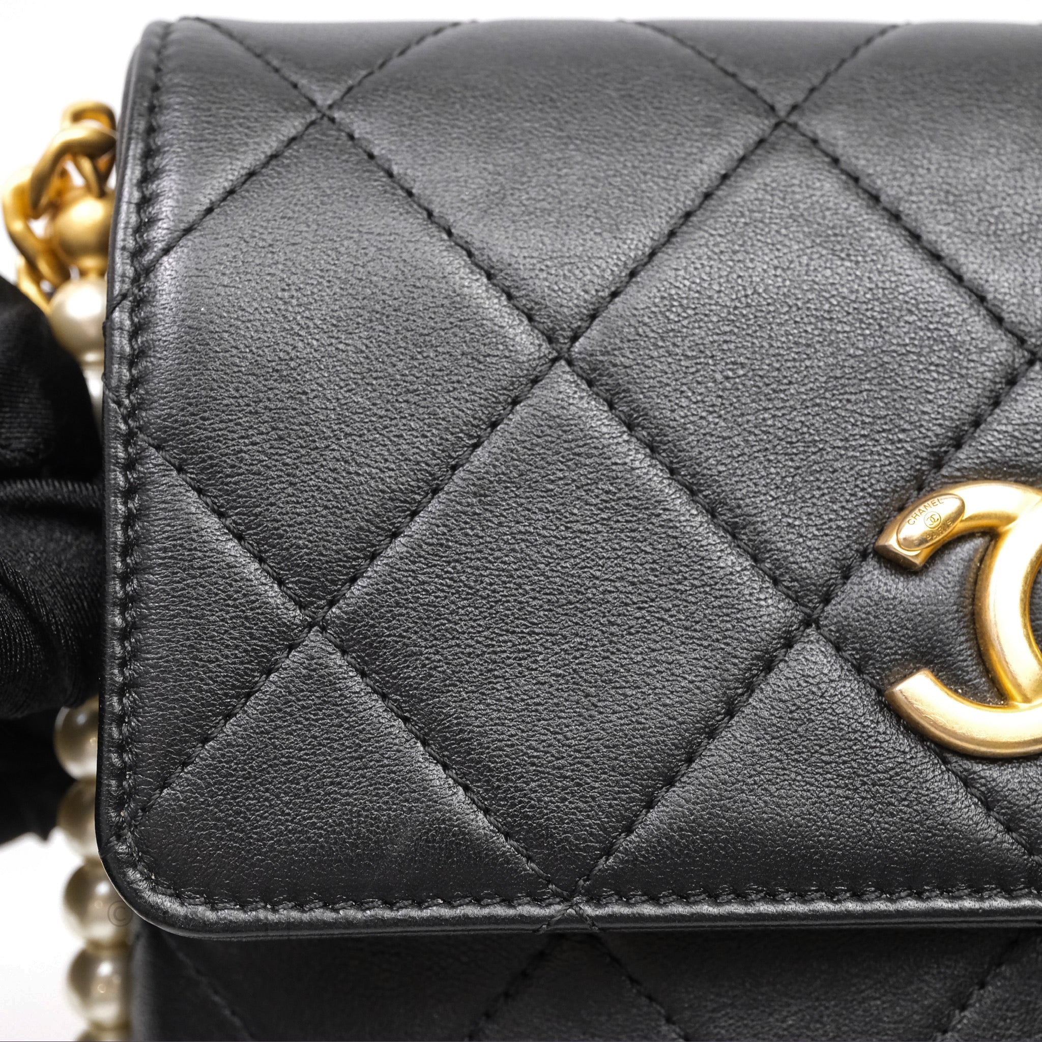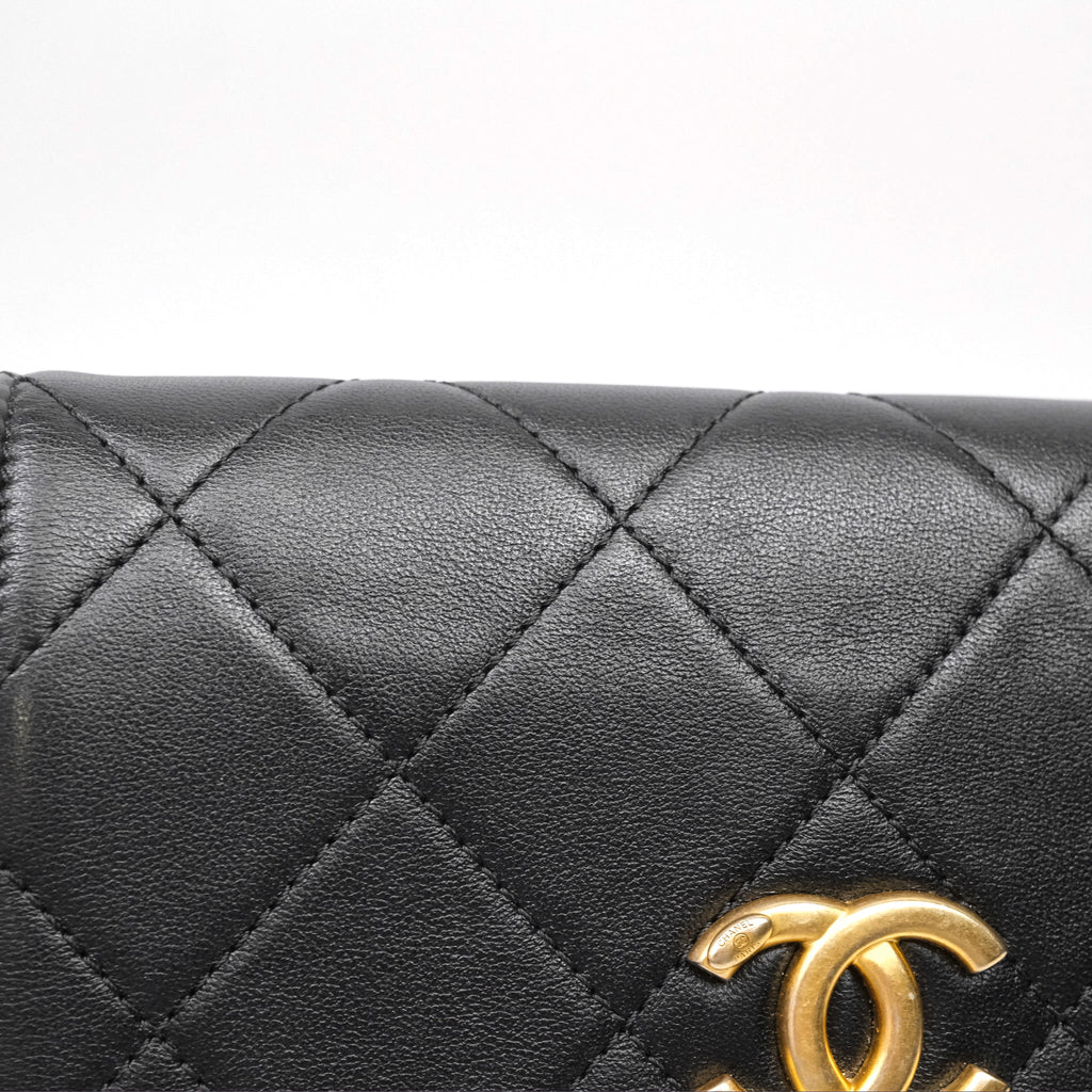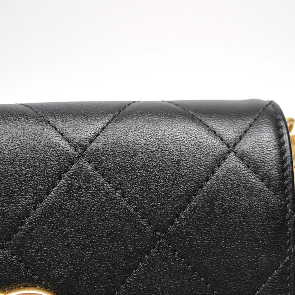 Chanel Small Pearl Hobo Bag Black Calfskin Aged Gold Hardware