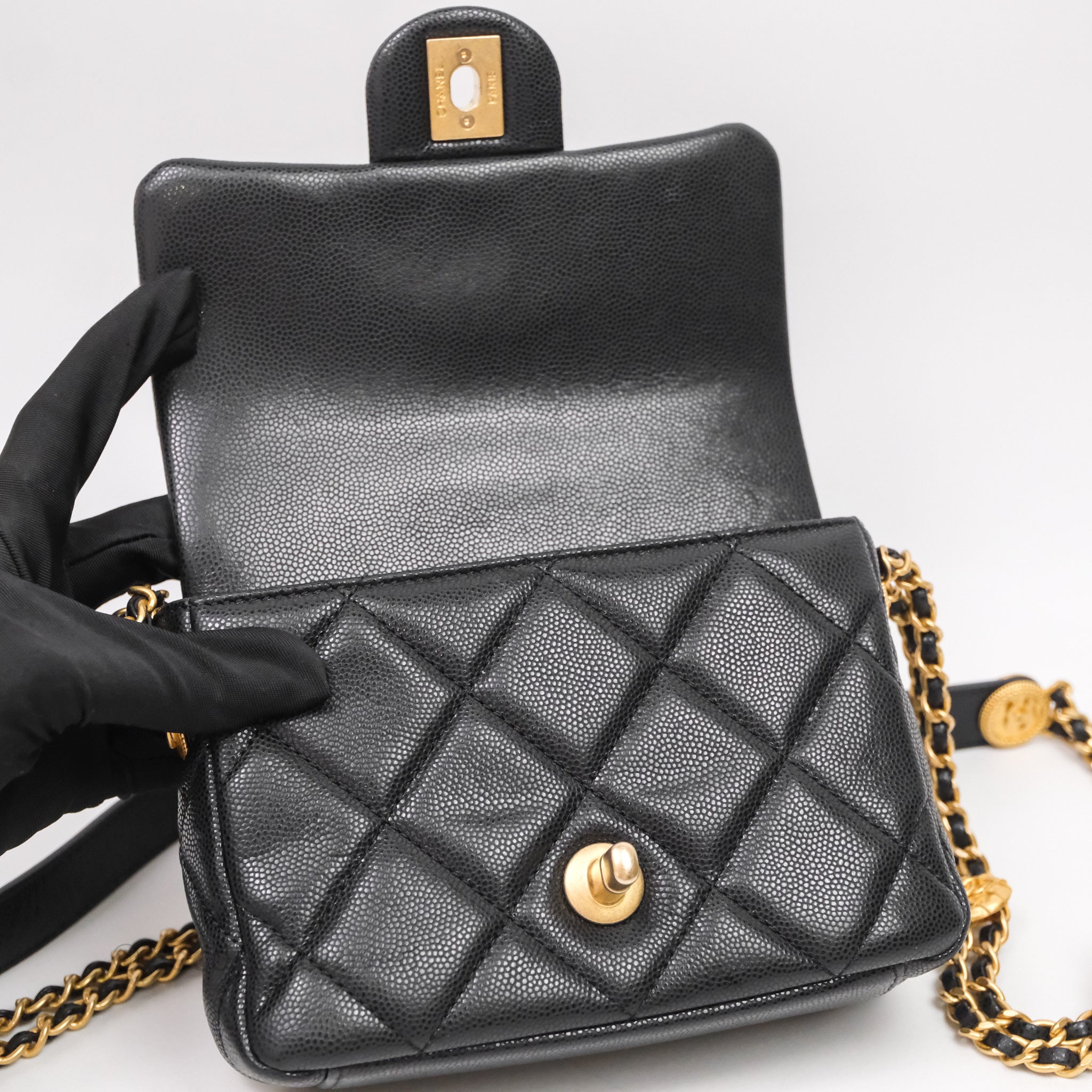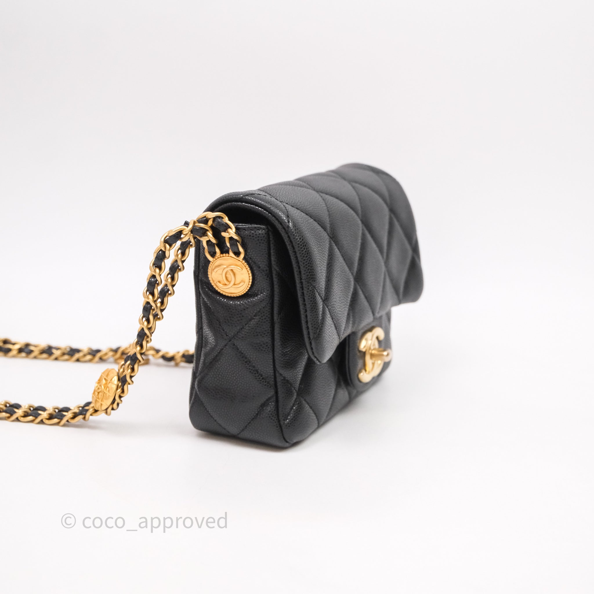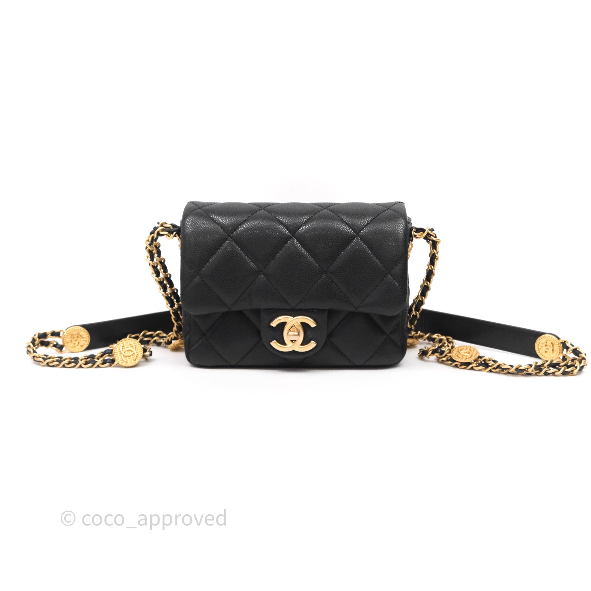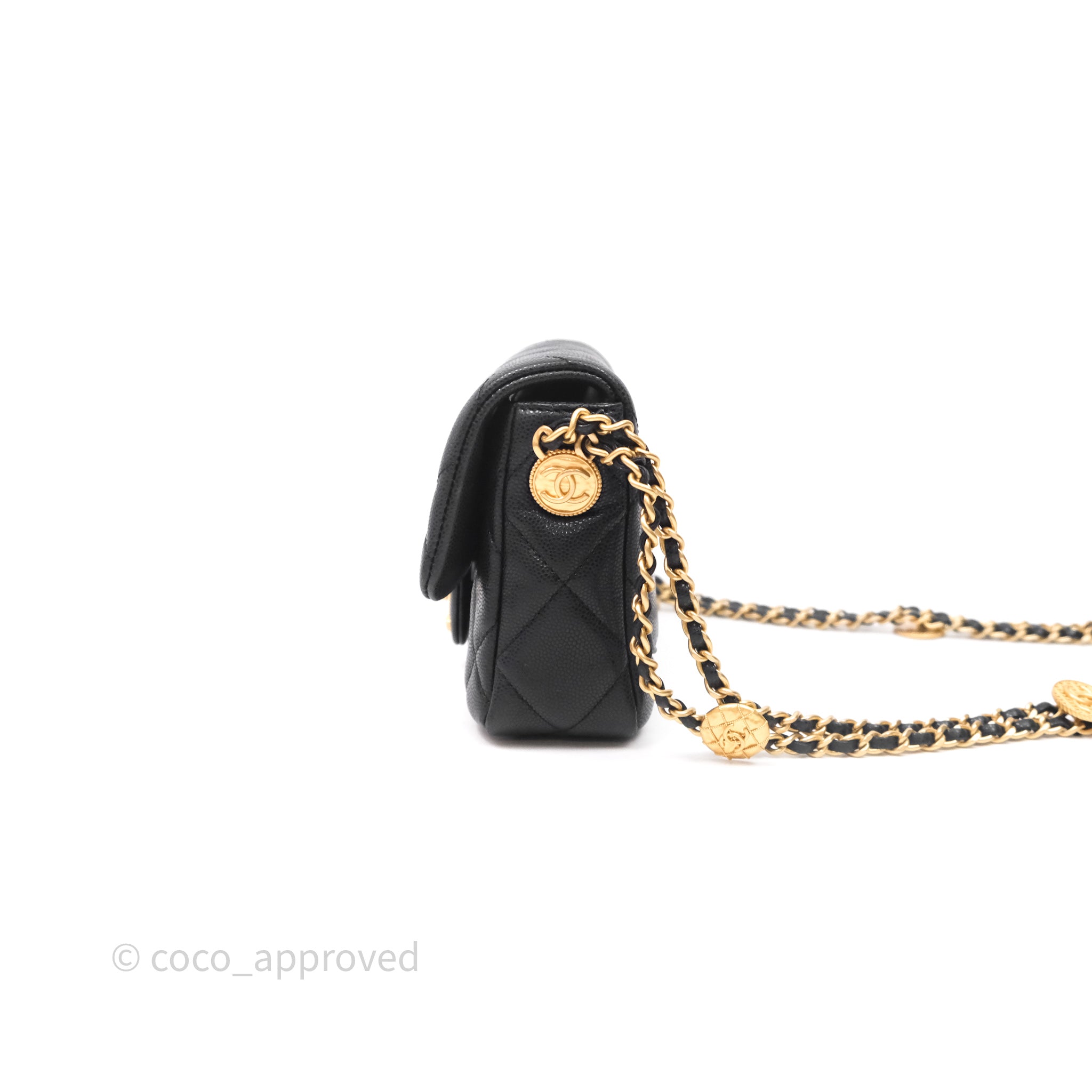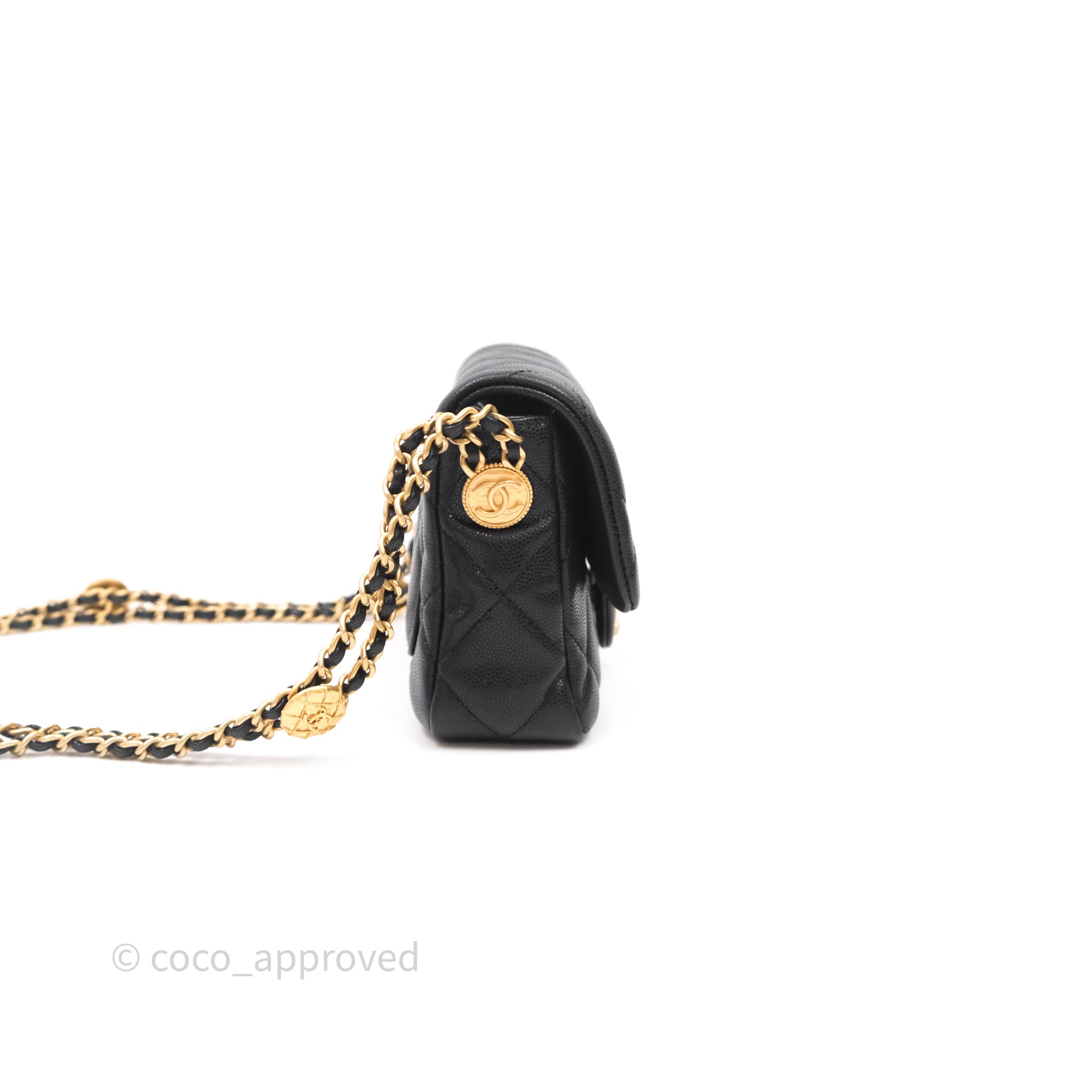Chanel Twist Your Buttons Caviar Coin Purse Chain Black Bag Gold Hardware