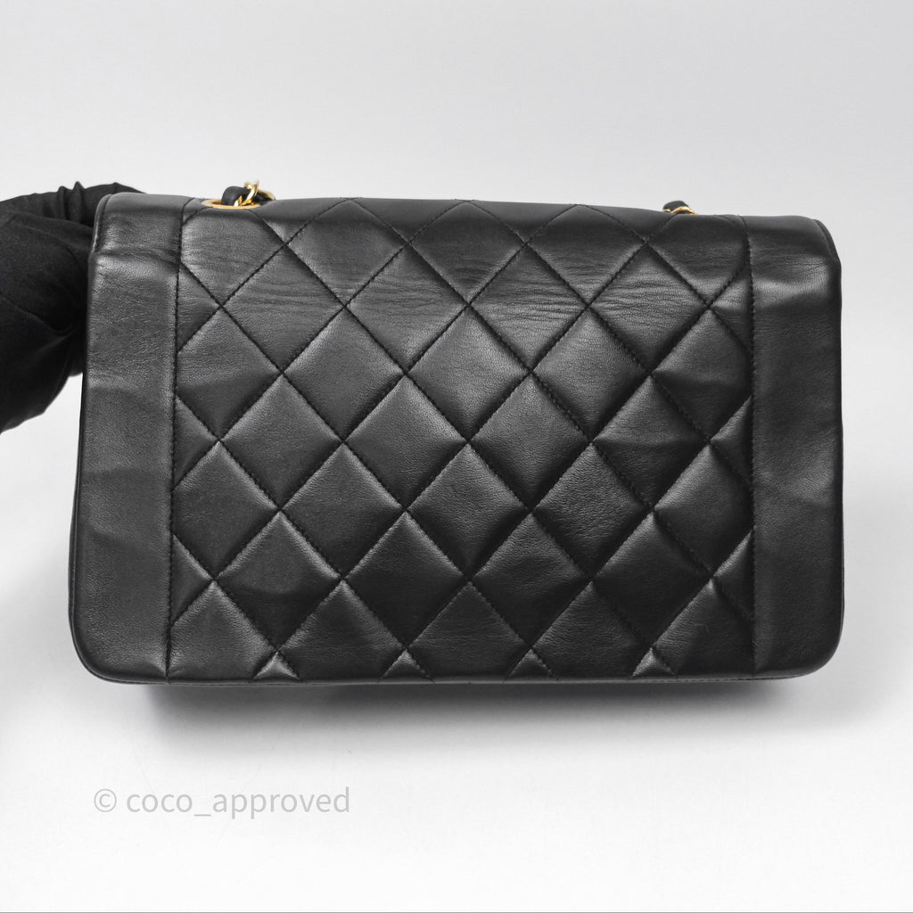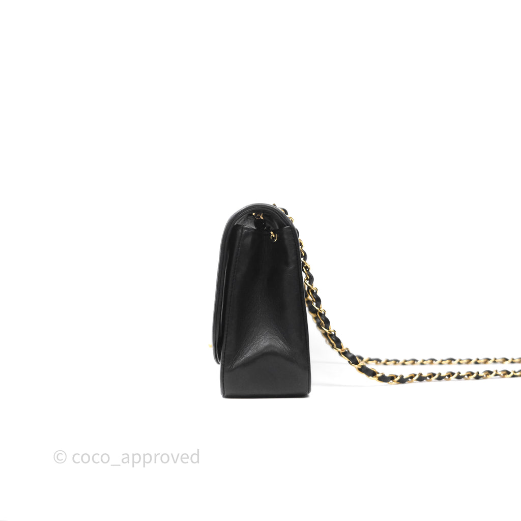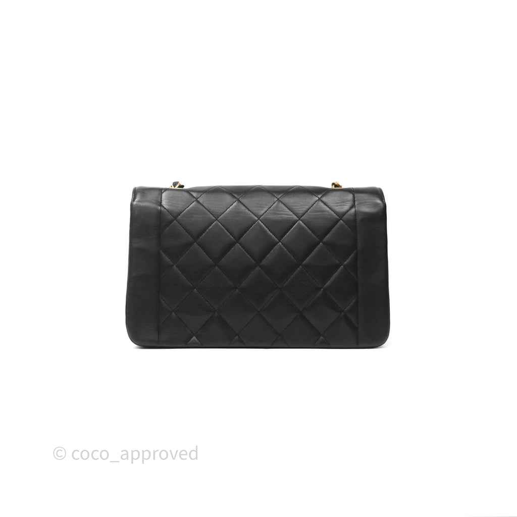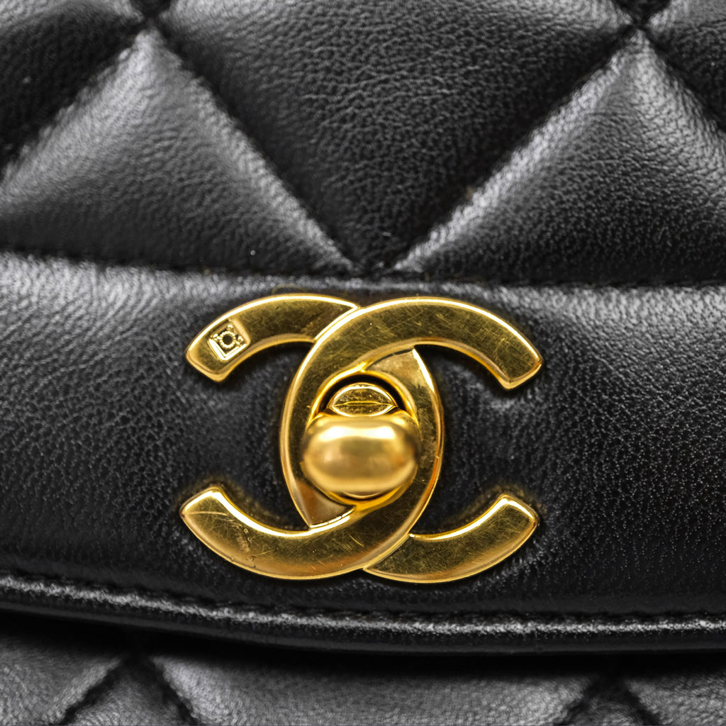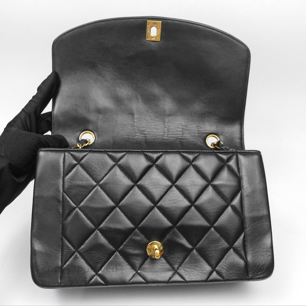 Chanel Vintage Medium Classic Diana Flap Bag Black Lambskin 24K Gold Hardware