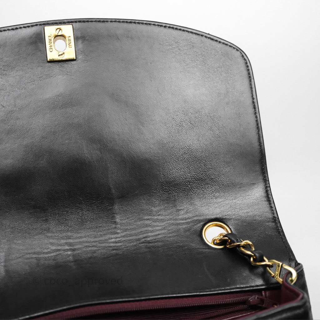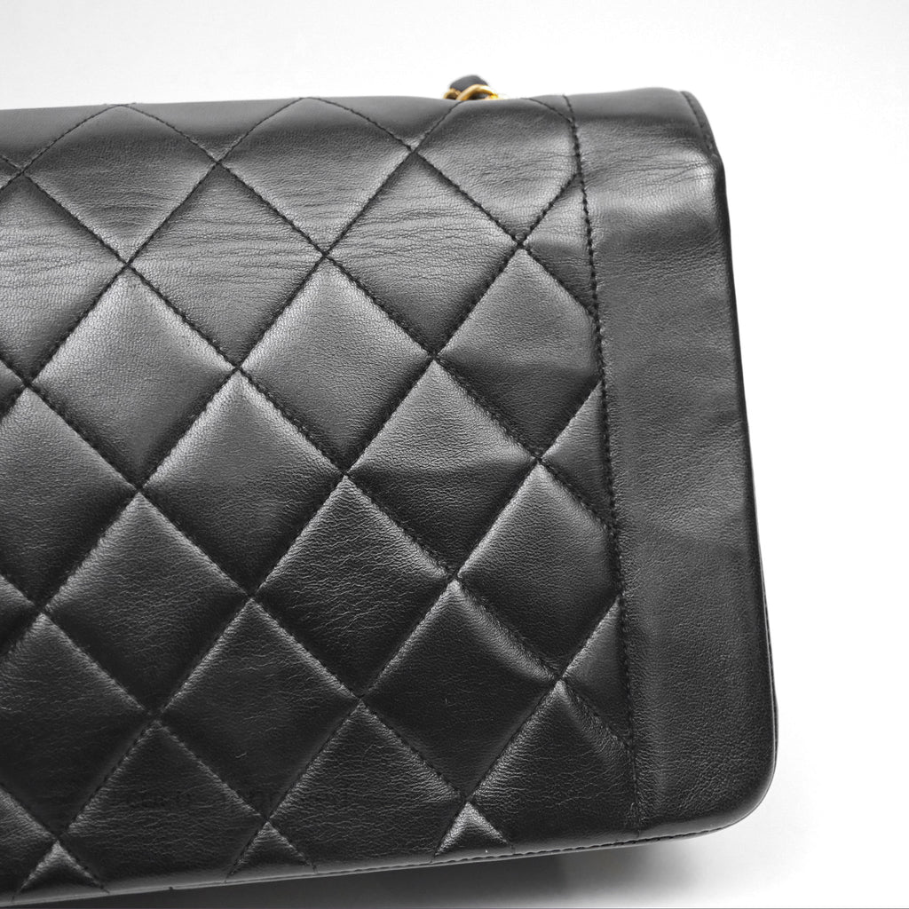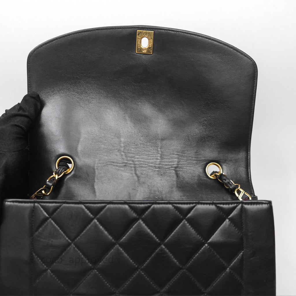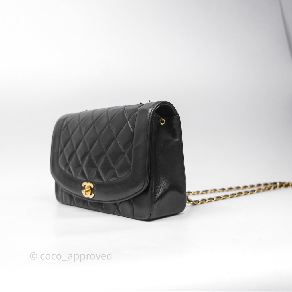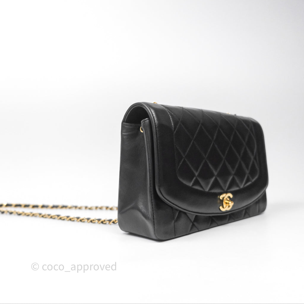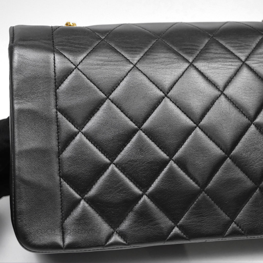 Chanel Vintage Medium Classic Diana Flap Bag Black Lambskin 24K Gold Hardware
