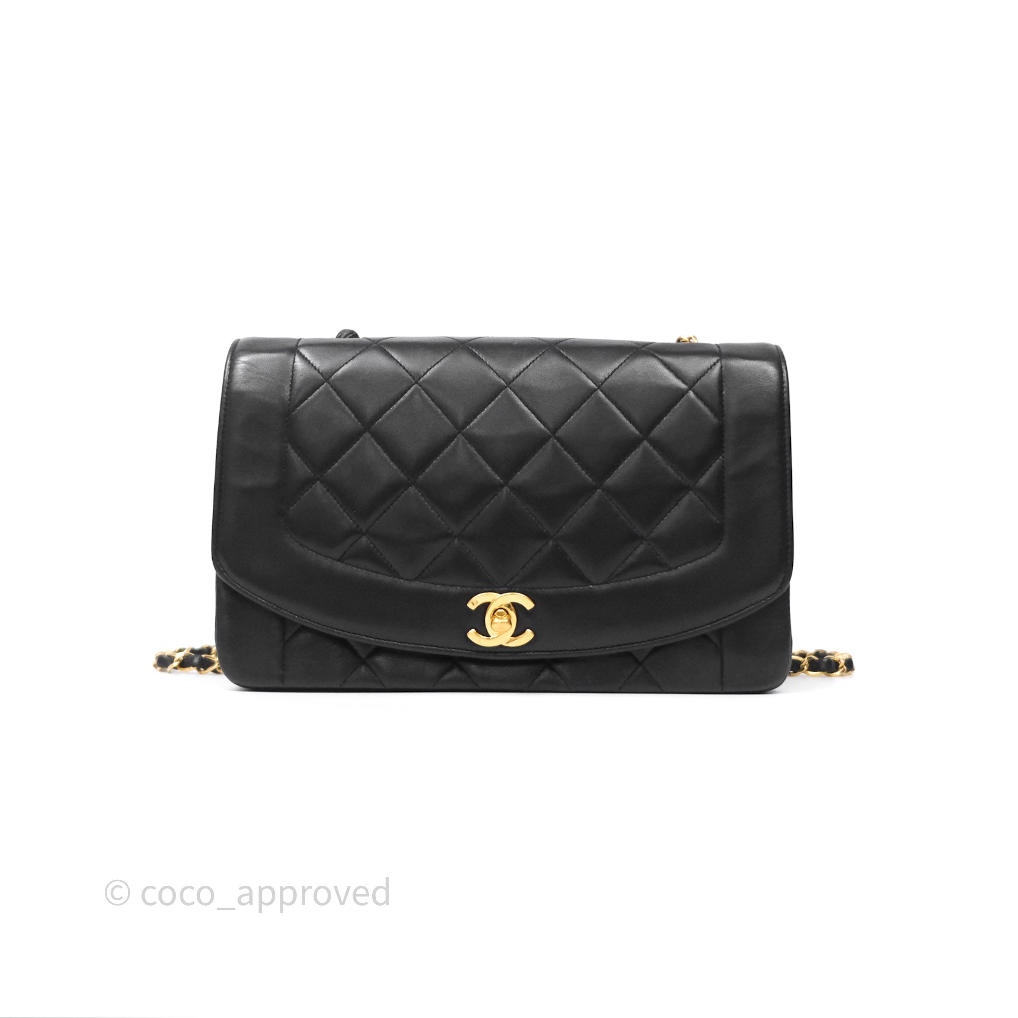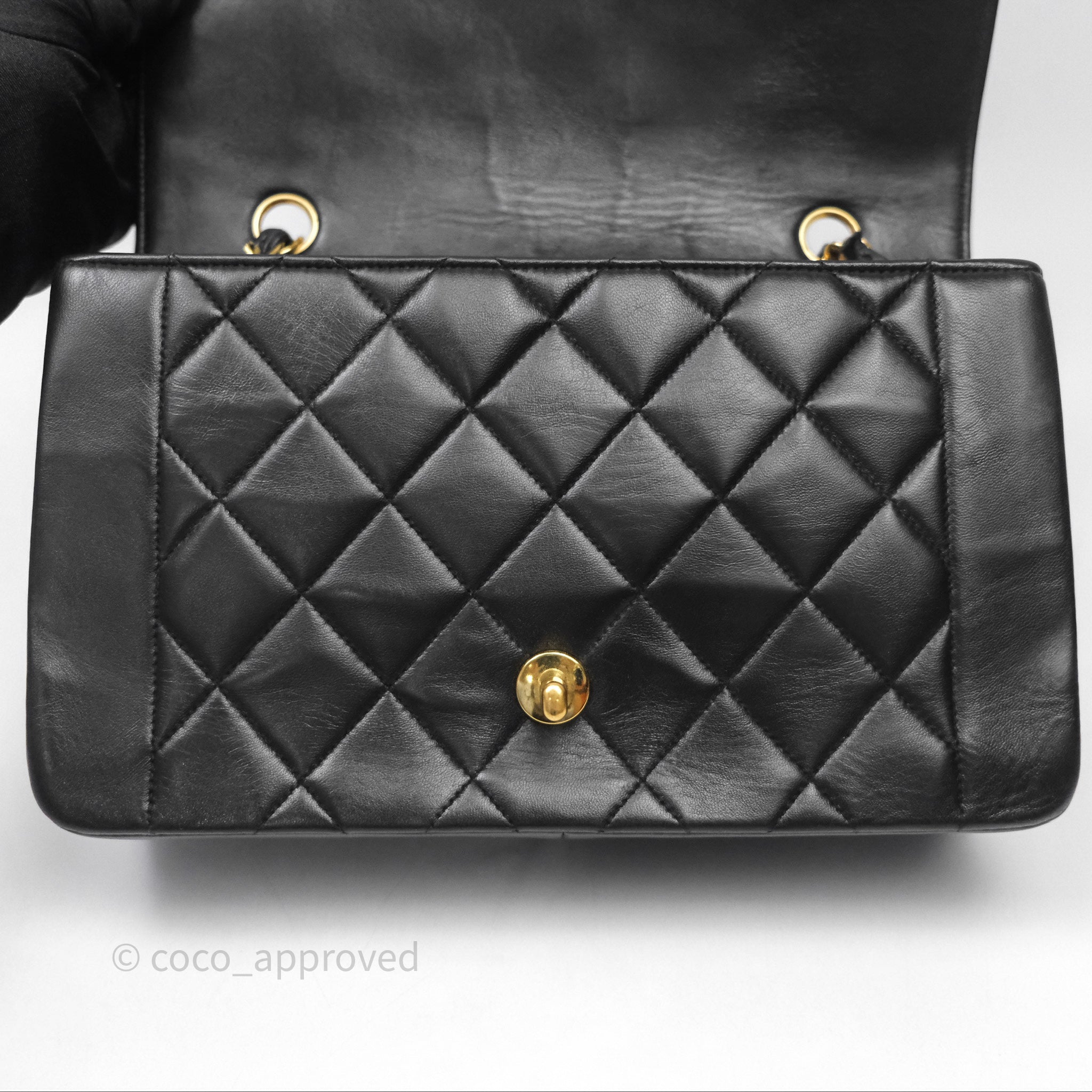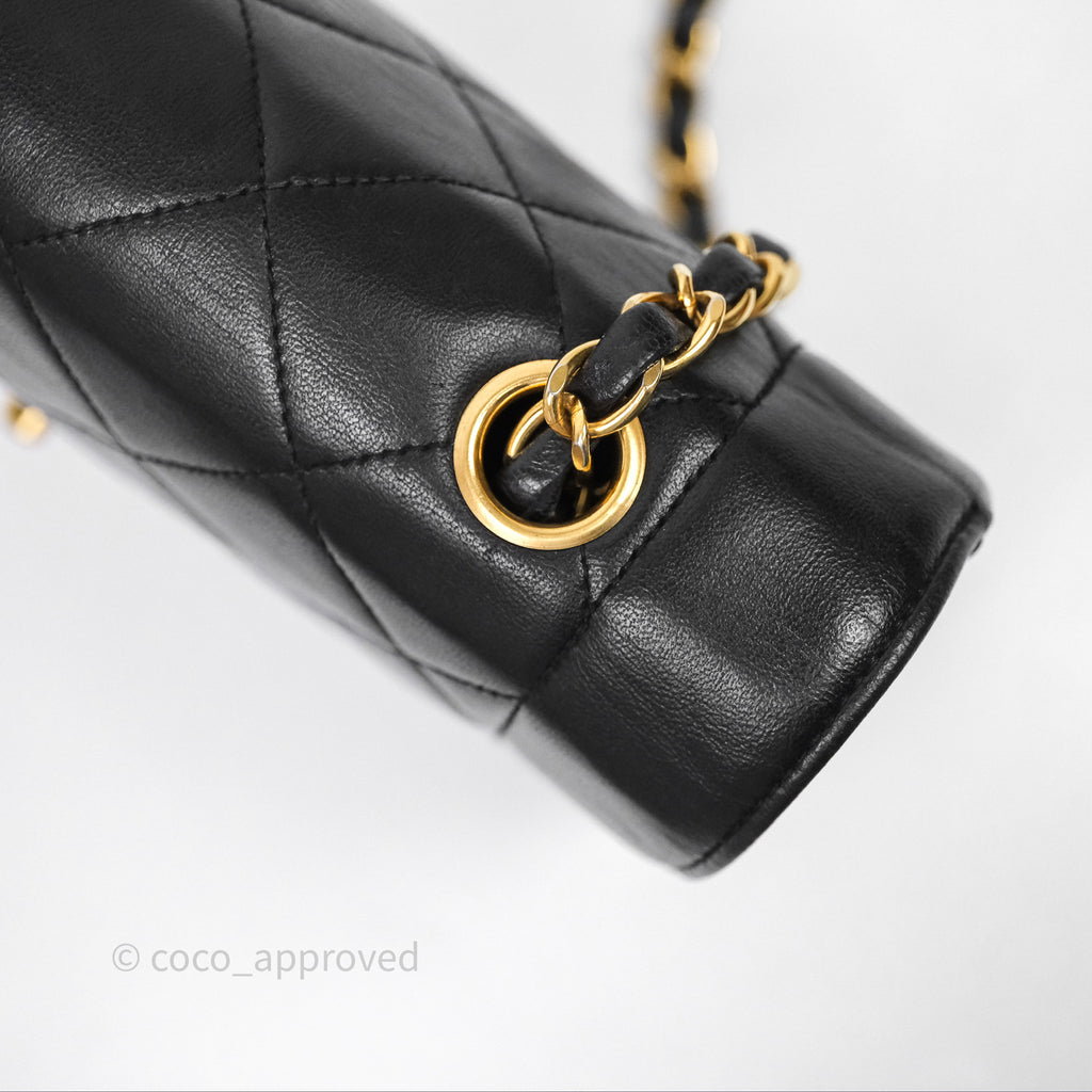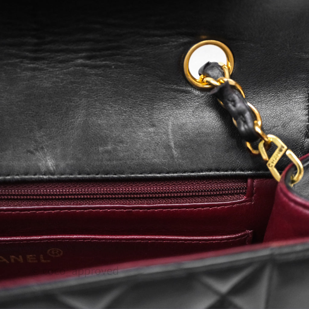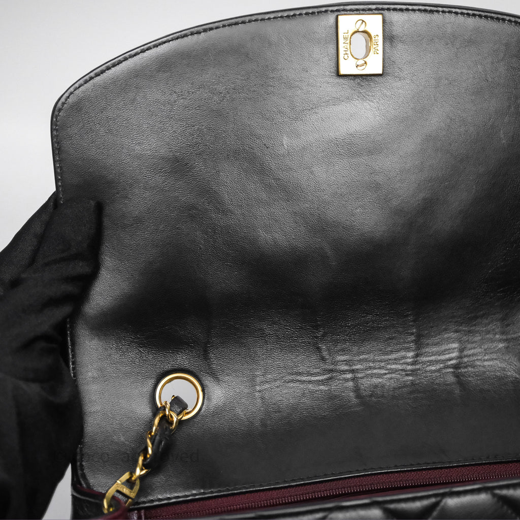 Chanel Vintage Medium Classic Diana Flap Bag Black Lambskin 24K Gold Hardware