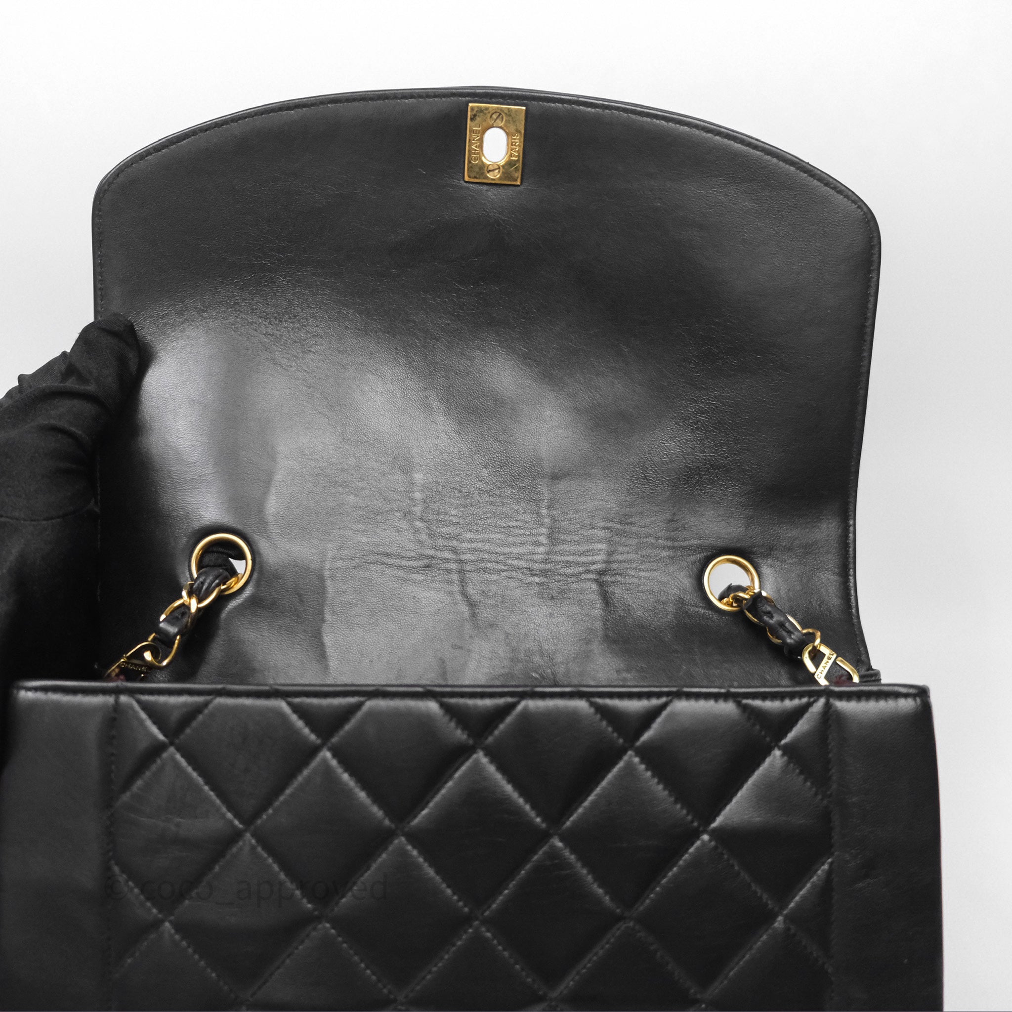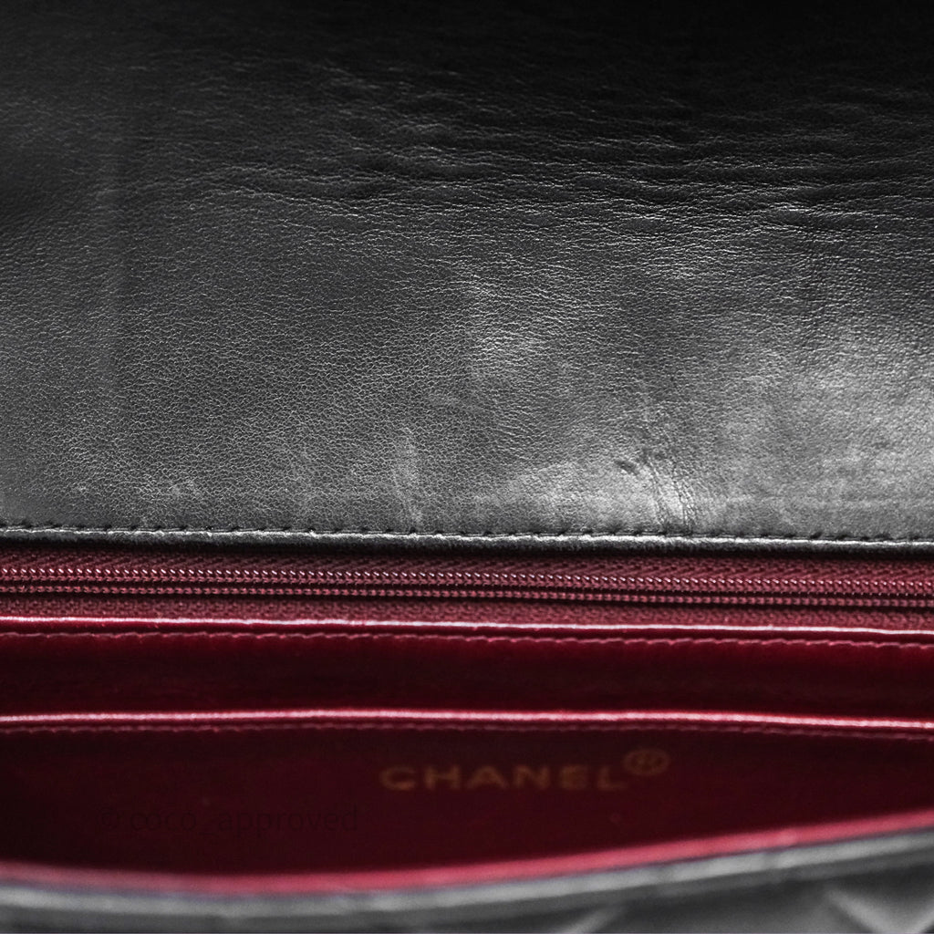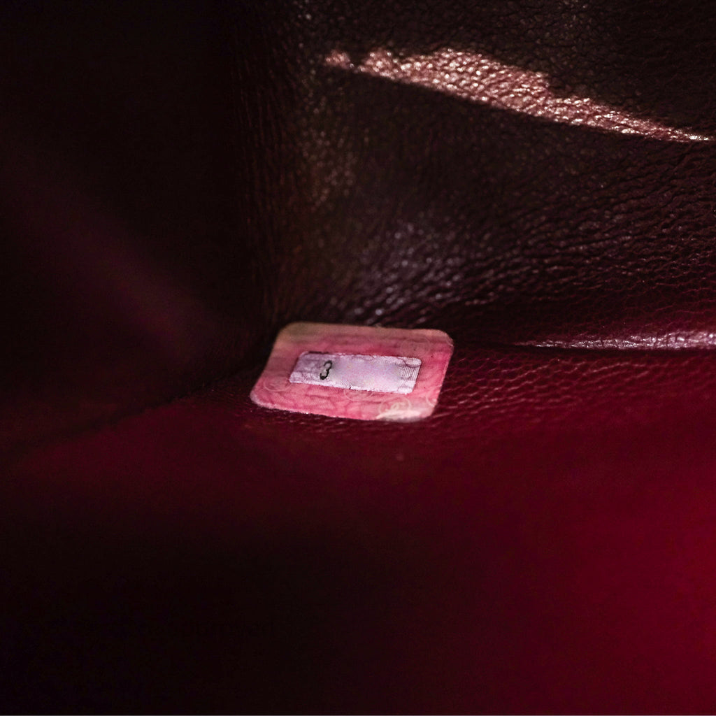Vintage rank AB excellent condition. Hairlines on CC buckle. Dent on bottom. Scratches and marks on under flap and in interior.