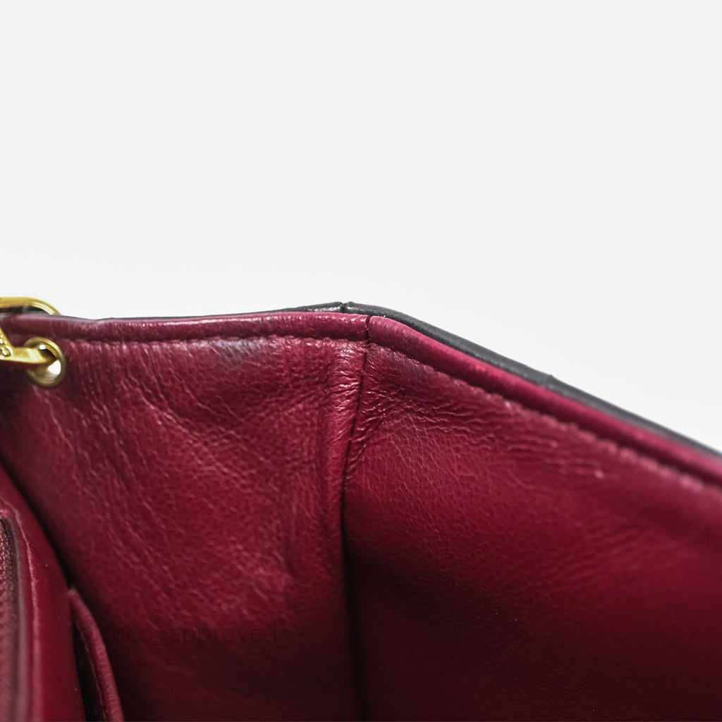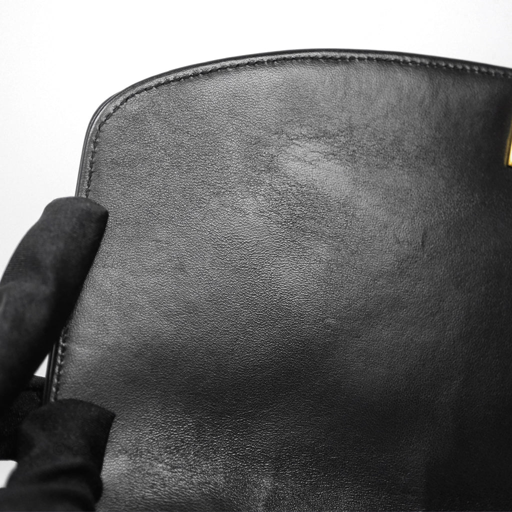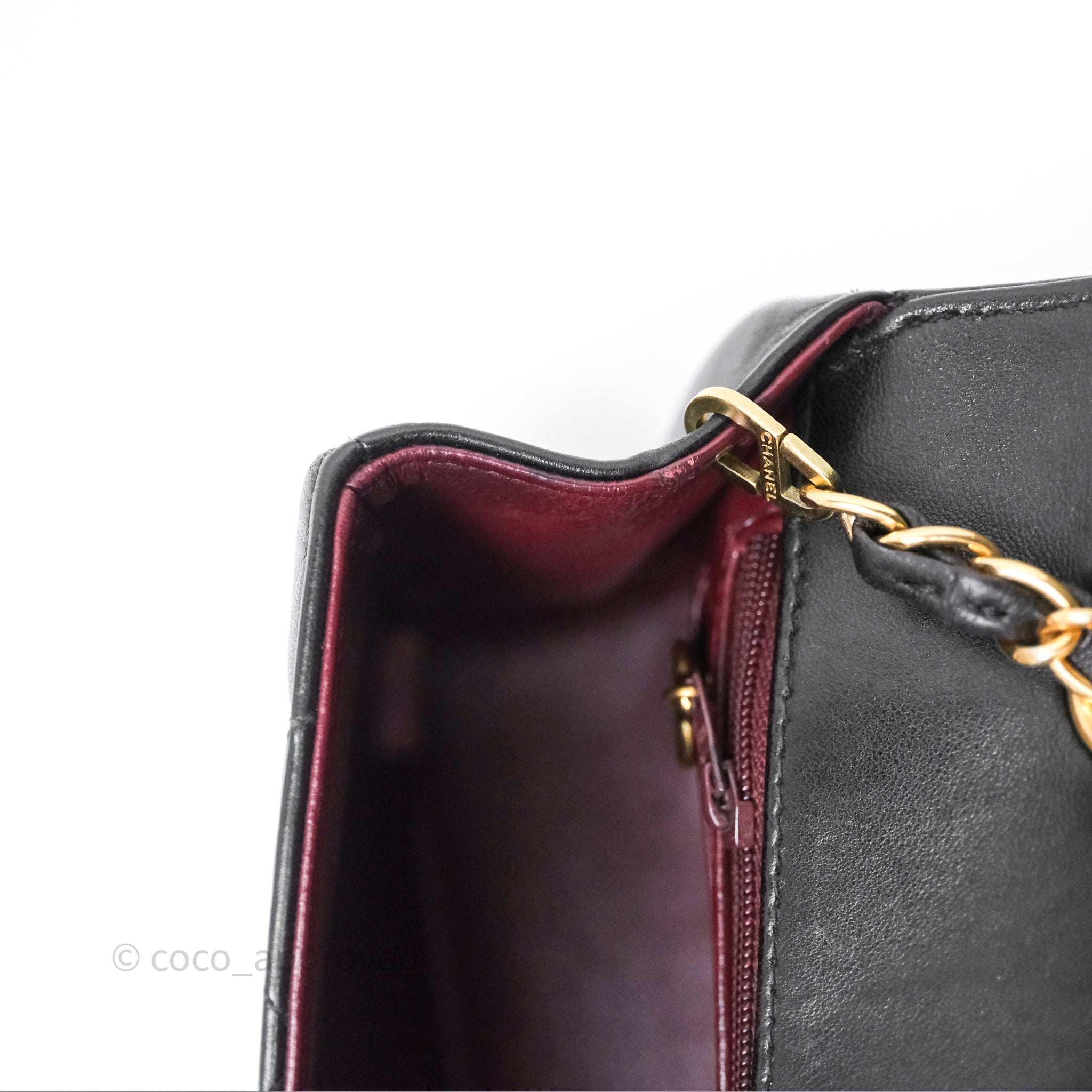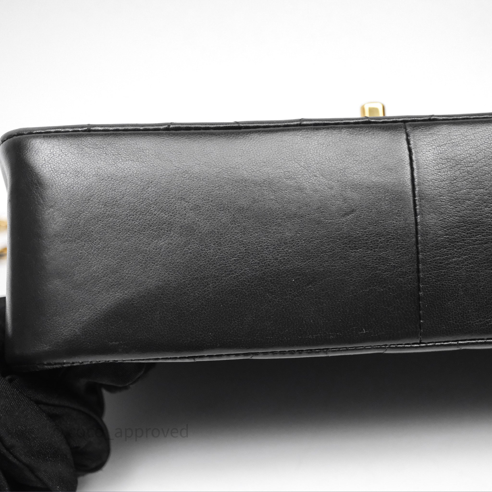 Vintage rank AB excellent condition. Hairlines on CC buckle. Dent on bottom. Scratches and marks on under flap and in interior.