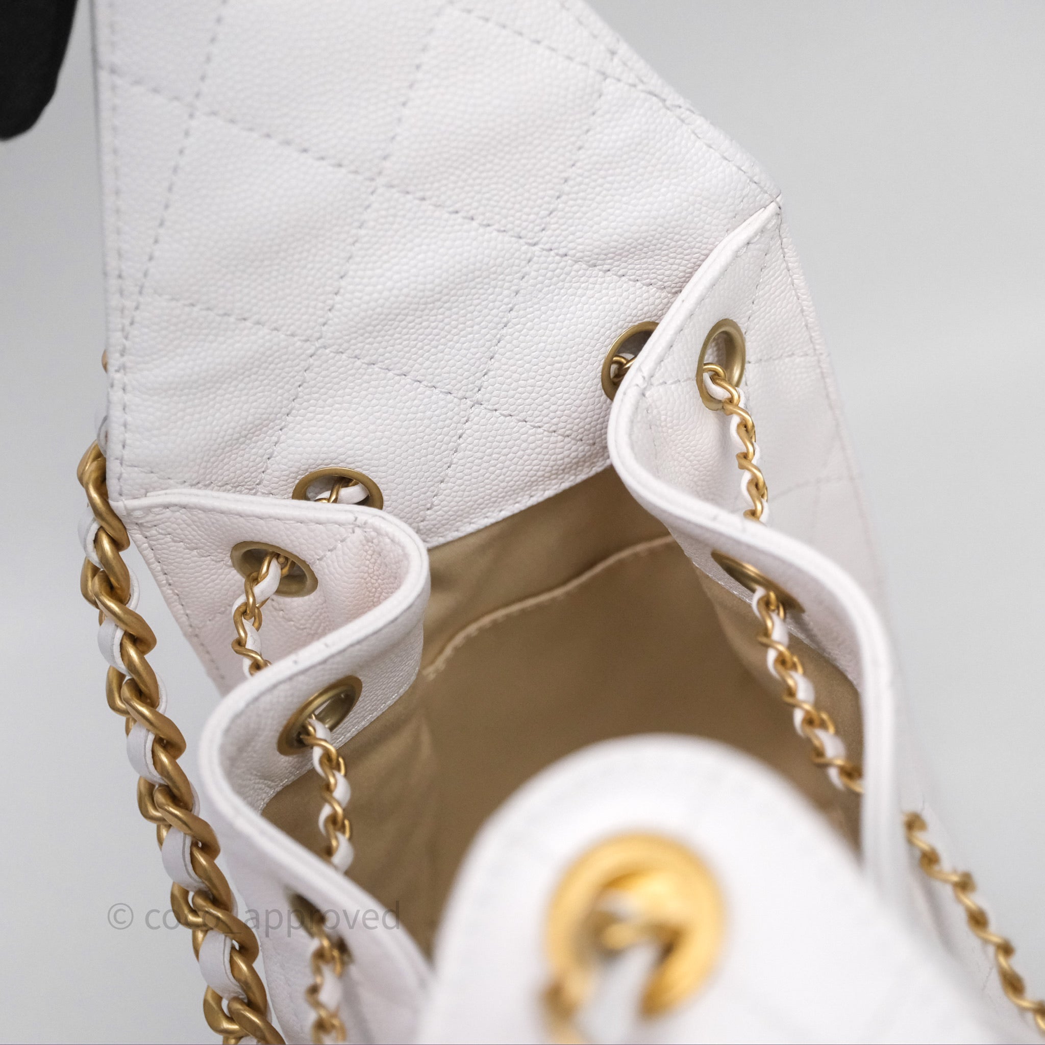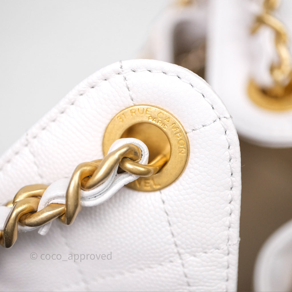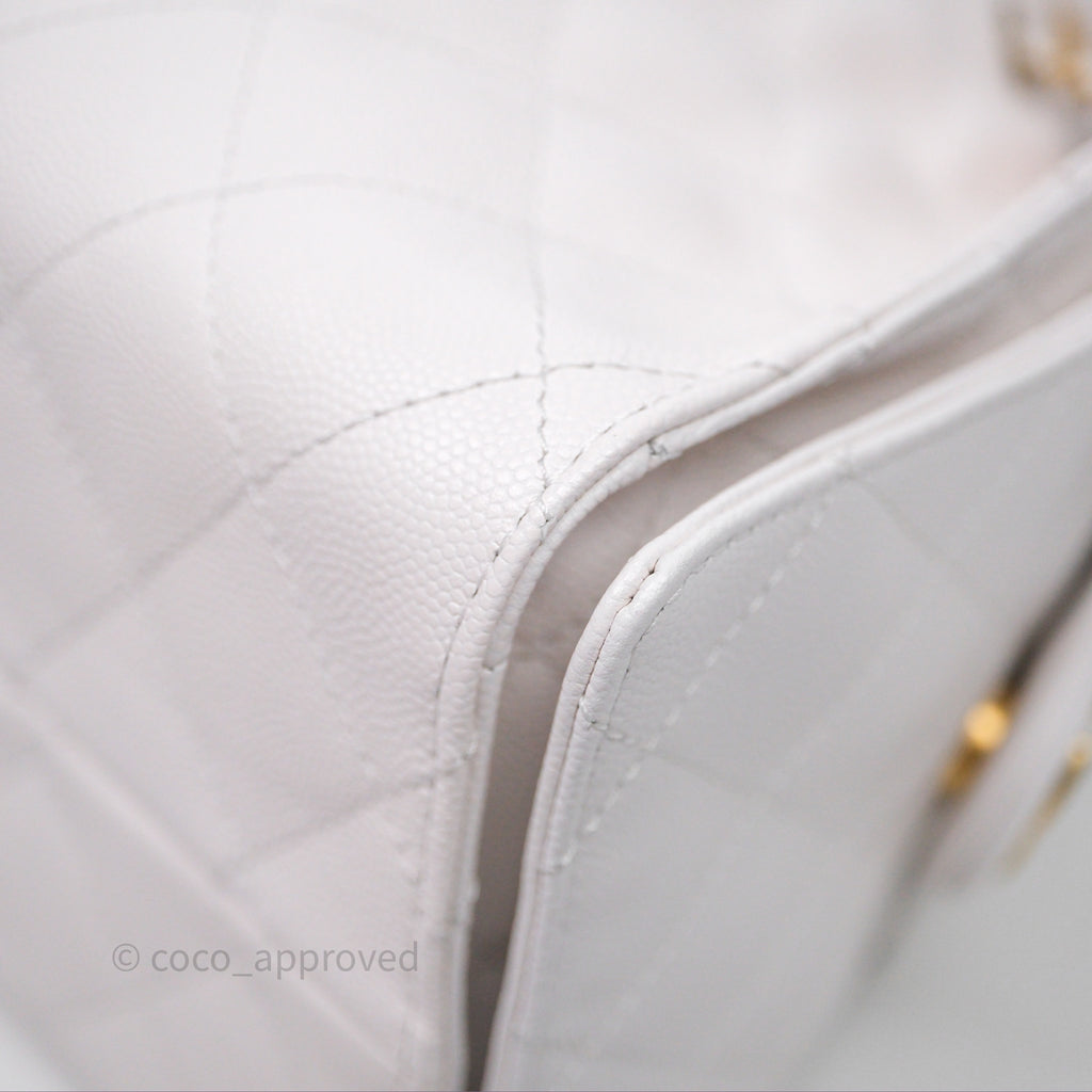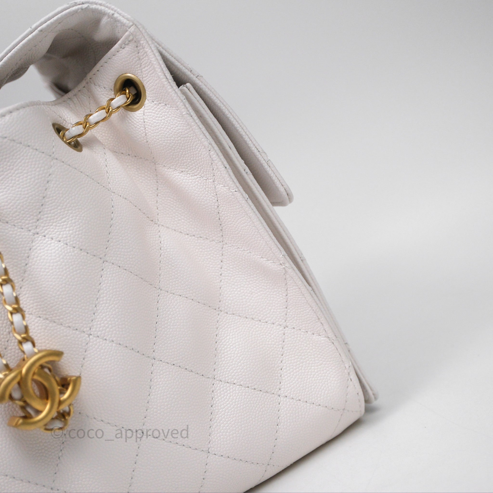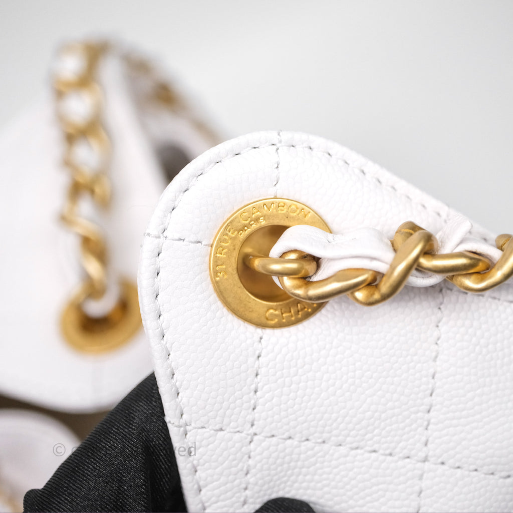 Chanel 25 Small White Caviar Aged Gold Hardware