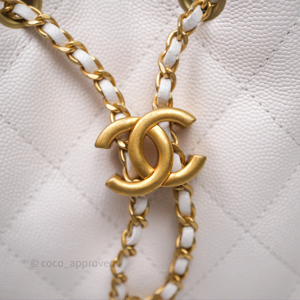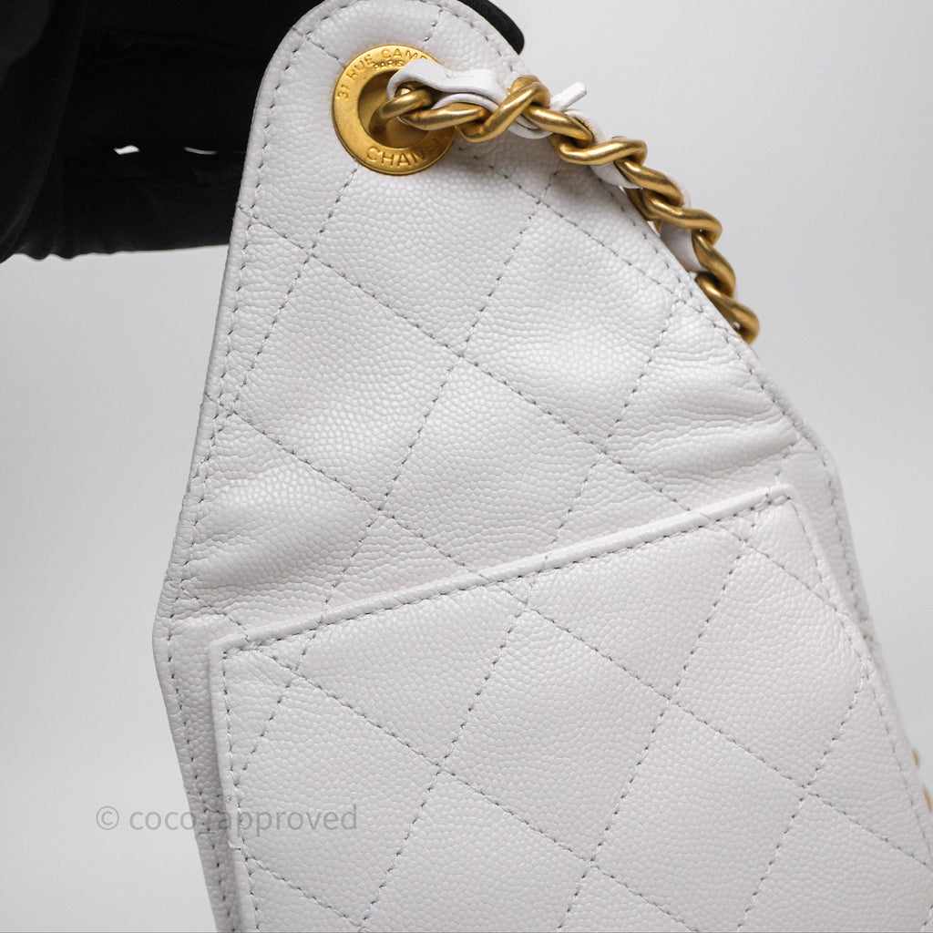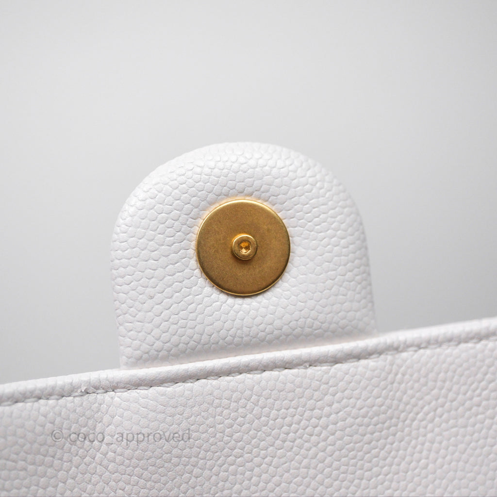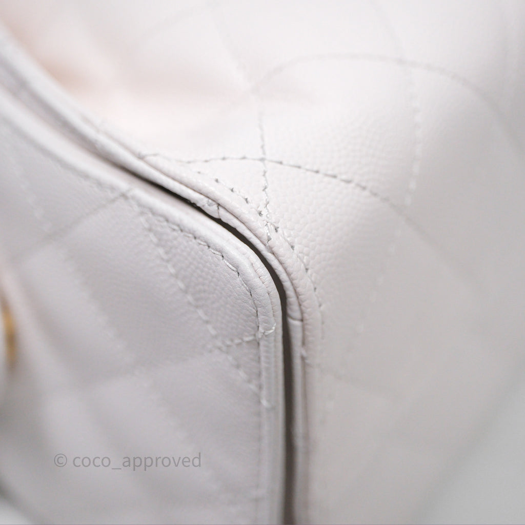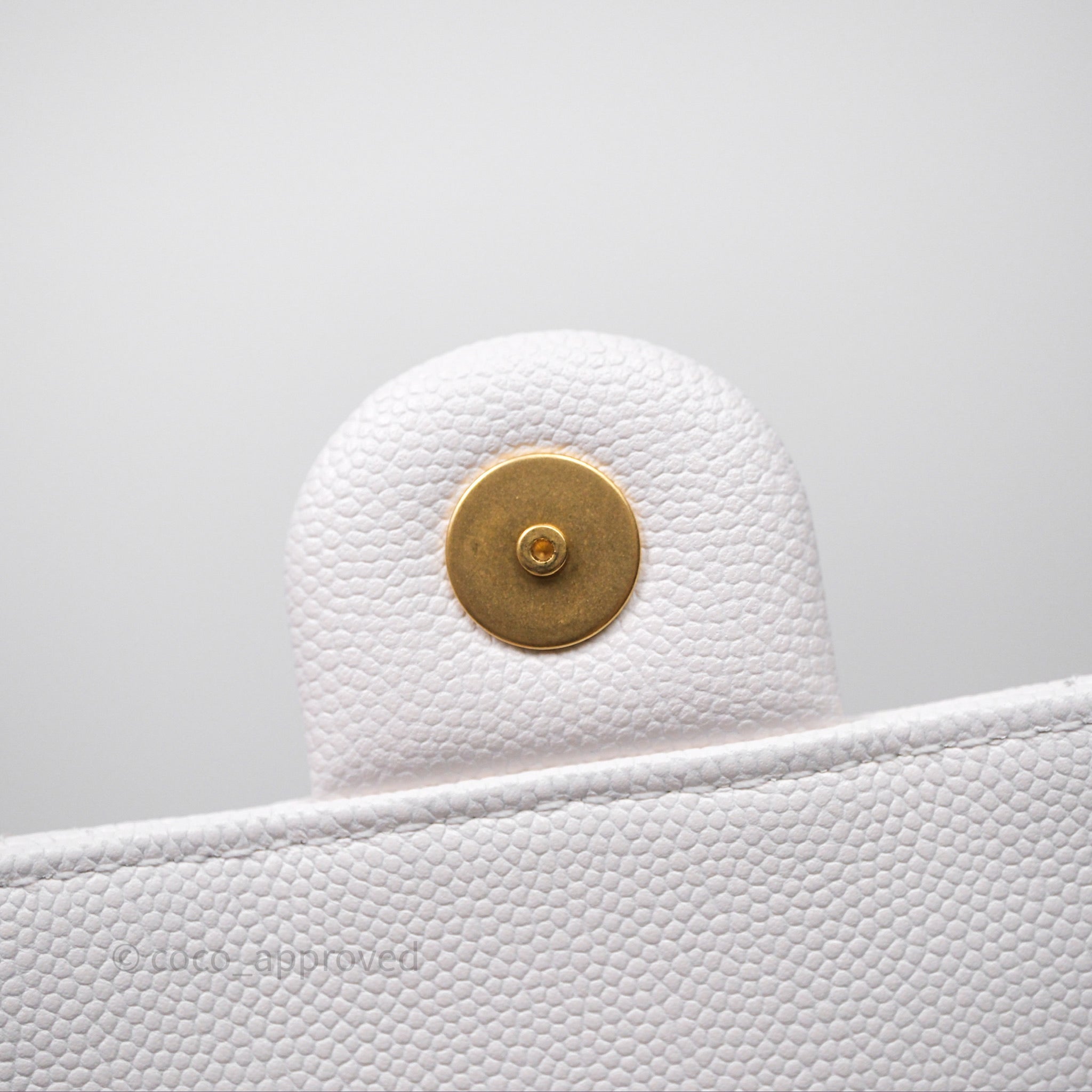 Chanel 25 Small White Caviar Aged Gold Hardware