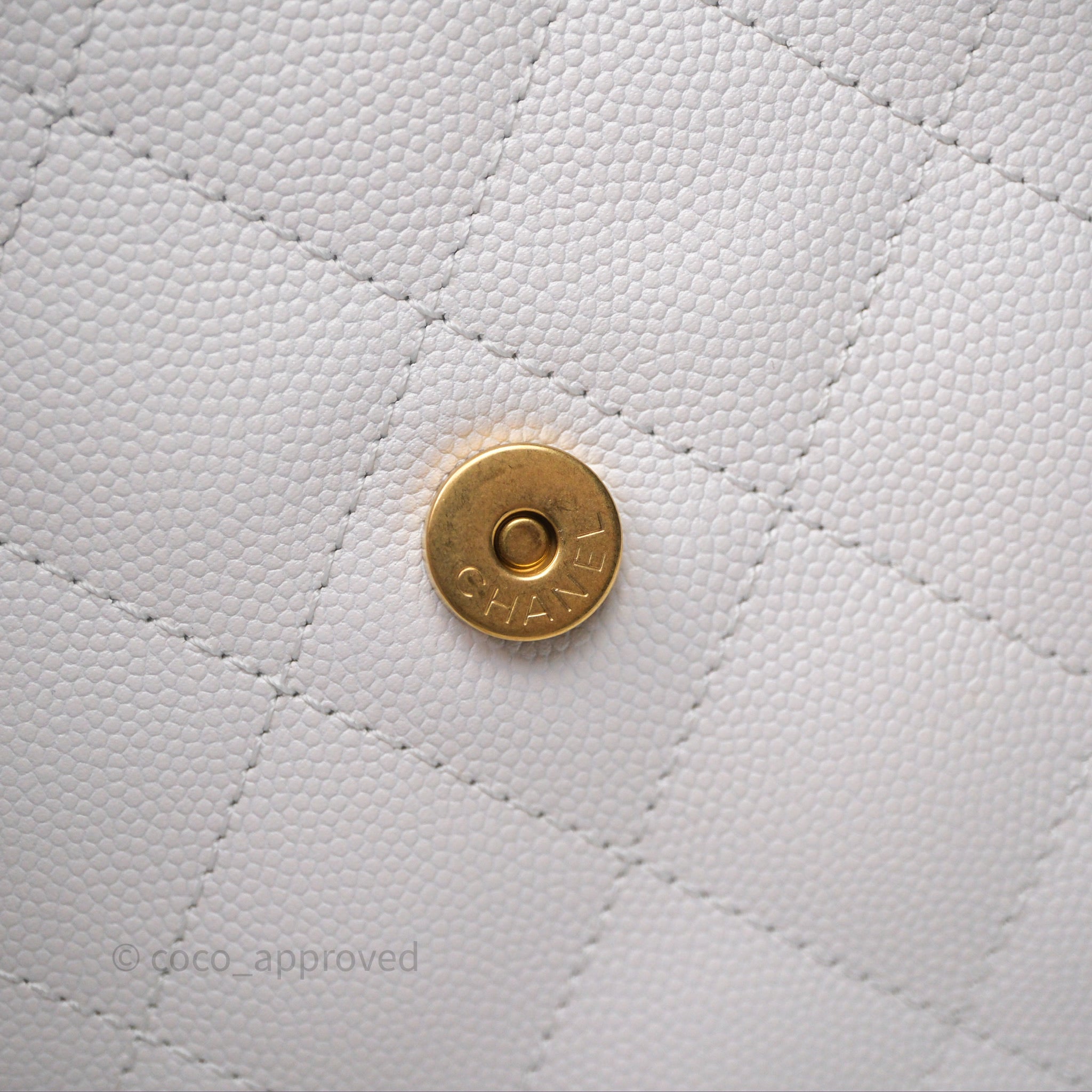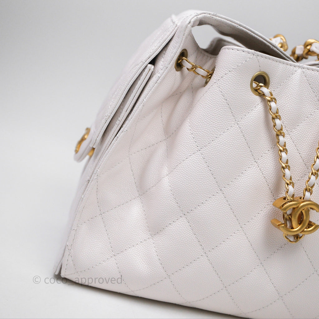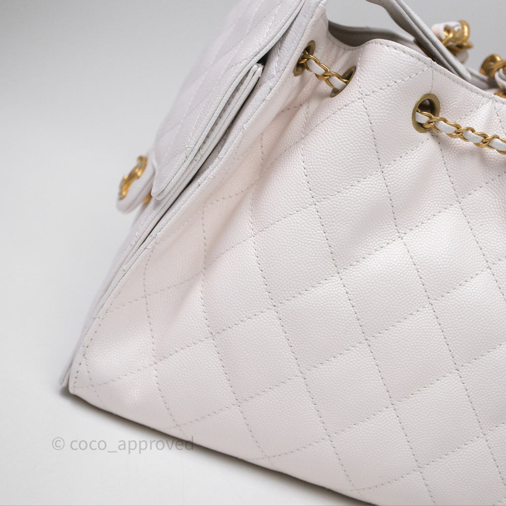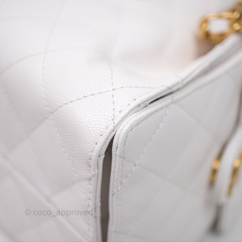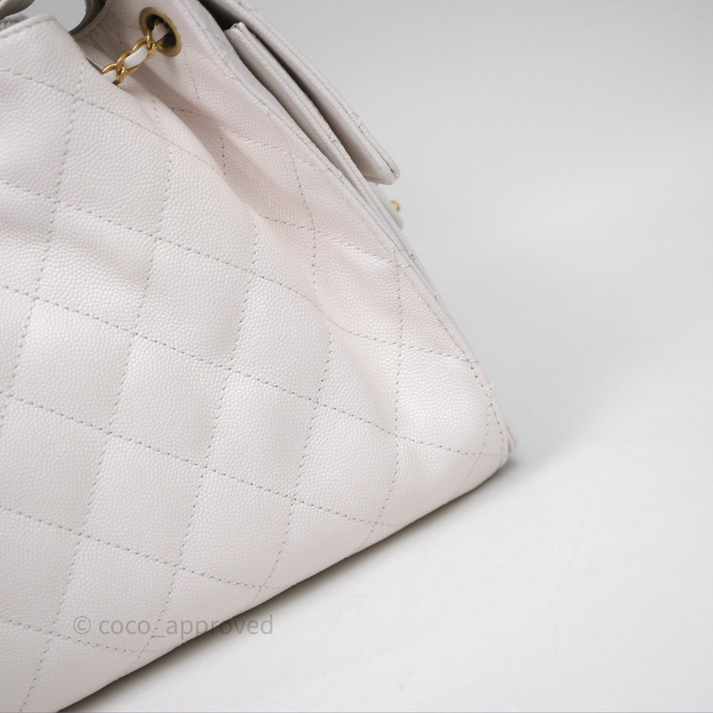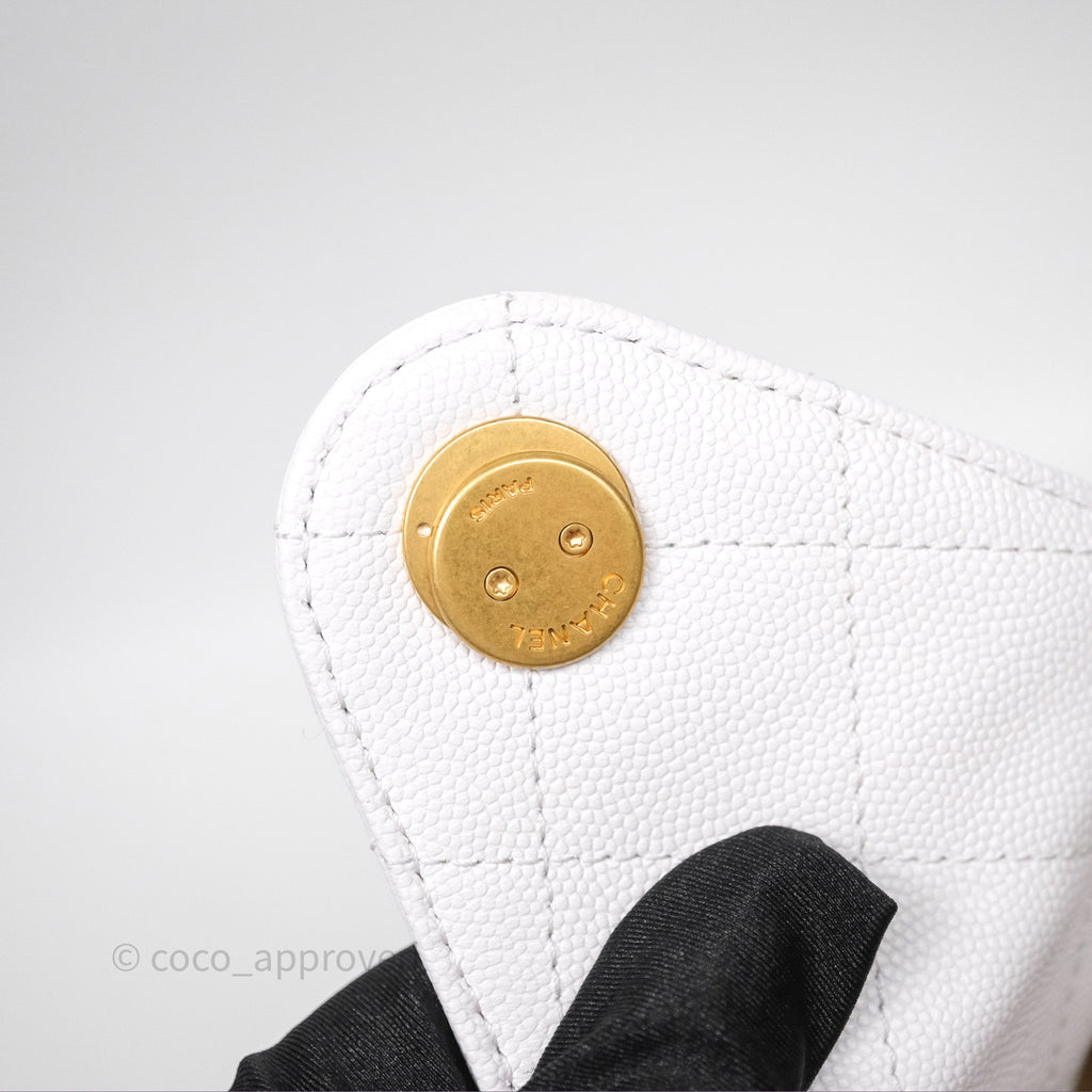 Chanel 25 Small White Caviar Aged Gold Hardware