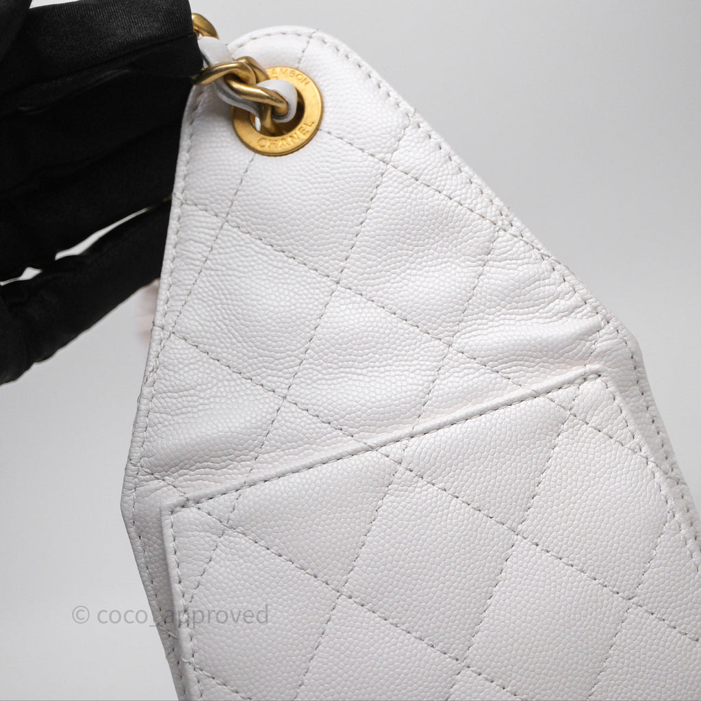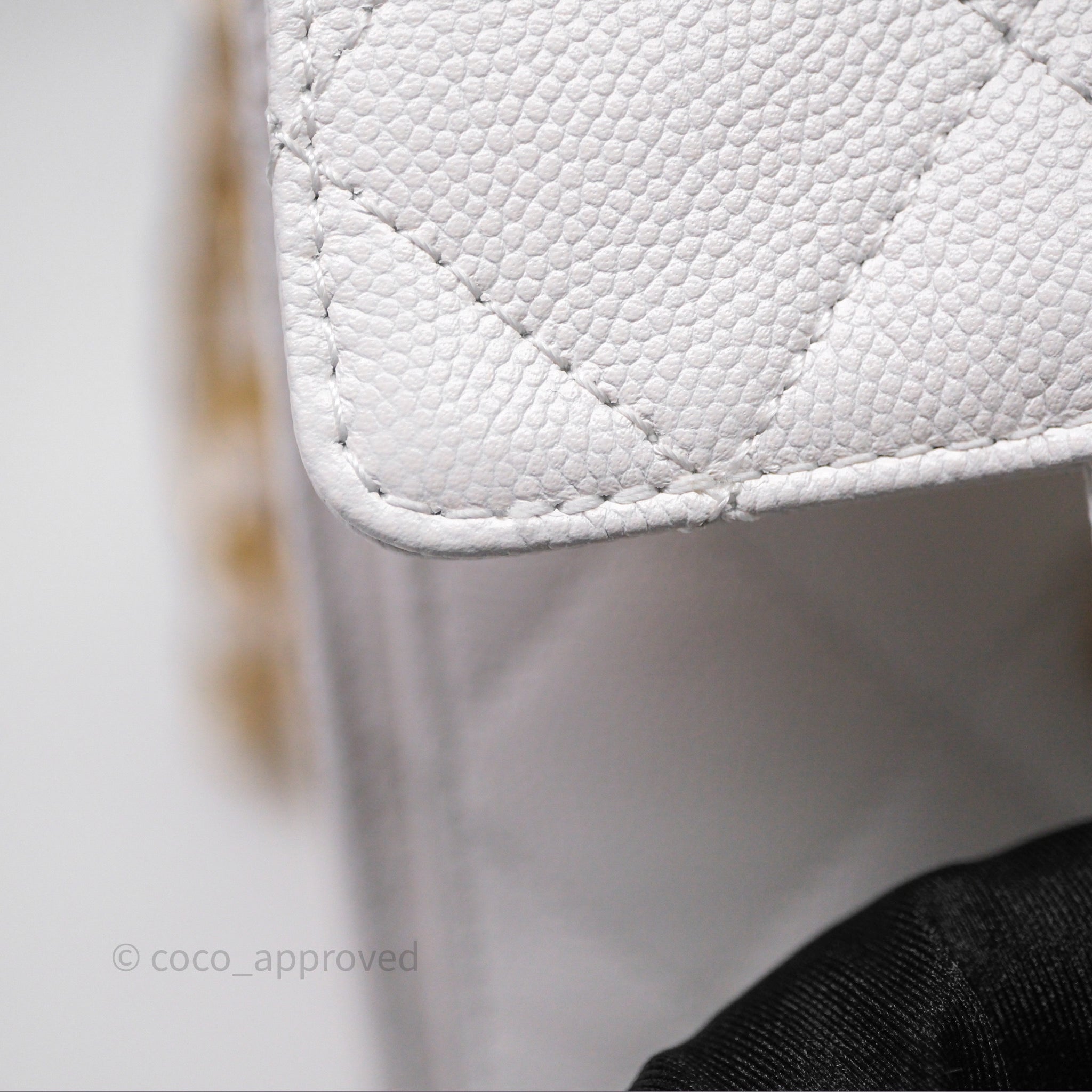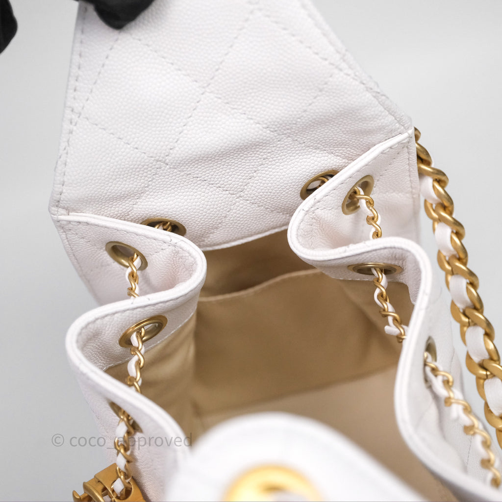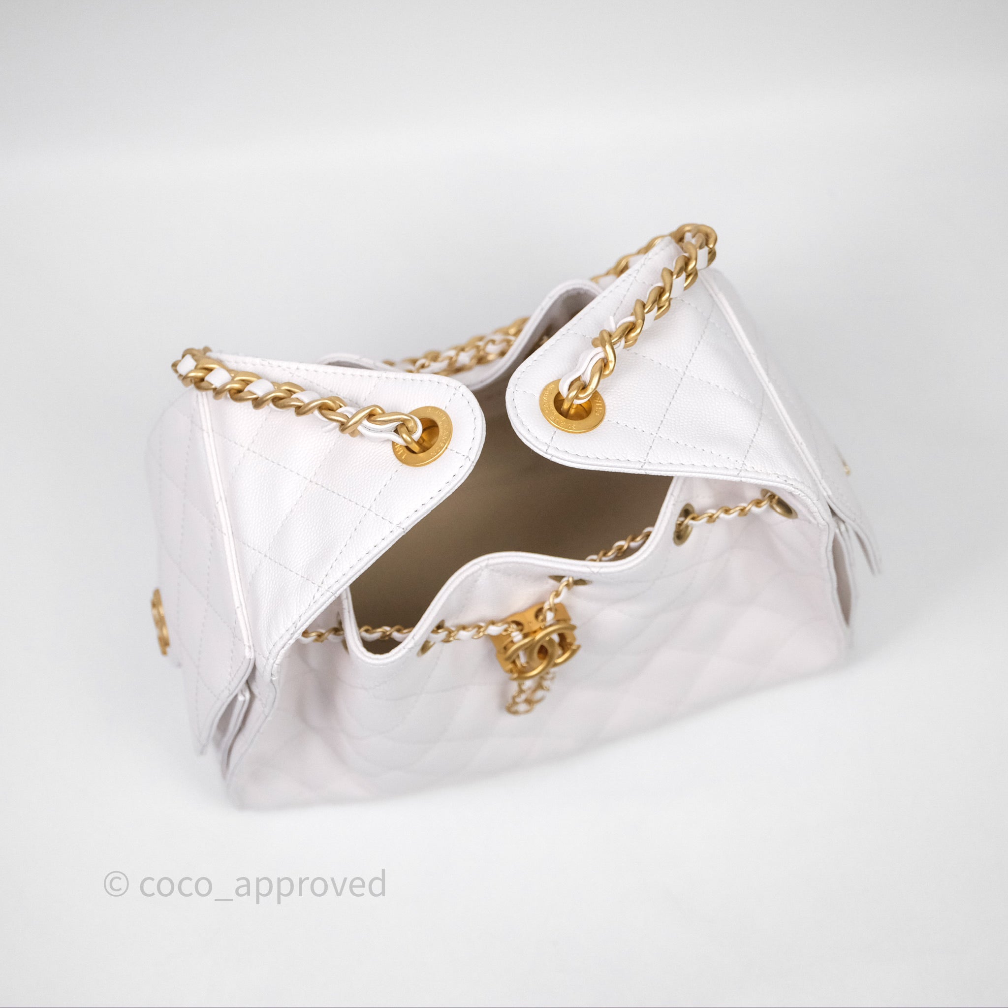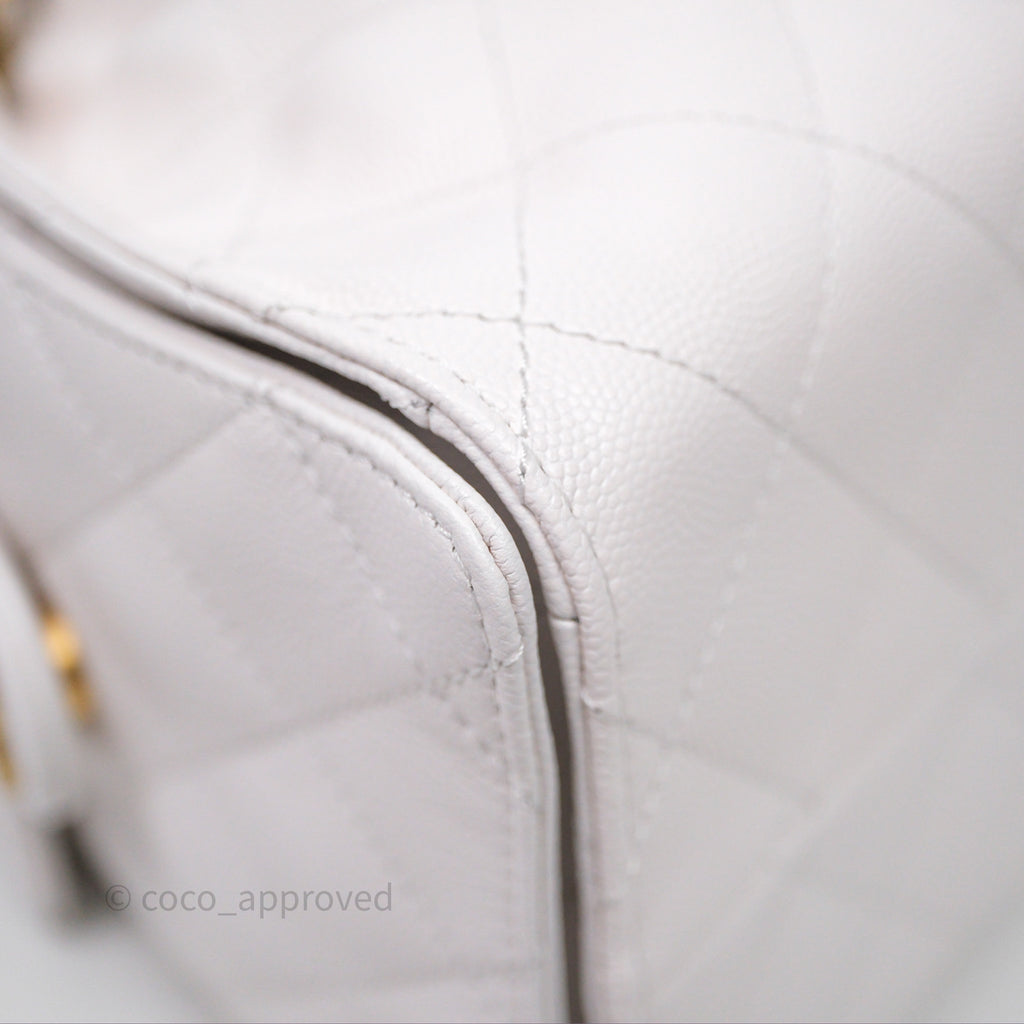 Chanel 25 Small White Caviar Aged Gold Hardware