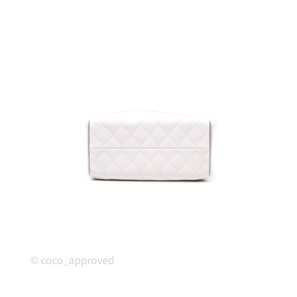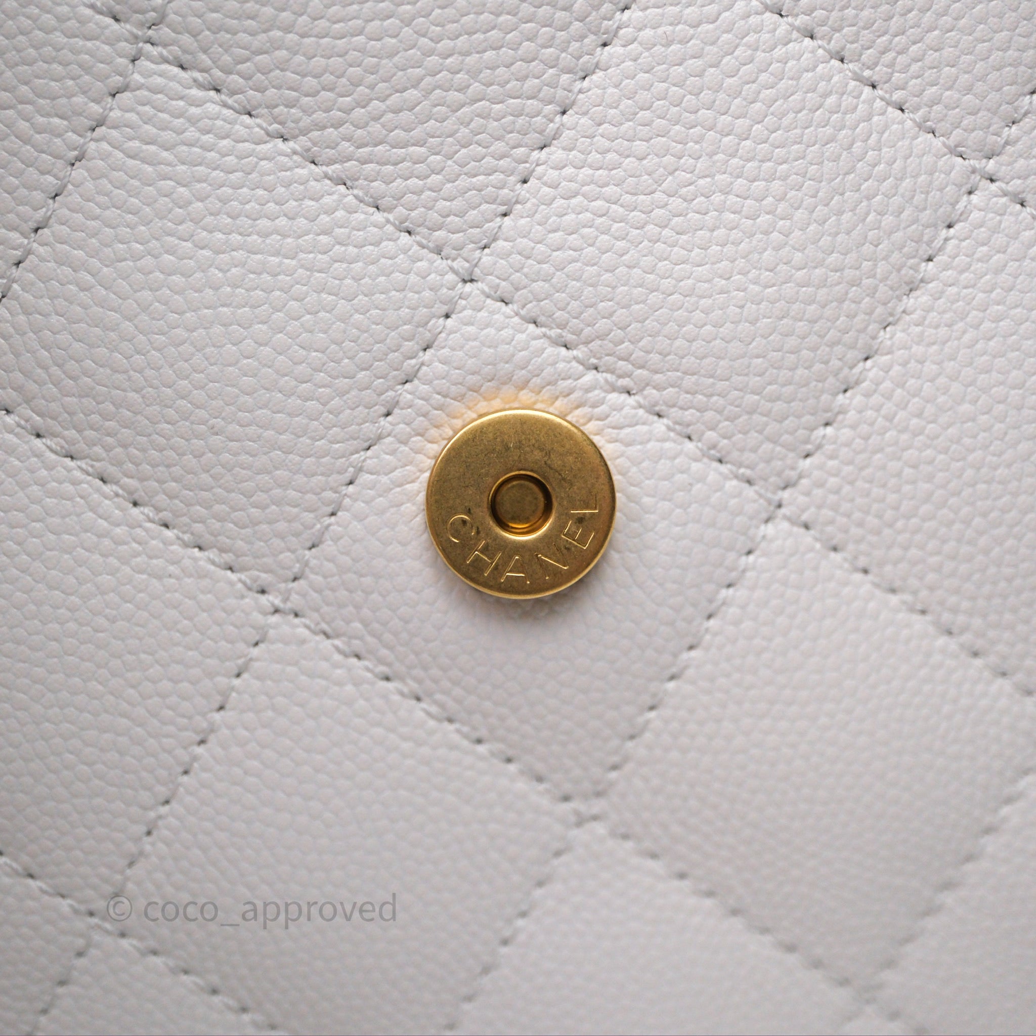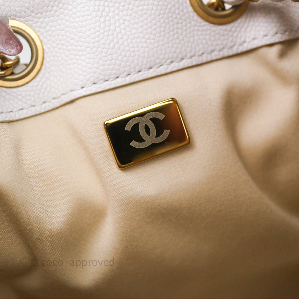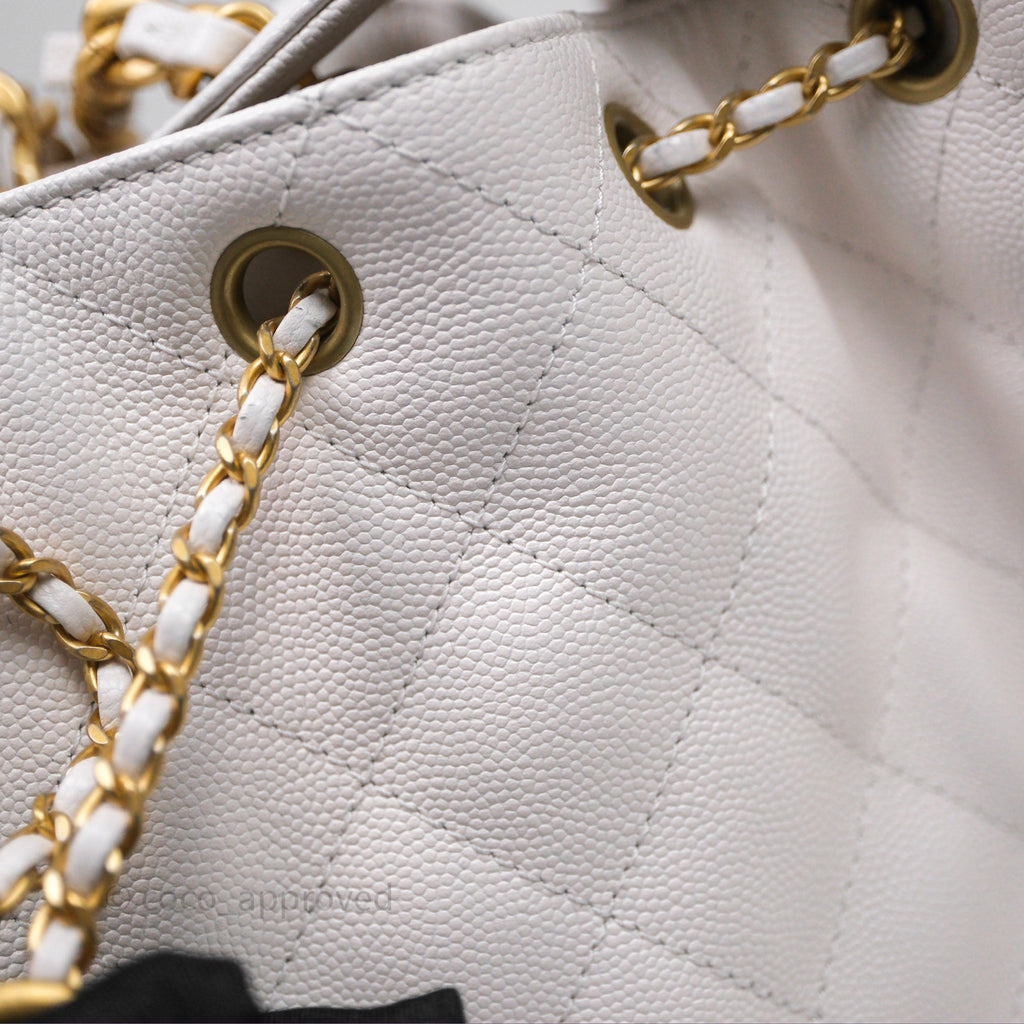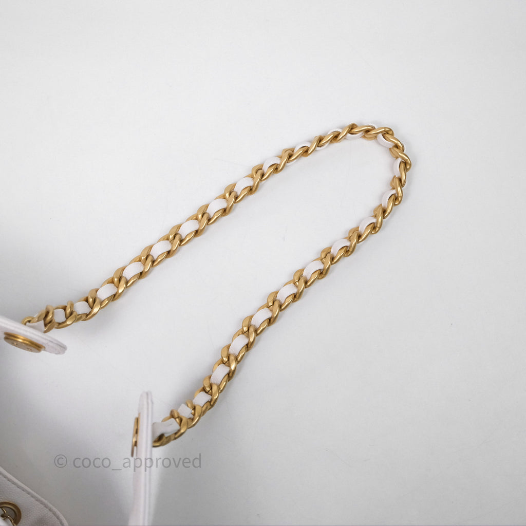 Chanel 25 Small White Caviar Aged Gold Hardware