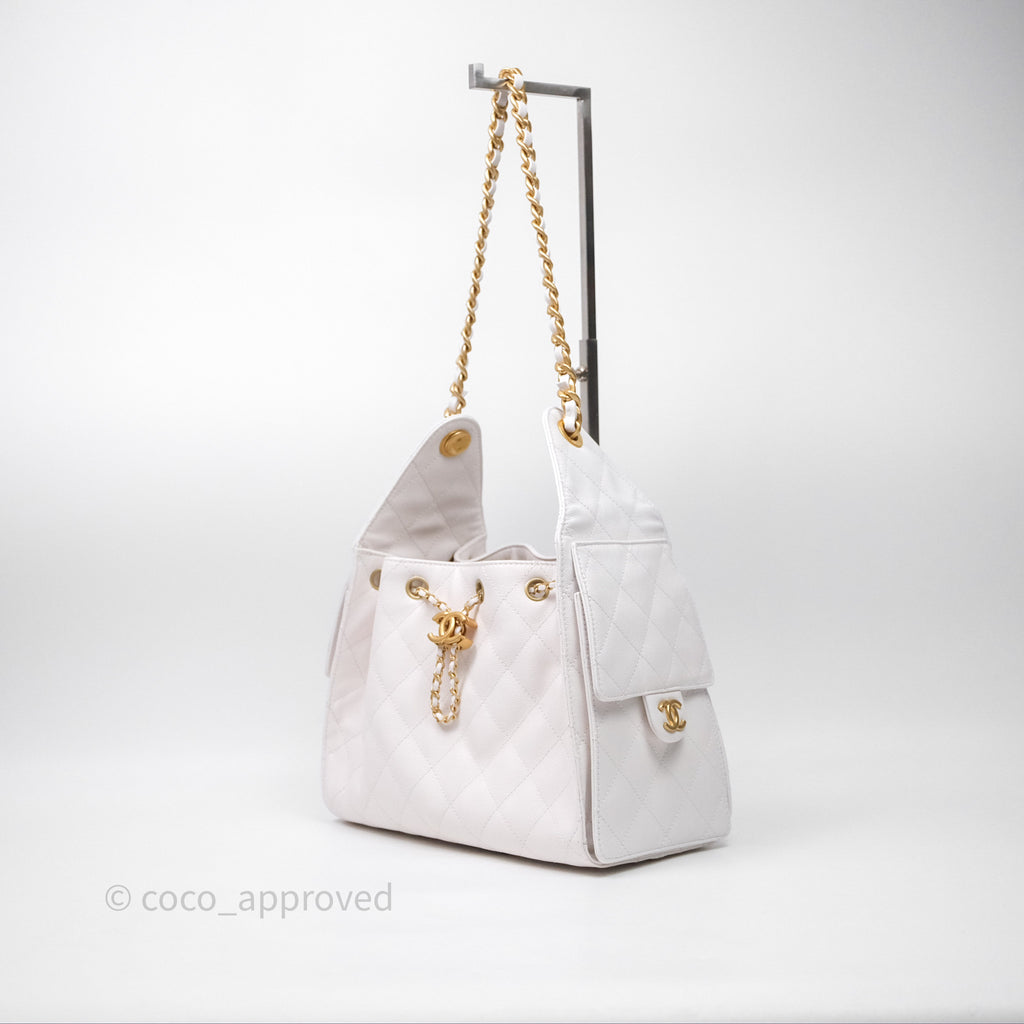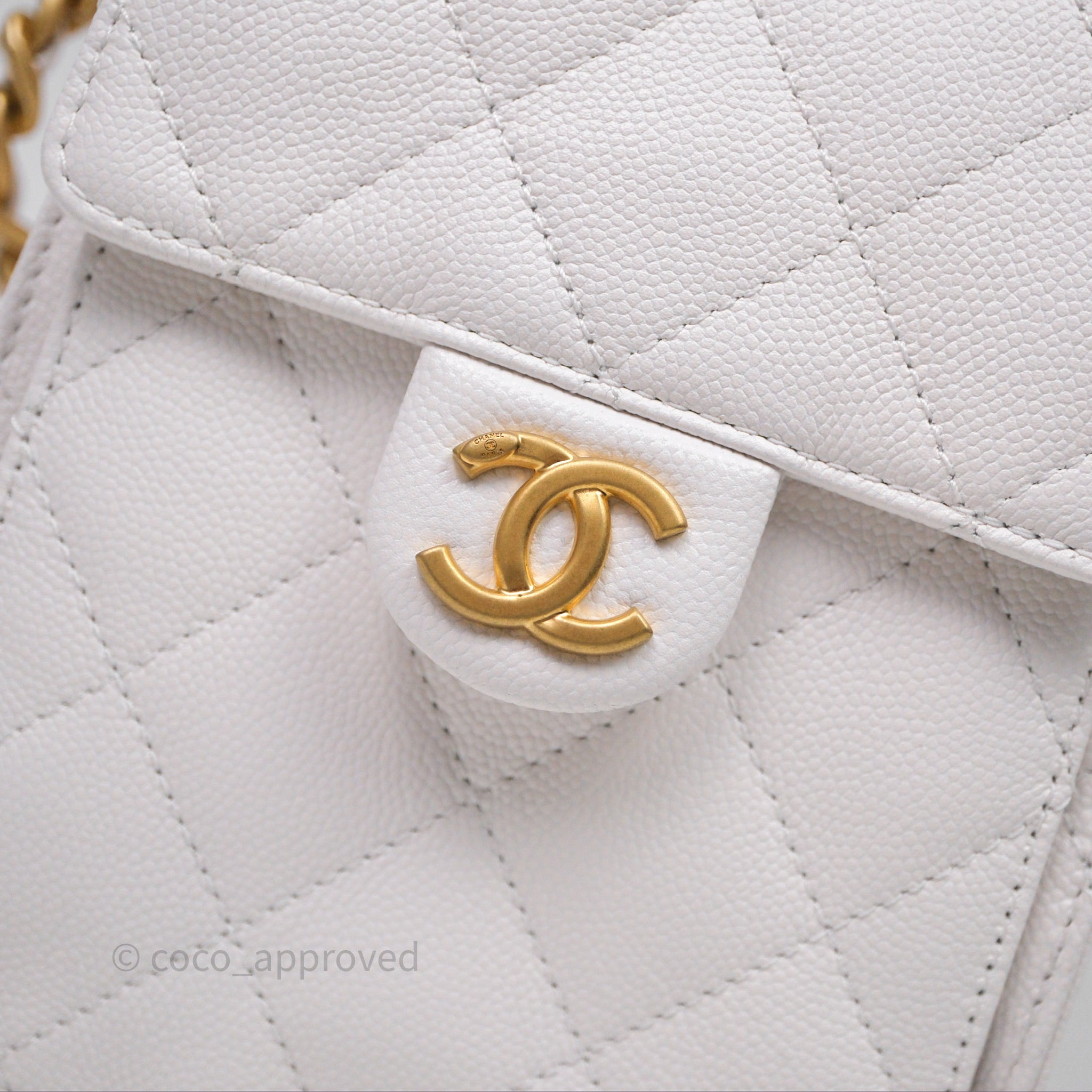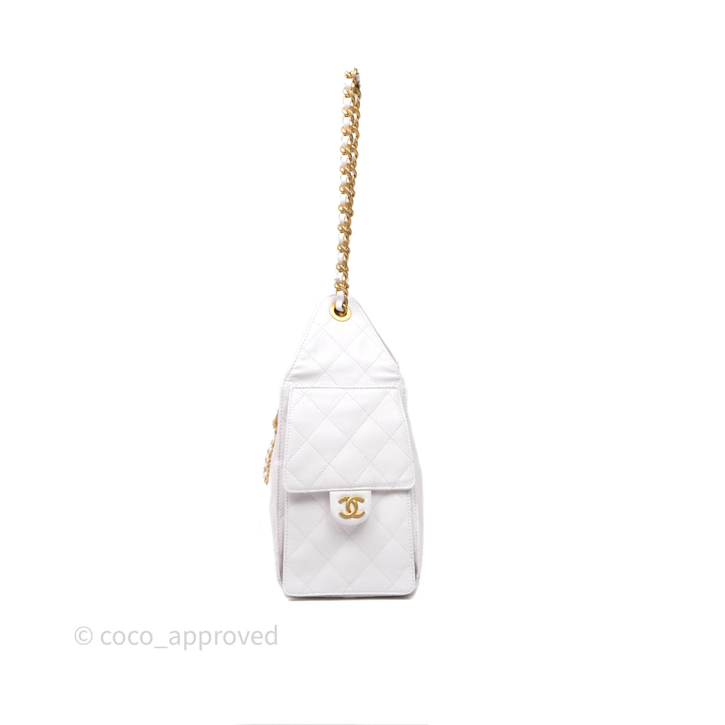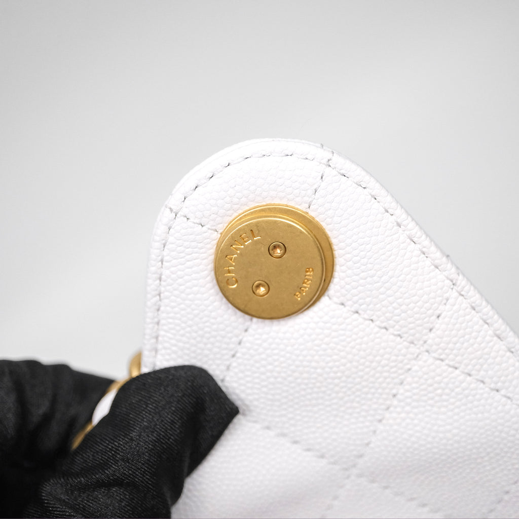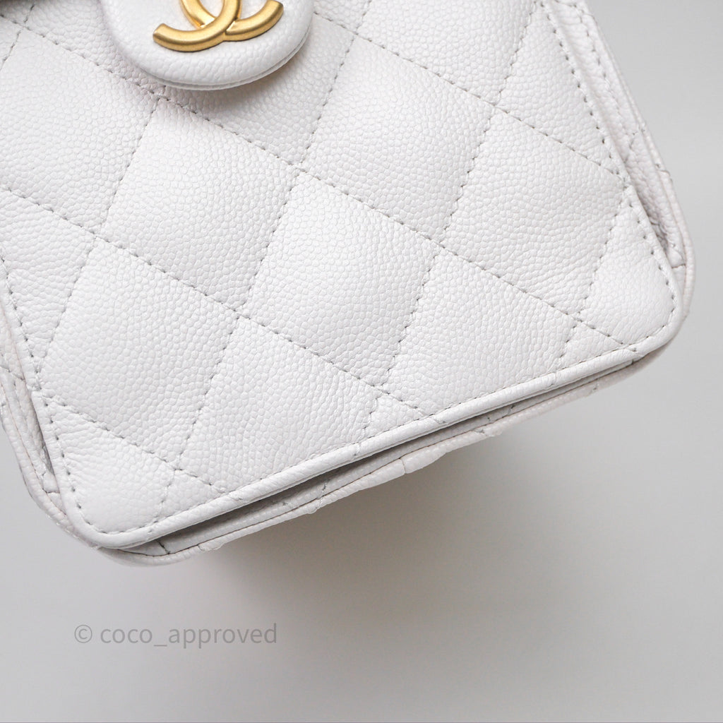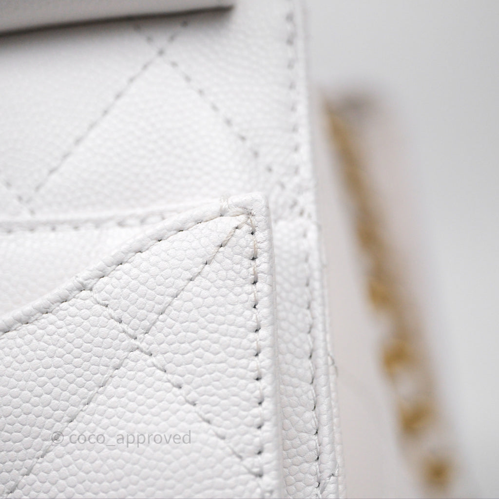 Chanel 25 Small White Caviar Aged Gold Hardware