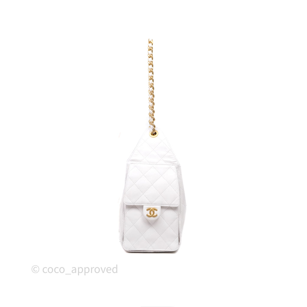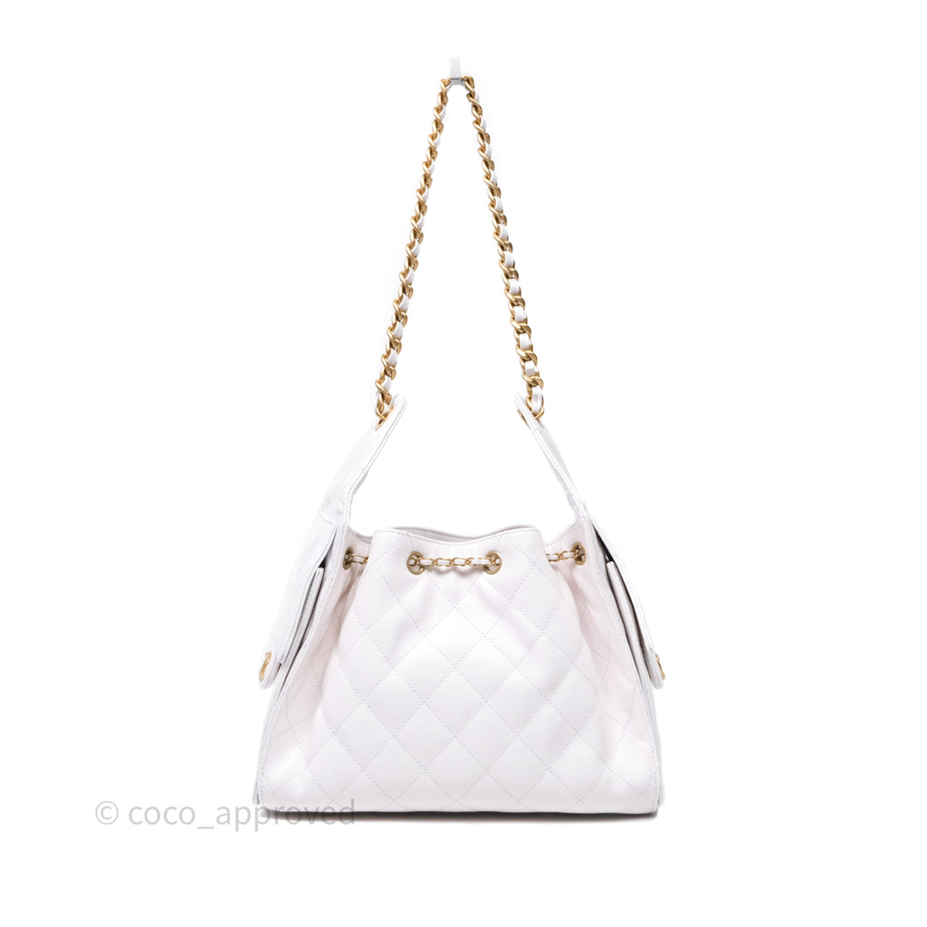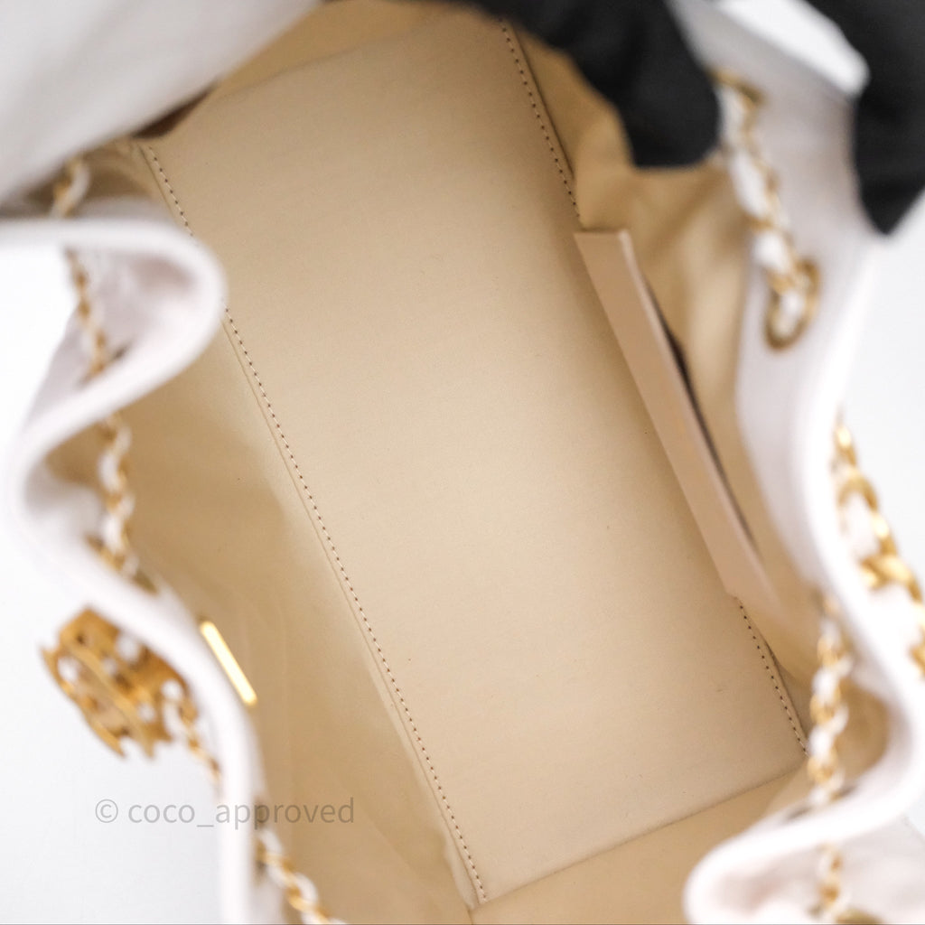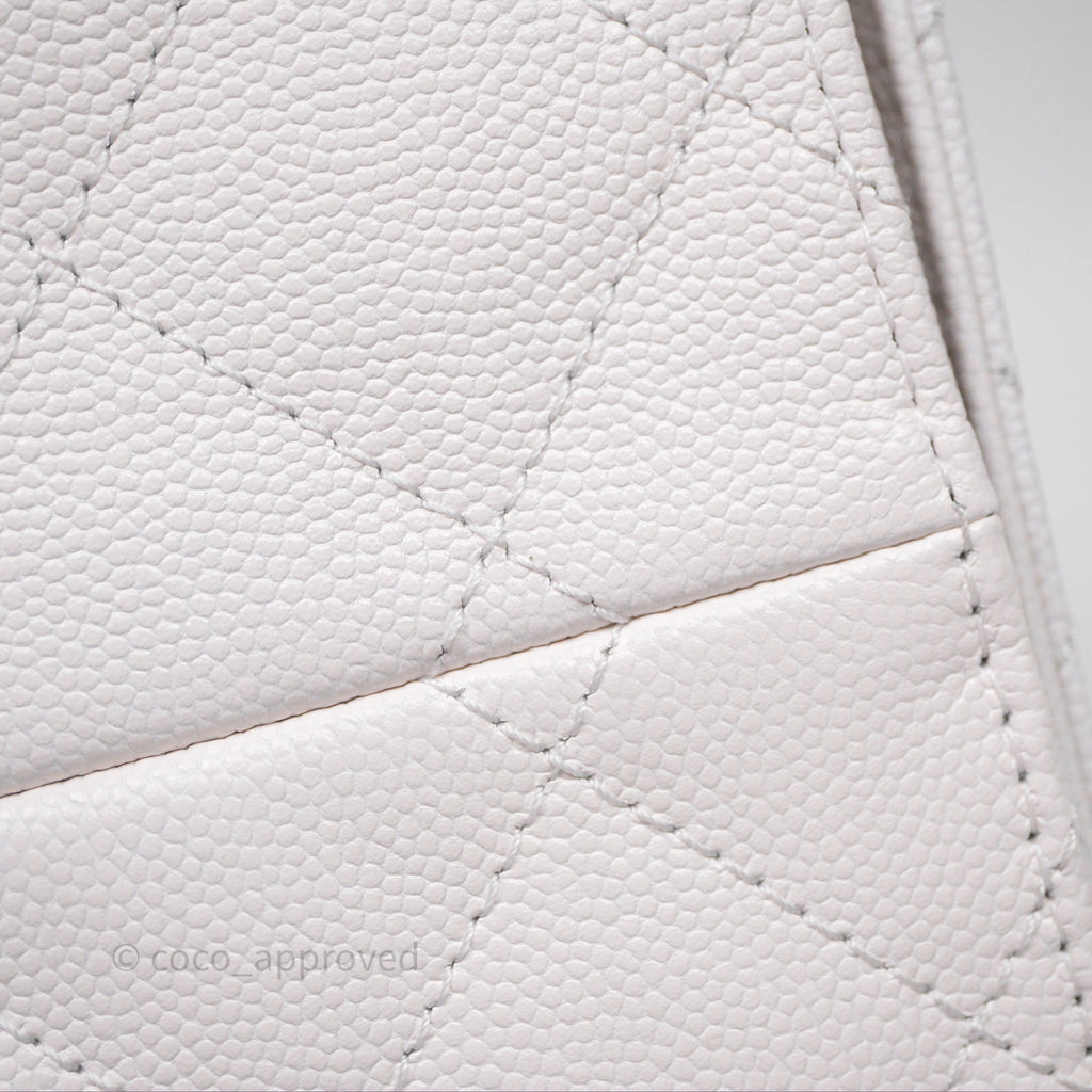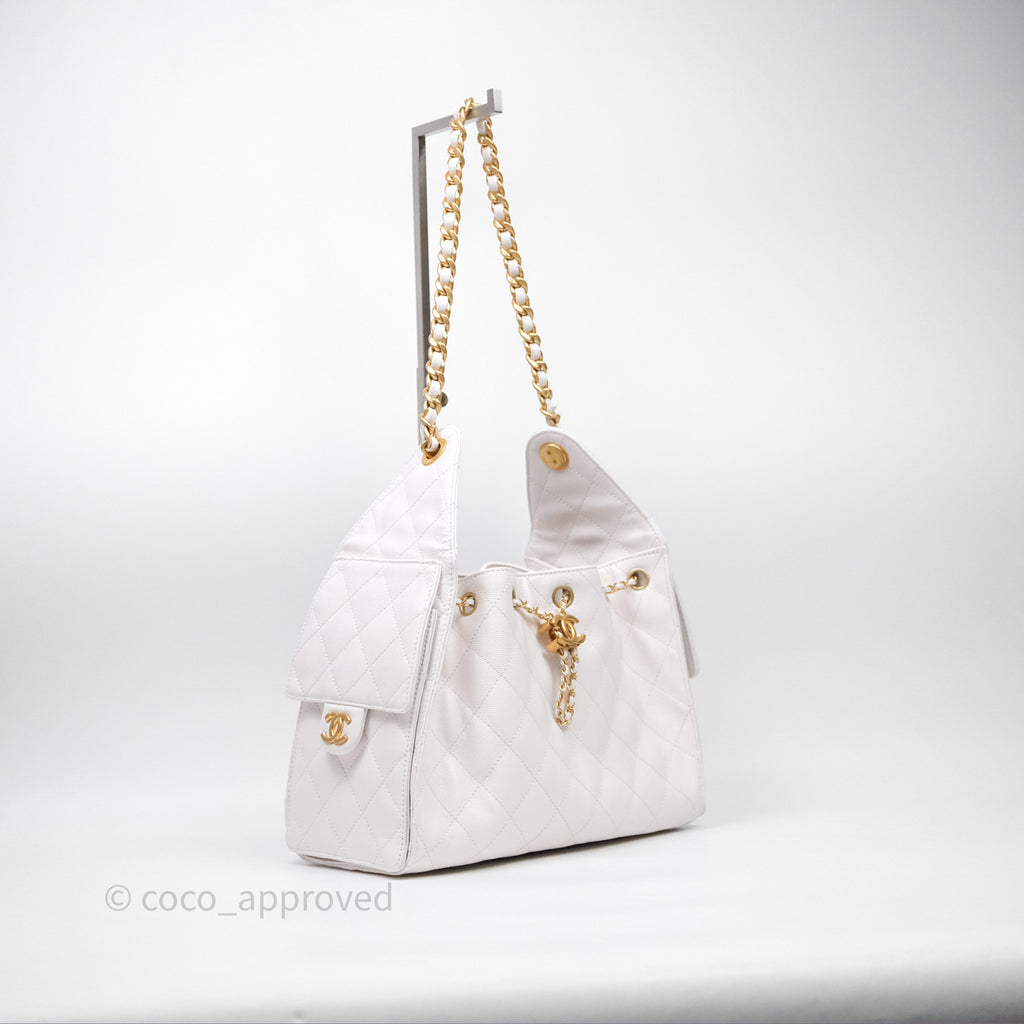Chanel 25 Small White Caviar Aged Gold Hardware