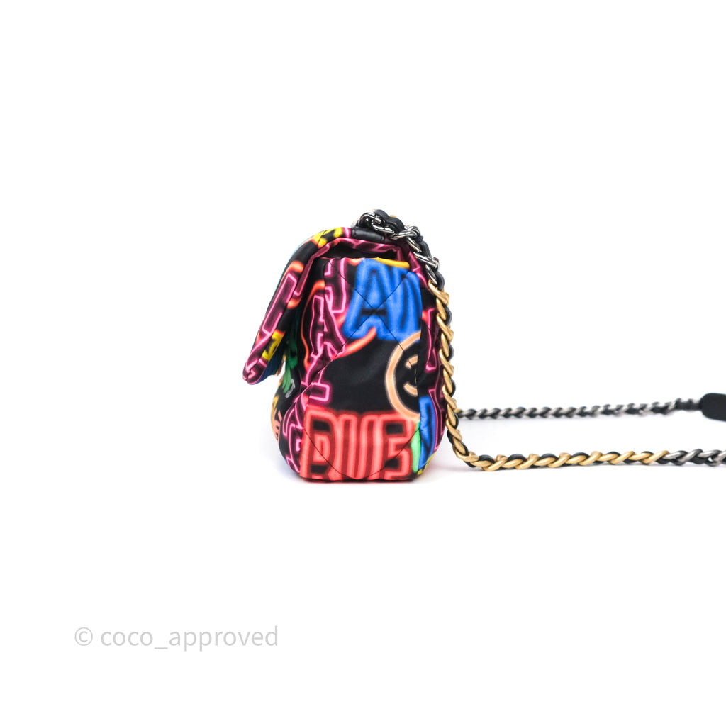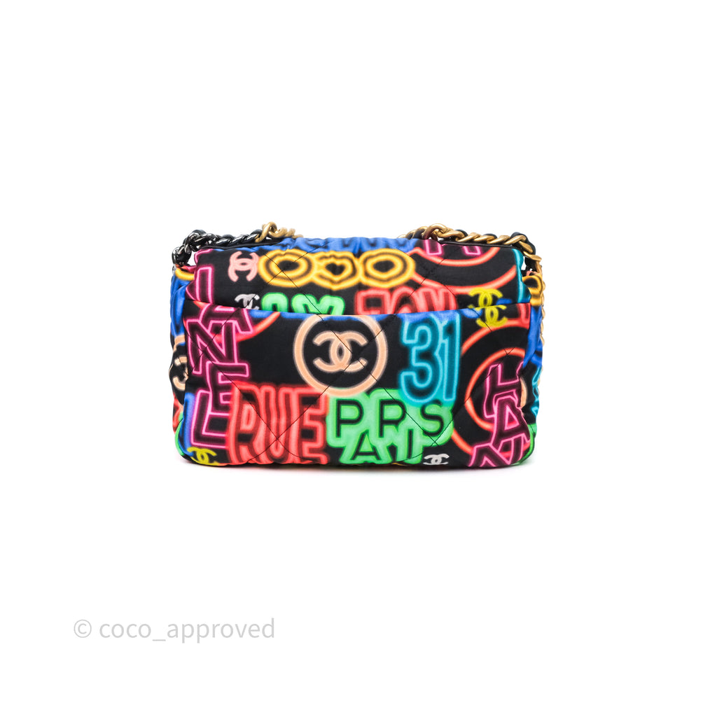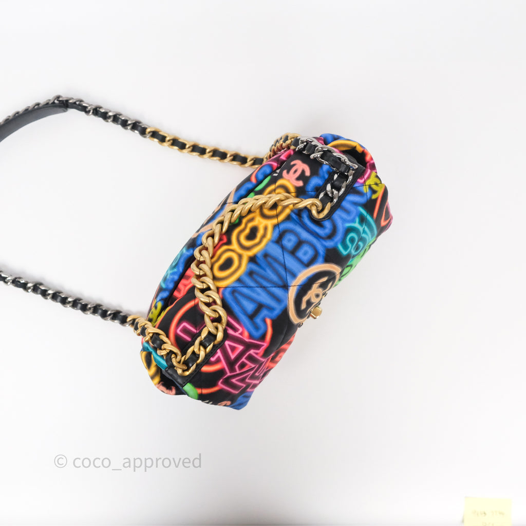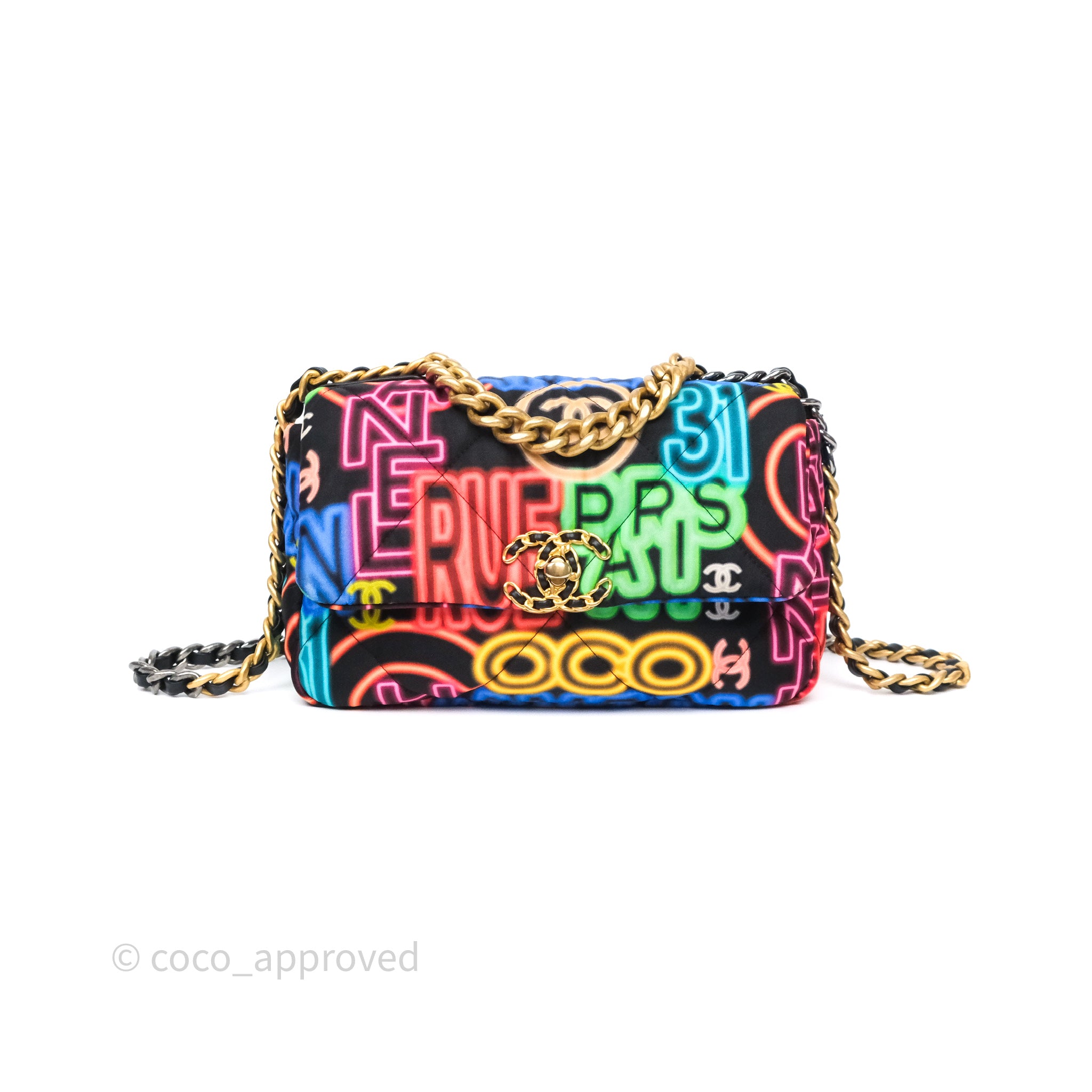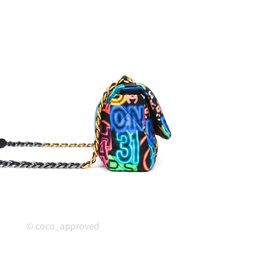 Chanel 19 Small Black Multicolor Fabric Printed Mixed Hardware