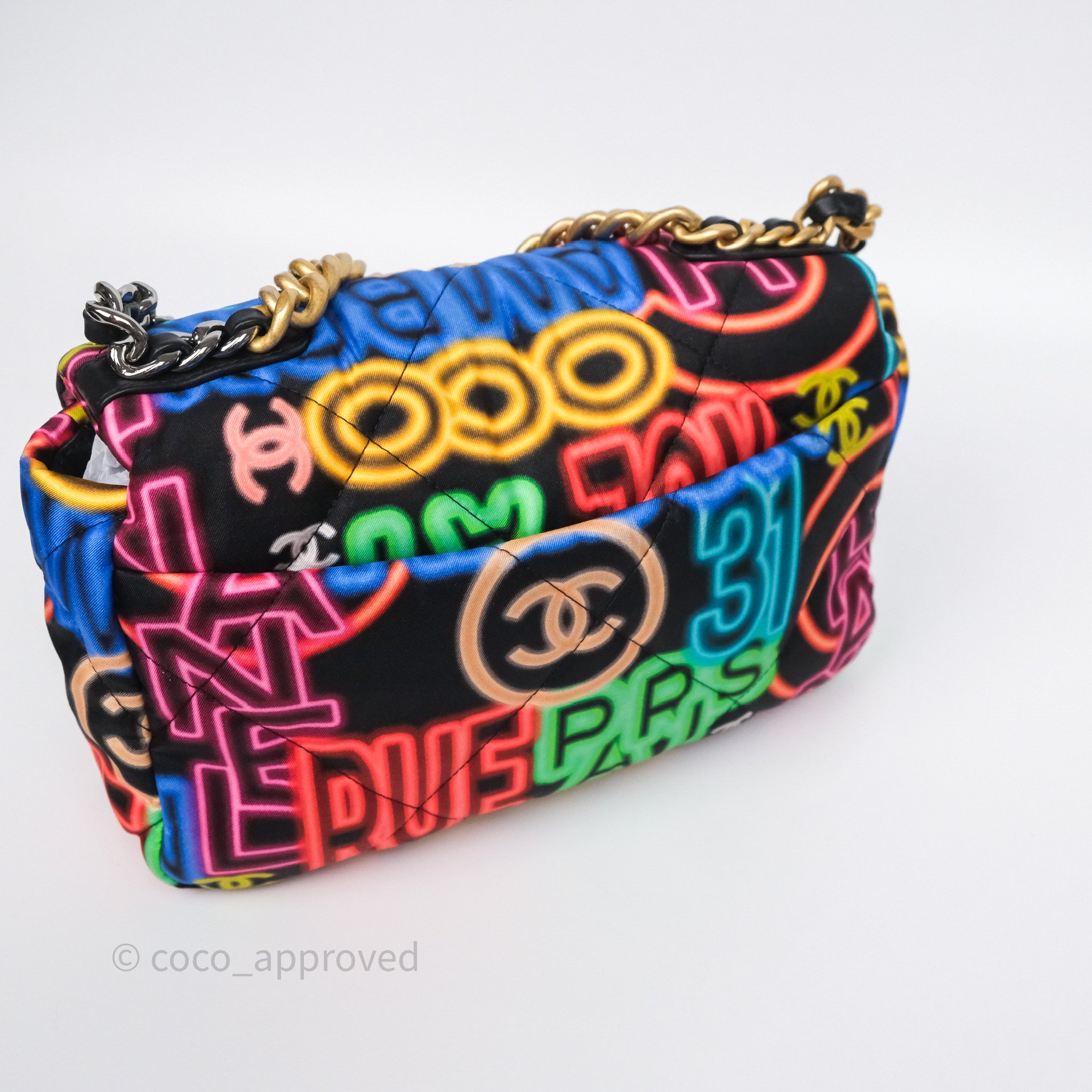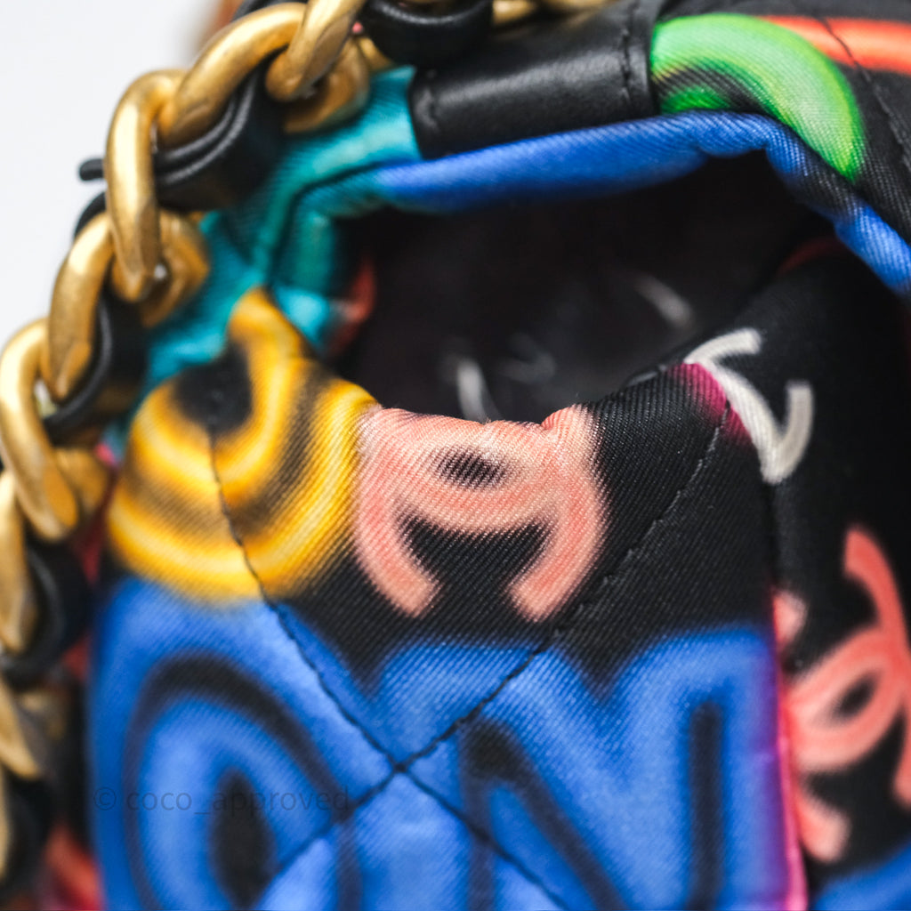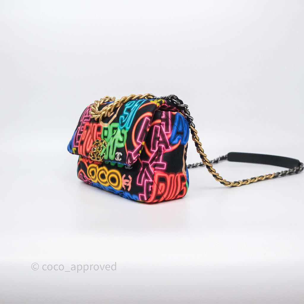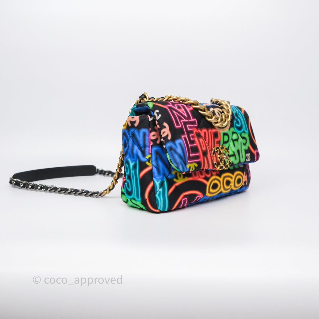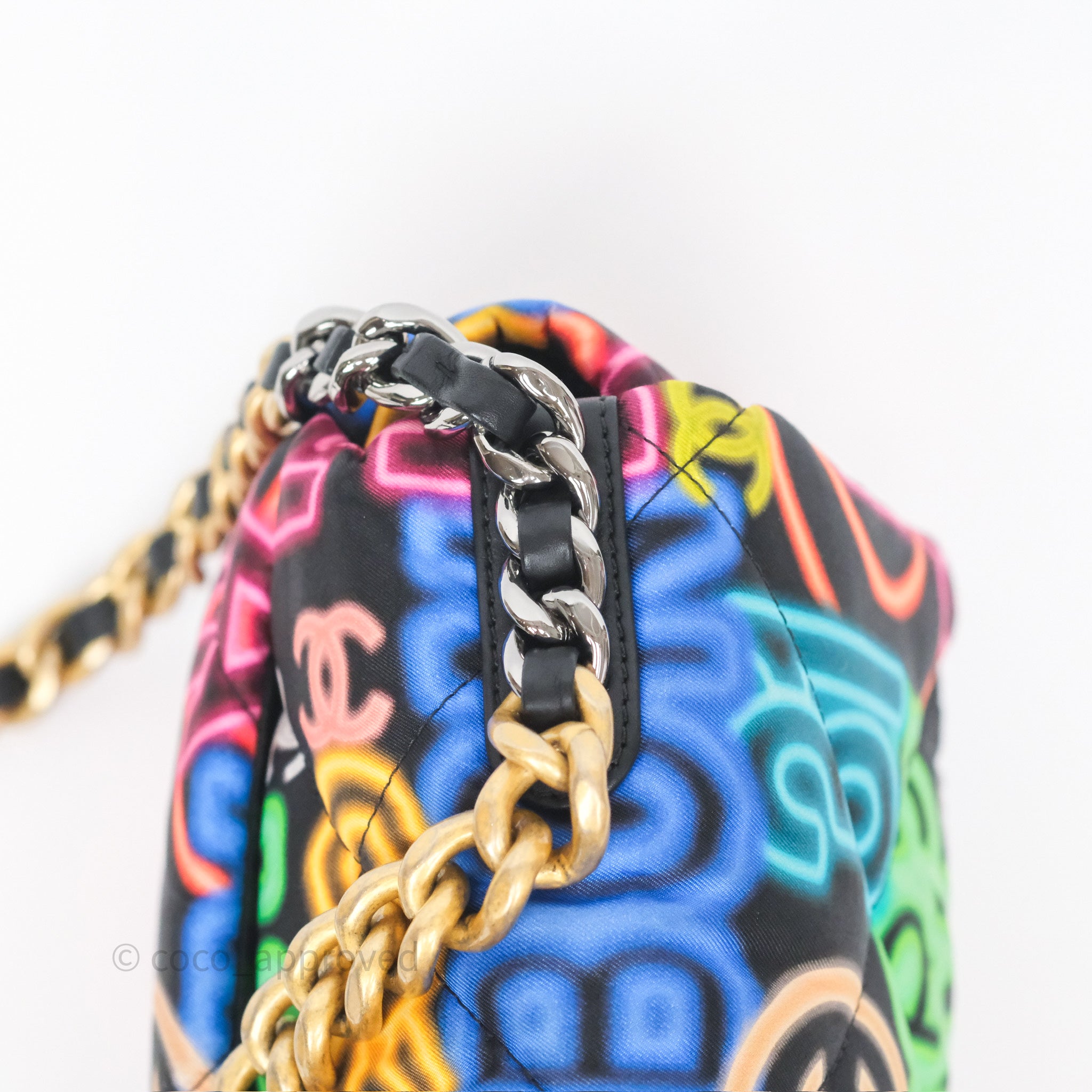 Chanel 19 Small Black Multicolor Fabric Printed Mixed Hardware