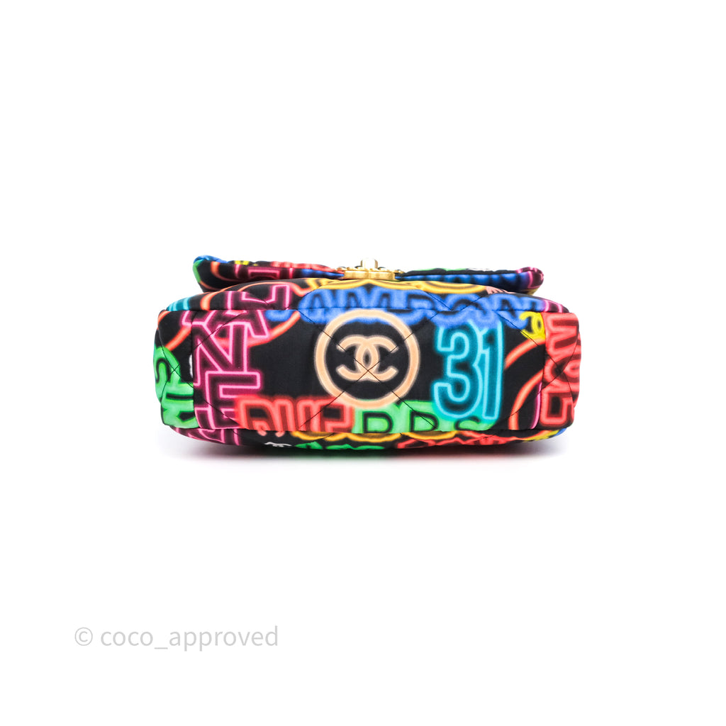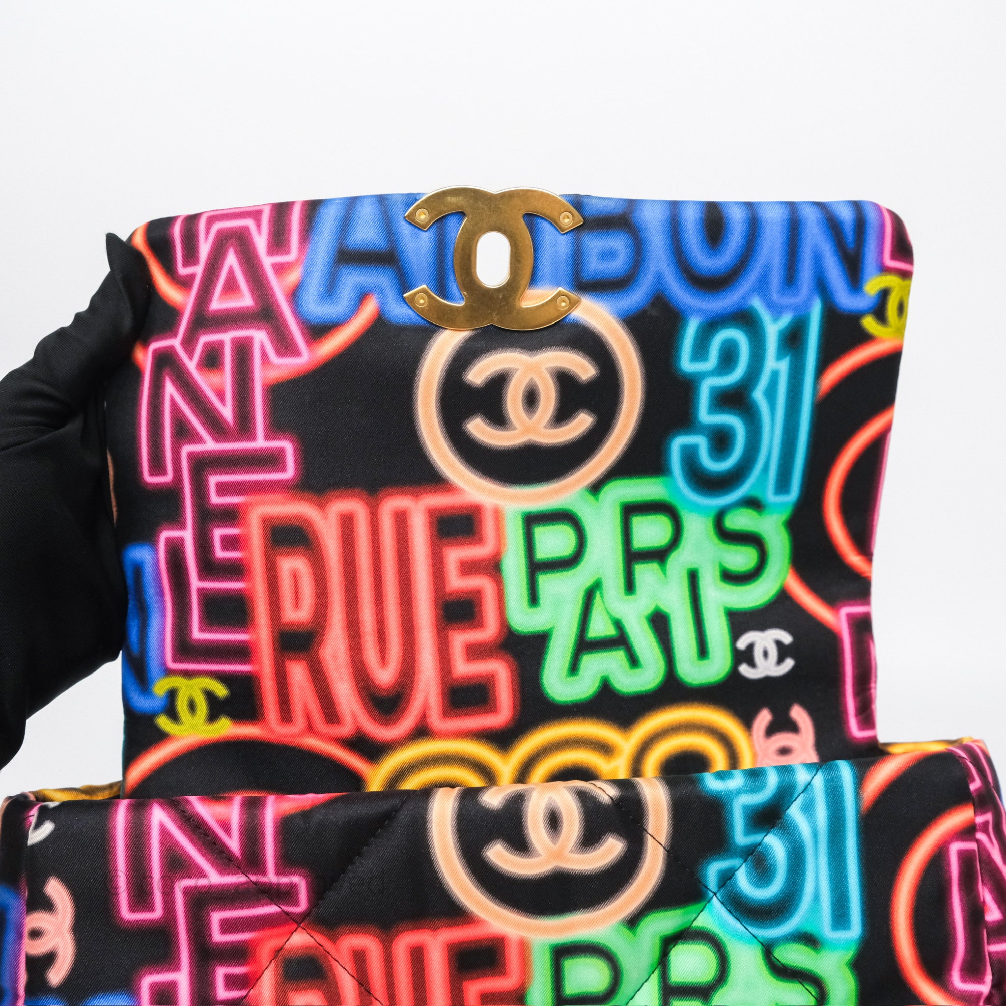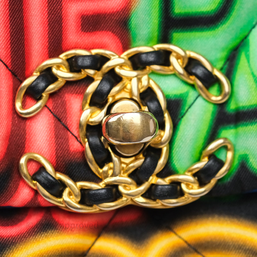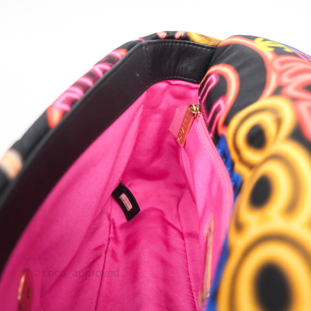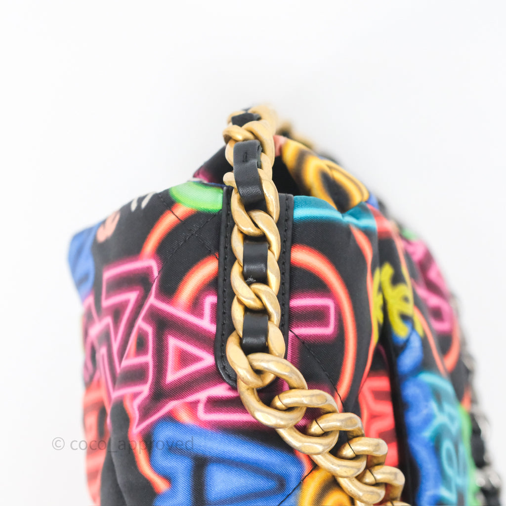 Chanel 19 Small Black Multicolor Fabric Printed Mixed Hardware