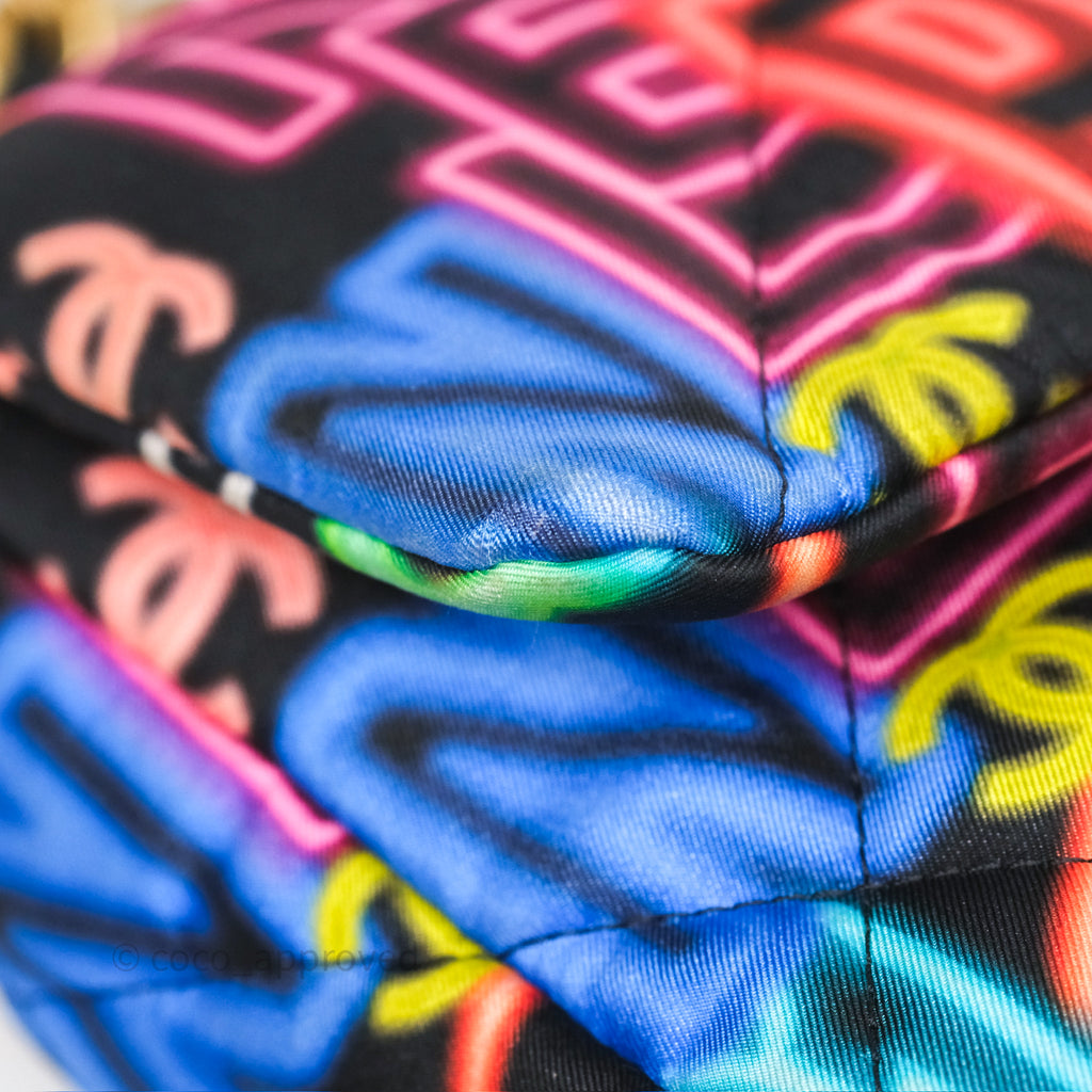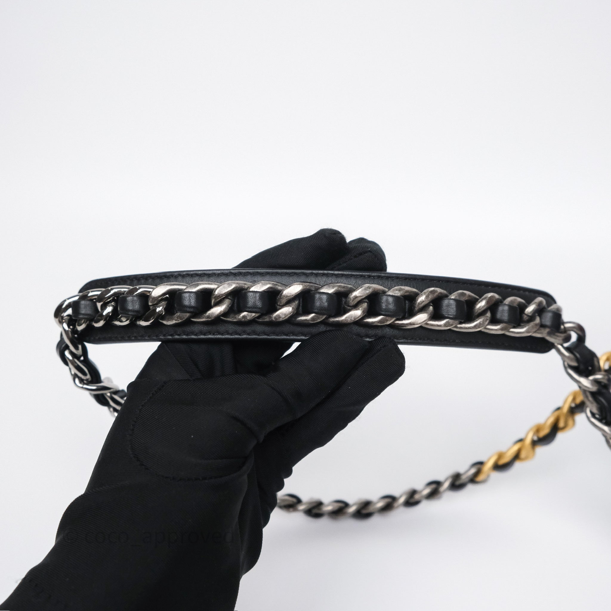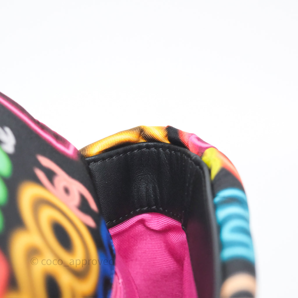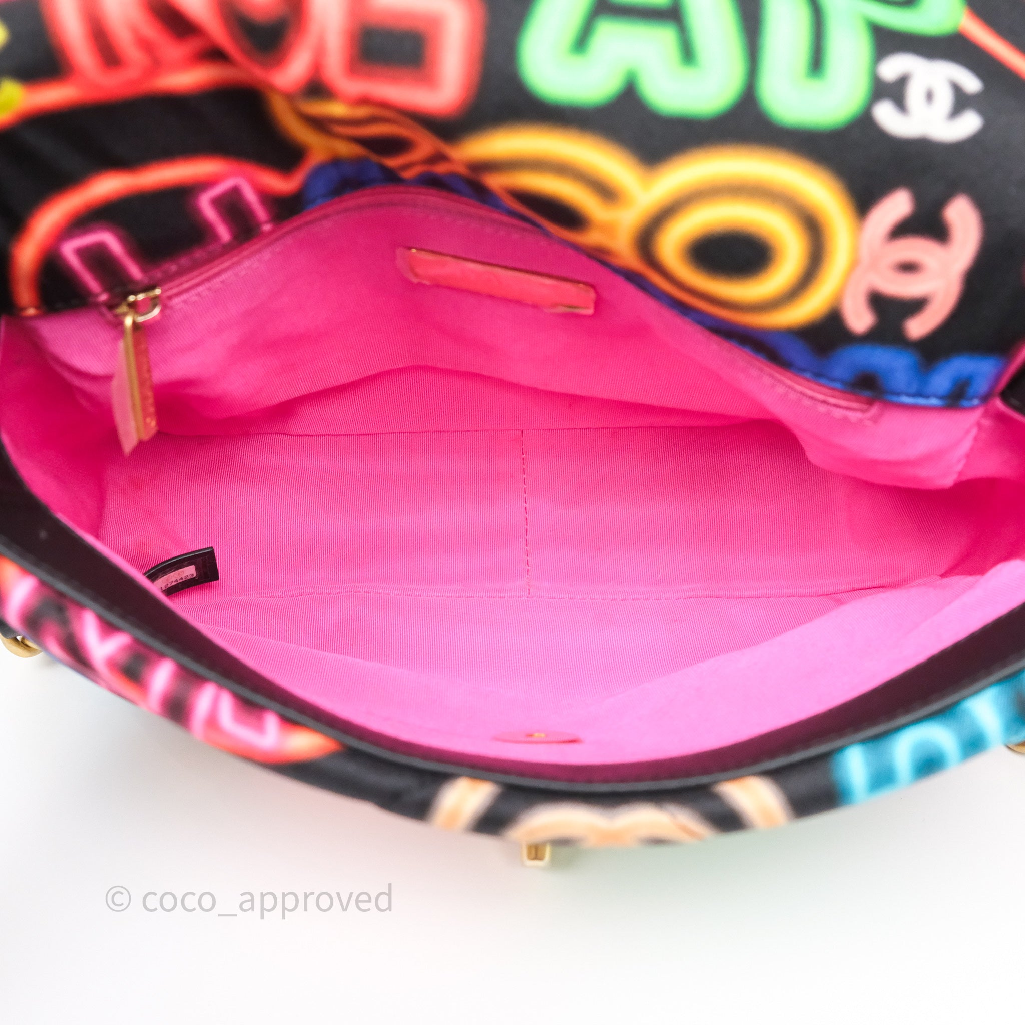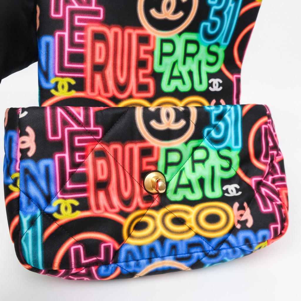 Chanel 19 Small Black Multicolor Fabric Printed Mixed Hardware