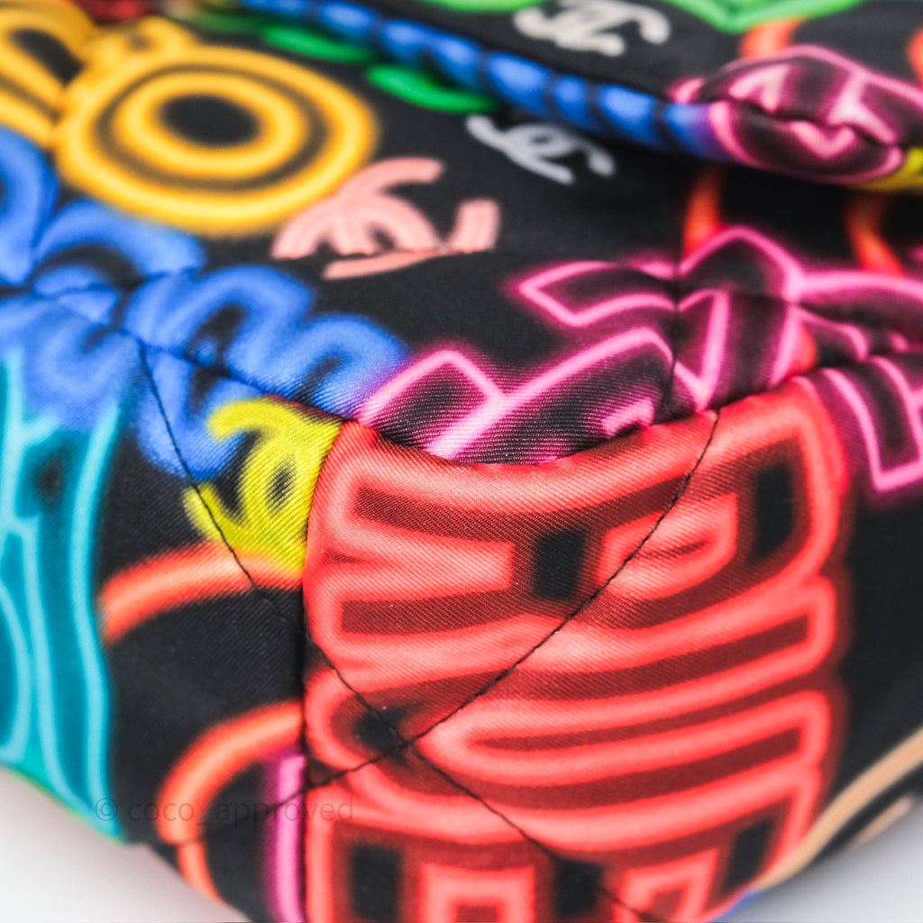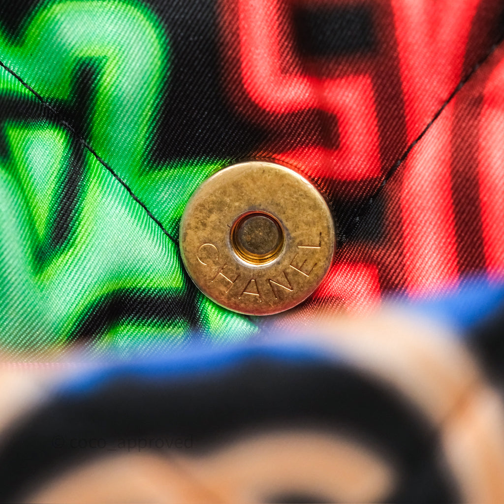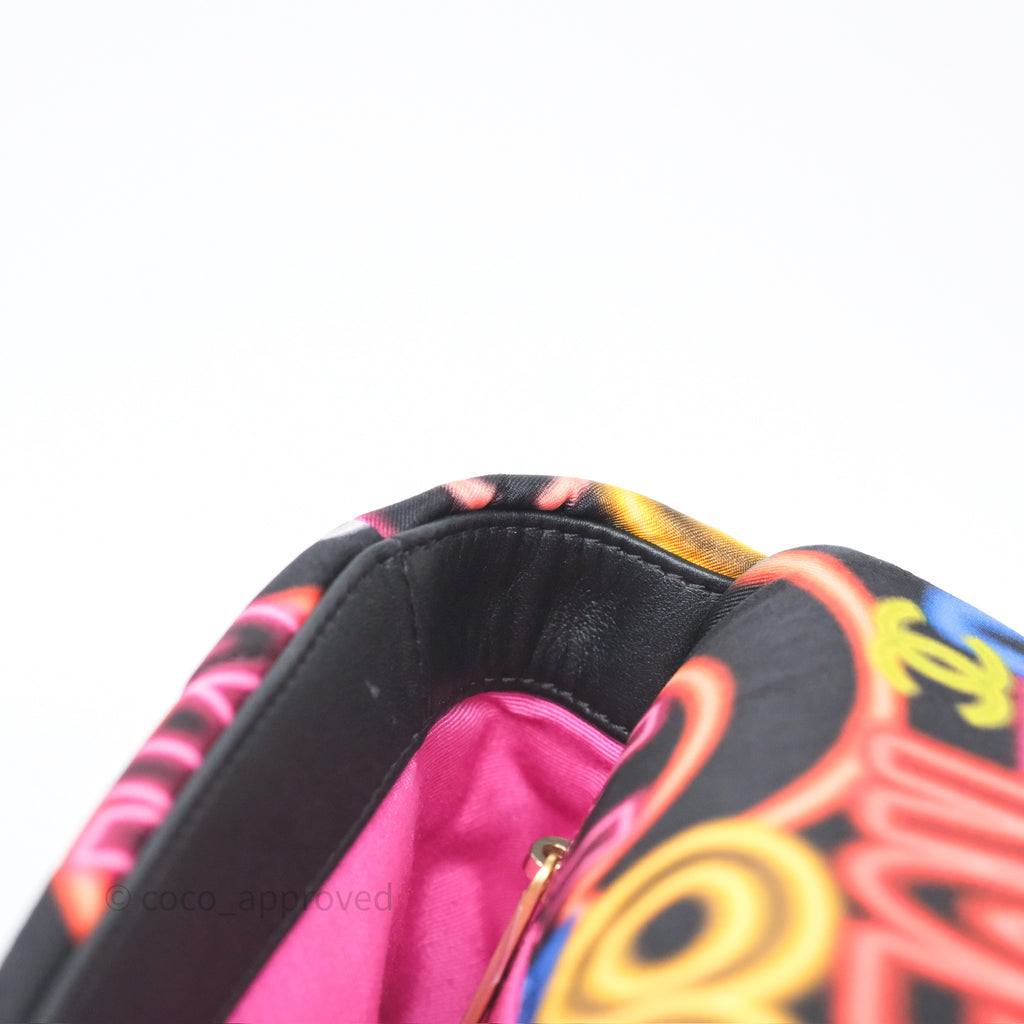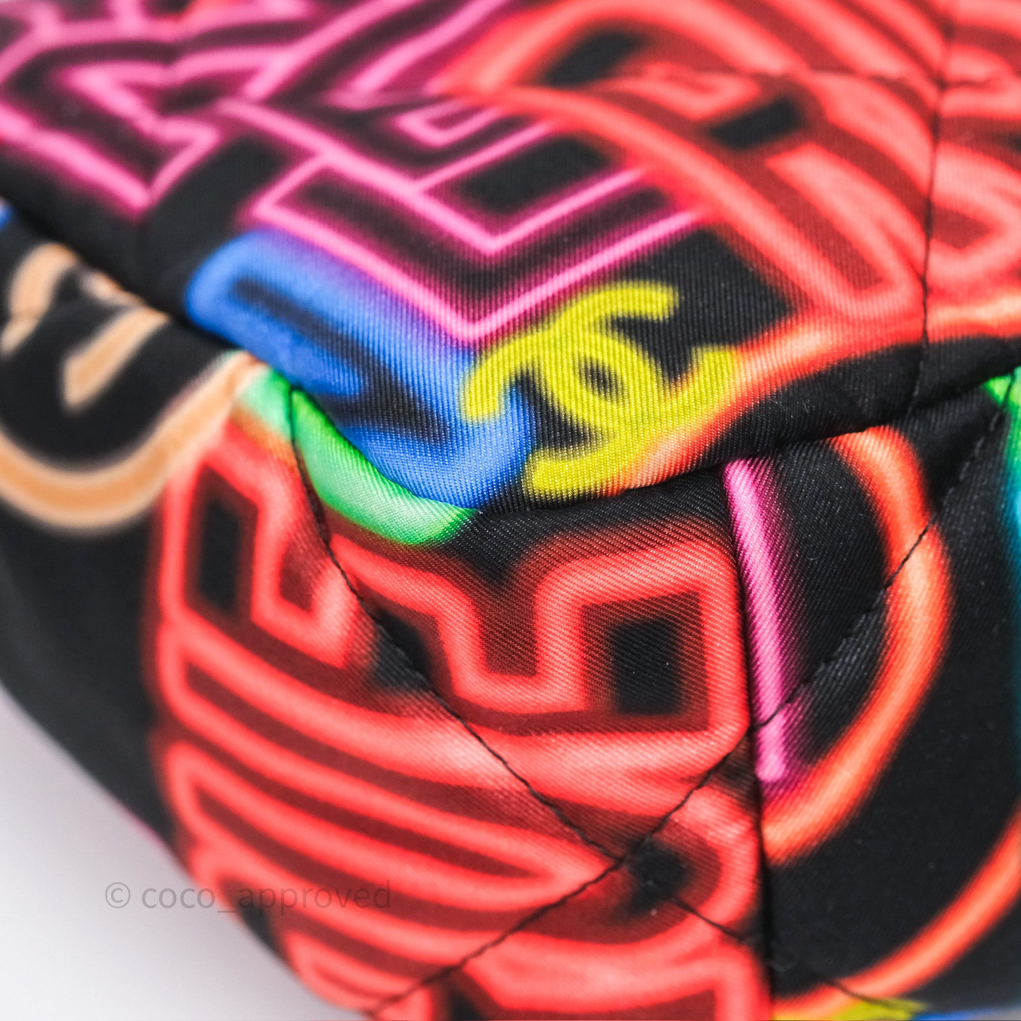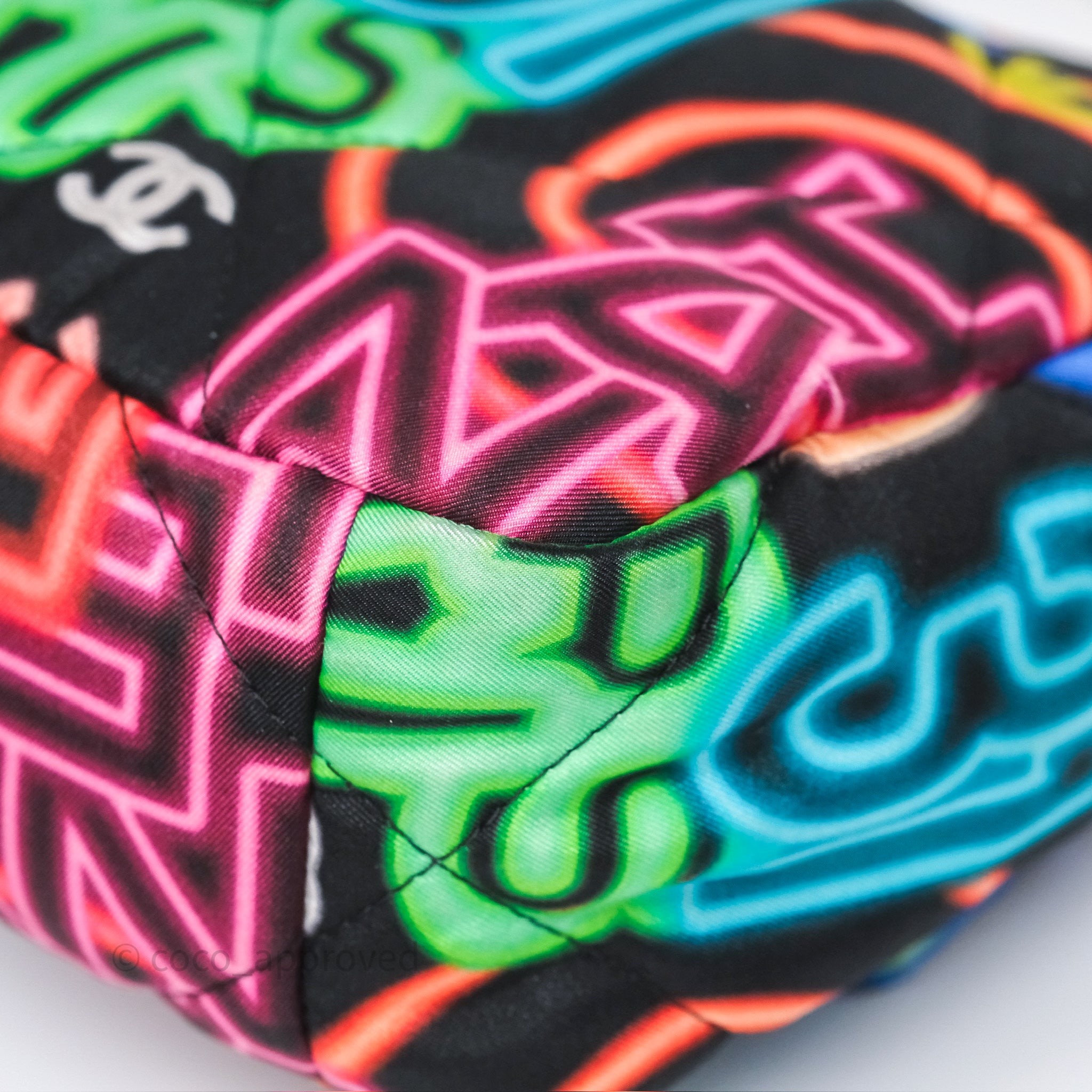 Chanel 19 Small Black Multicolor Fabric Printed Mixed Hardware