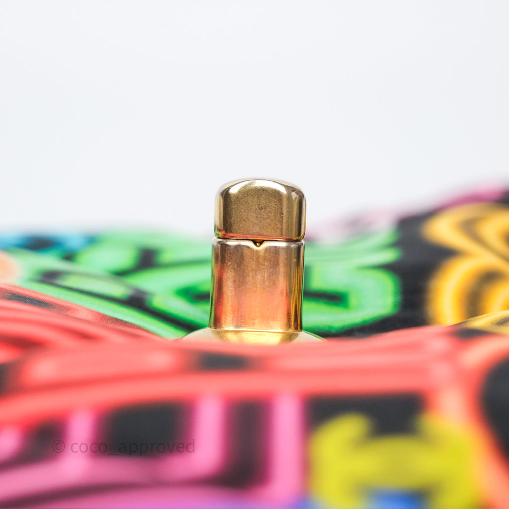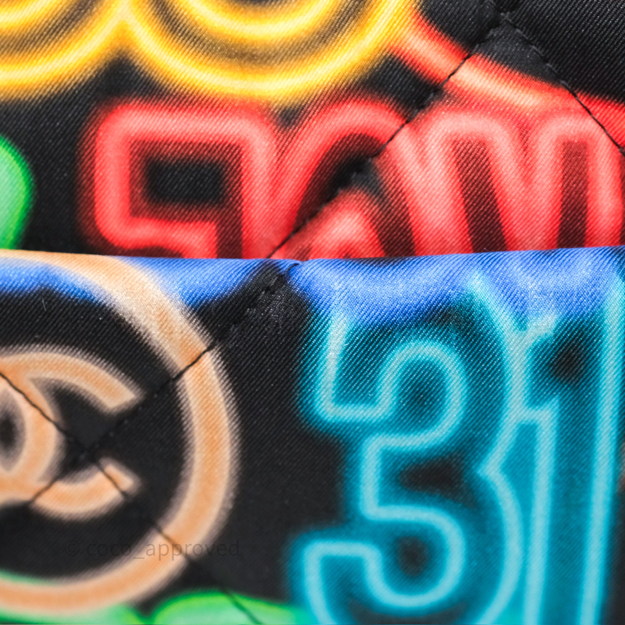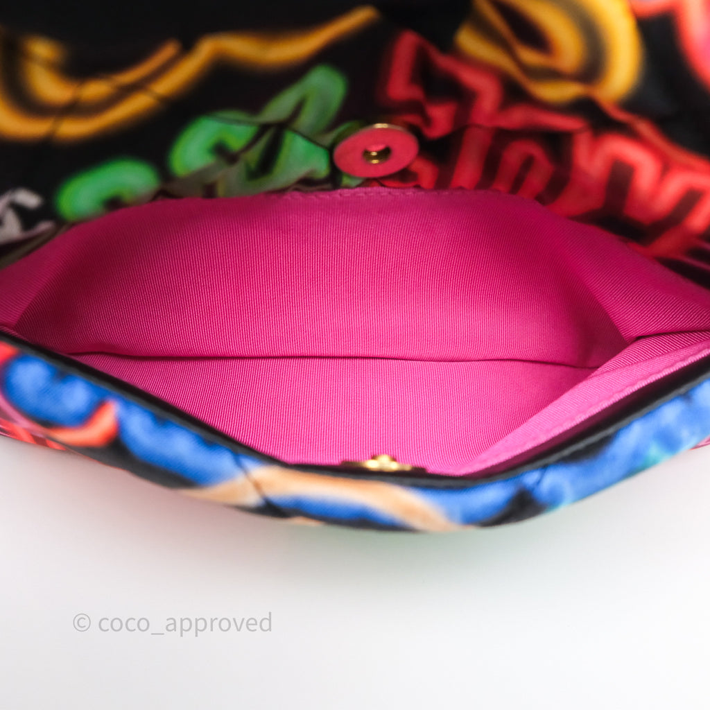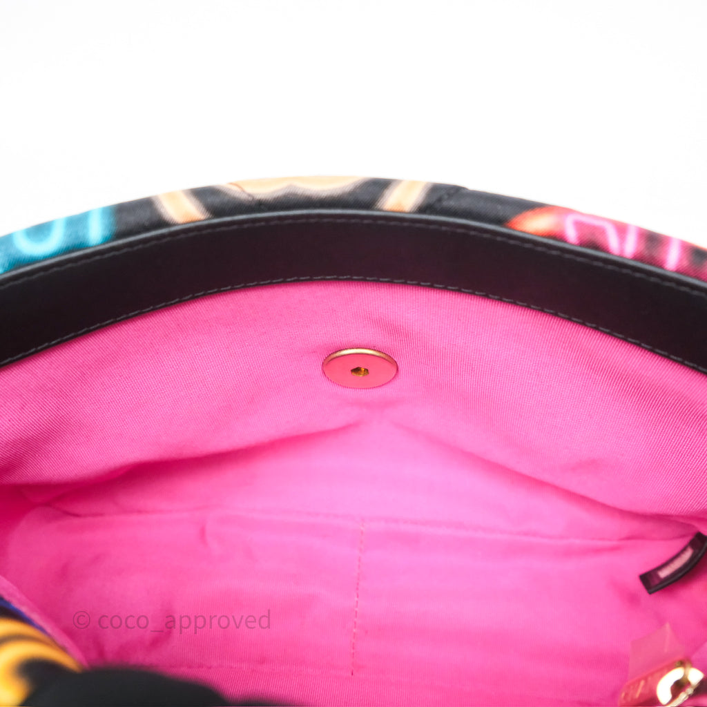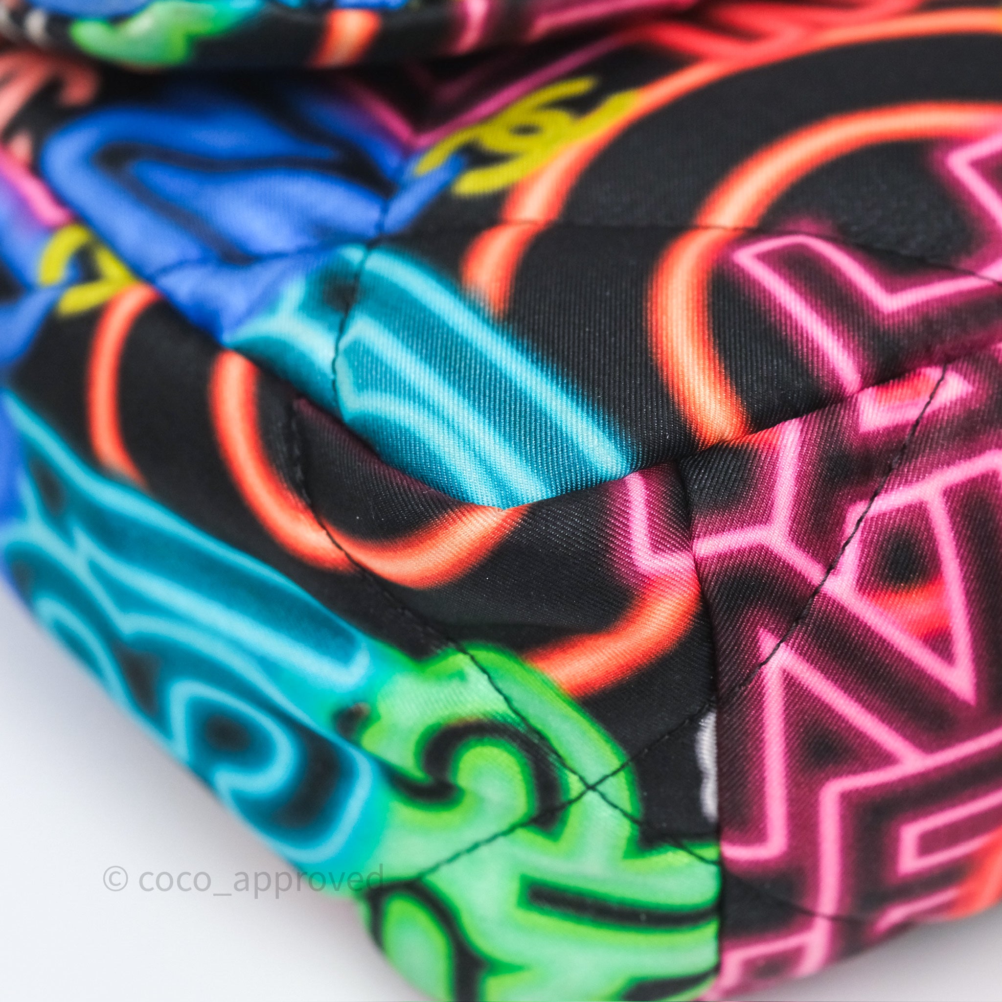 Chanel 19 Small Black Multicolor Fabric Printed Mixed Hardware